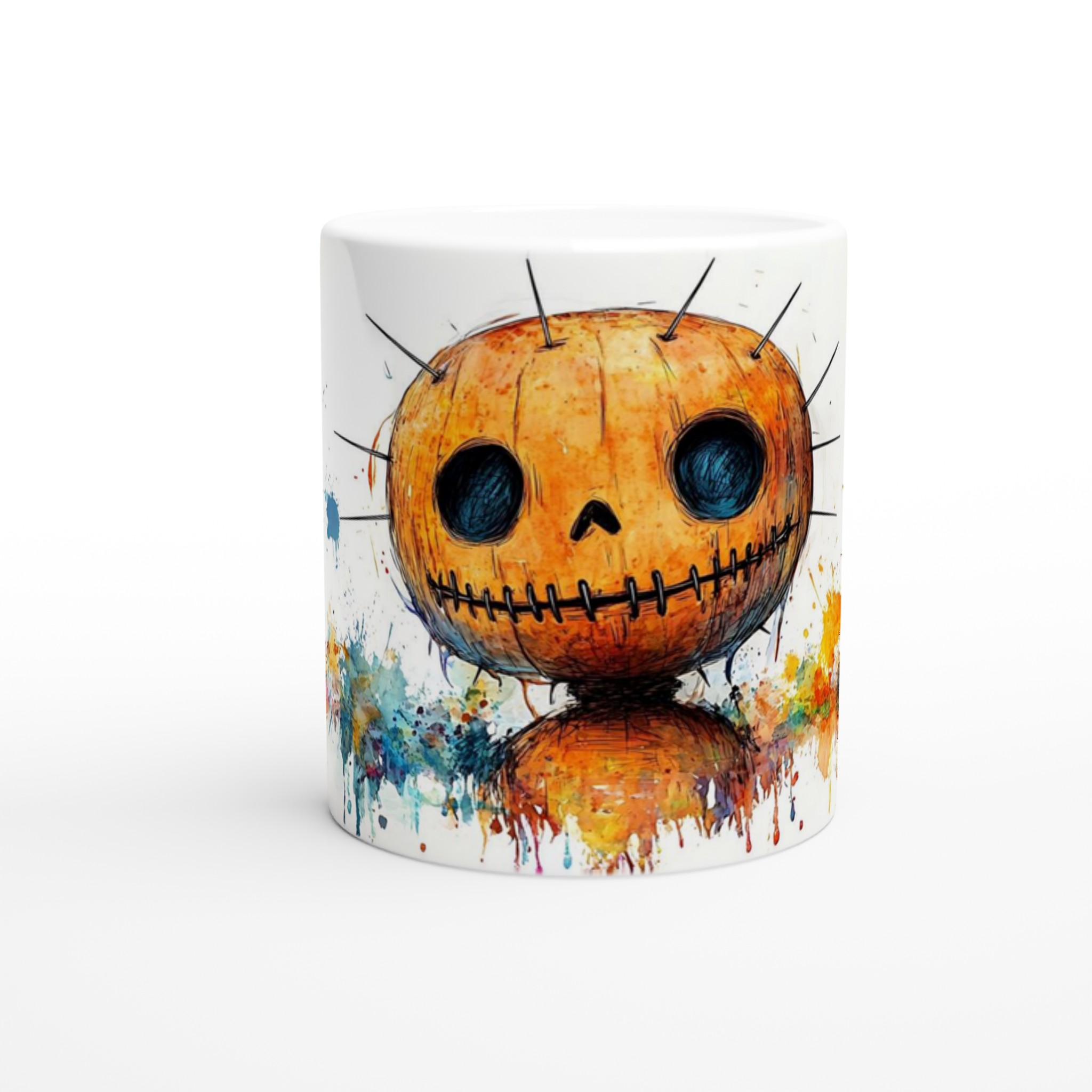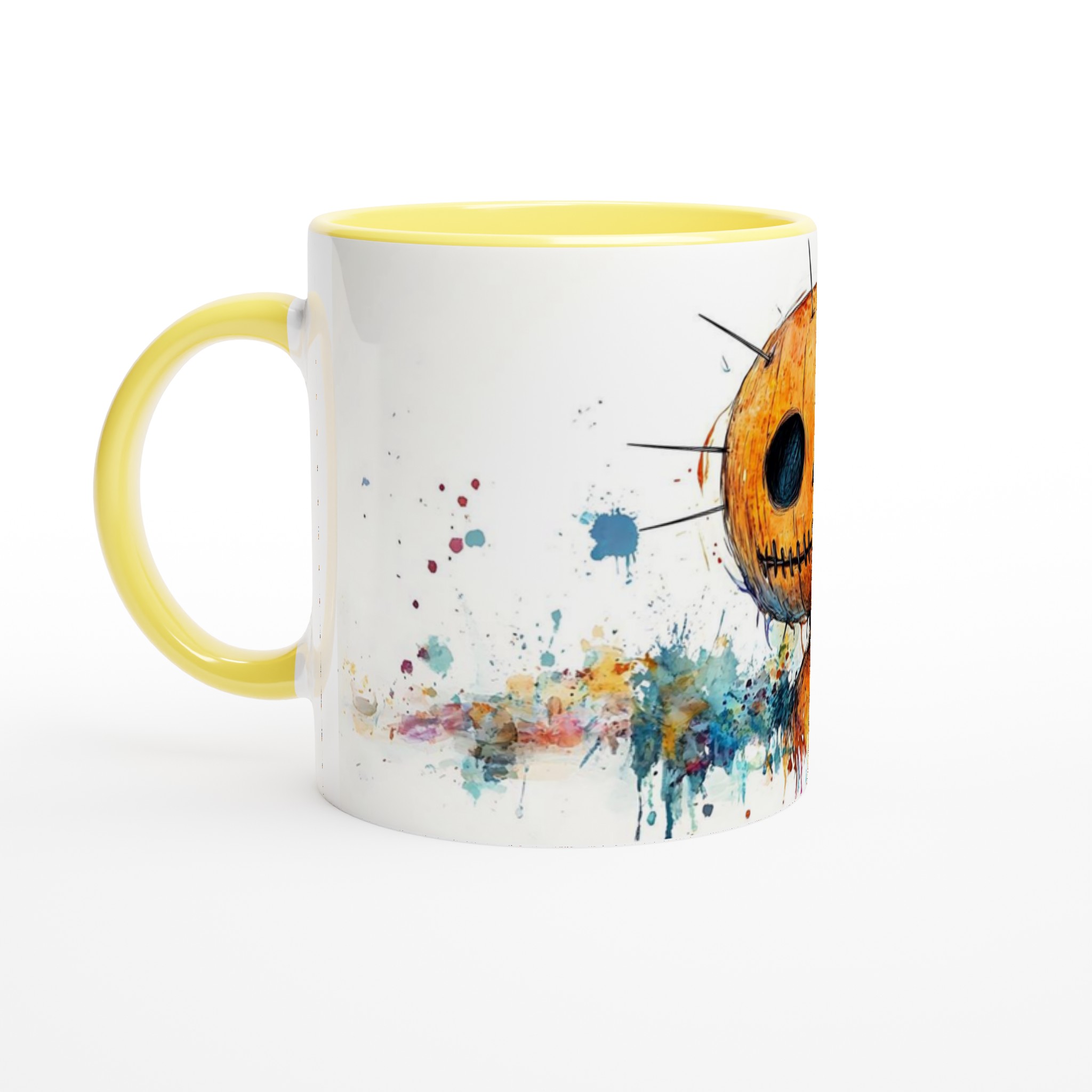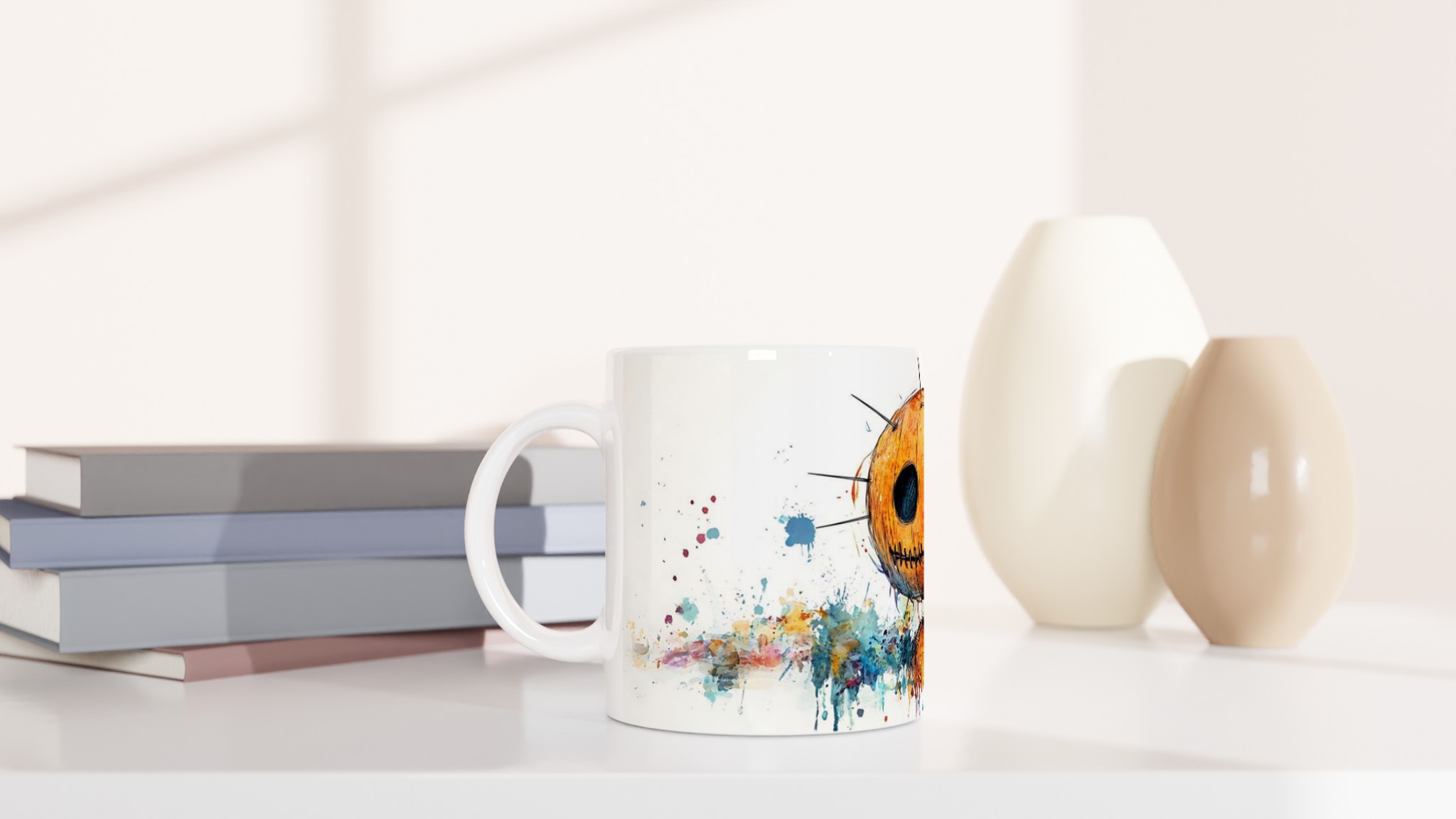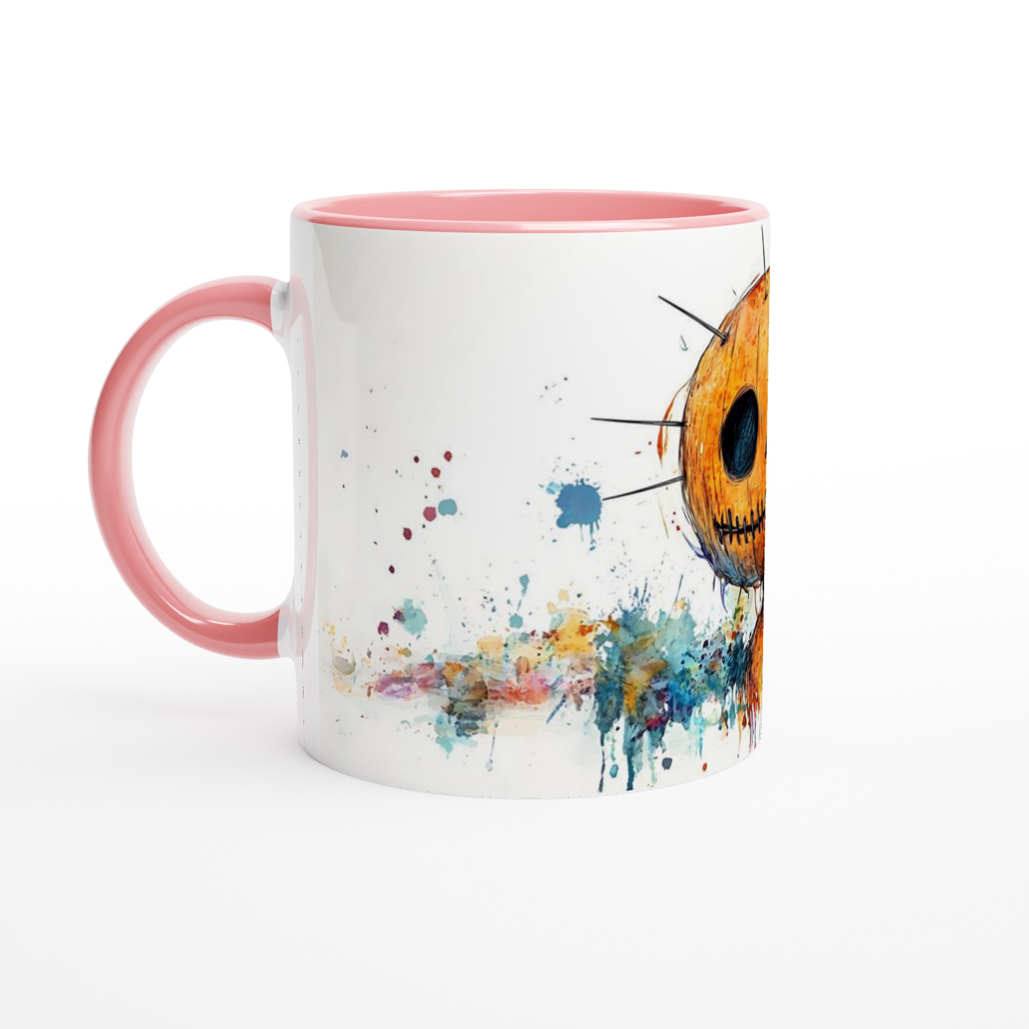 Spooky Watercolor Voodoo Doll Pumpkin 11oz Ceramic Mug – Choose Your Hue!