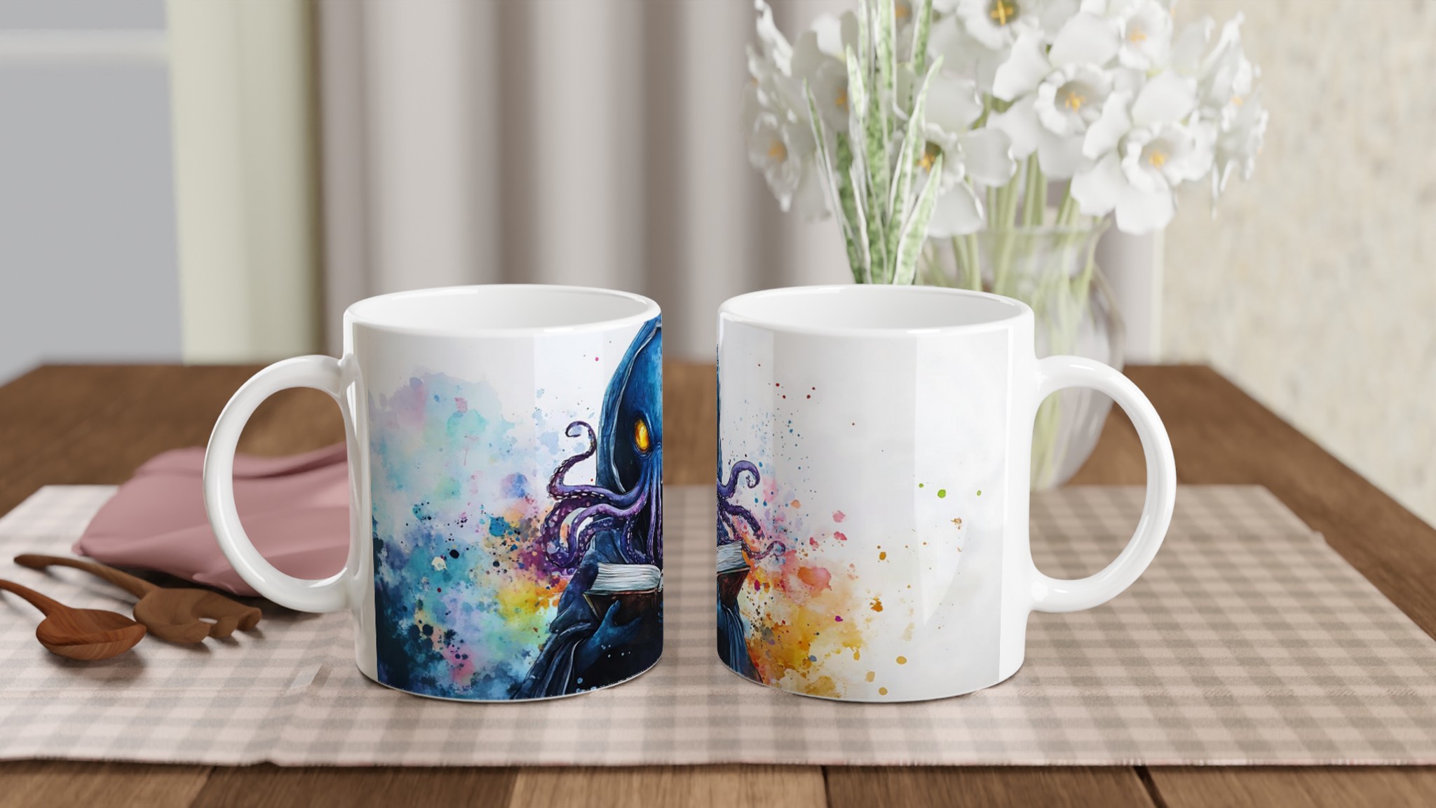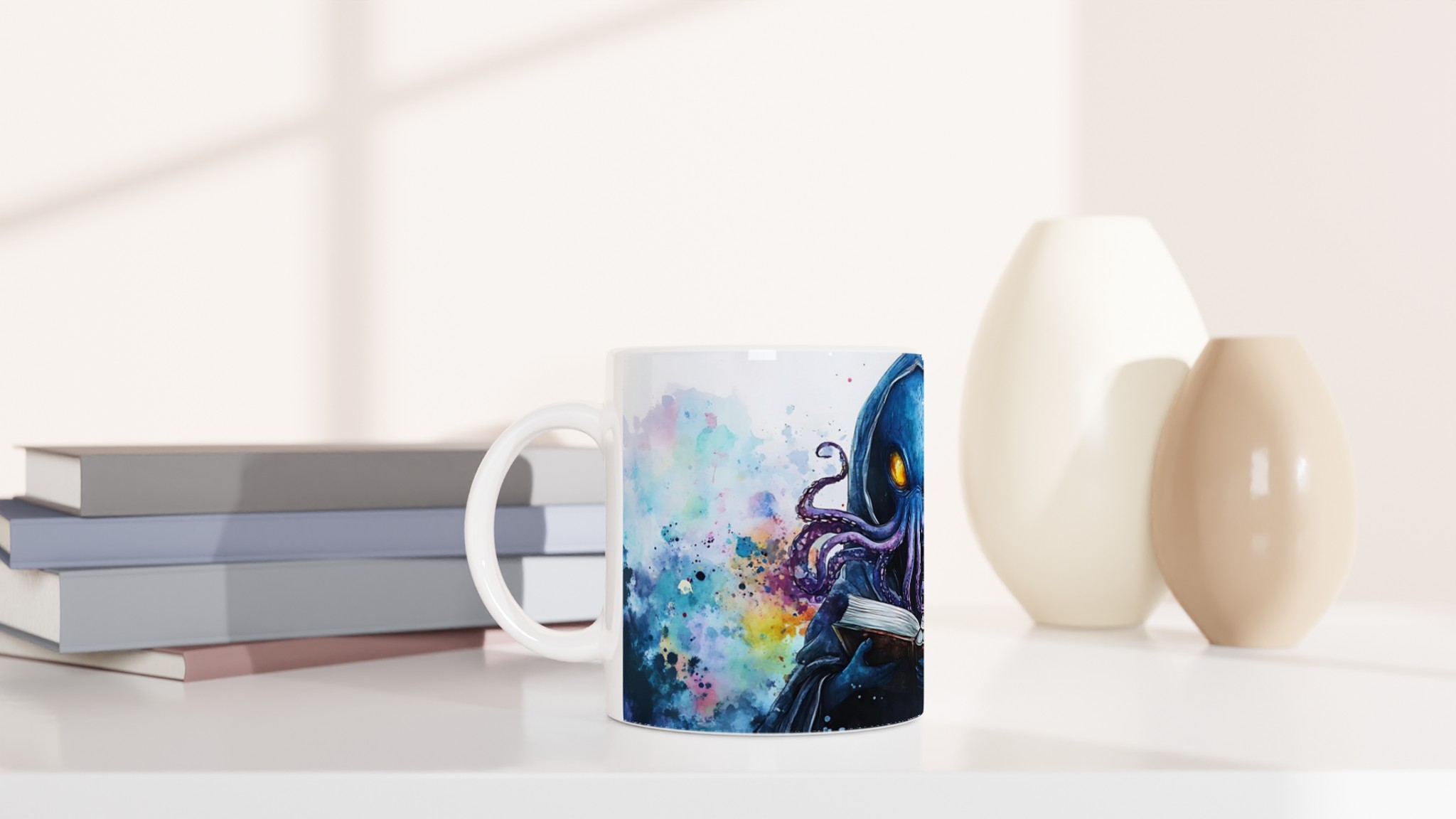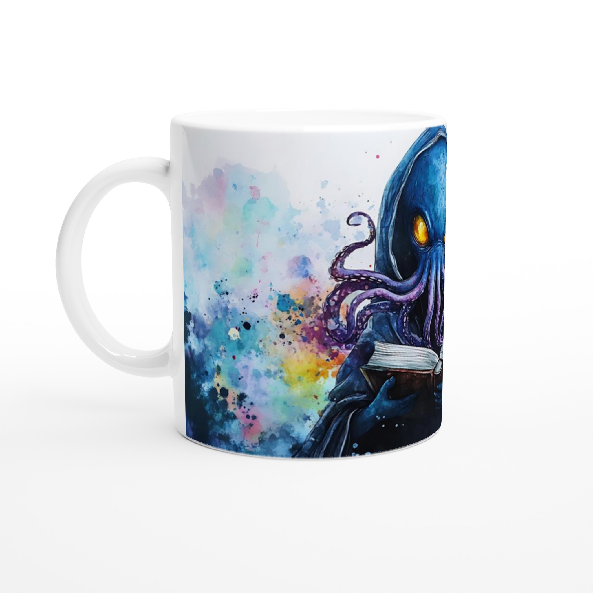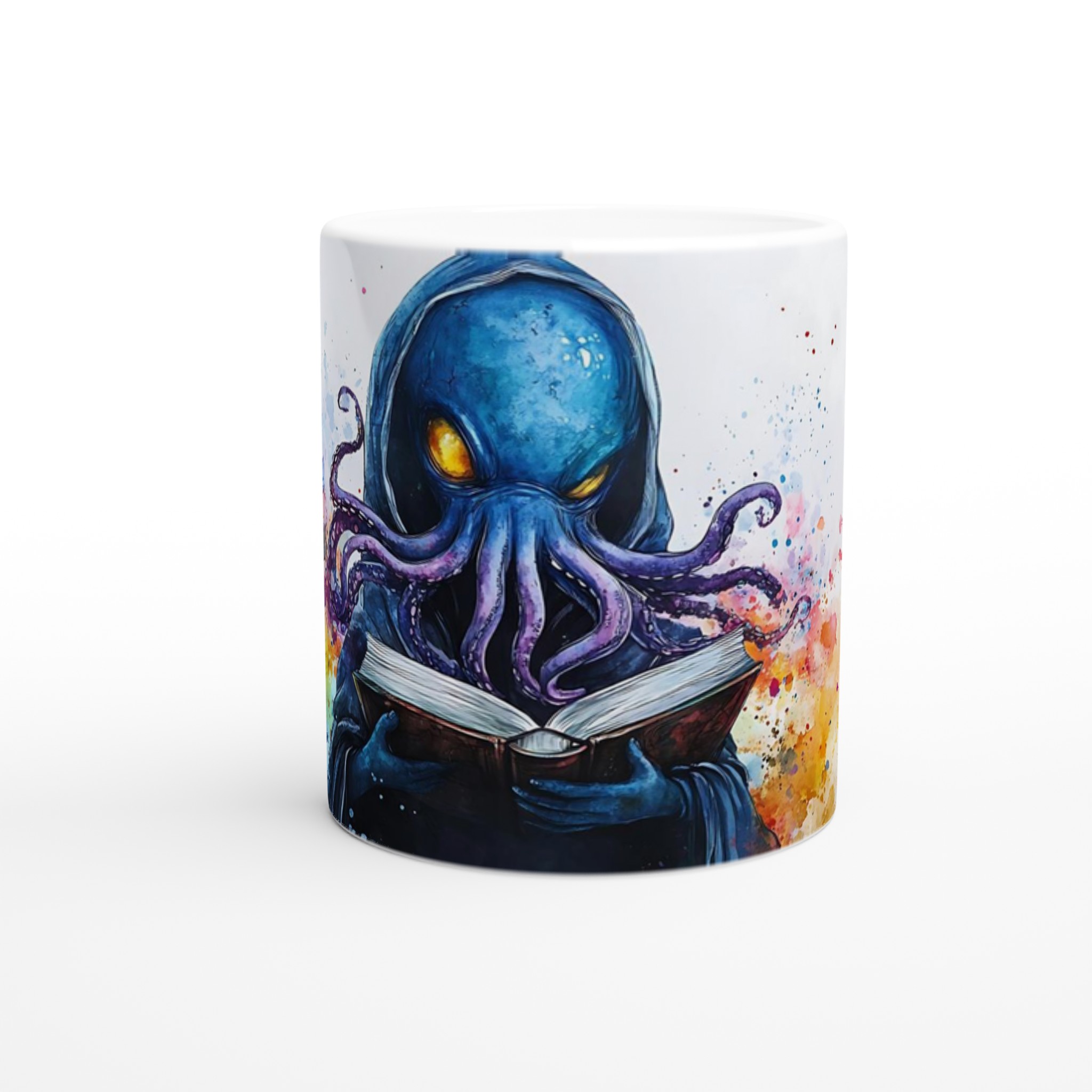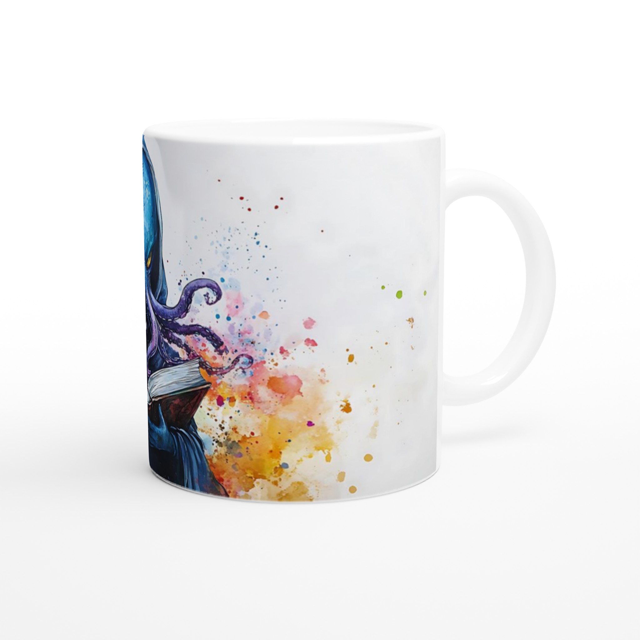 Mystic Kraken Reader 11oz Ceramic Mug – Dive into Lore with Vivid Watercolor Art