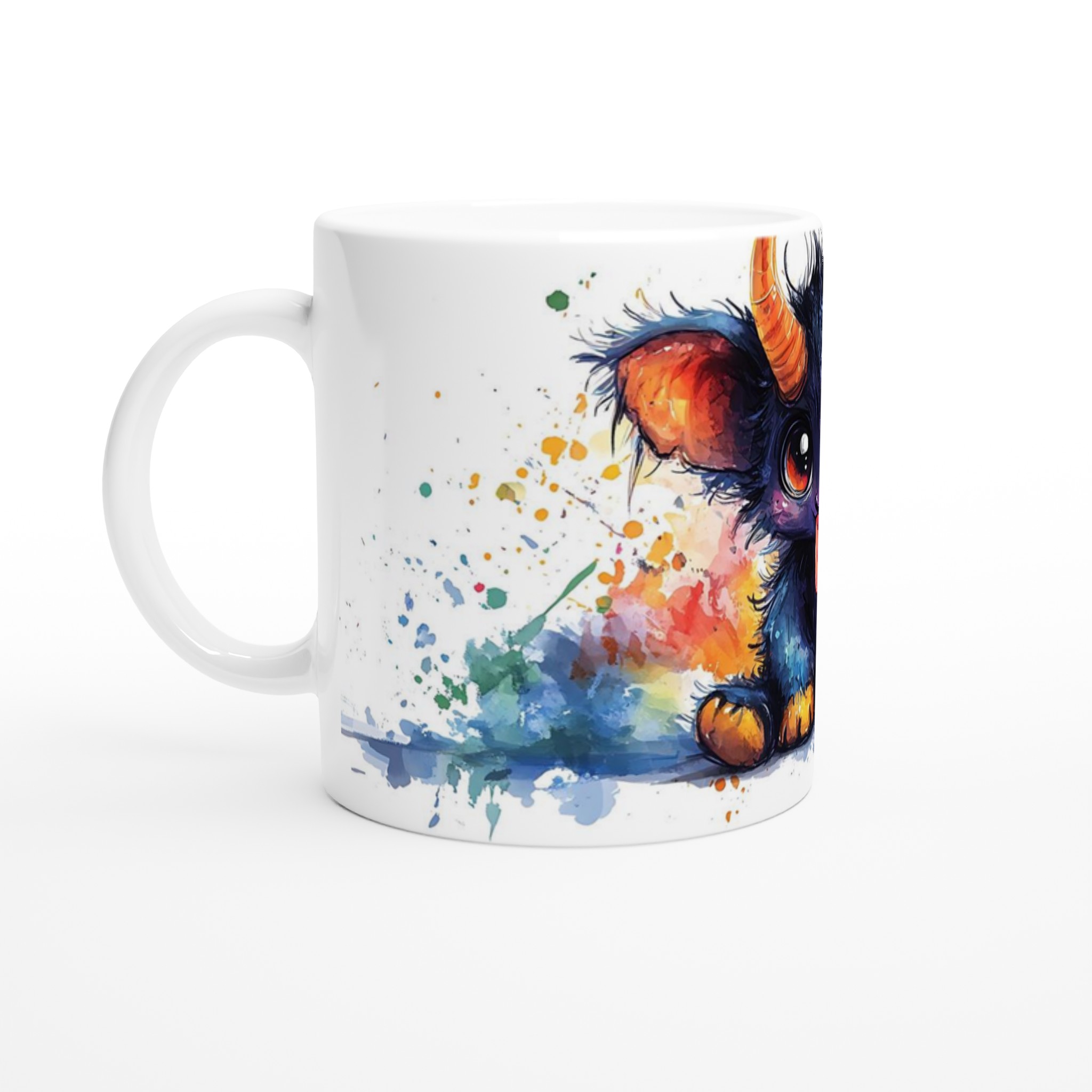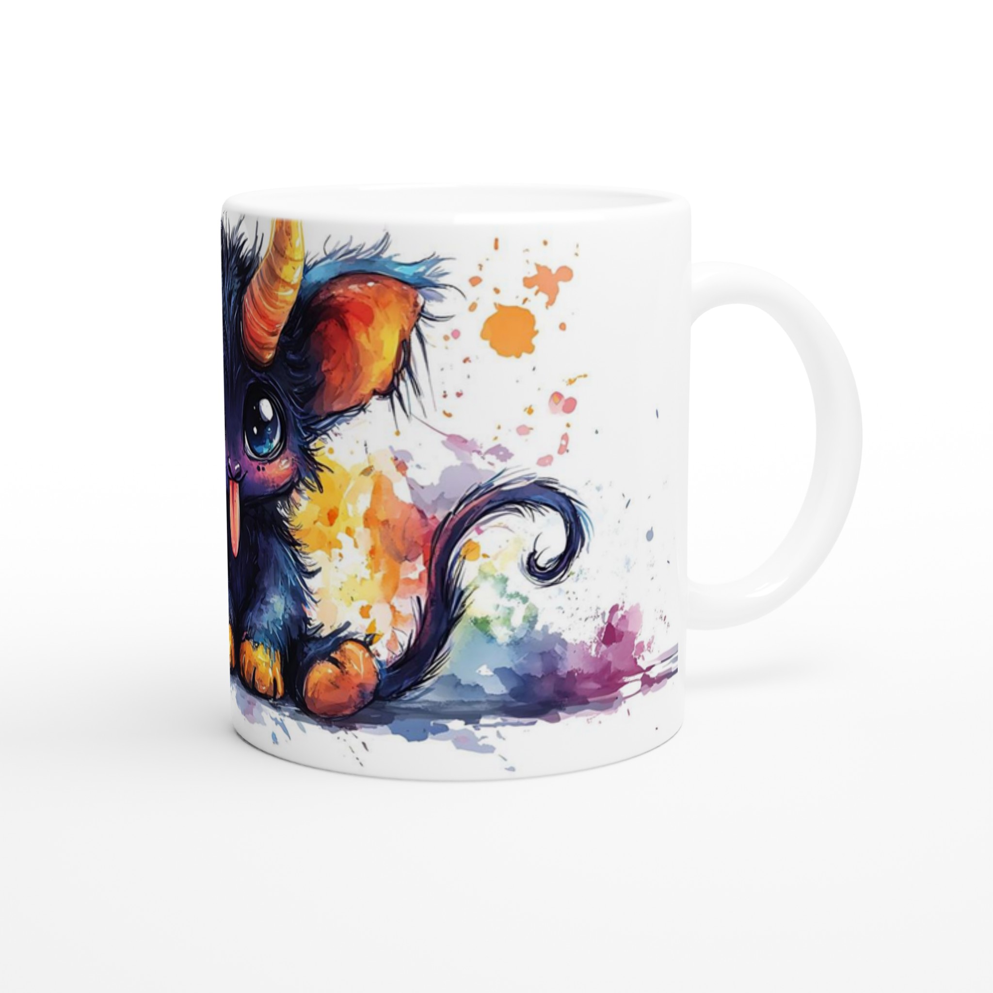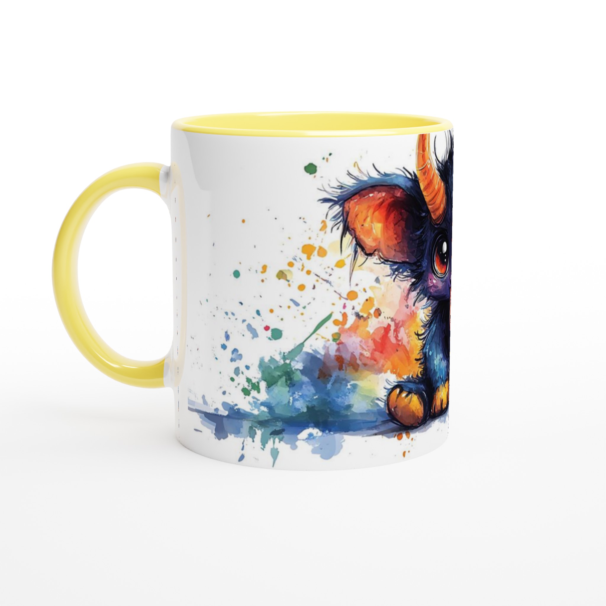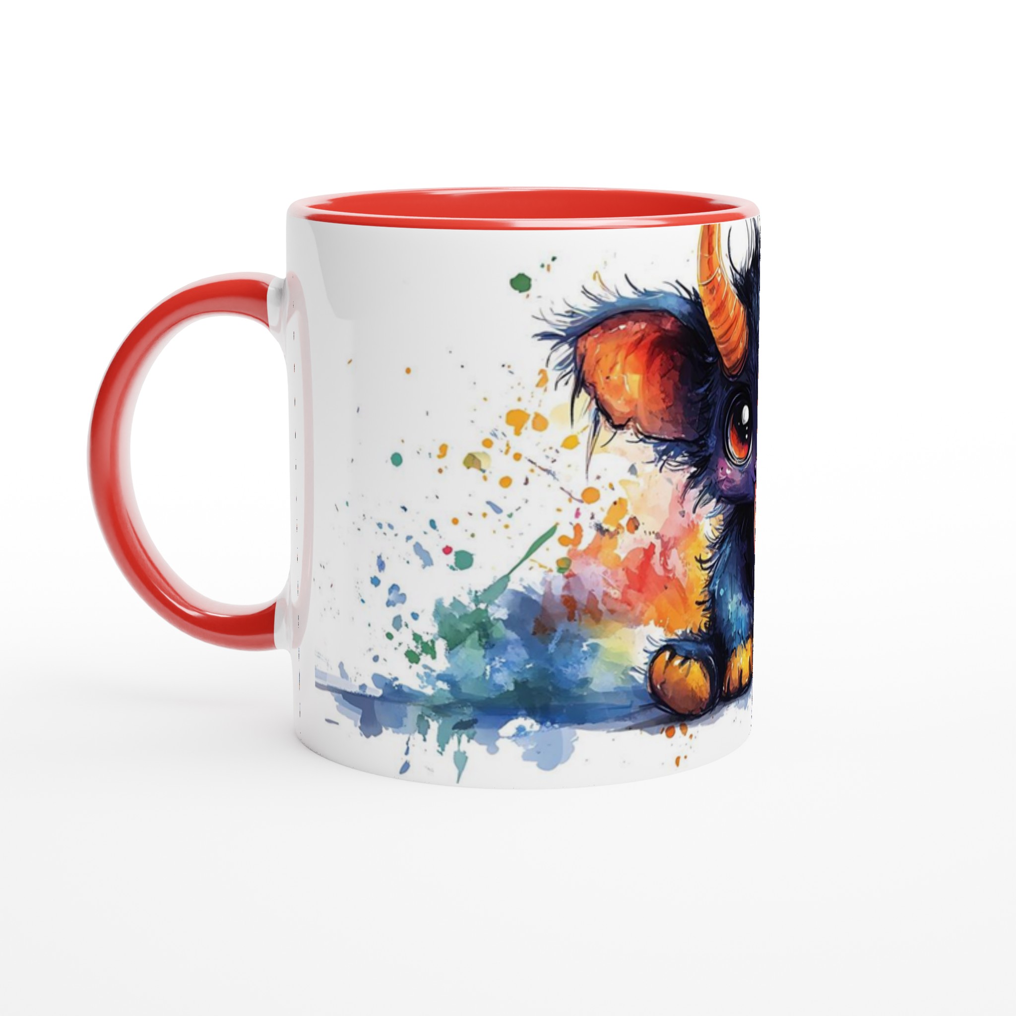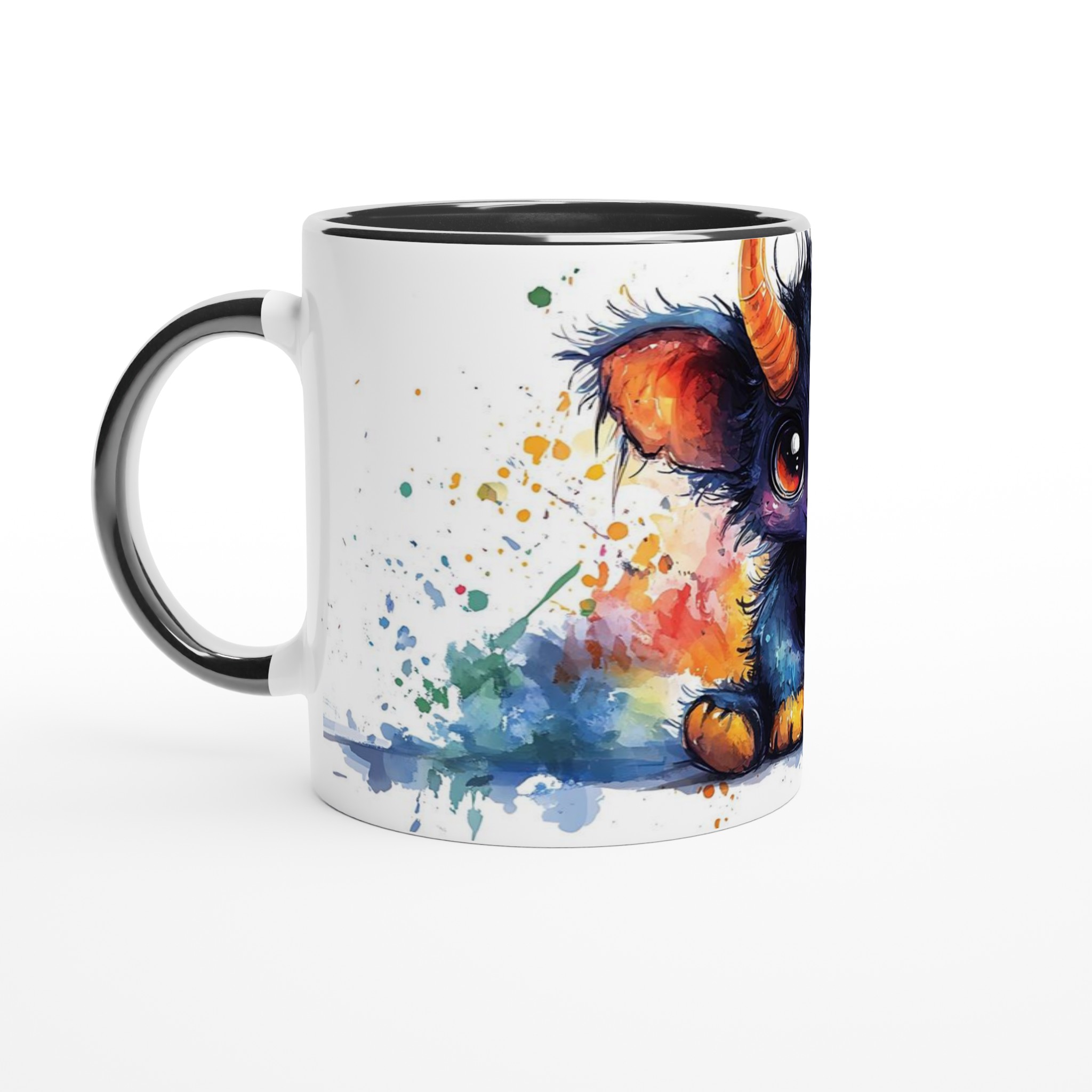 Charming & Quirky Watercolor Monster Mug – White 11oz Ceramic Mug in Your Choice of Seven Vibrant Hues