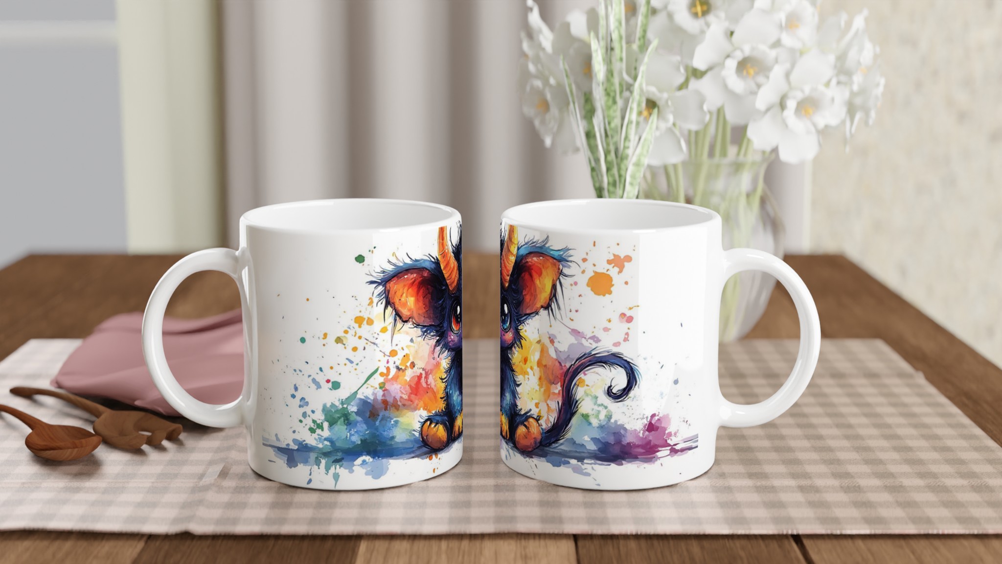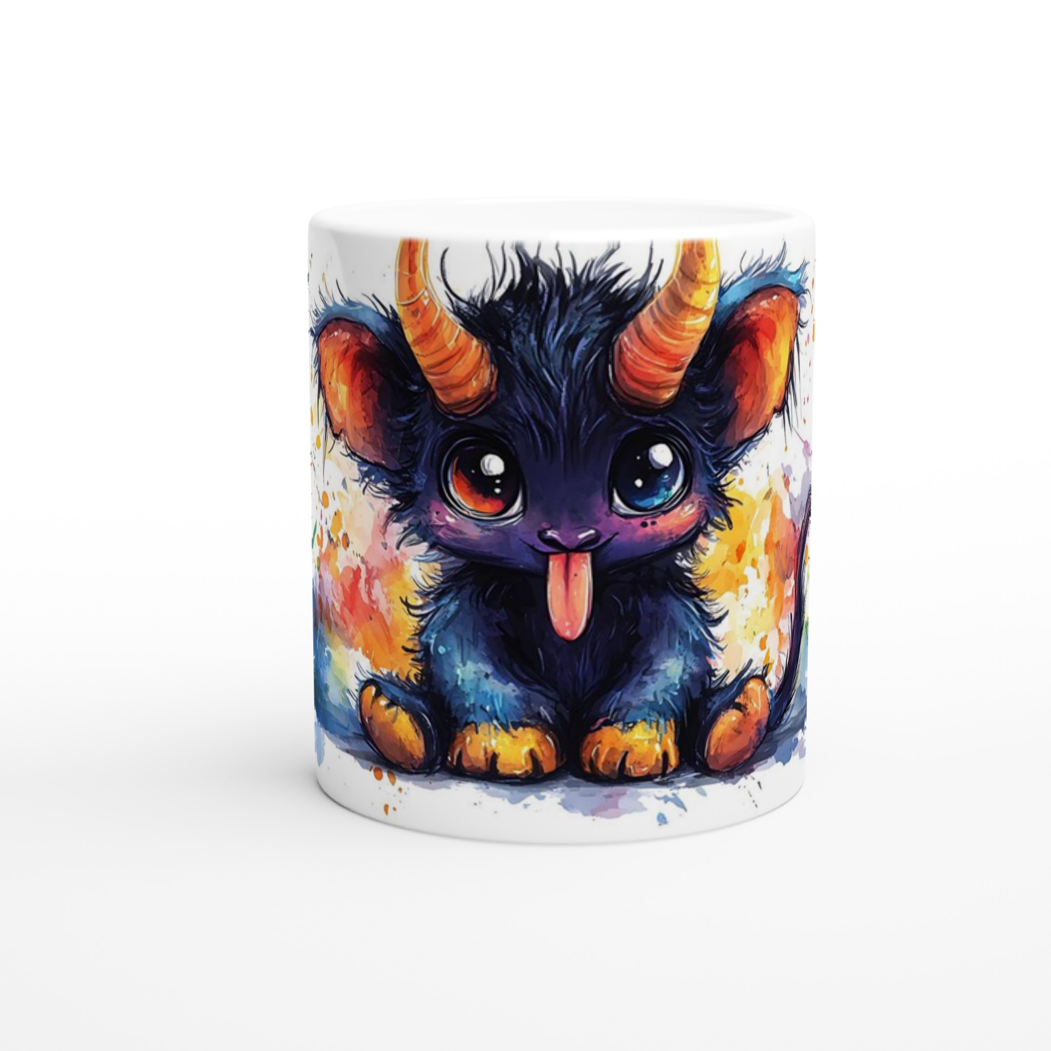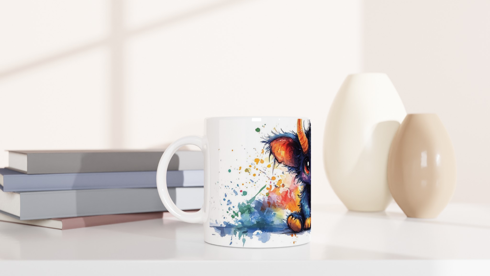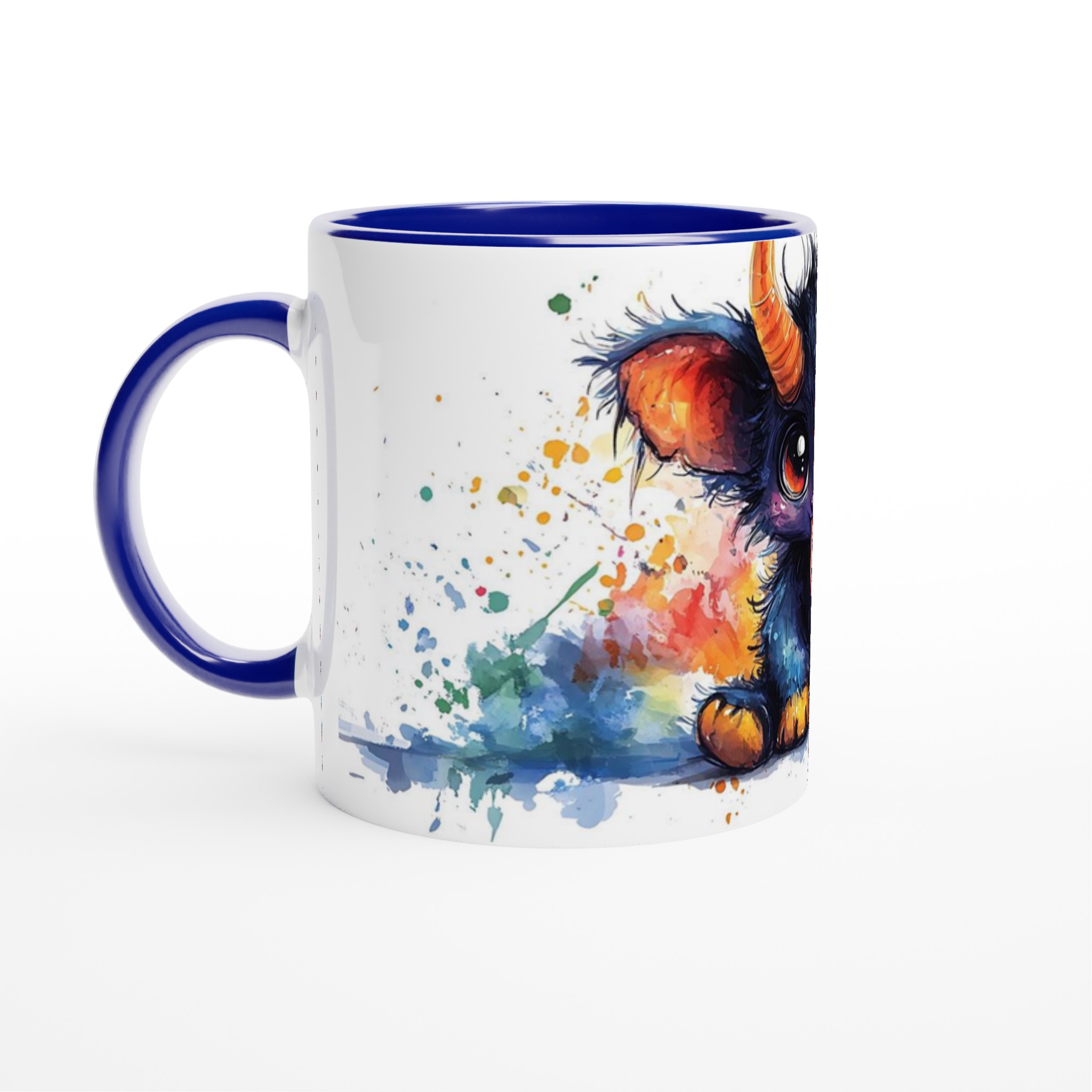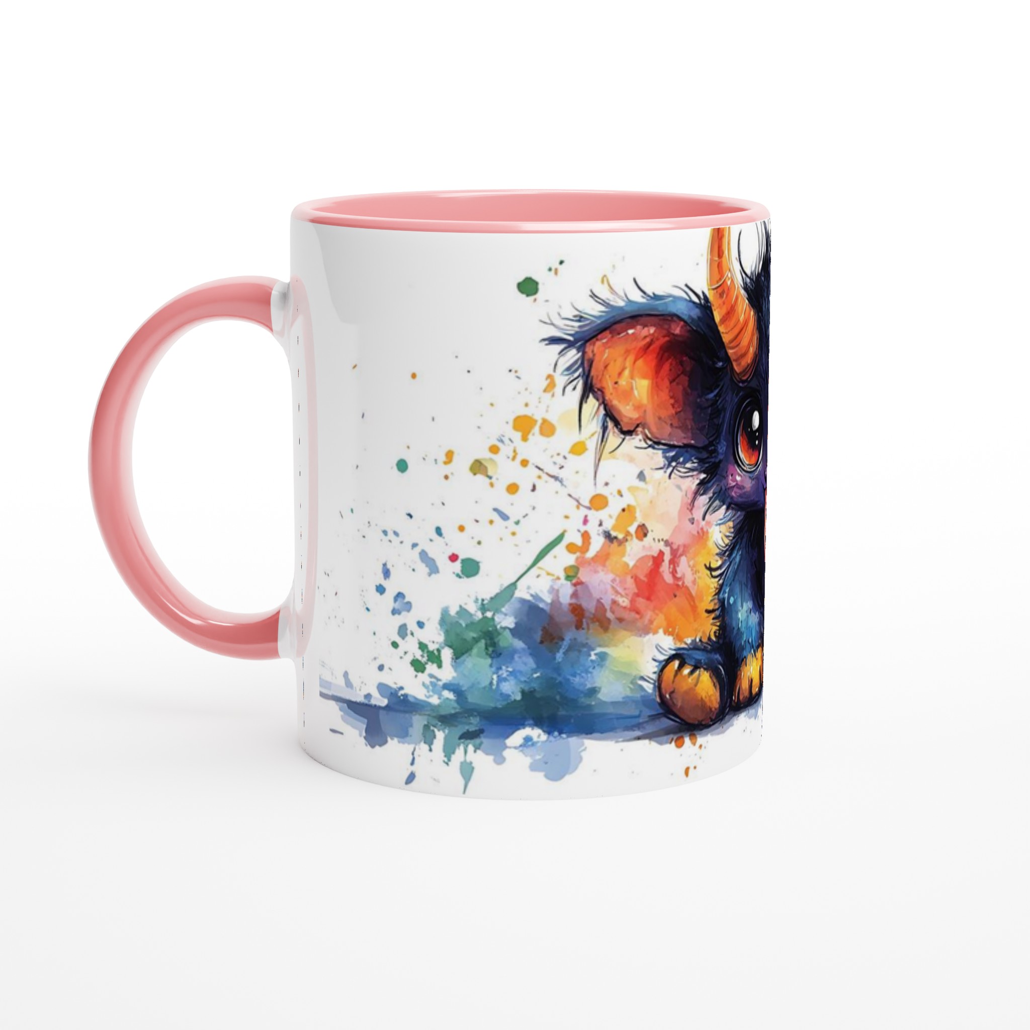 Charming & Quirky Watercolor Monster Mug – White 11oz Ceramic Mug in Your Choice of Seven Vibrant Hues
