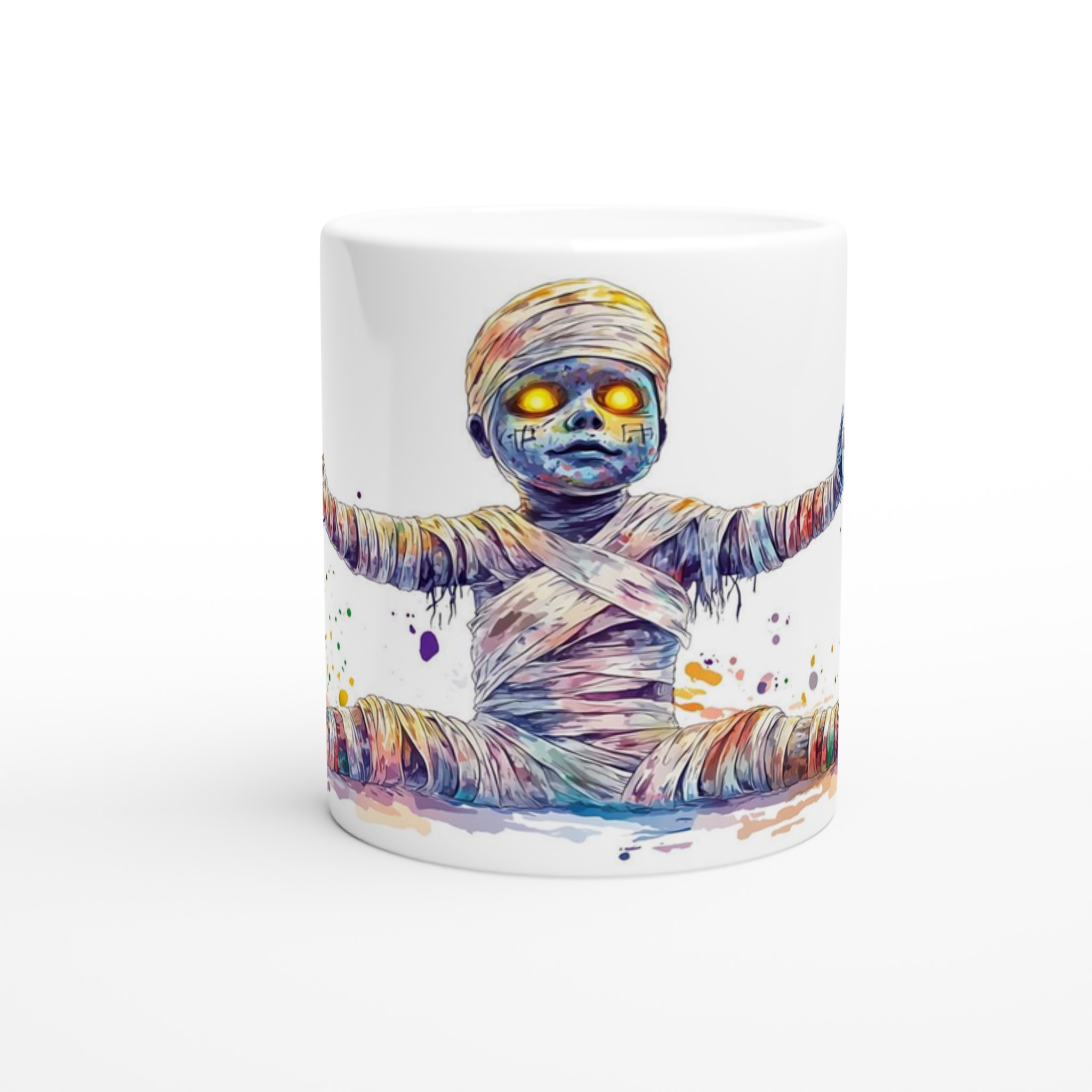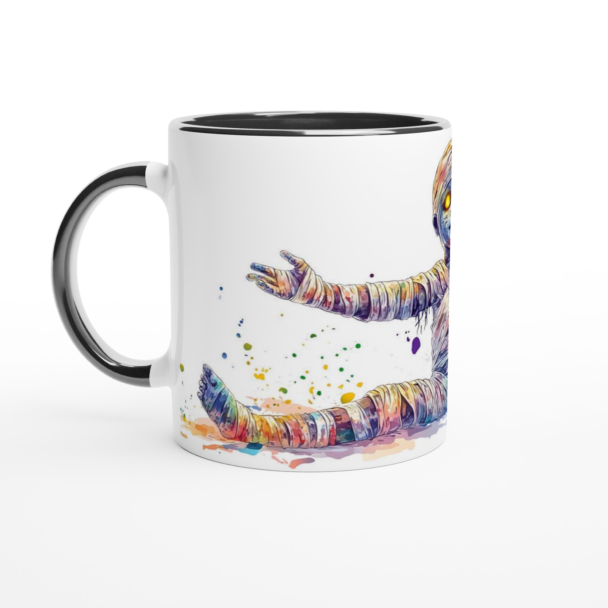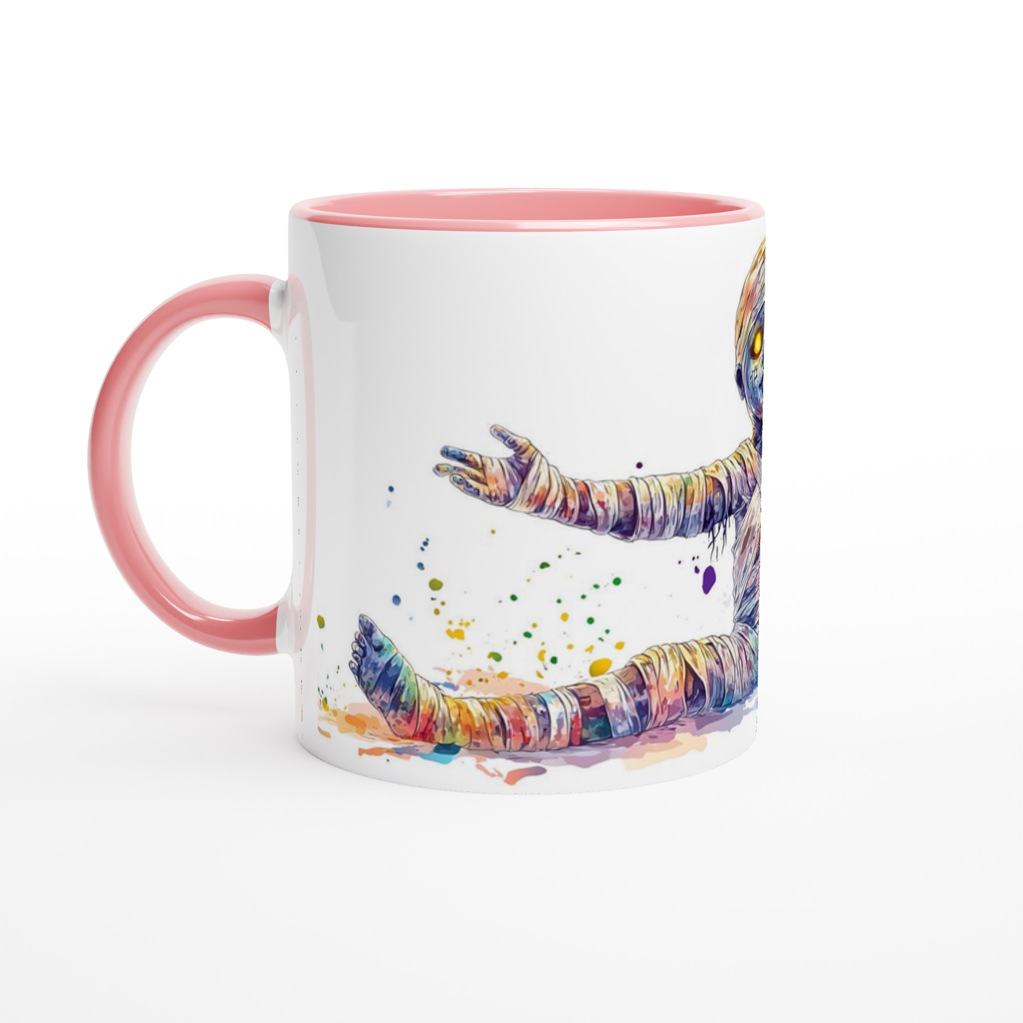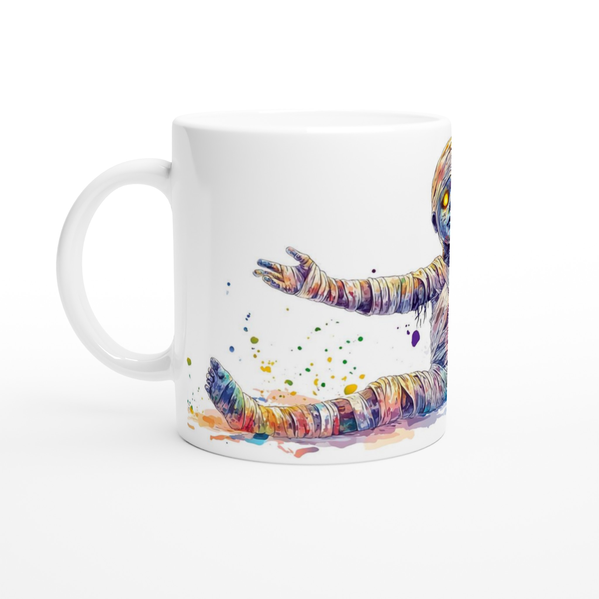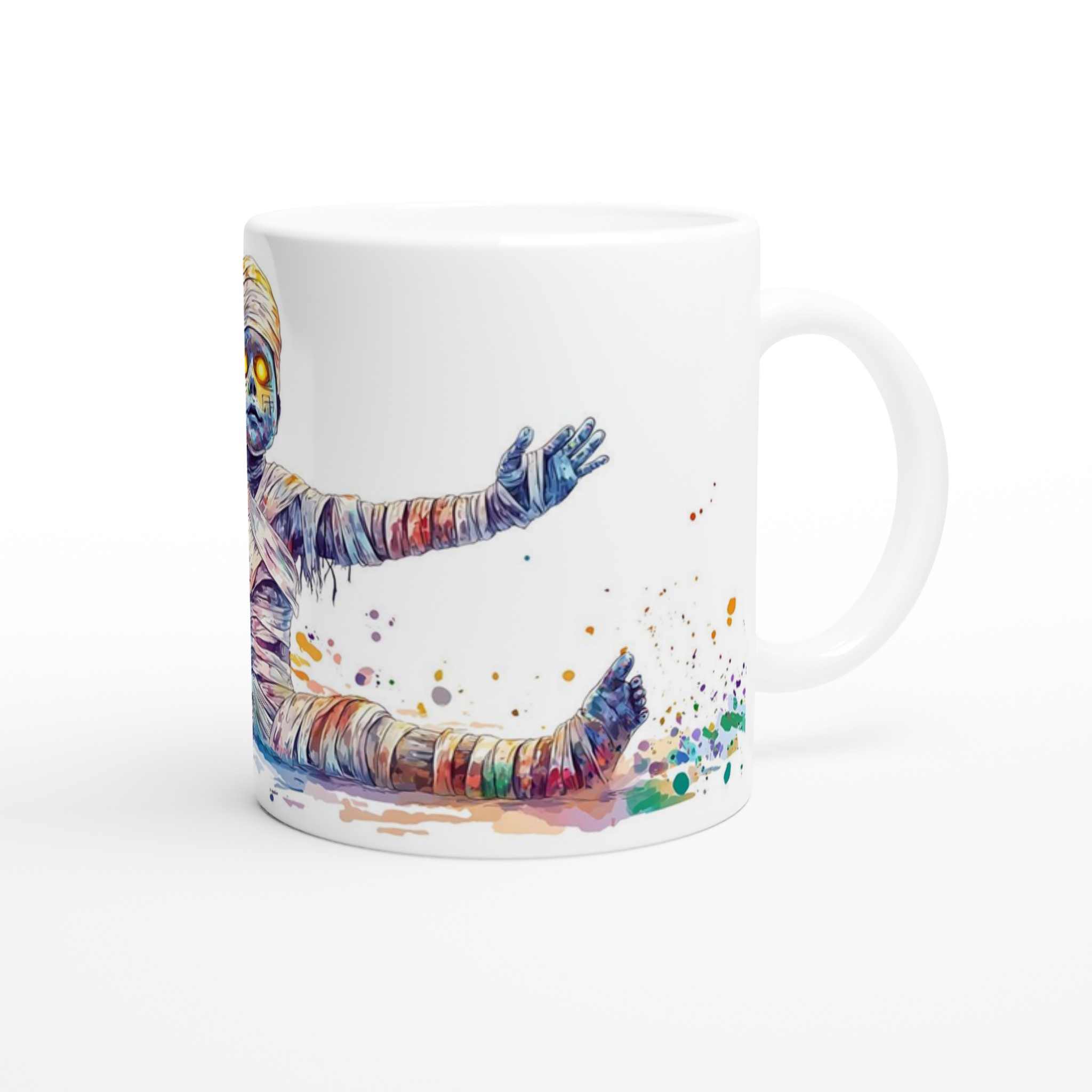 Vibrant Rainbow Mummy 11oz Ceramic Mug – Whimsical Watercolor Splash Design in Your Choice of 7 Colors