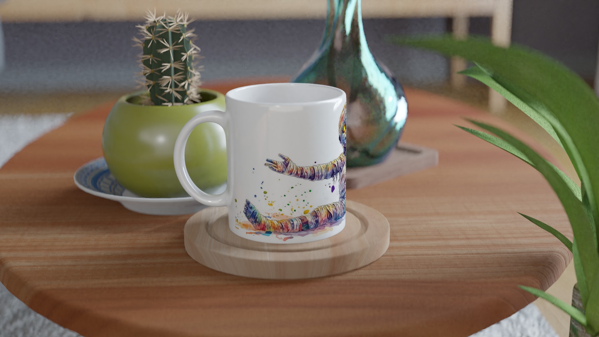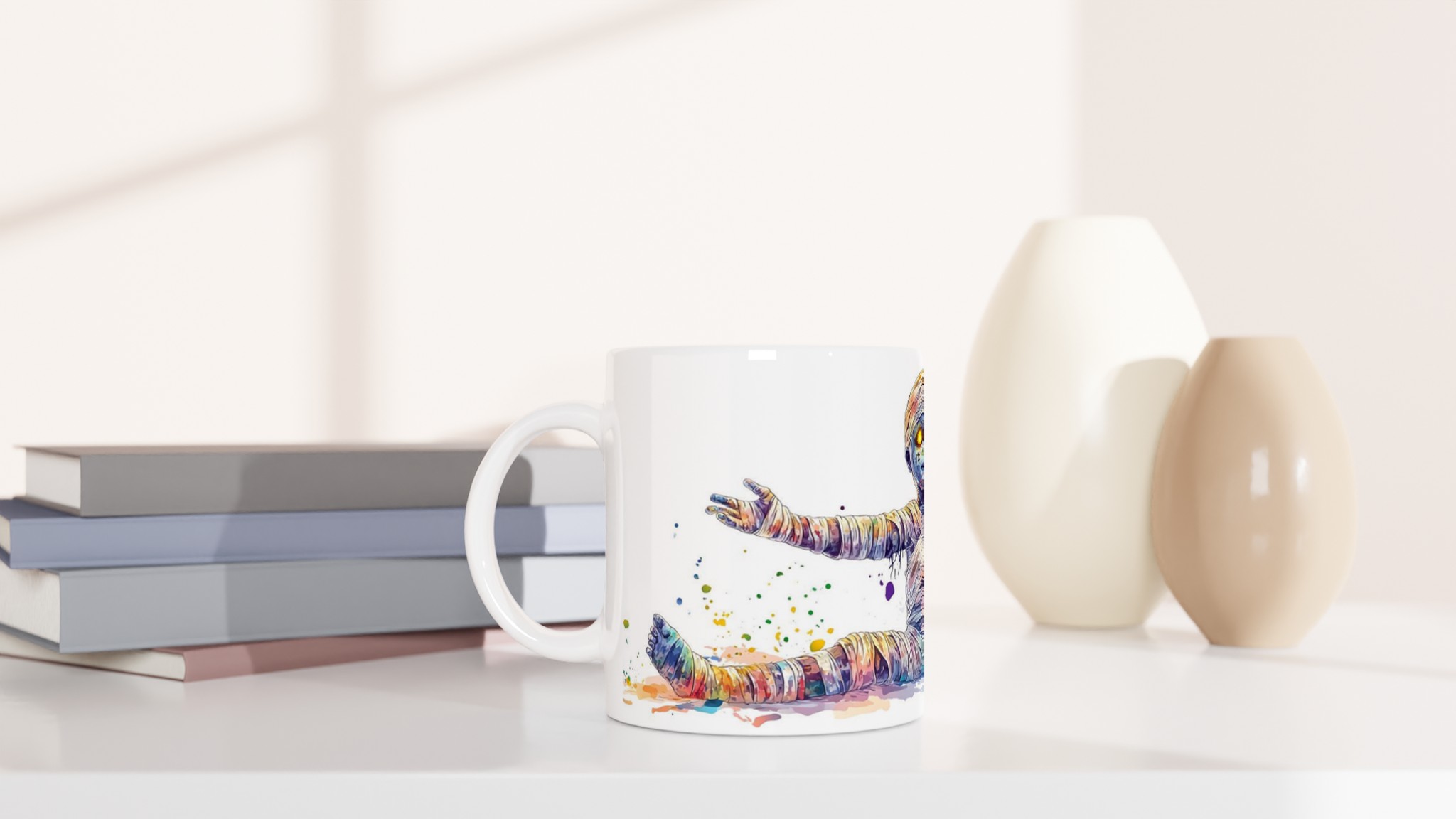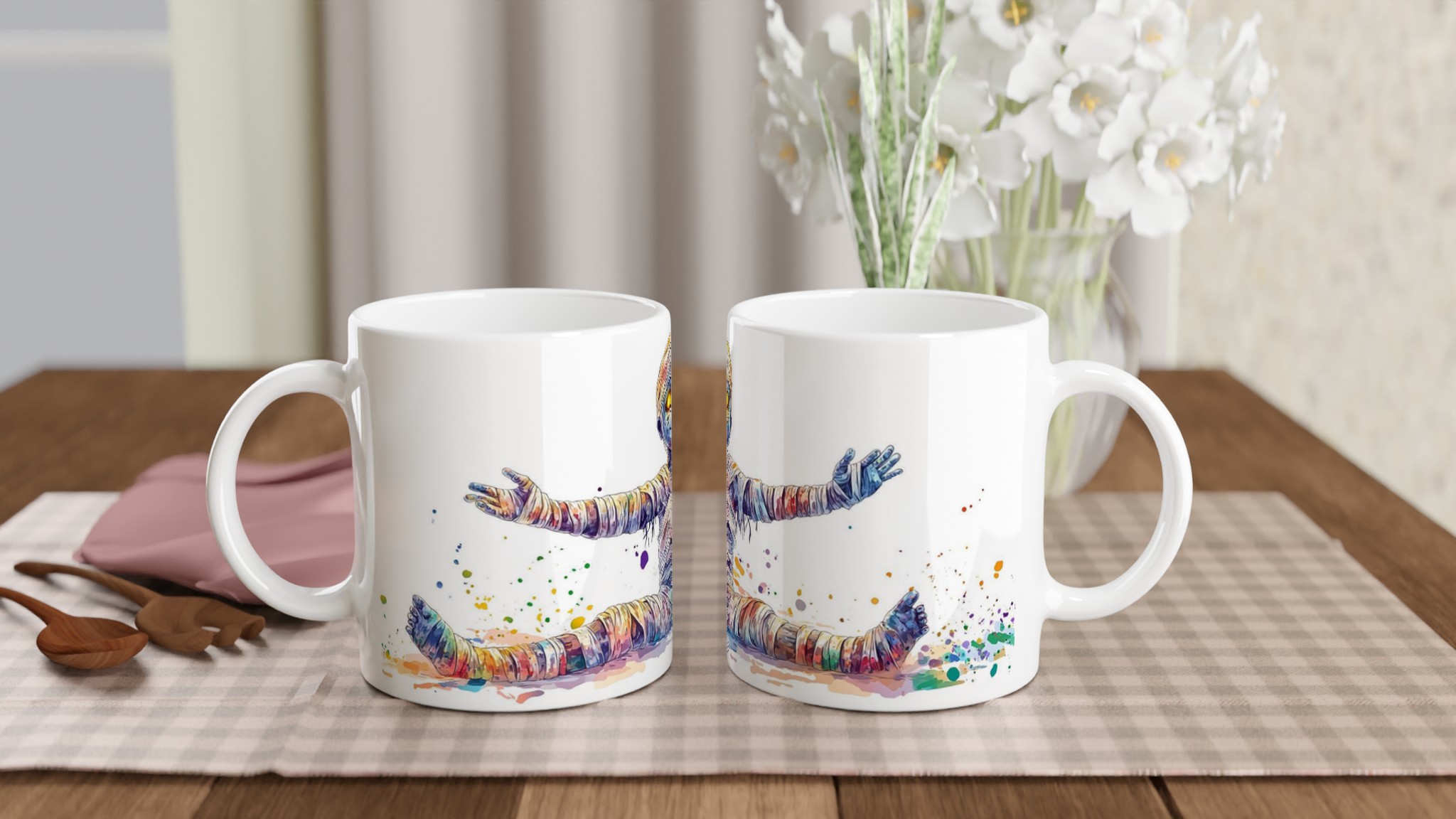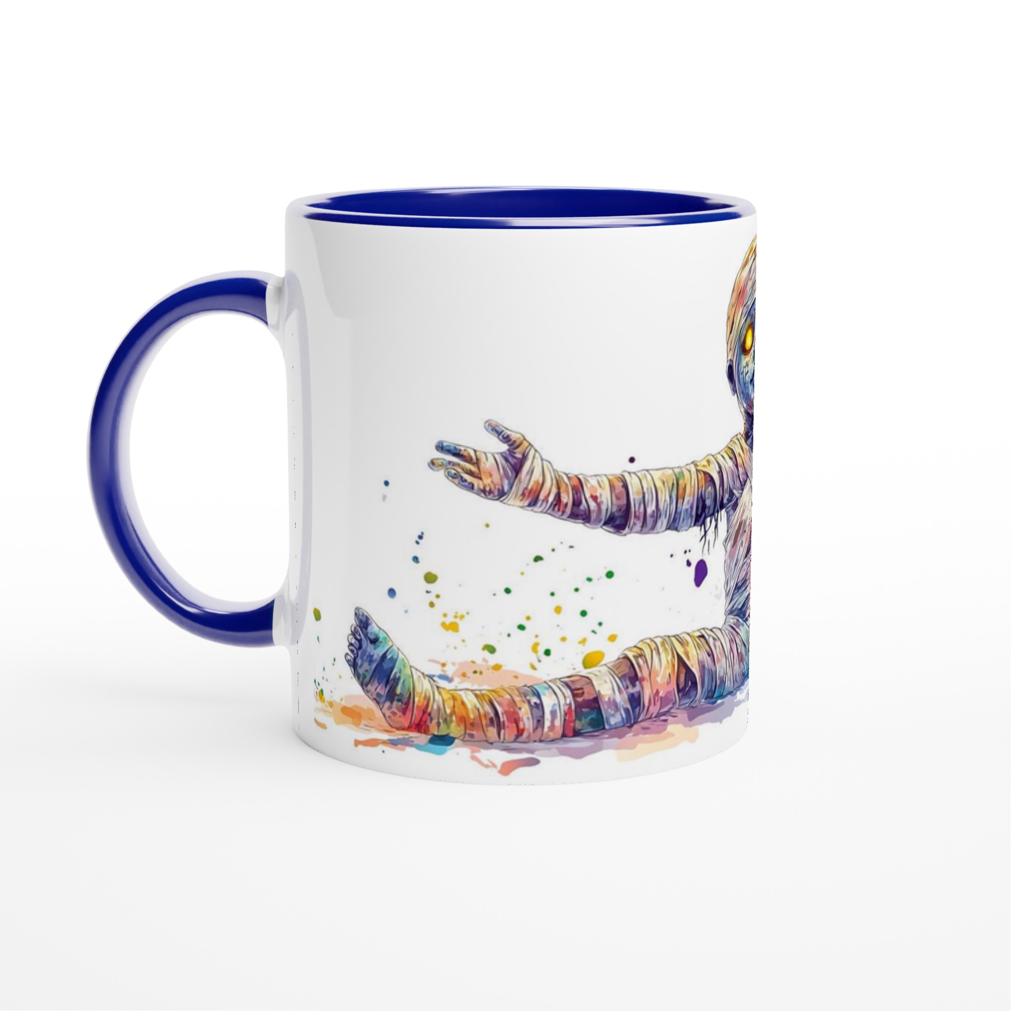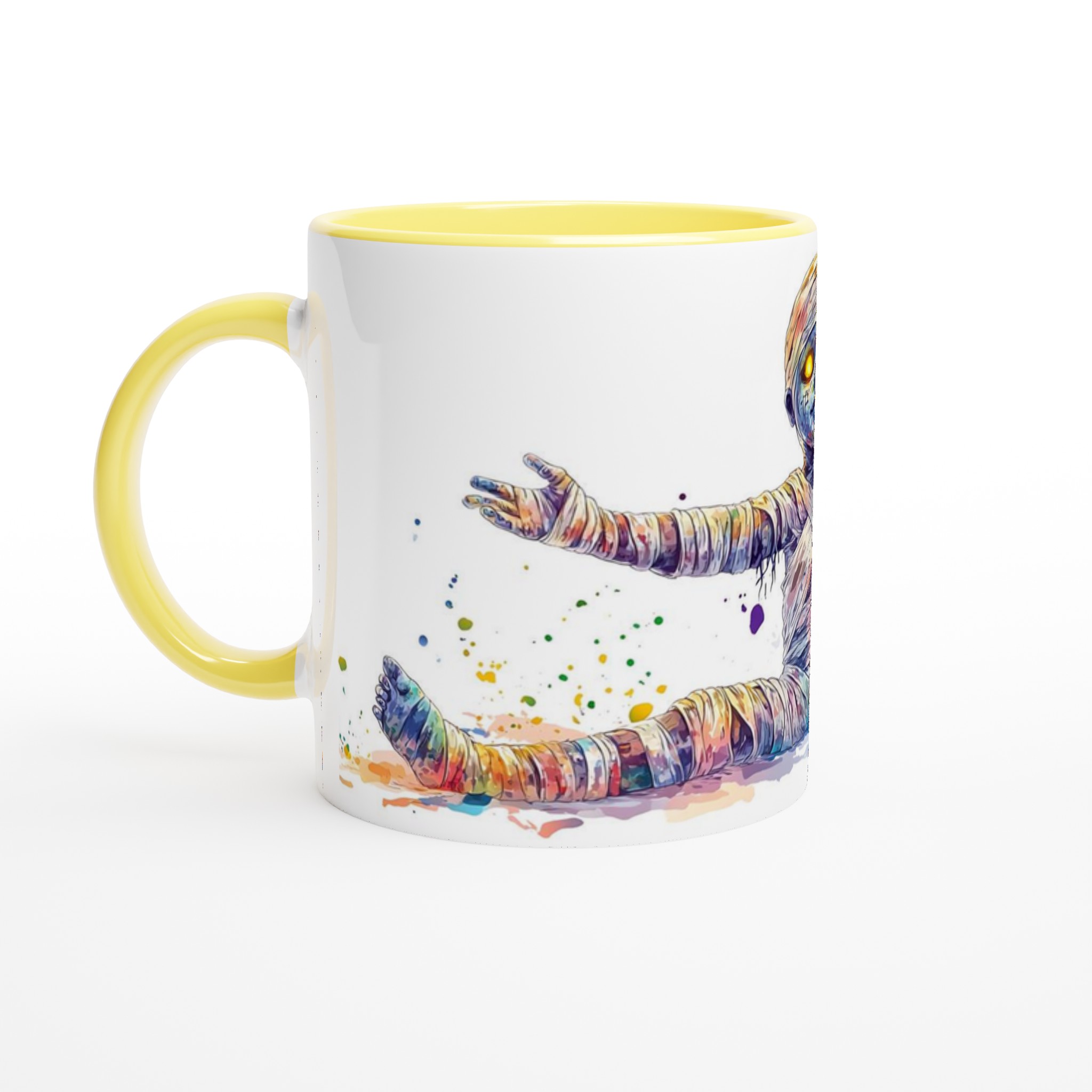 Vibrant Rainbow Mummy 11oz Ceramic Mug – Whimsical Watercolor Splash Design in Your Choice of 7 Colors