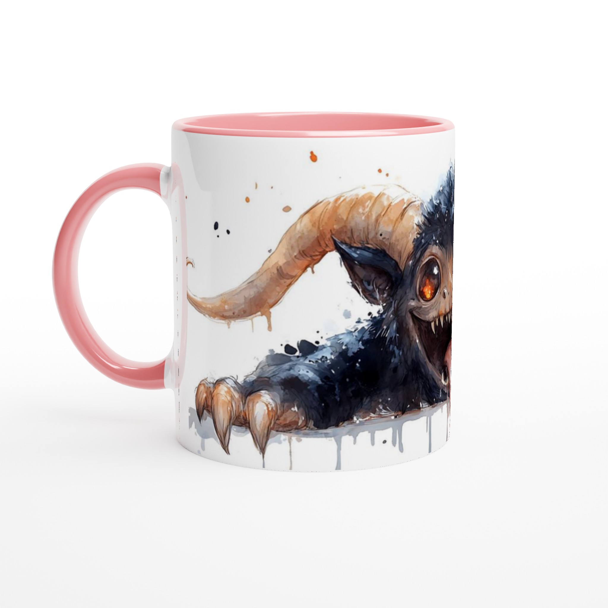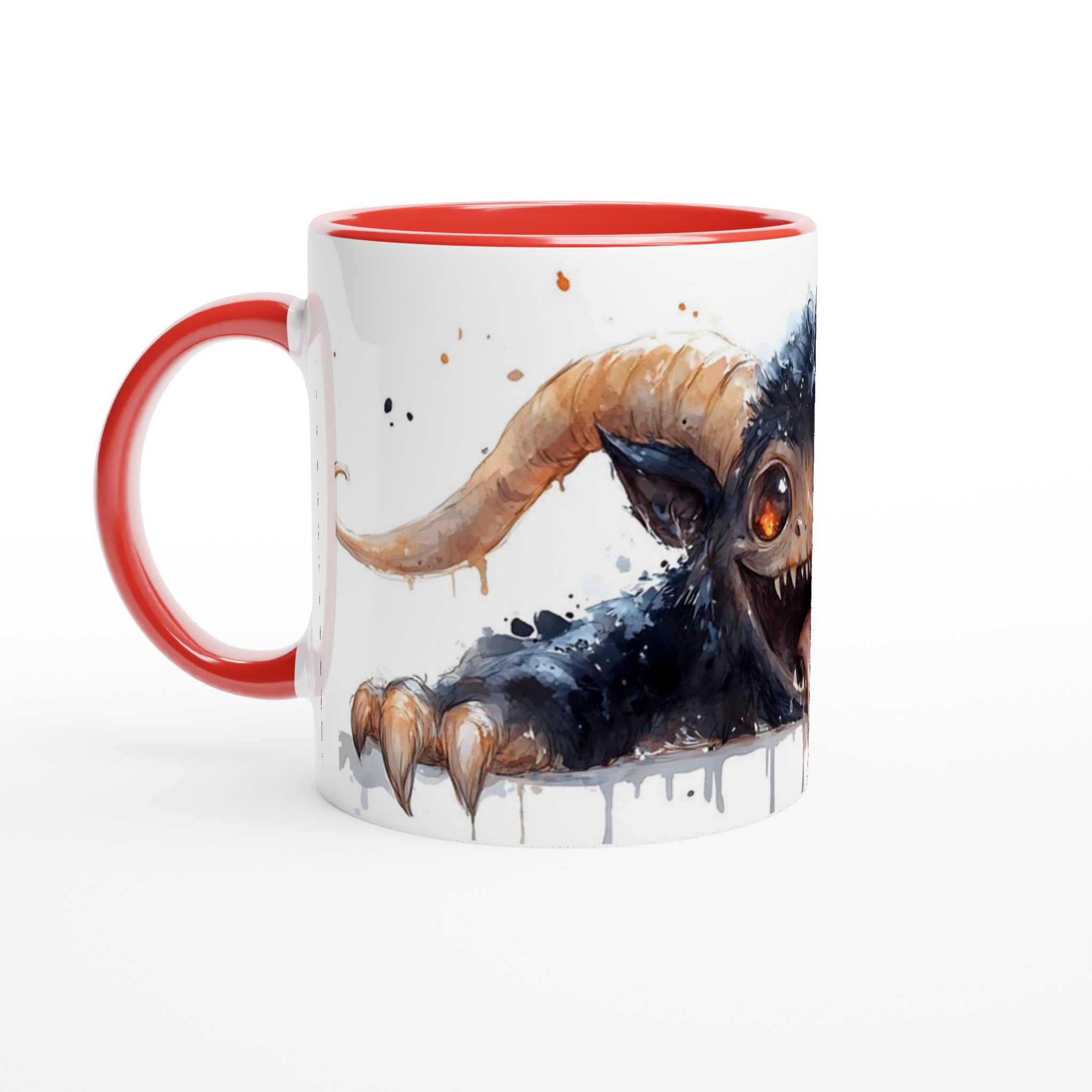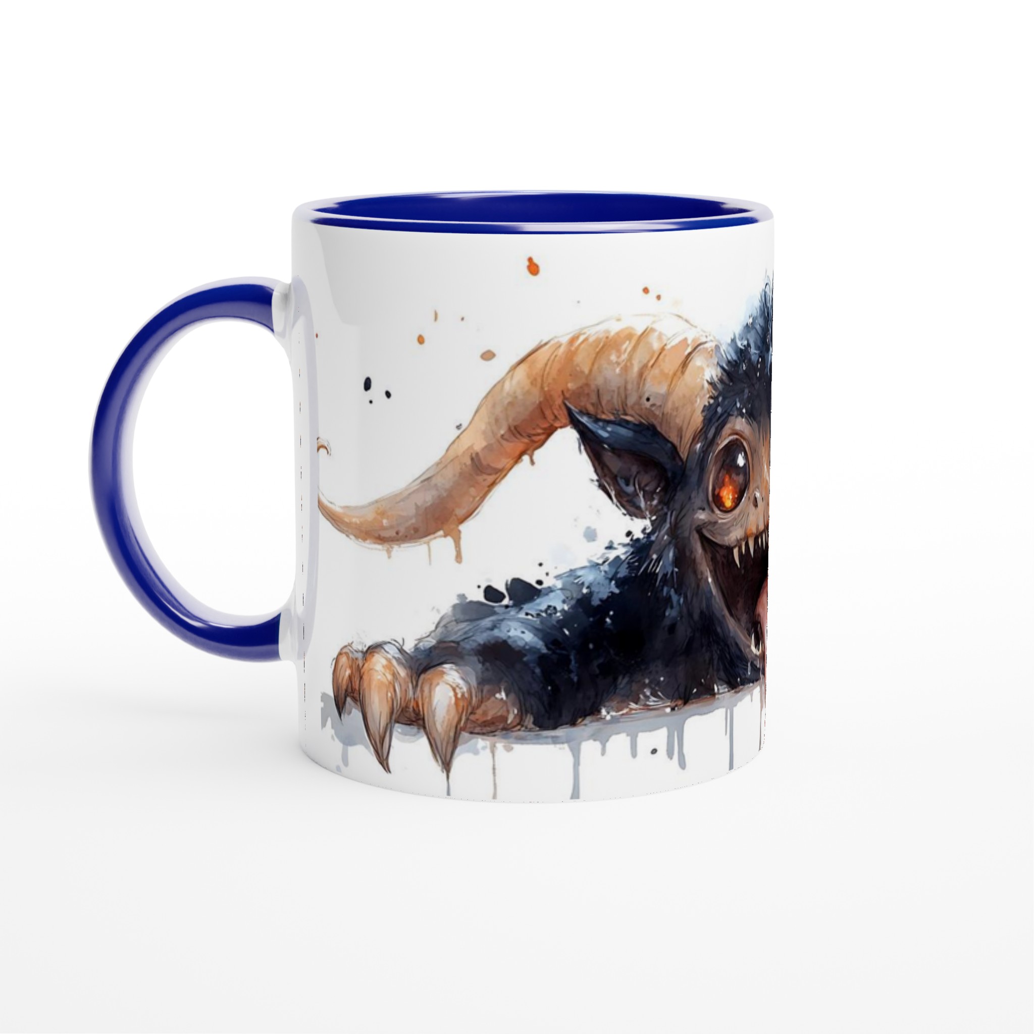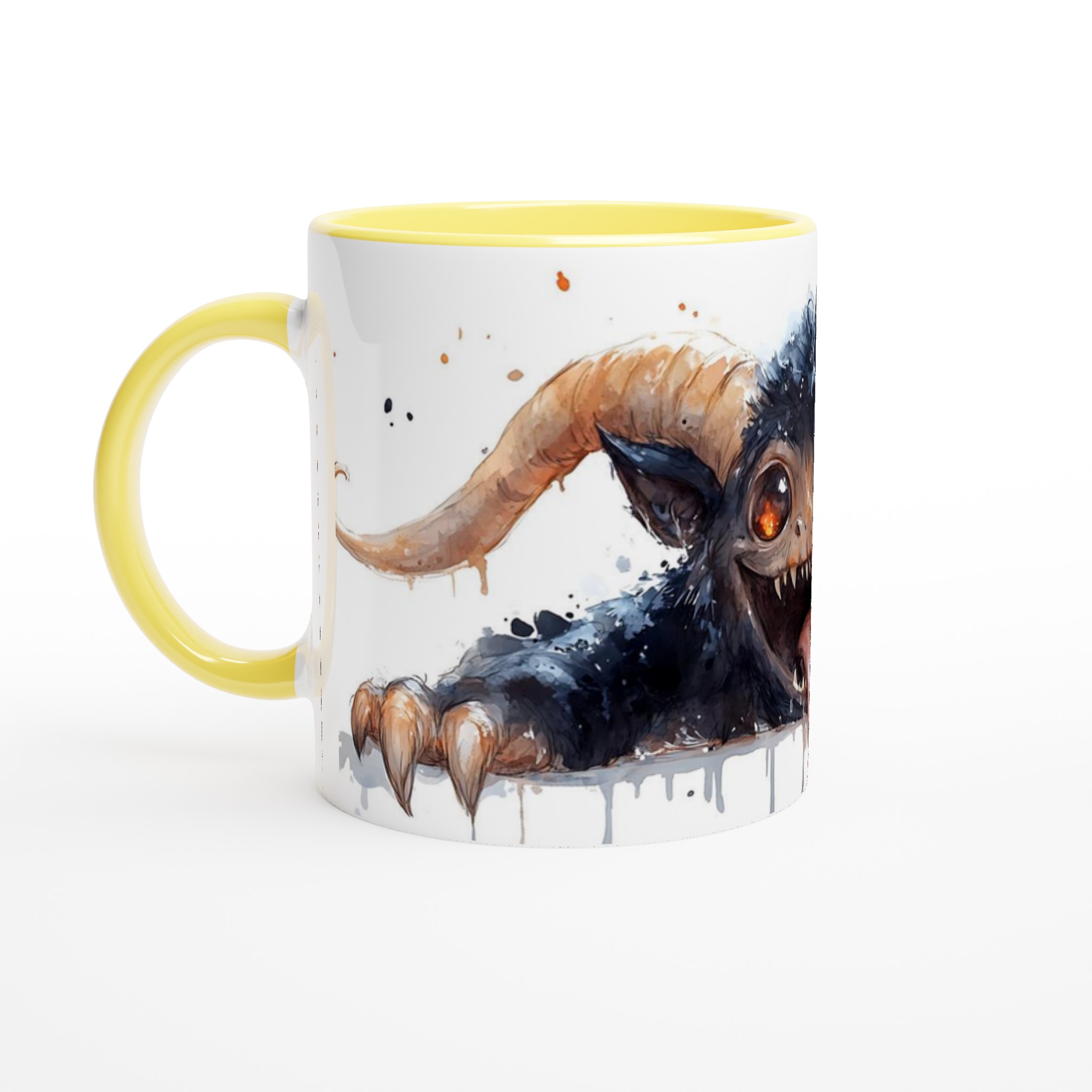 Charming Horned Monster 11oz Ceramic Mug – Whimsical Watercolor Creature Coffee Cup in Your Choice of Seven Vibrant Hues