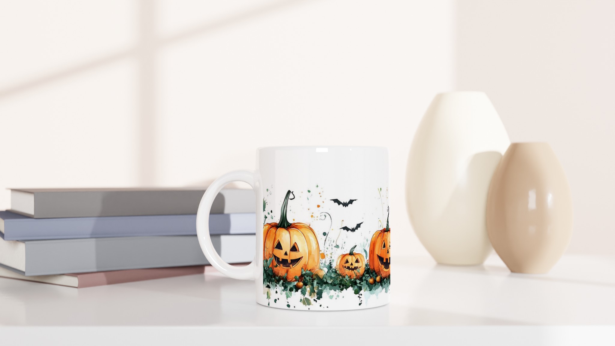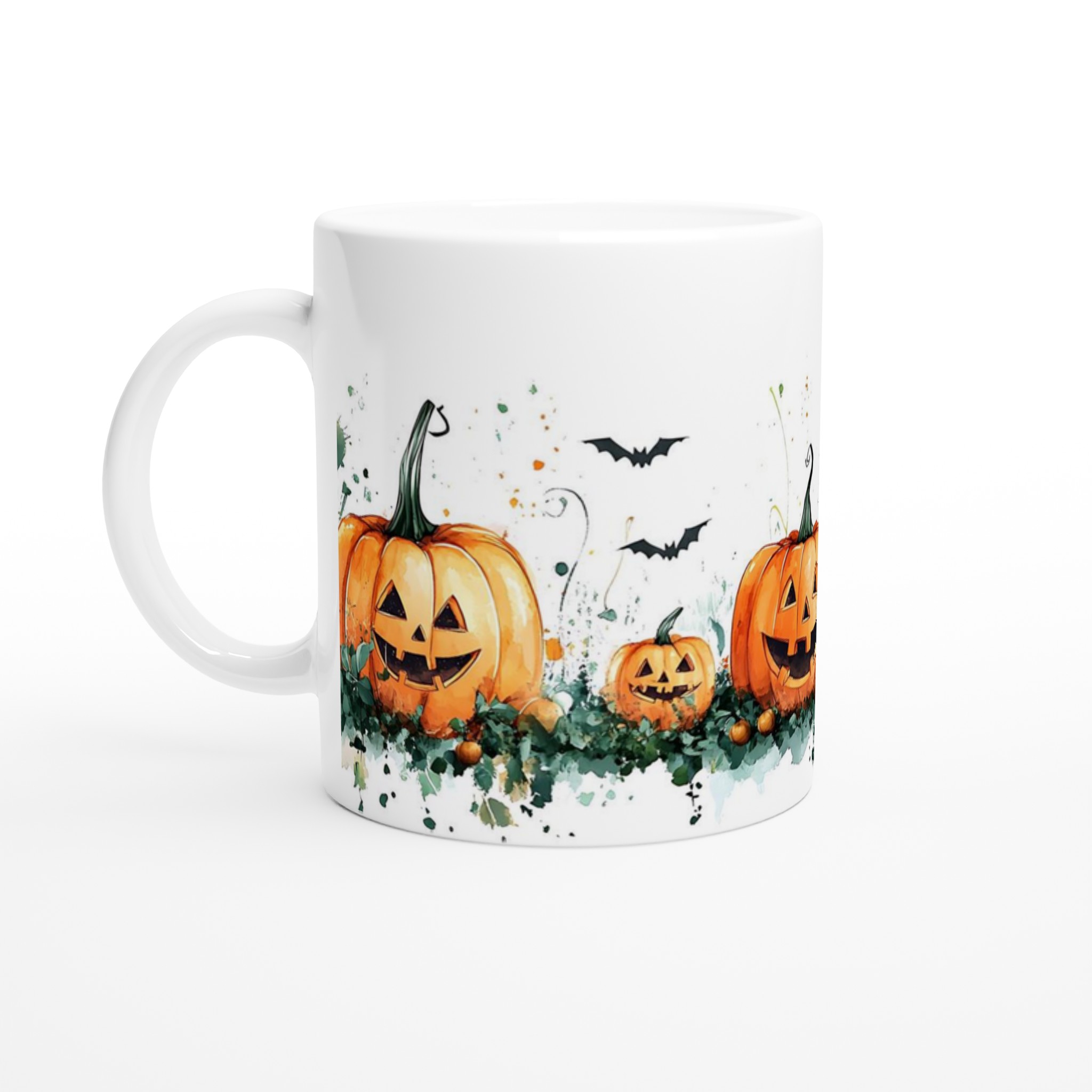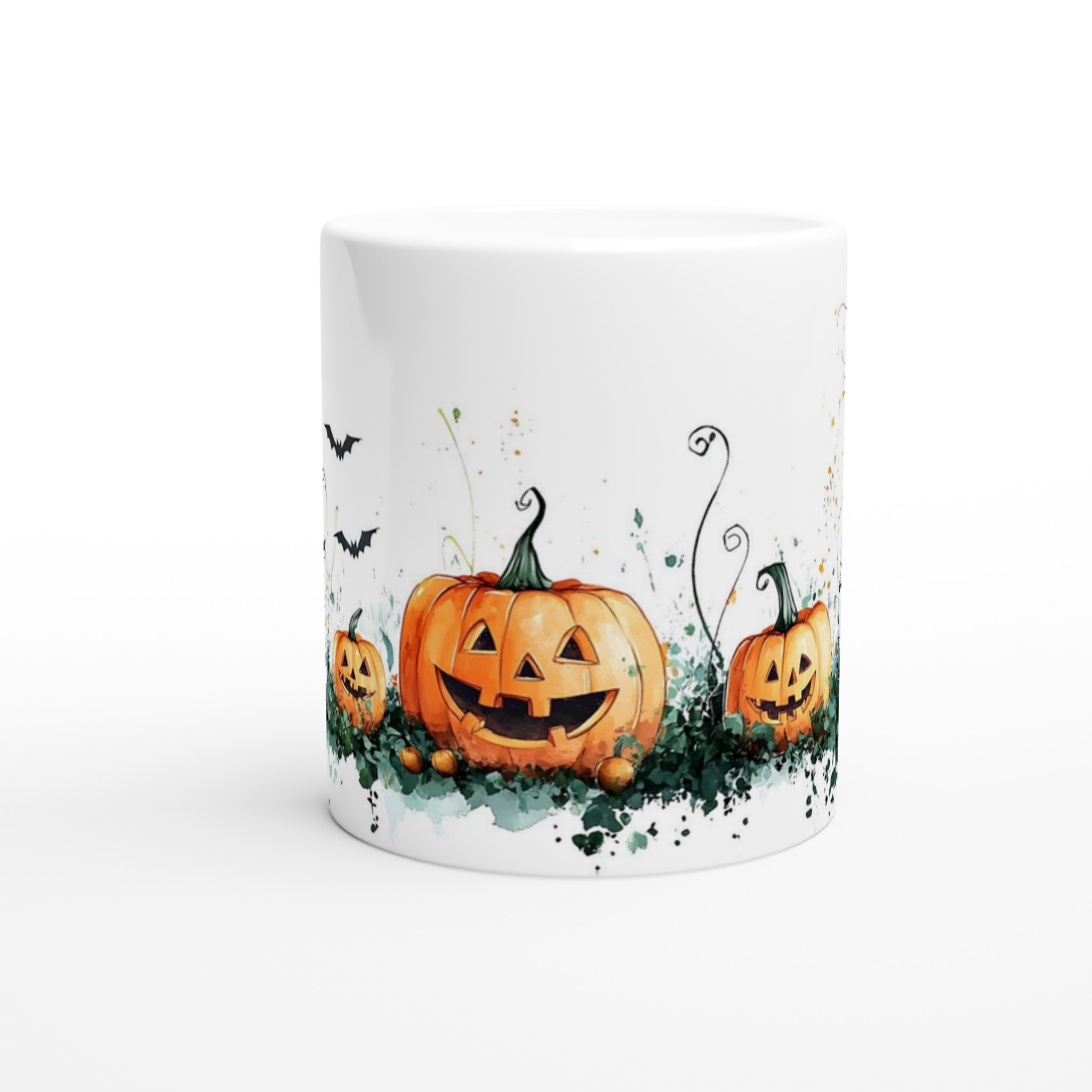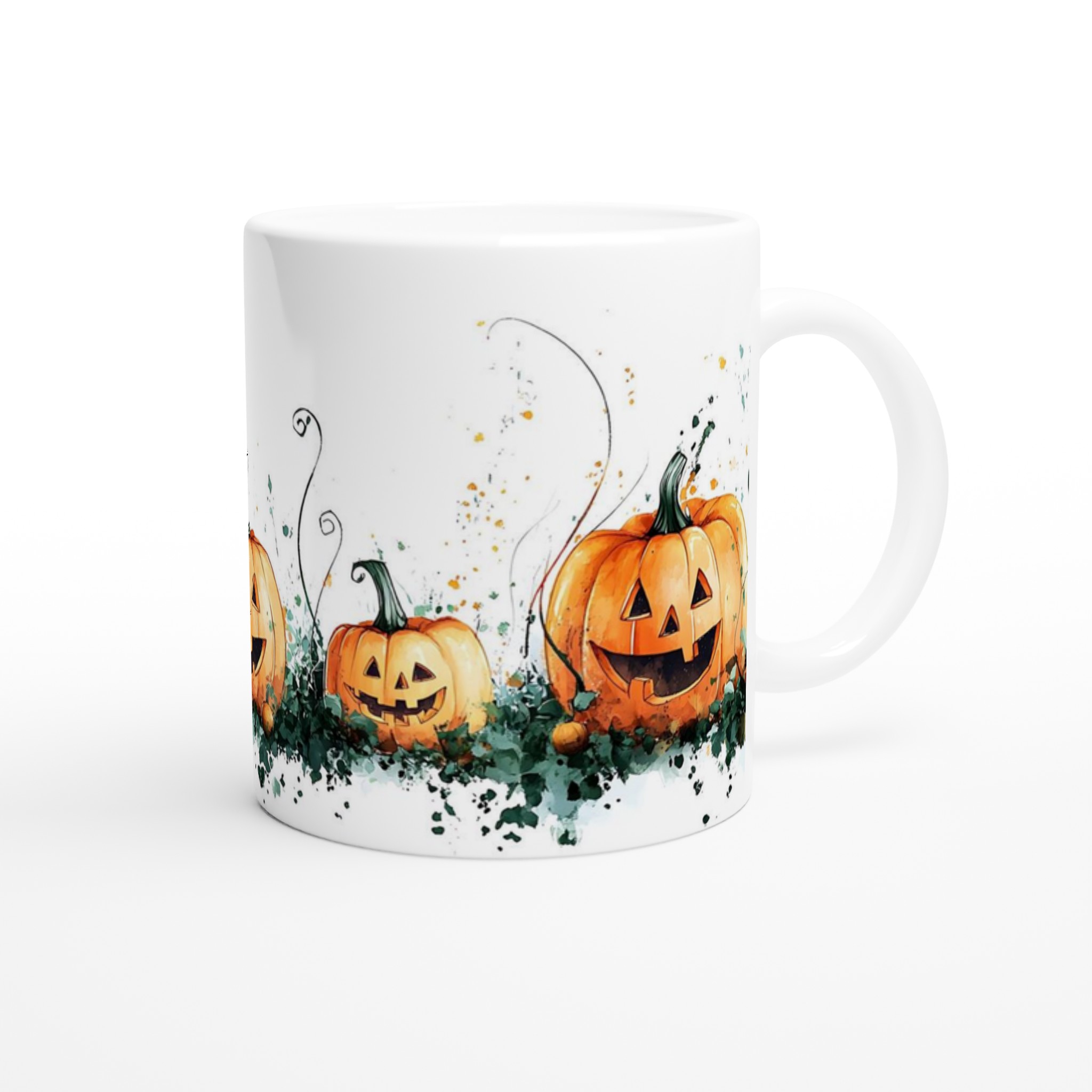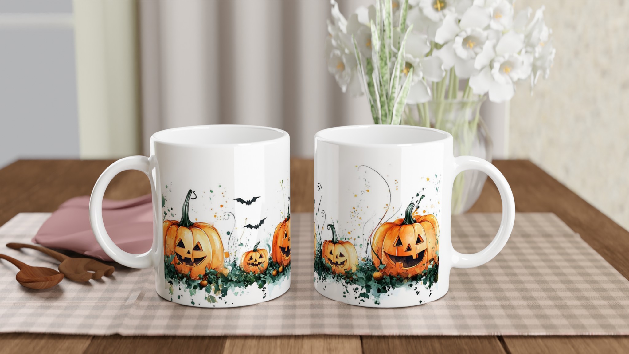 Spooky Watercolor Jack-o’-Lantern 11oz Ceramic Mug – Perfect for Halloween Sips!