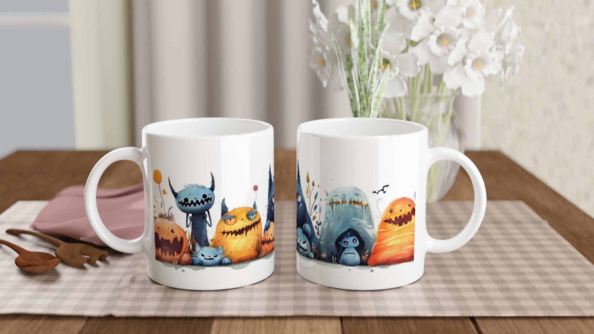Cute Spooky Monsters 11oz Ceramic Mug – Choose Your Color!