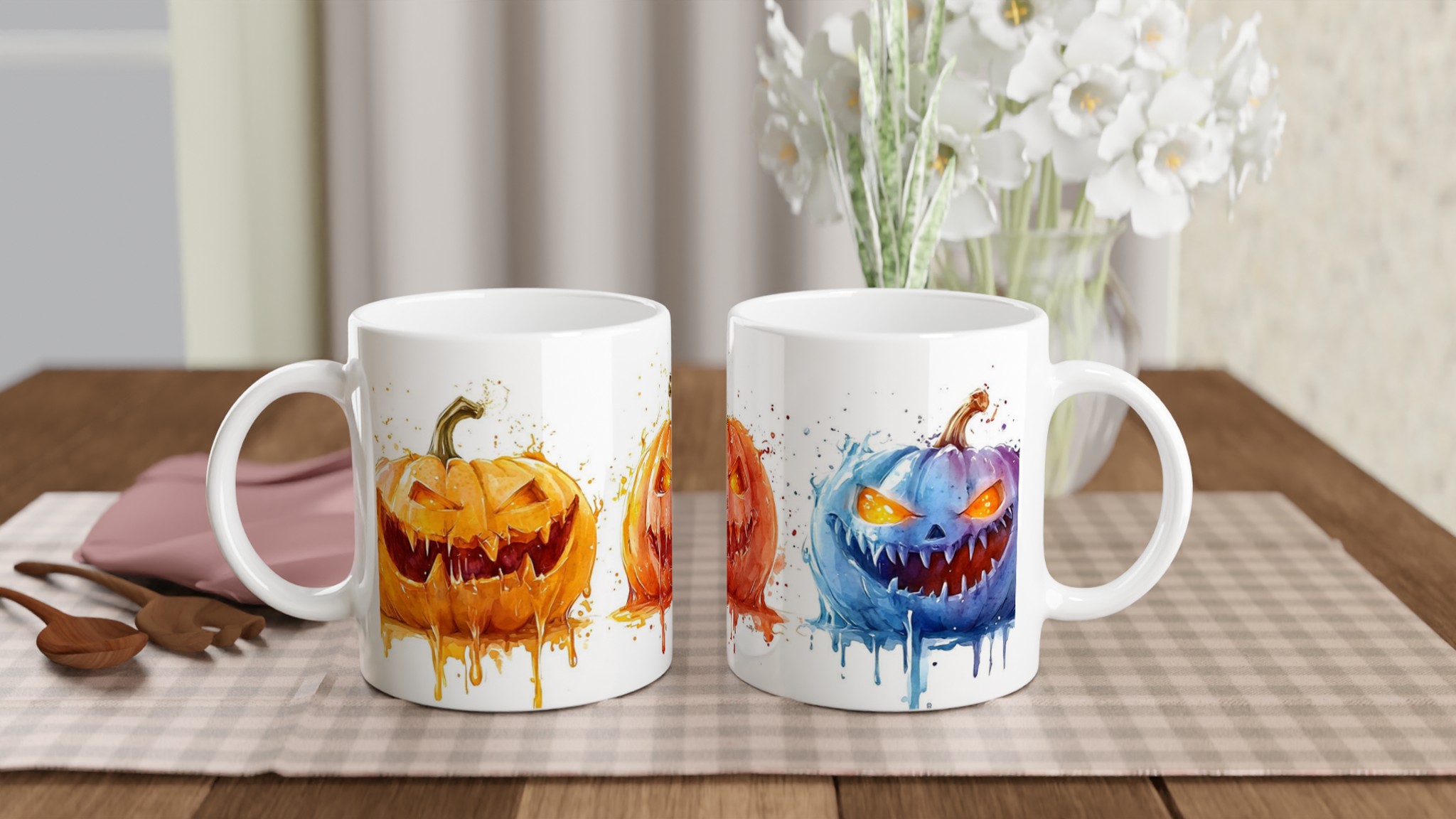 Spooky Watercolor Jack-o’-Lantern 11oz Ceramic Mug – Choose Your Haunting Hue!