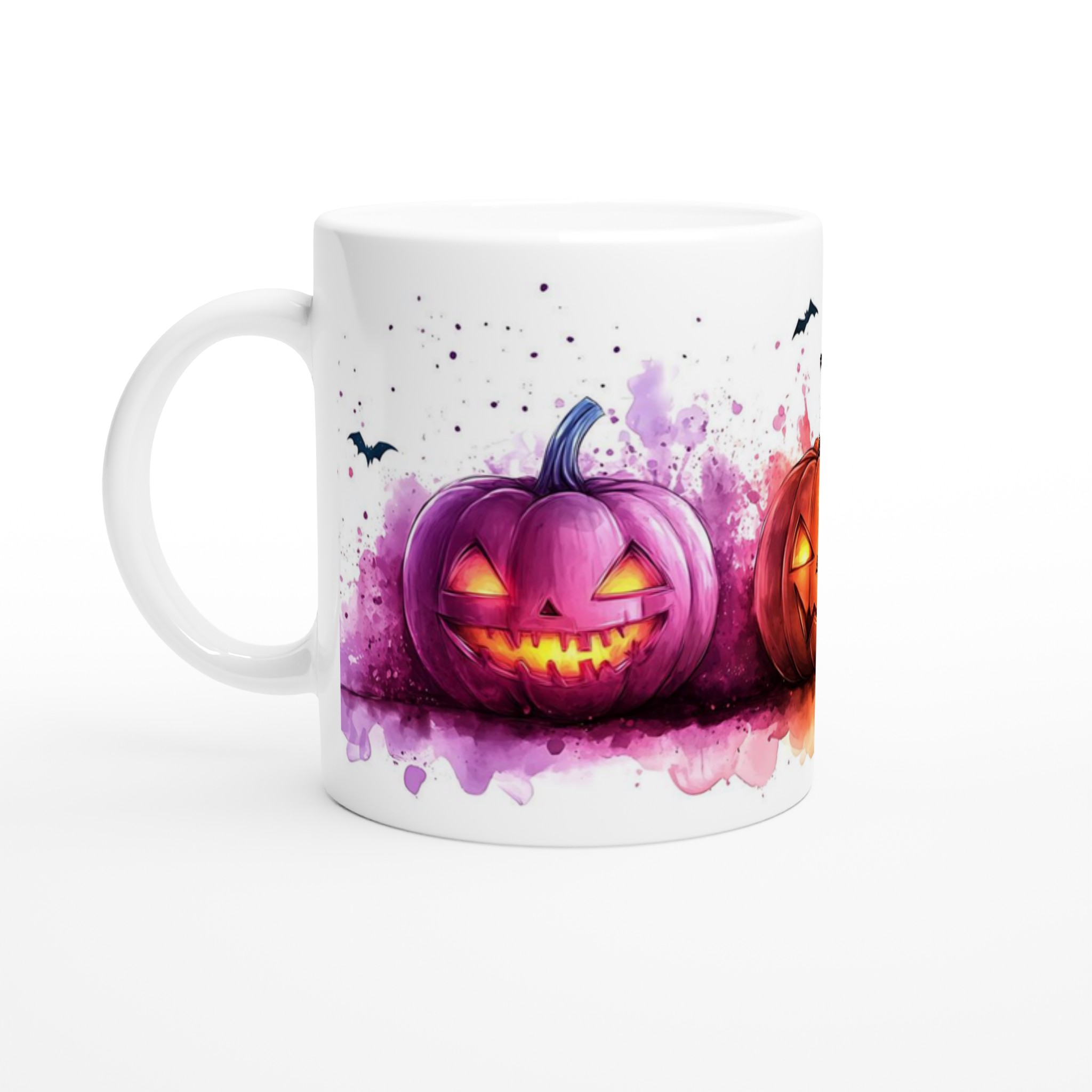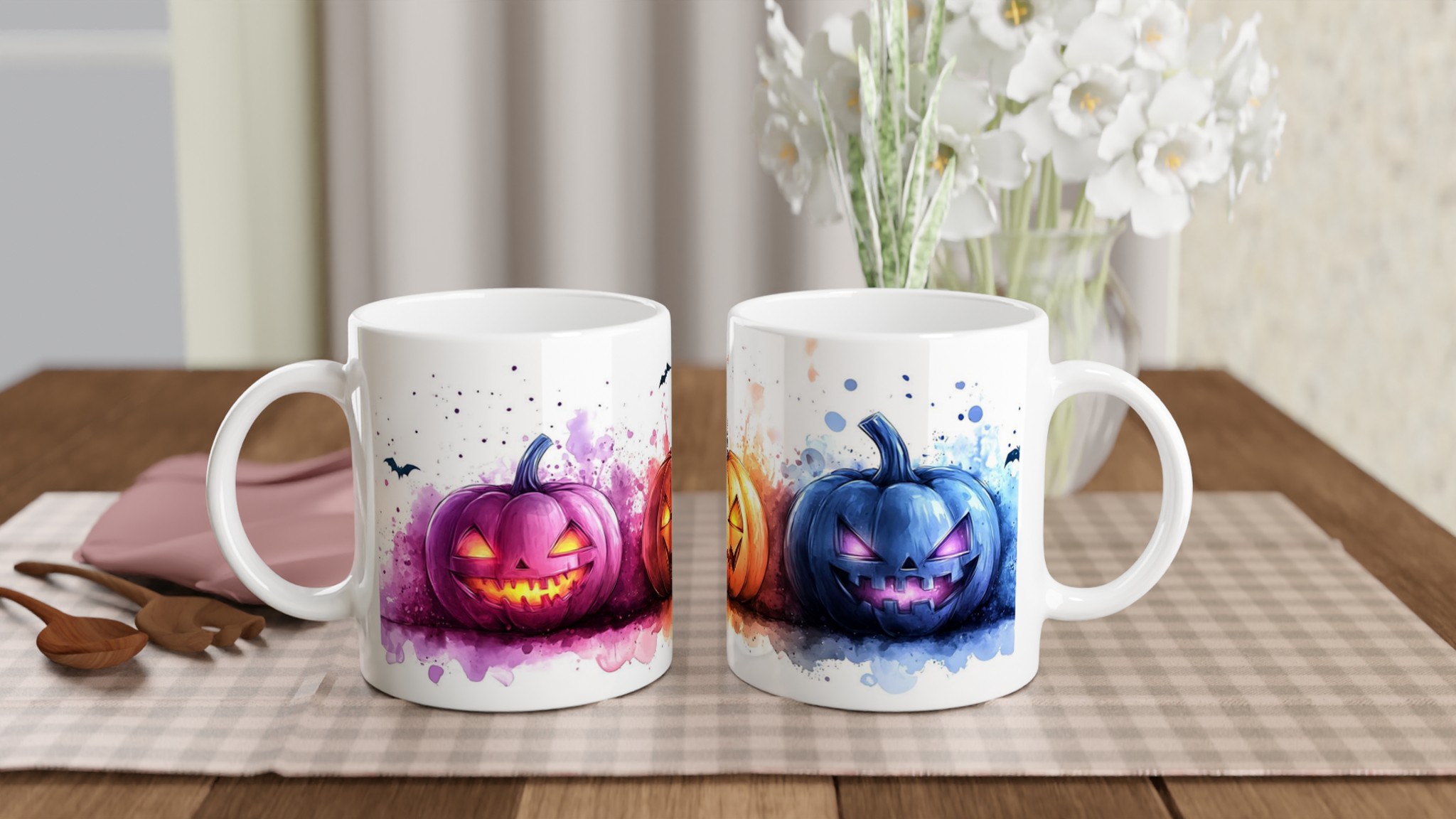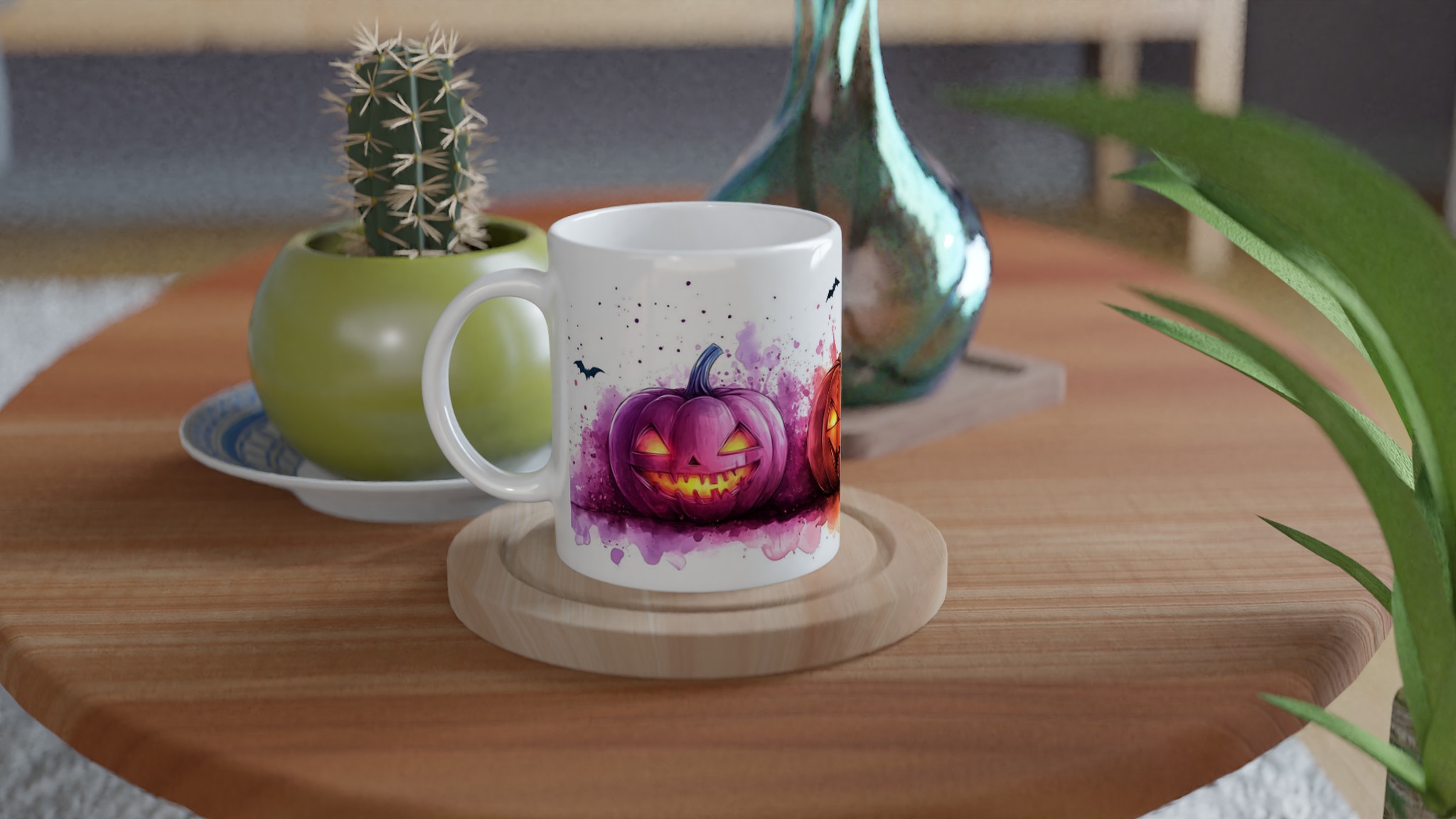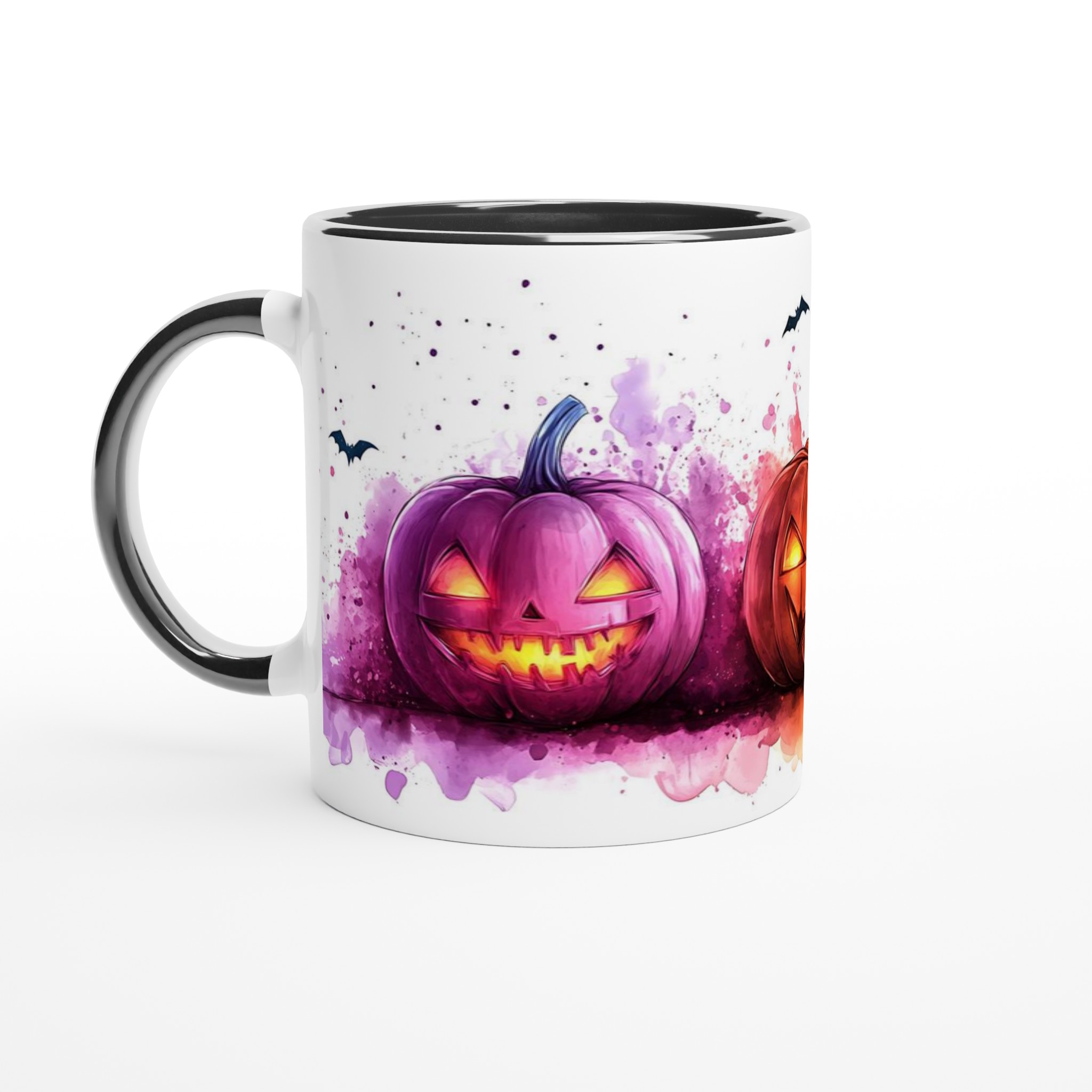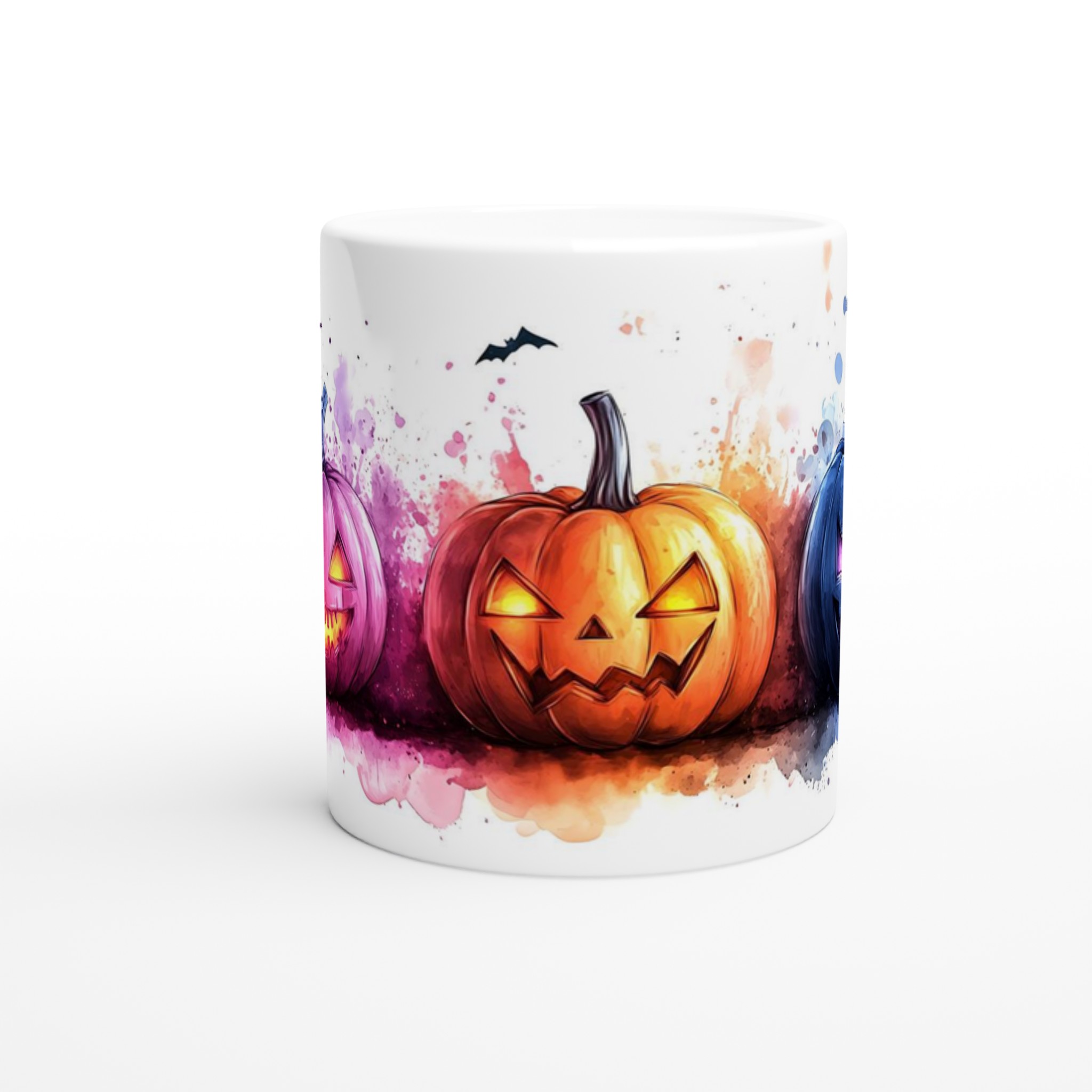 Spooky Watercolor Halloween Pumpkin Trio 11oz Ceramic Mug – Vibrant Seasonal Art