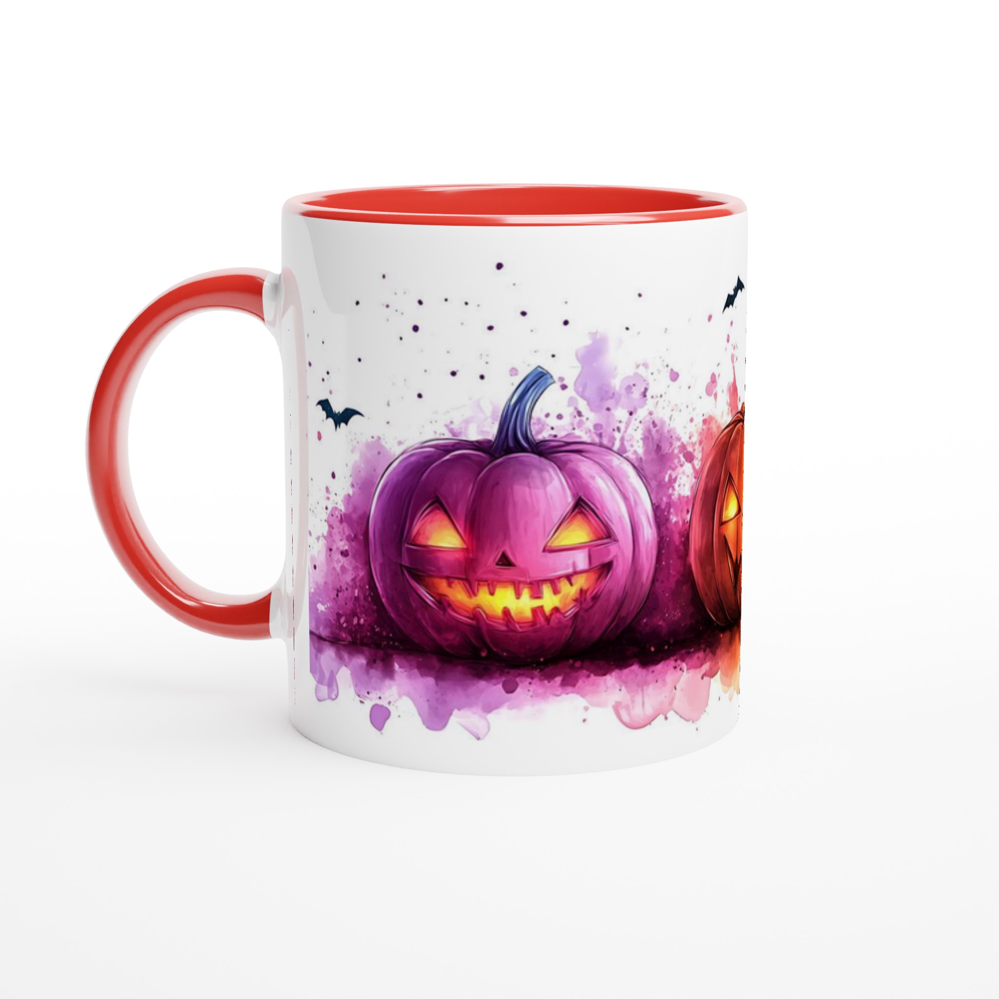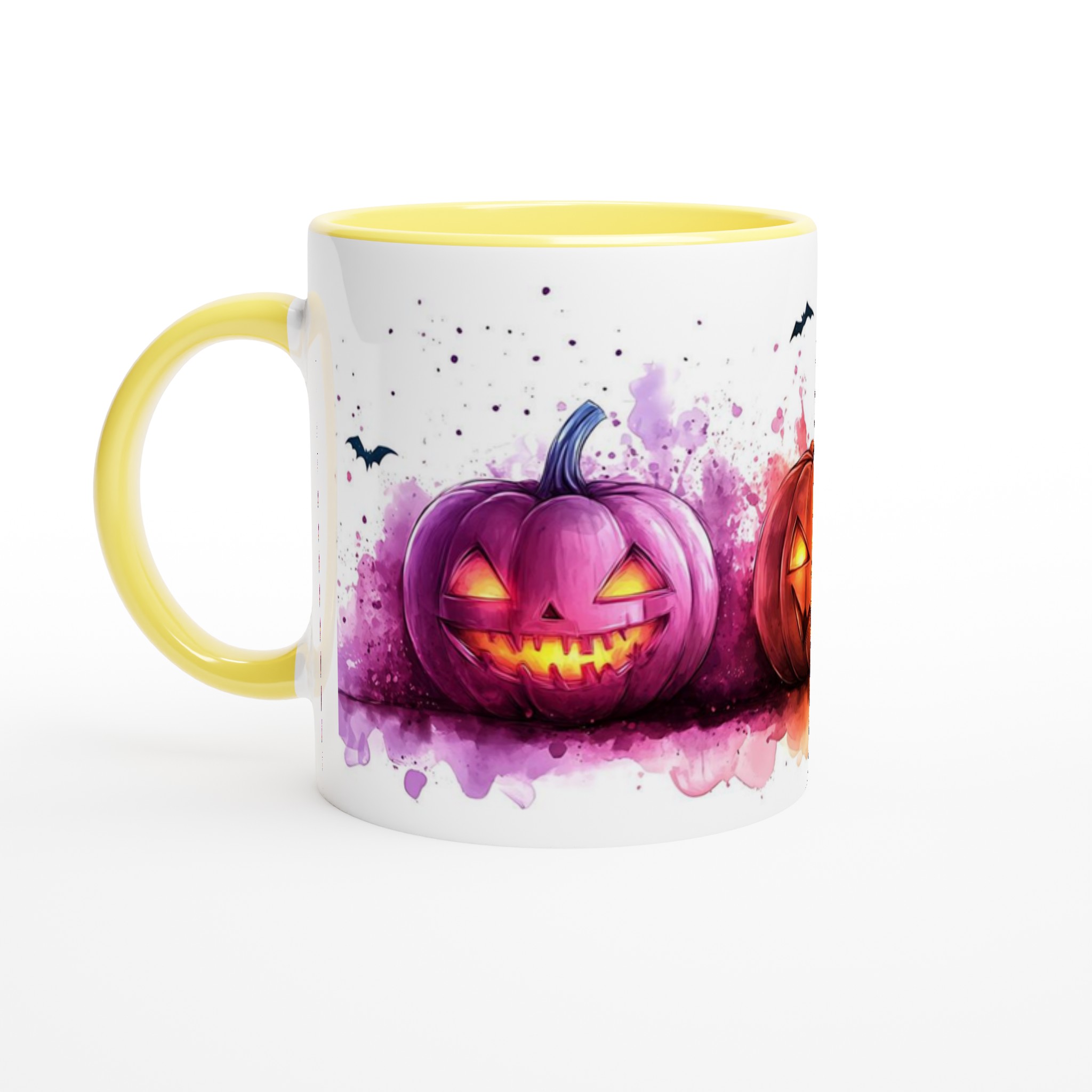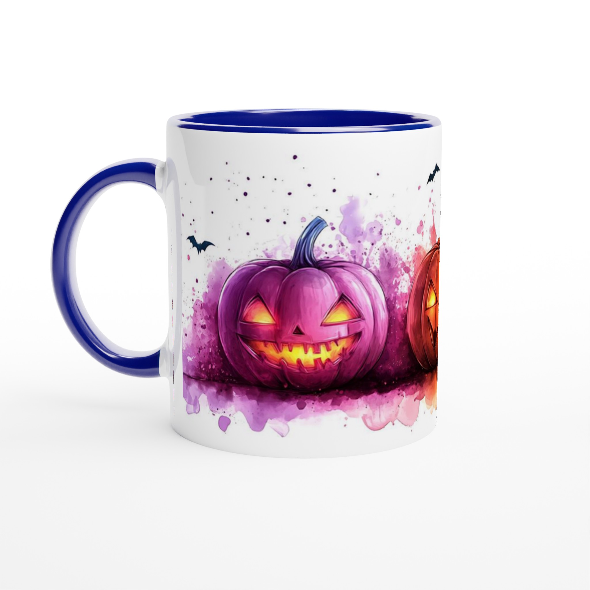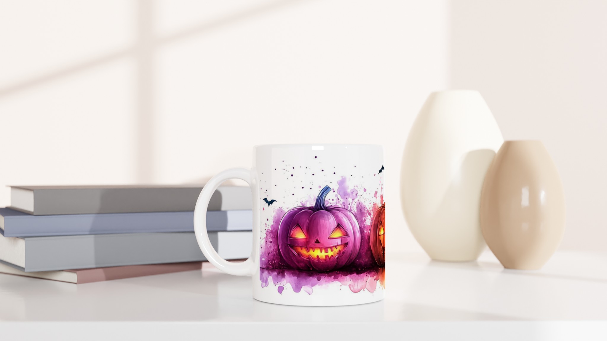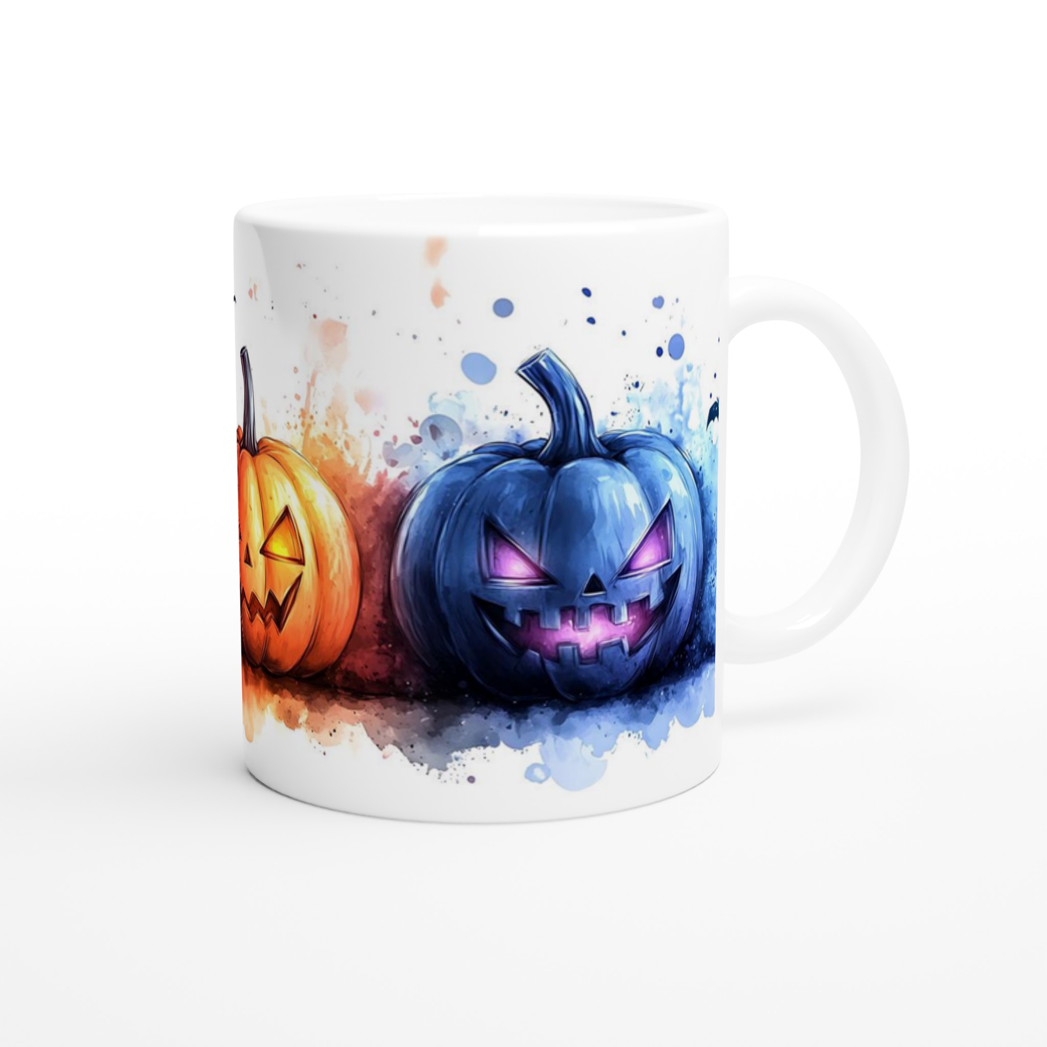 Spooky Watercolor Halloween Pumpkin Trio 11oz Ceramic Mug – Vibrant Seasonal Art