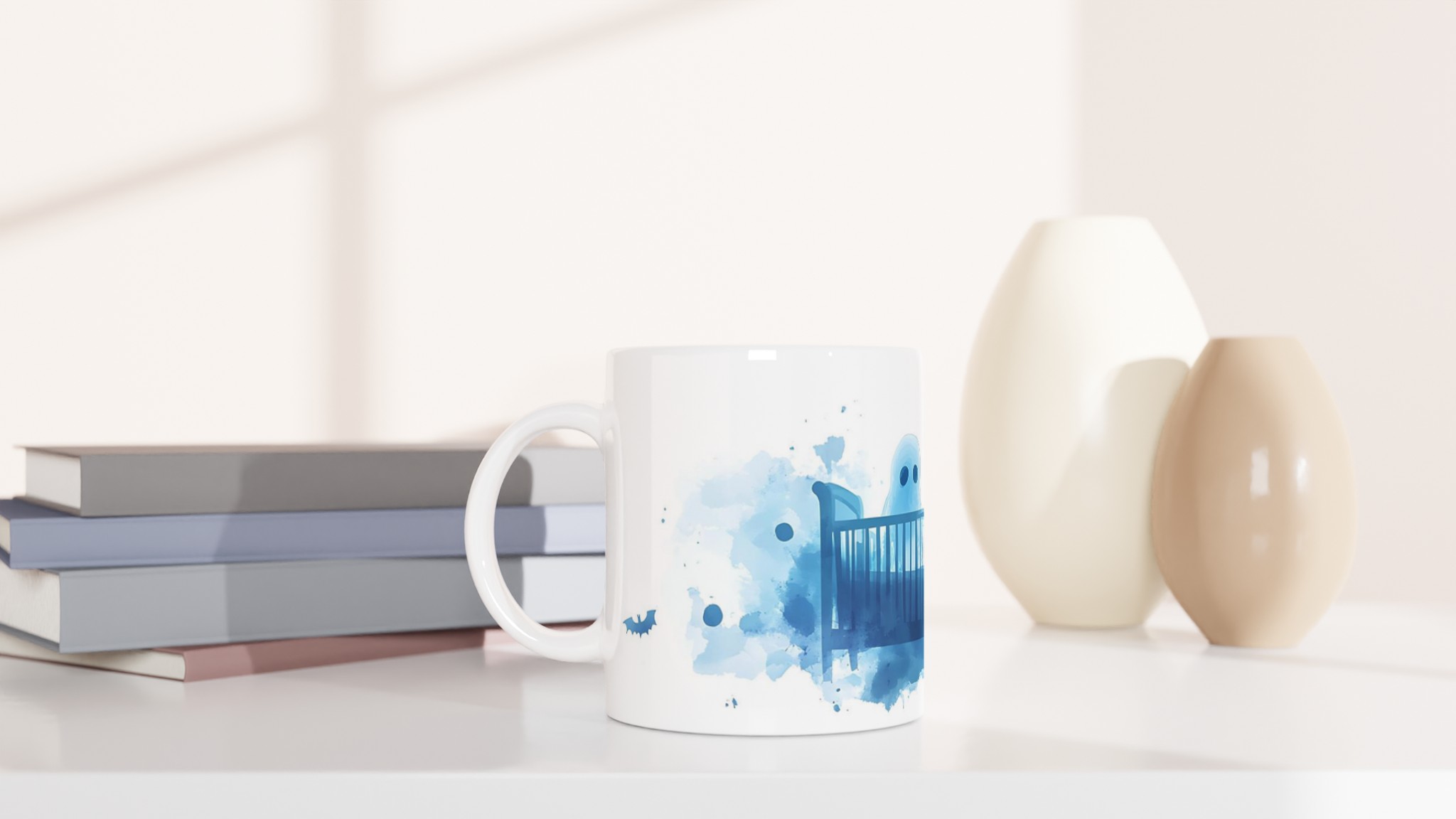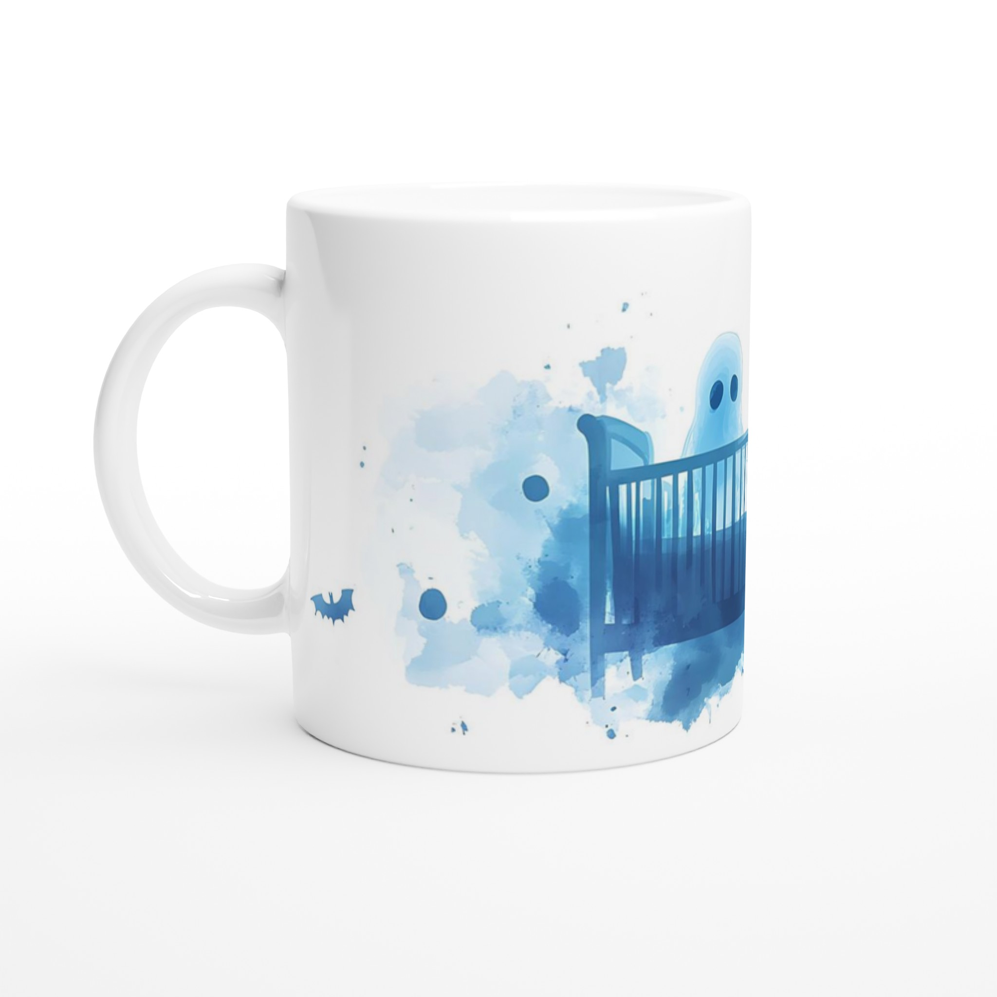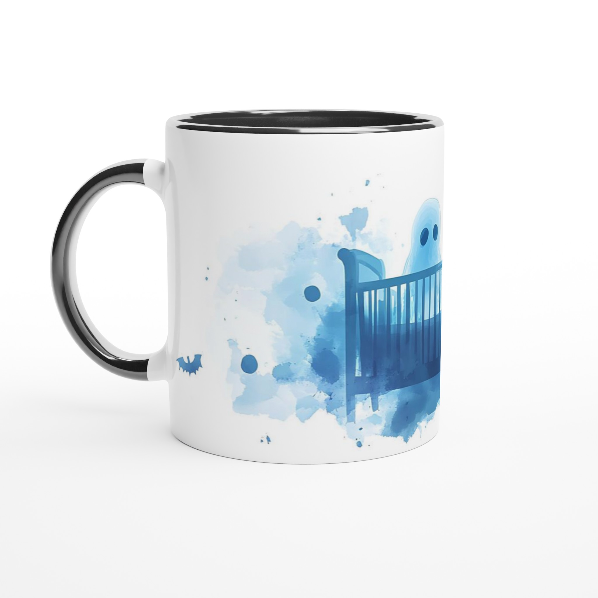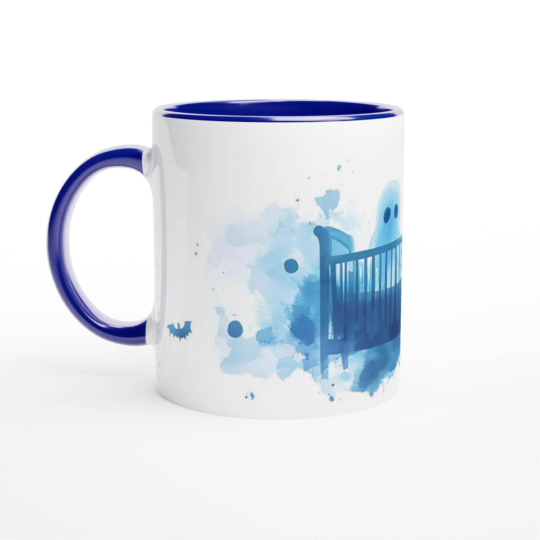Little Spookers Blue Watercolor Ceramic Mug – Adorable Ghostly Baby Crib Design, Available in 7 Vibrant Colors