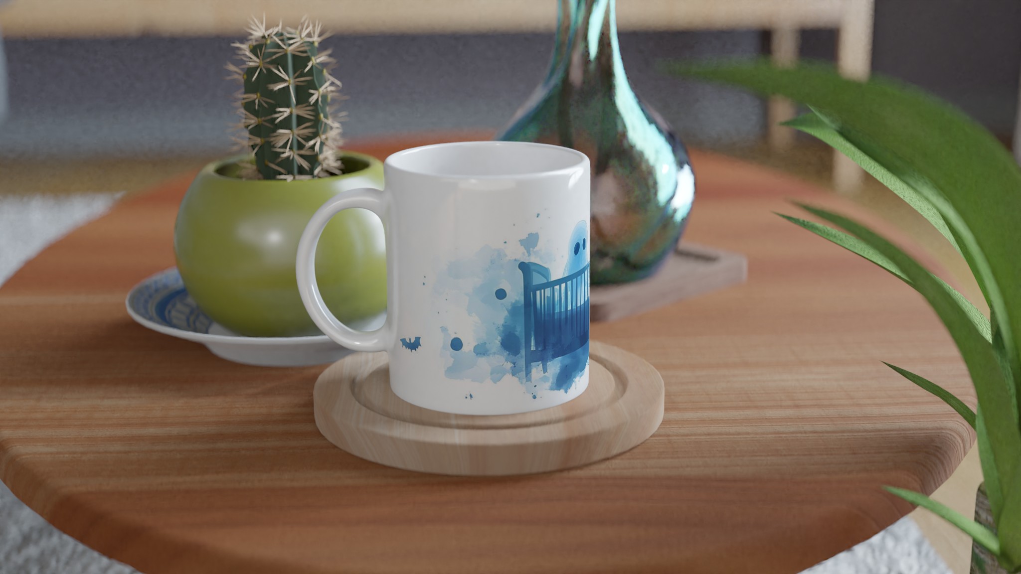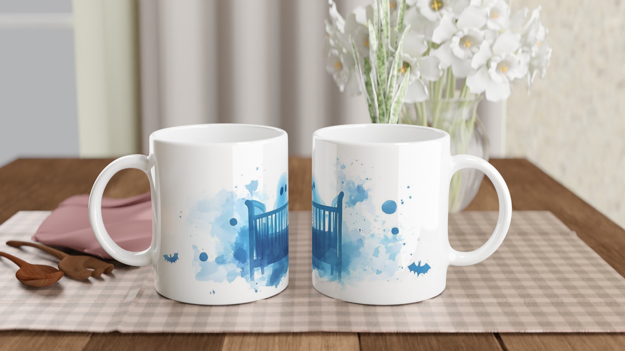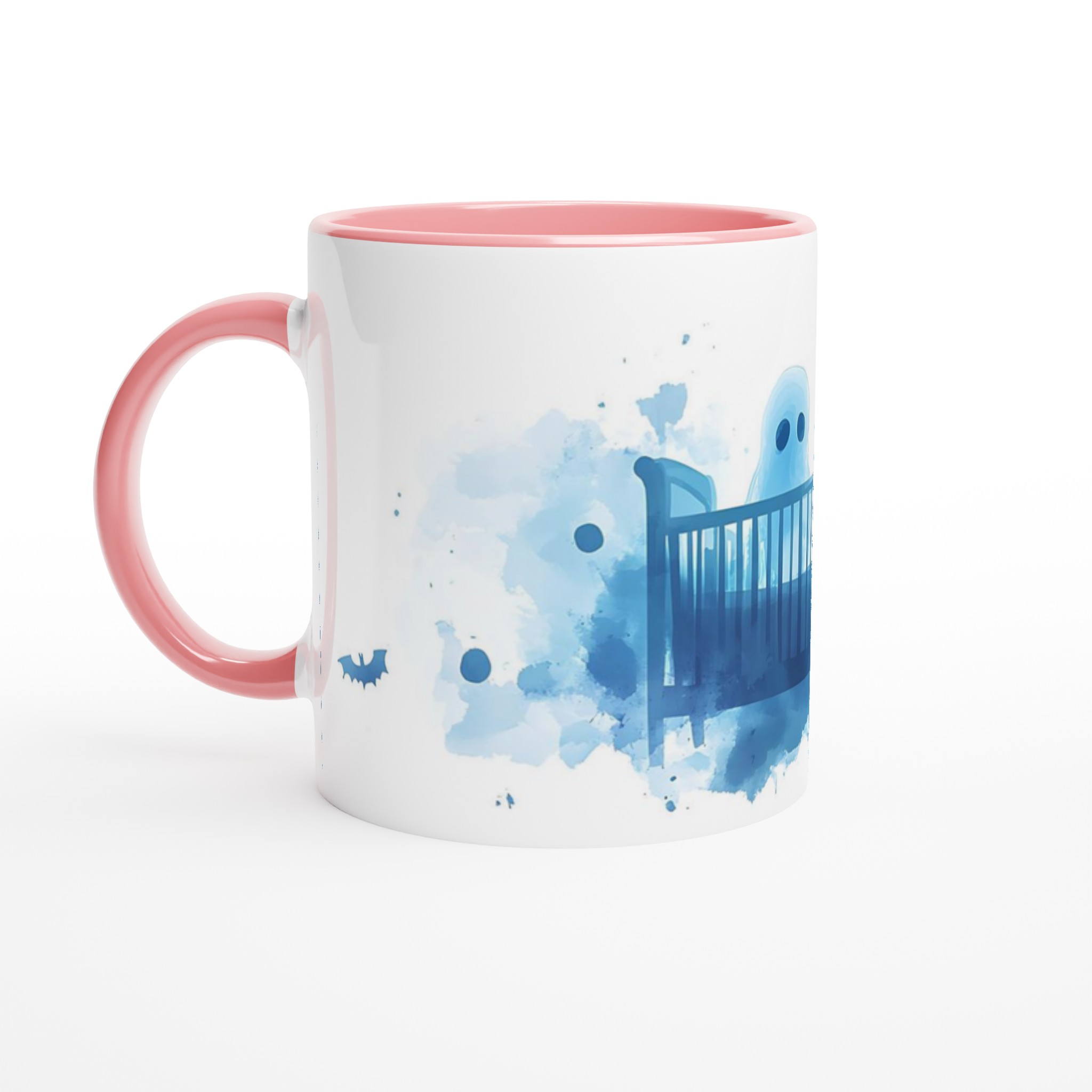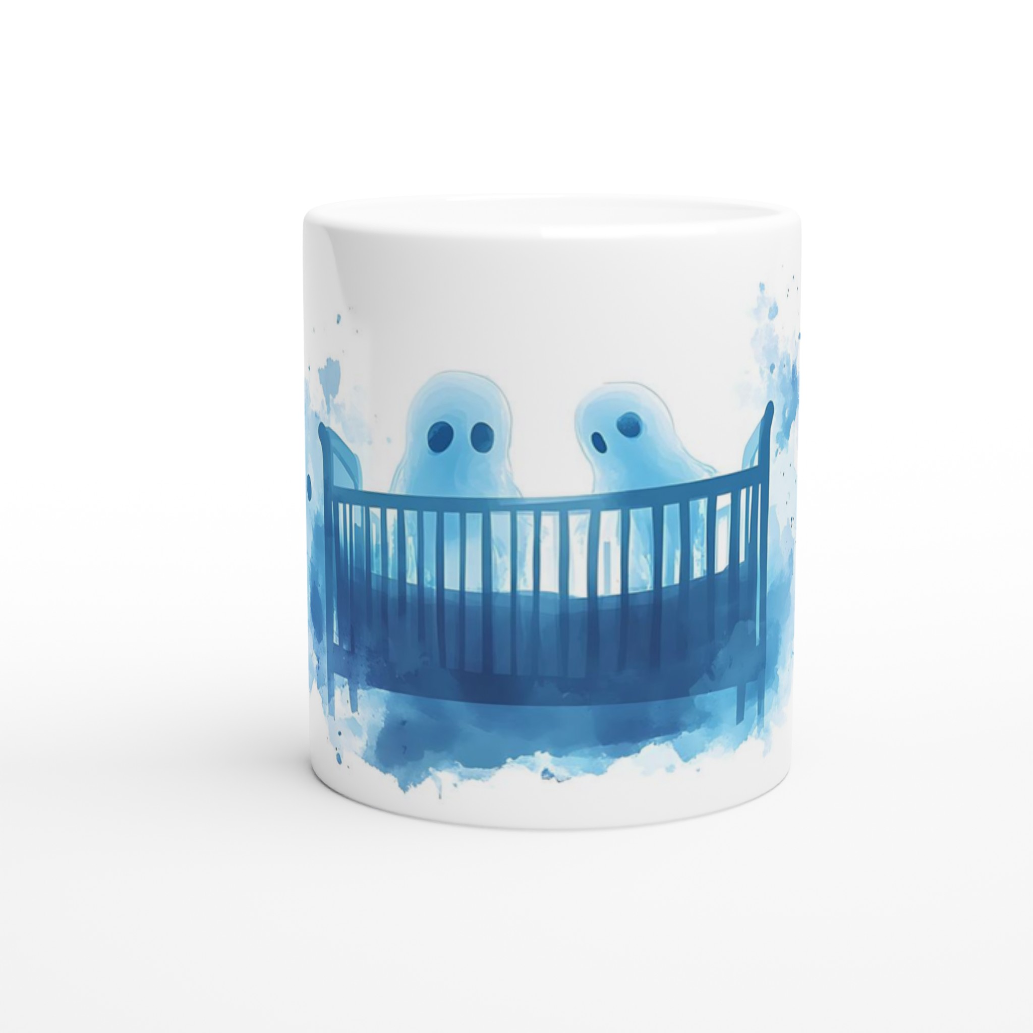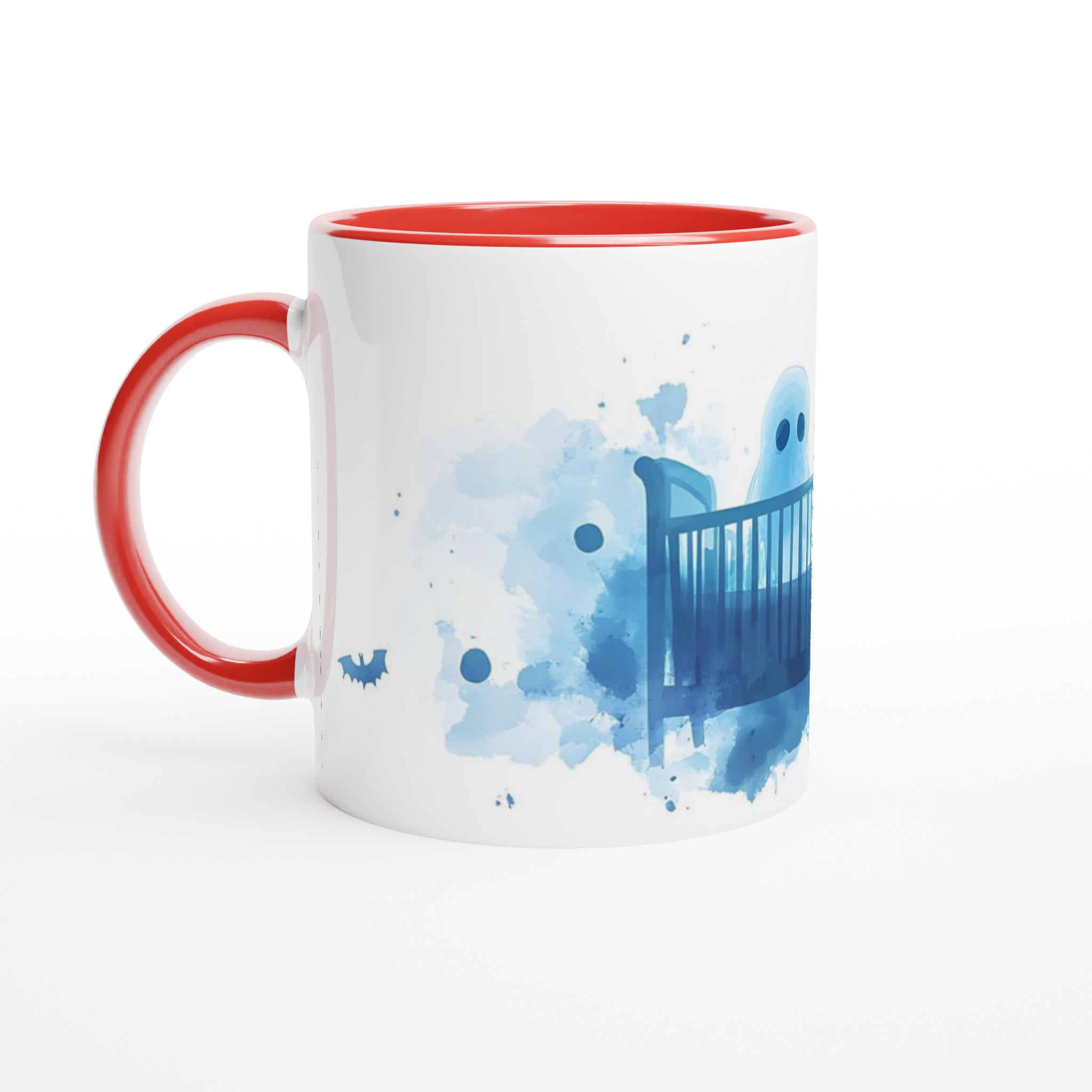Little Spookers Blue Watercolor Ceramic Mug – Adorable Ghostly Baby Crib Design, Available in 7 Vibrant Colors