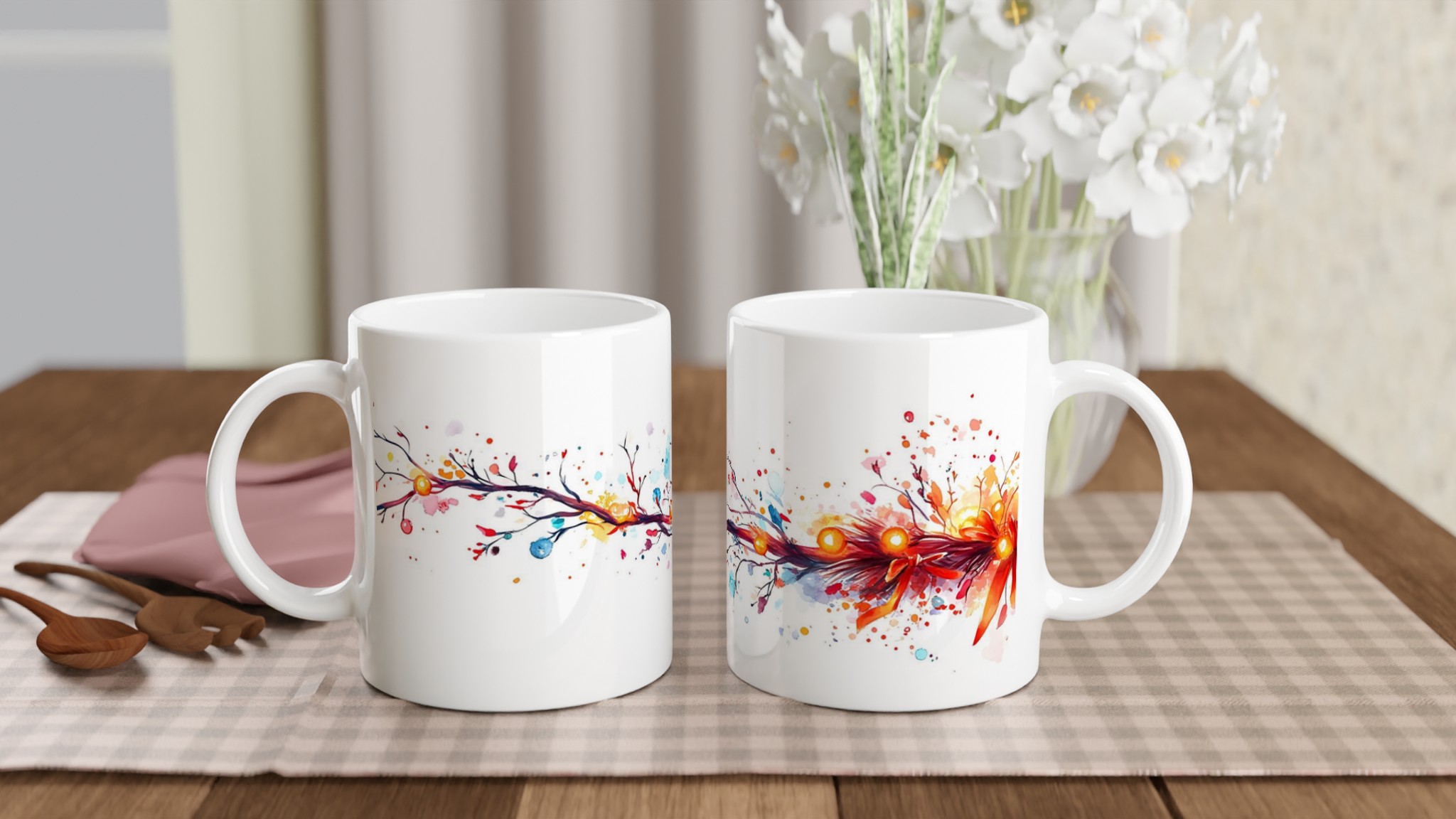 Vibrant Abstract Branch 11oz Ceramic Mug – Artistic Splash Design for Your Favorite Brew