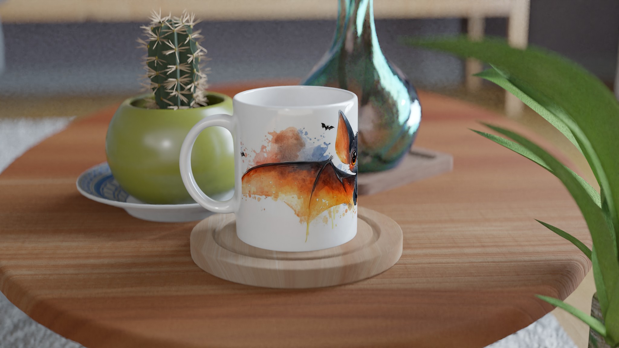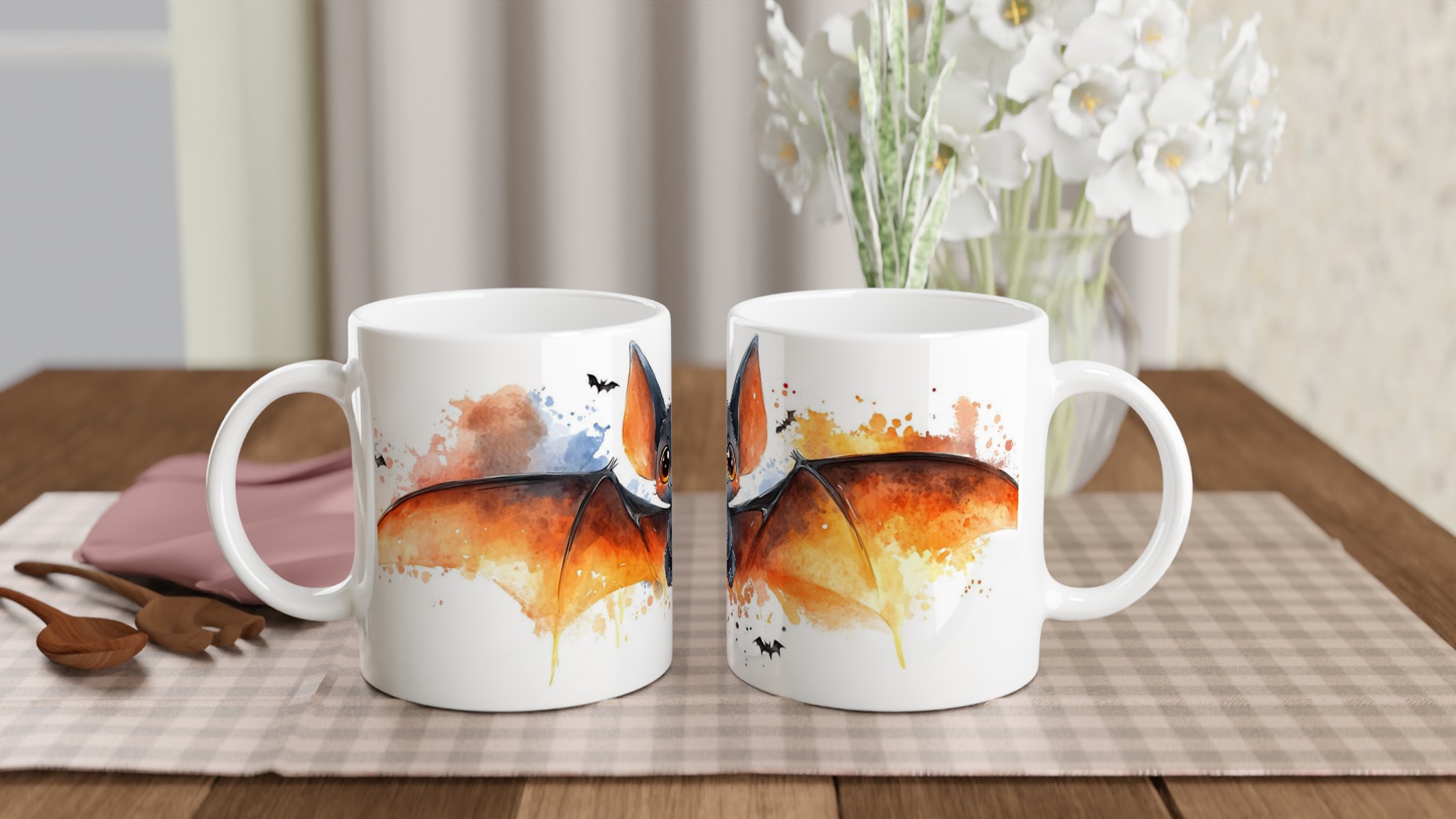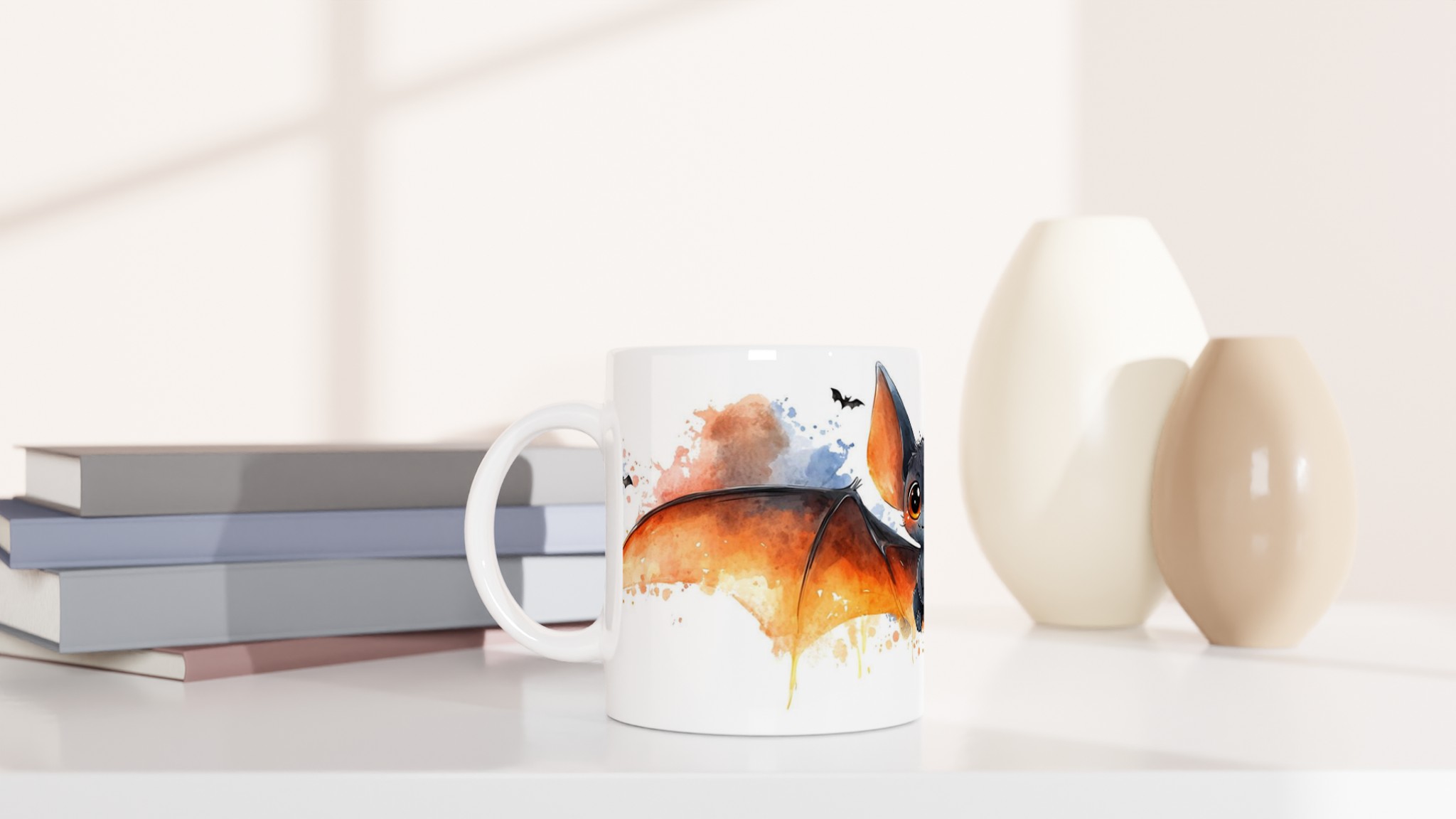 Charming Watercolor Bat 11oz Ceramic Mug – Perfect for Spooky Season Fun!