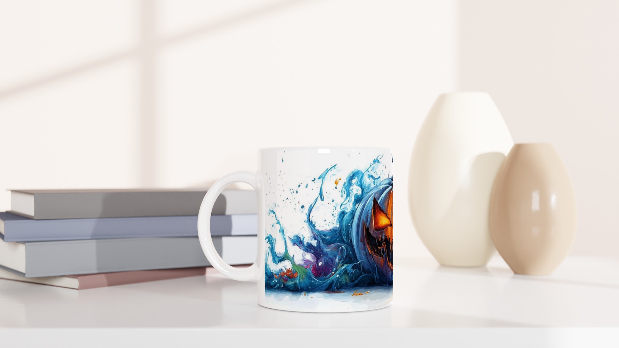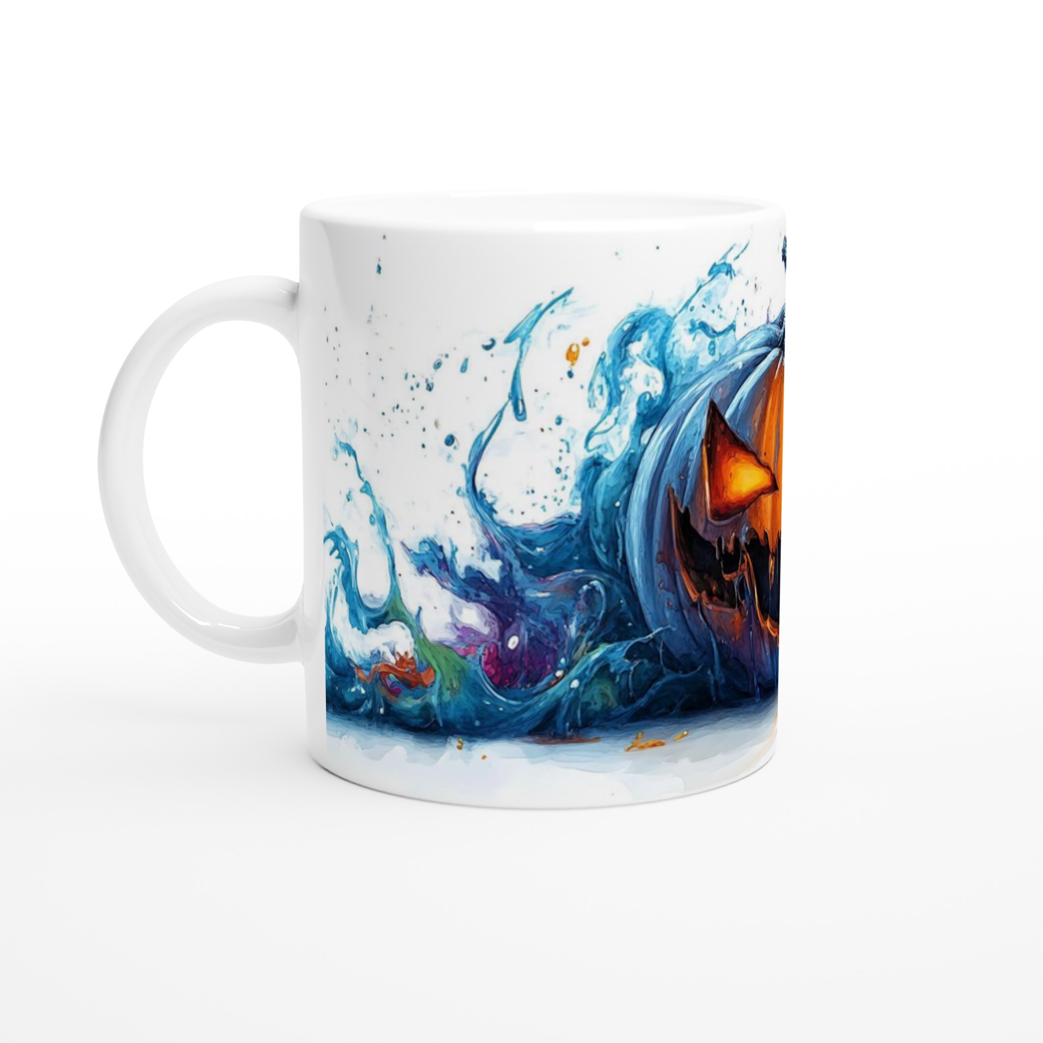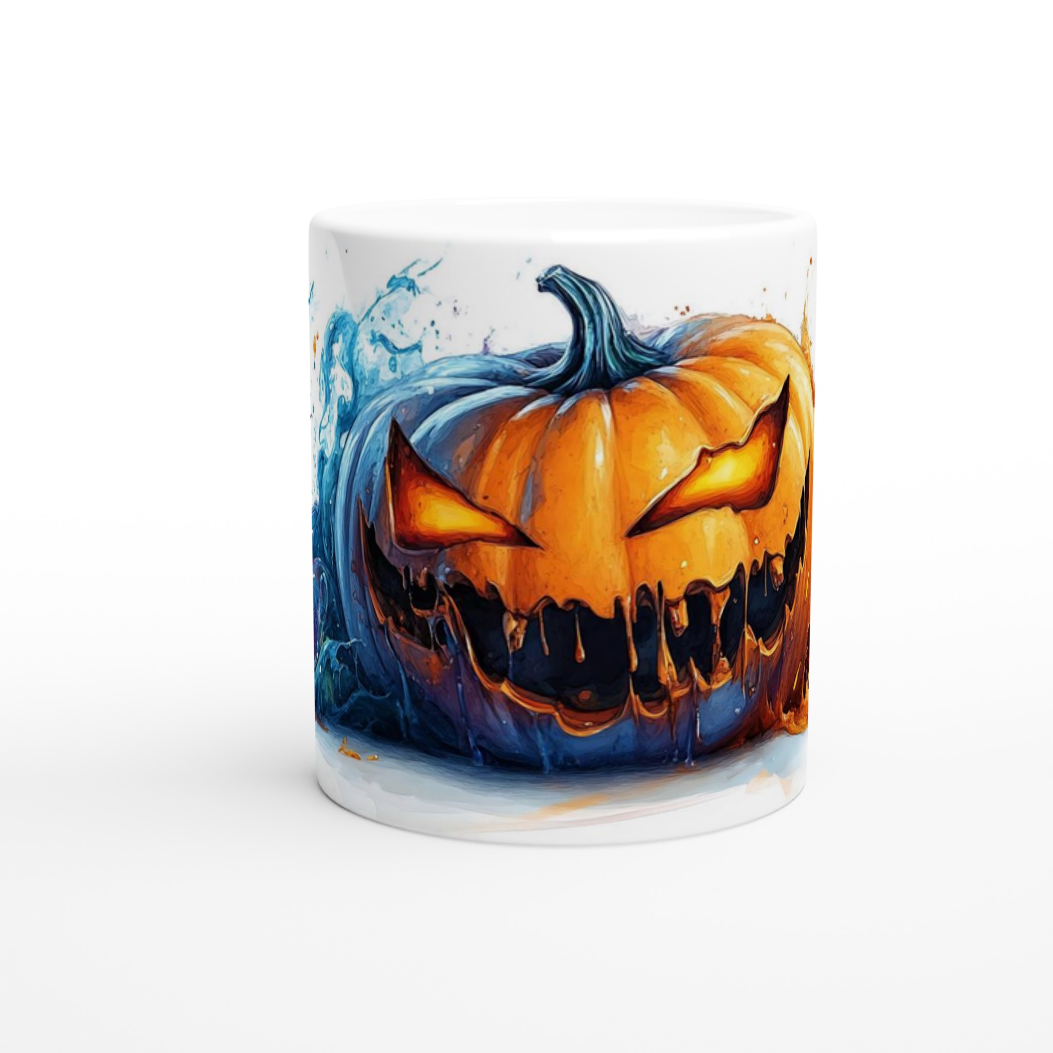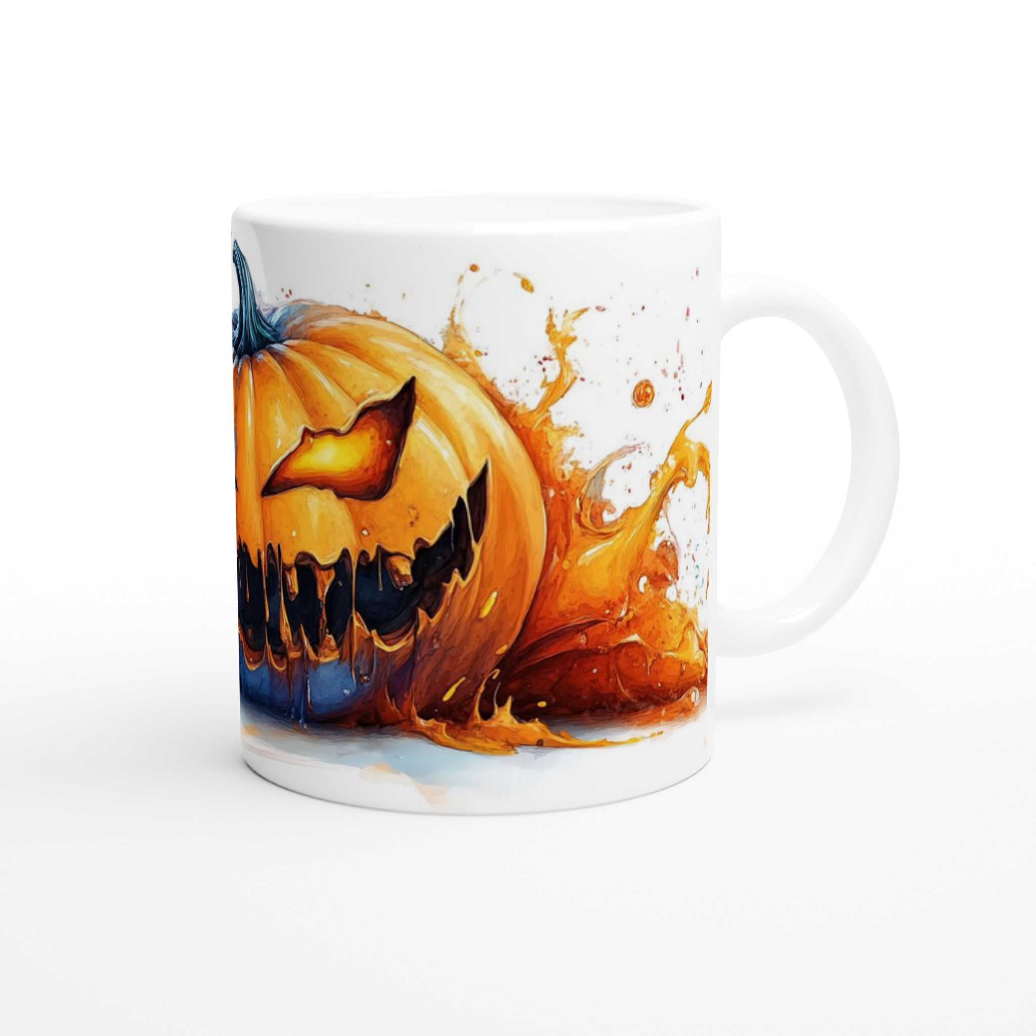 Spooky Watercolor Pumpkin 11oz Ceramic Mug – Vibrant Halloween Art for Your Favorite Brew