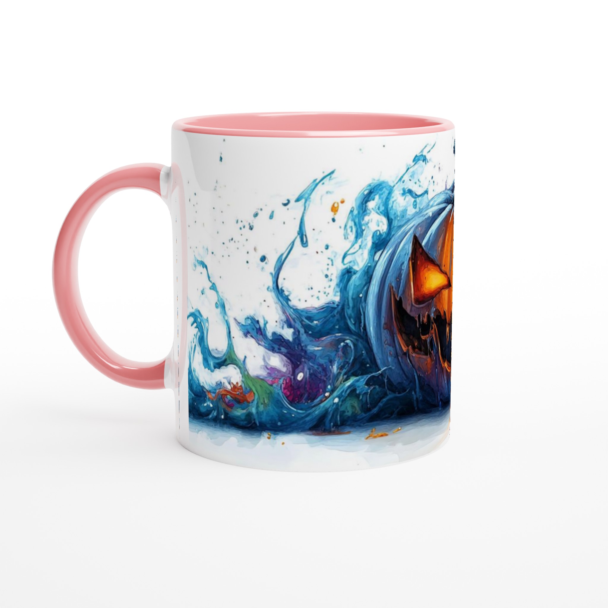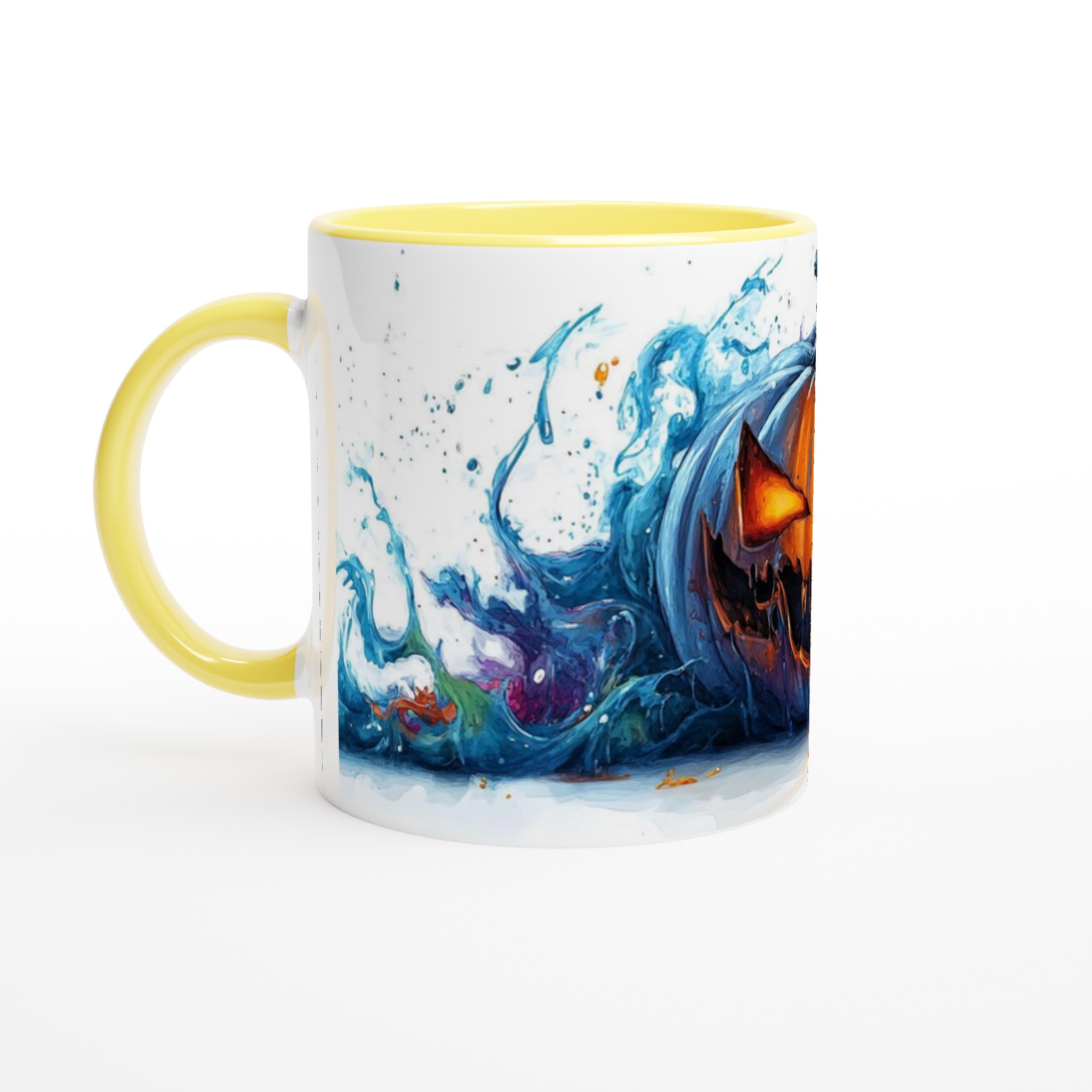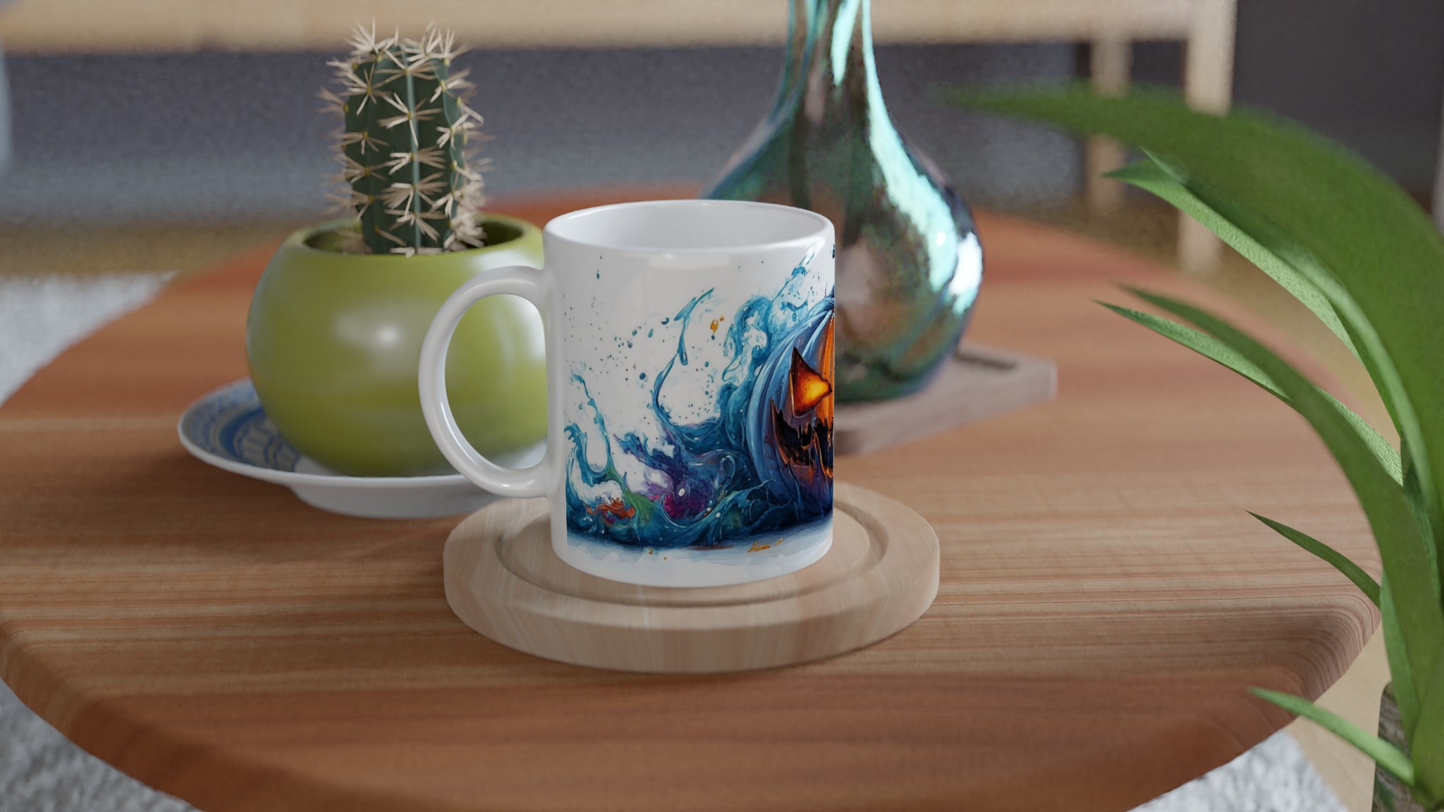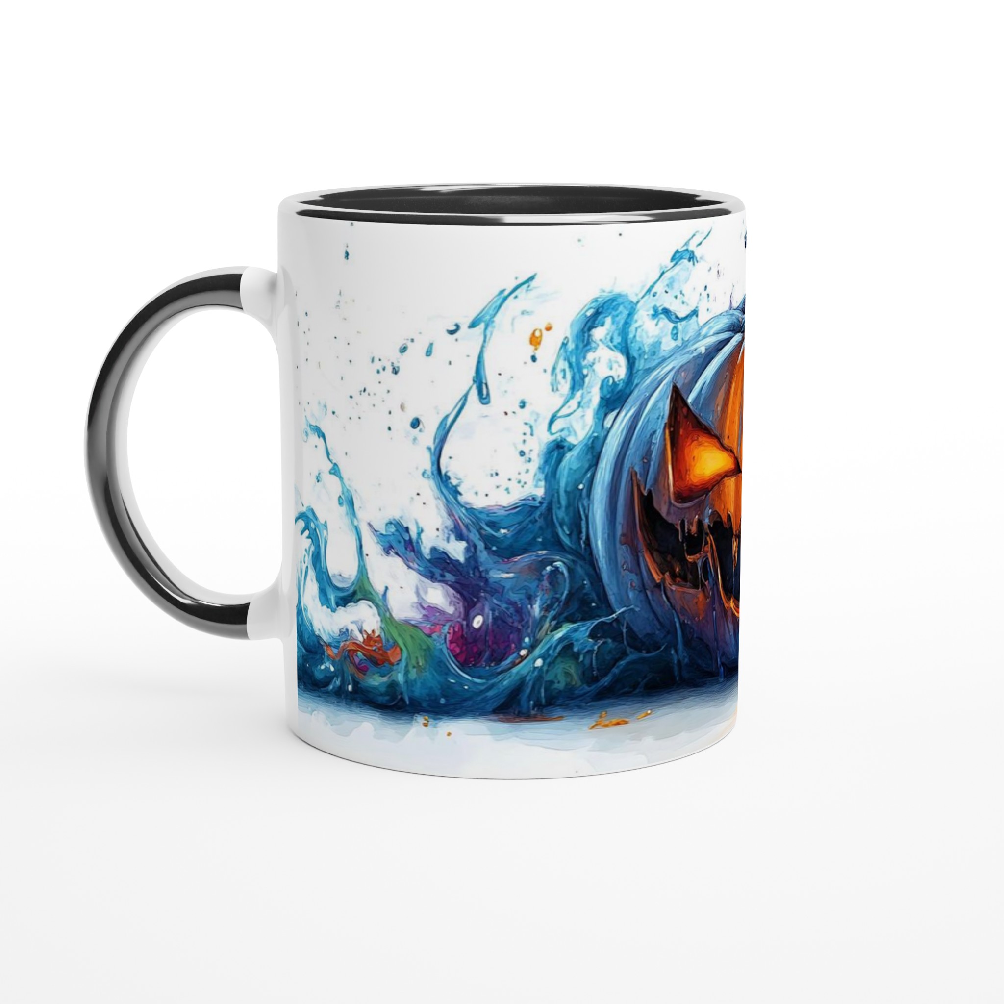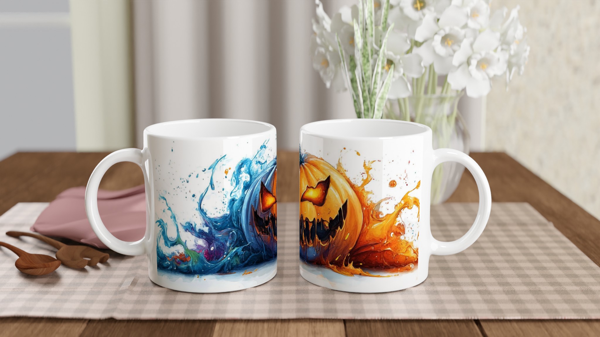Spooky Watercolor Pumpkin 11oz Ceramic Mug – Vibrant Halloween Art for Your Favorite Brew