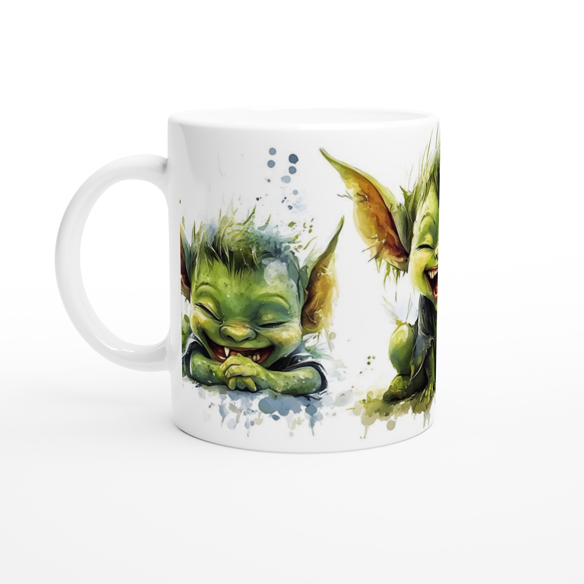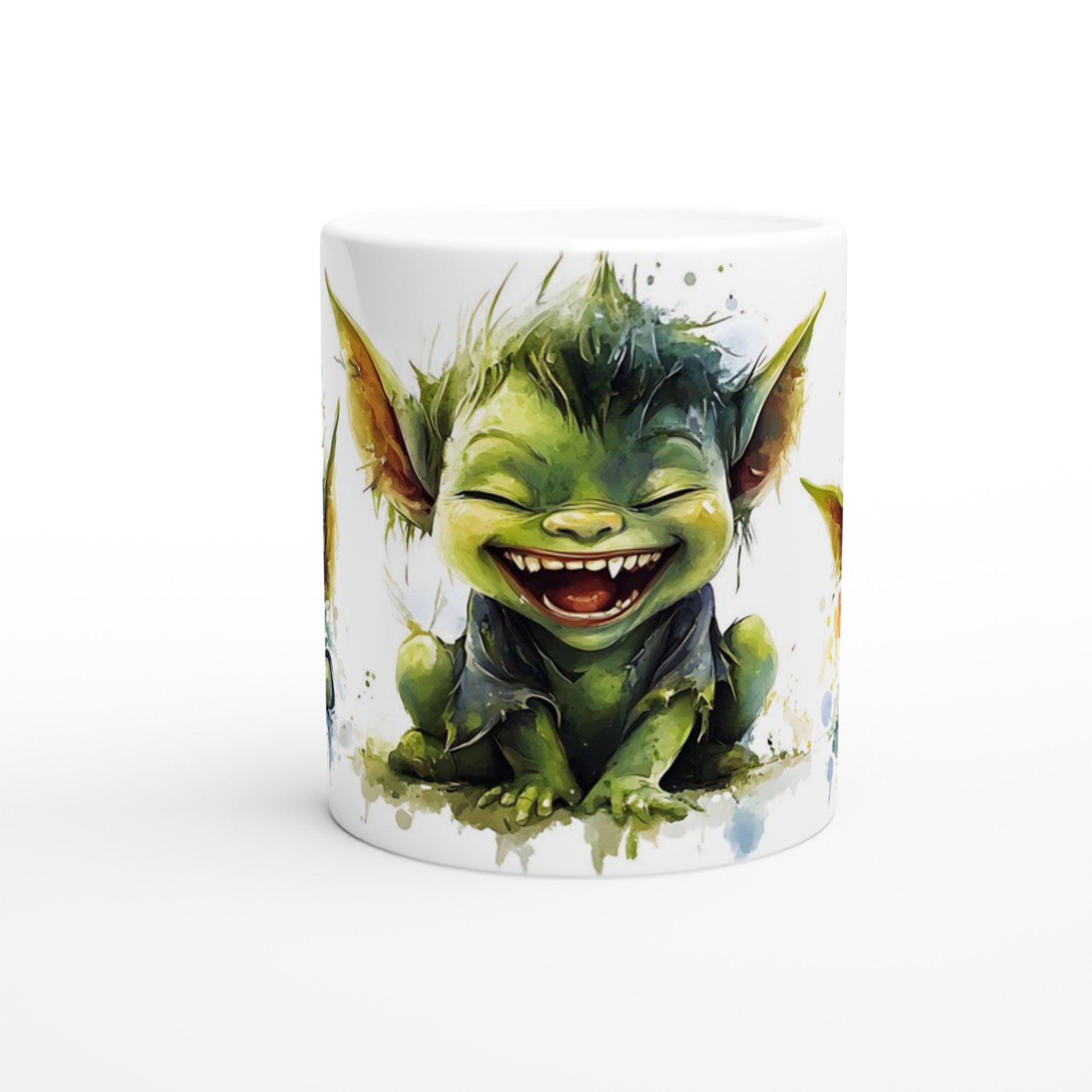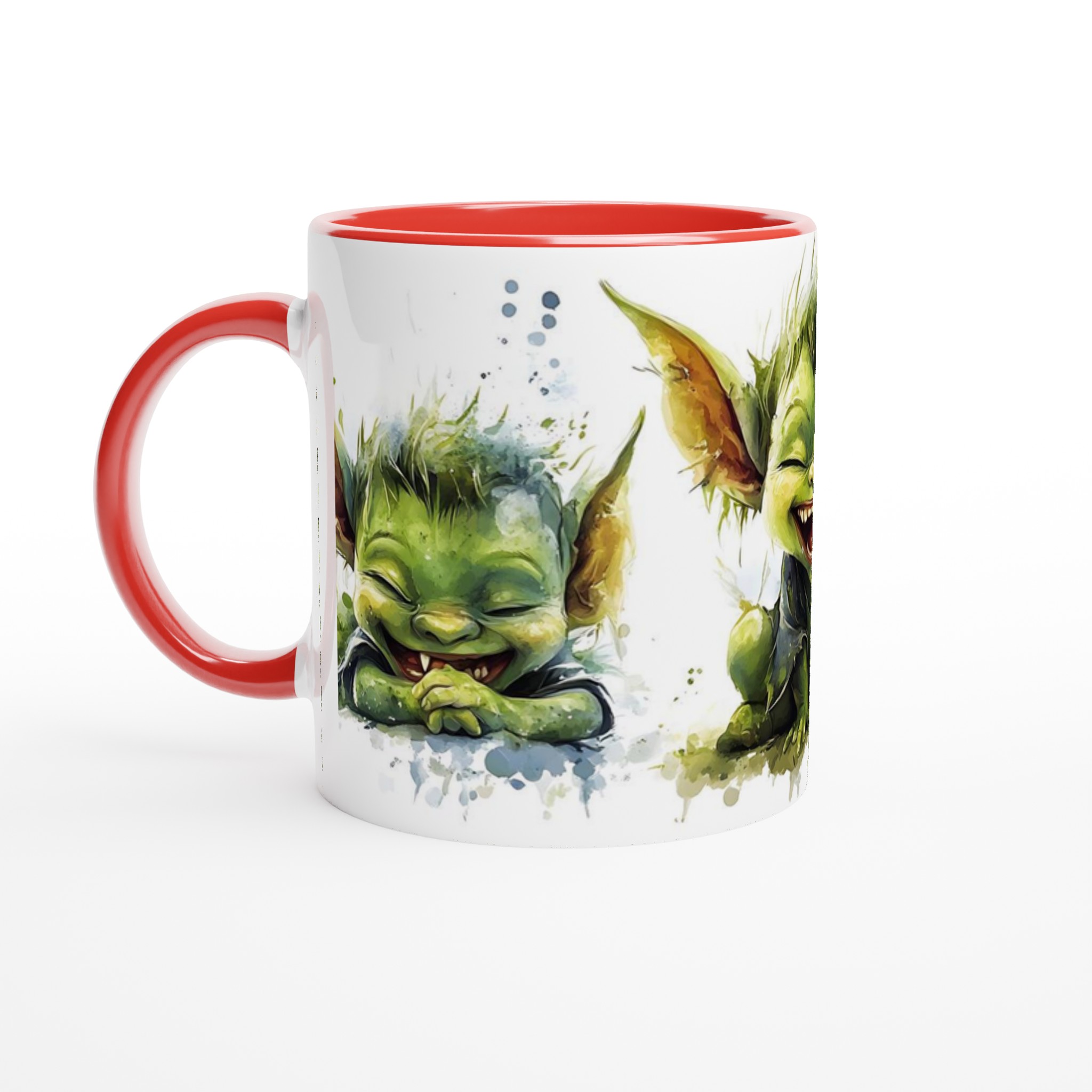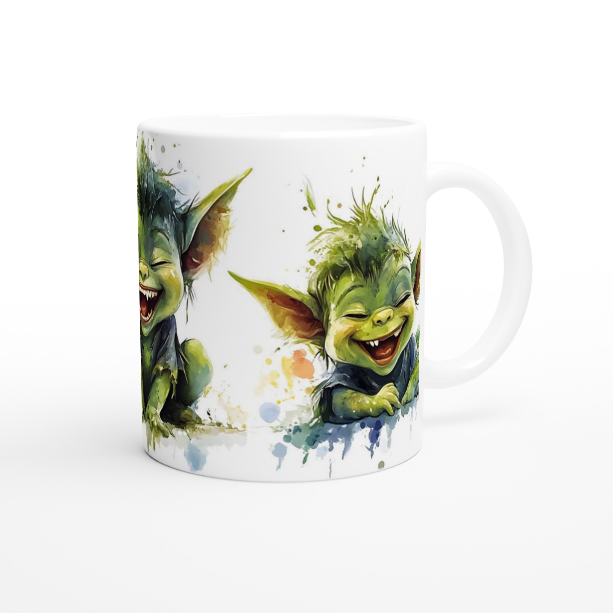 Charming Goblin Grin Ceramic Mug – Adorable Watercolor Art in Your Choice of 7 Vibrant Hues
