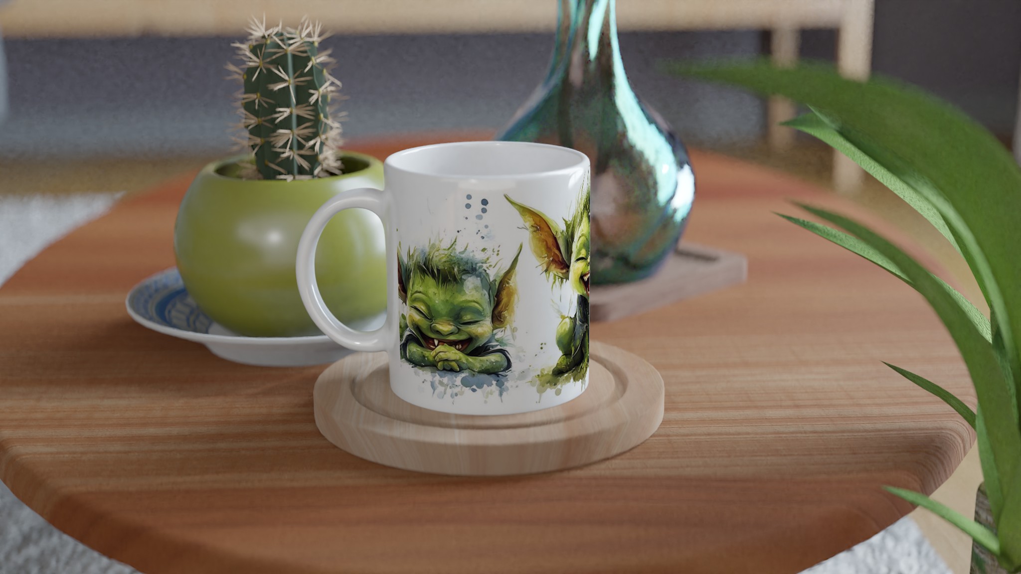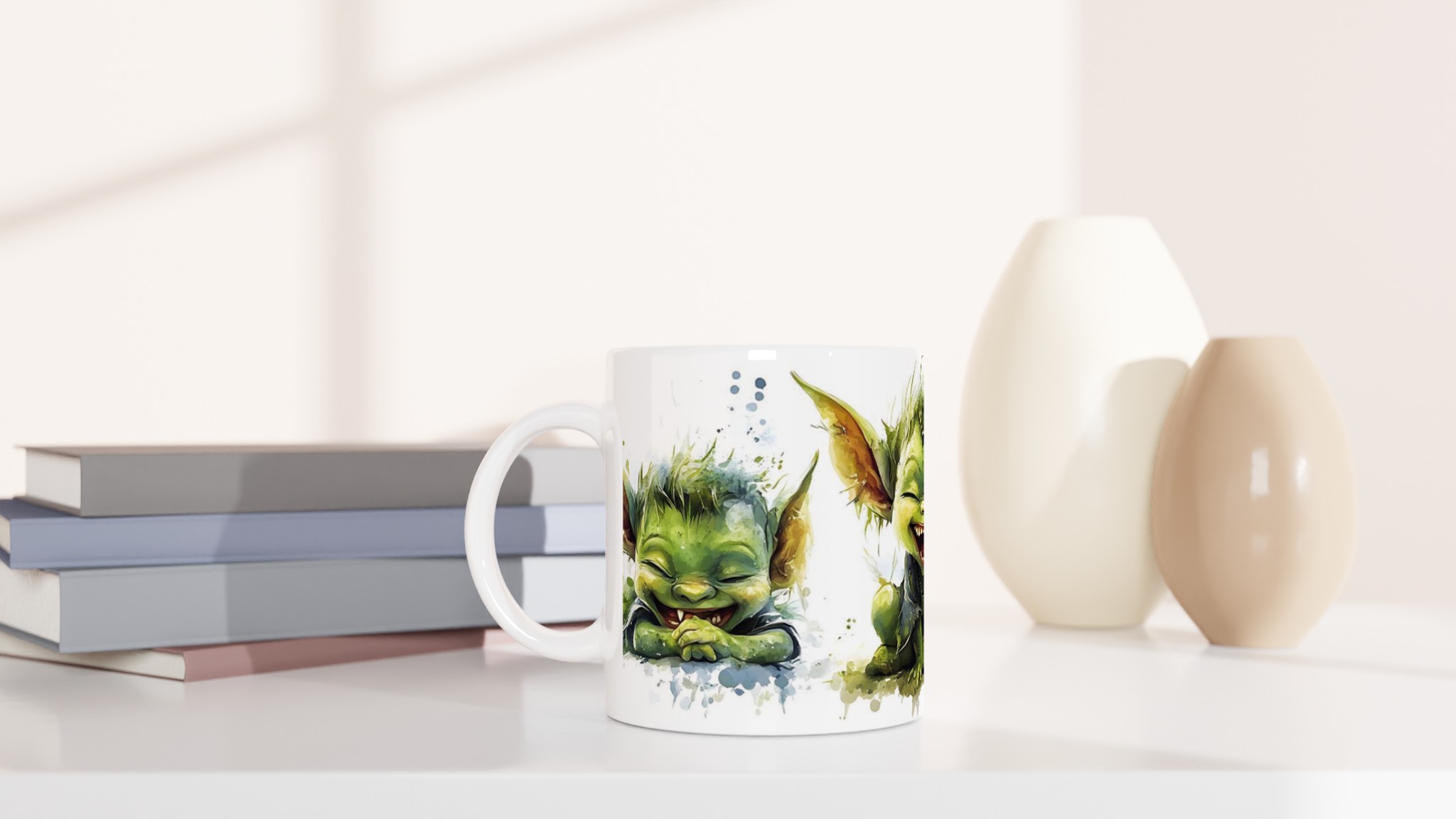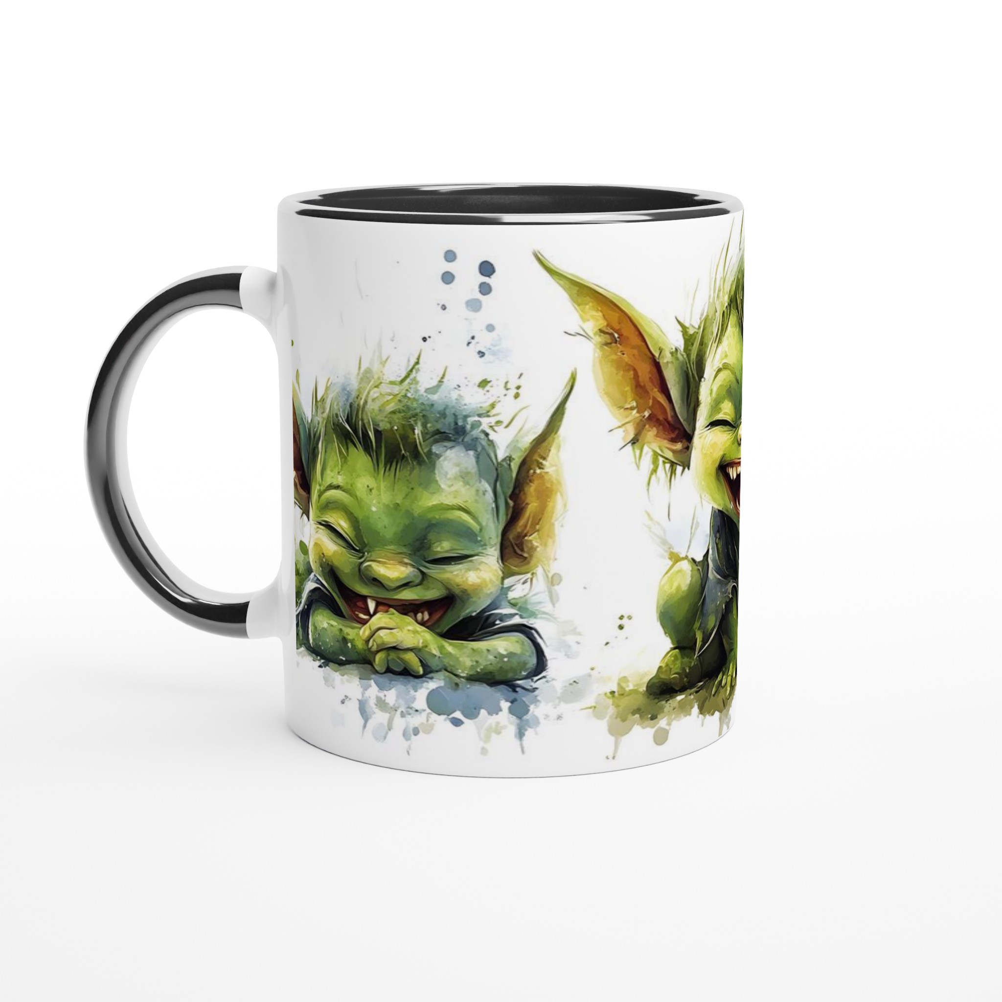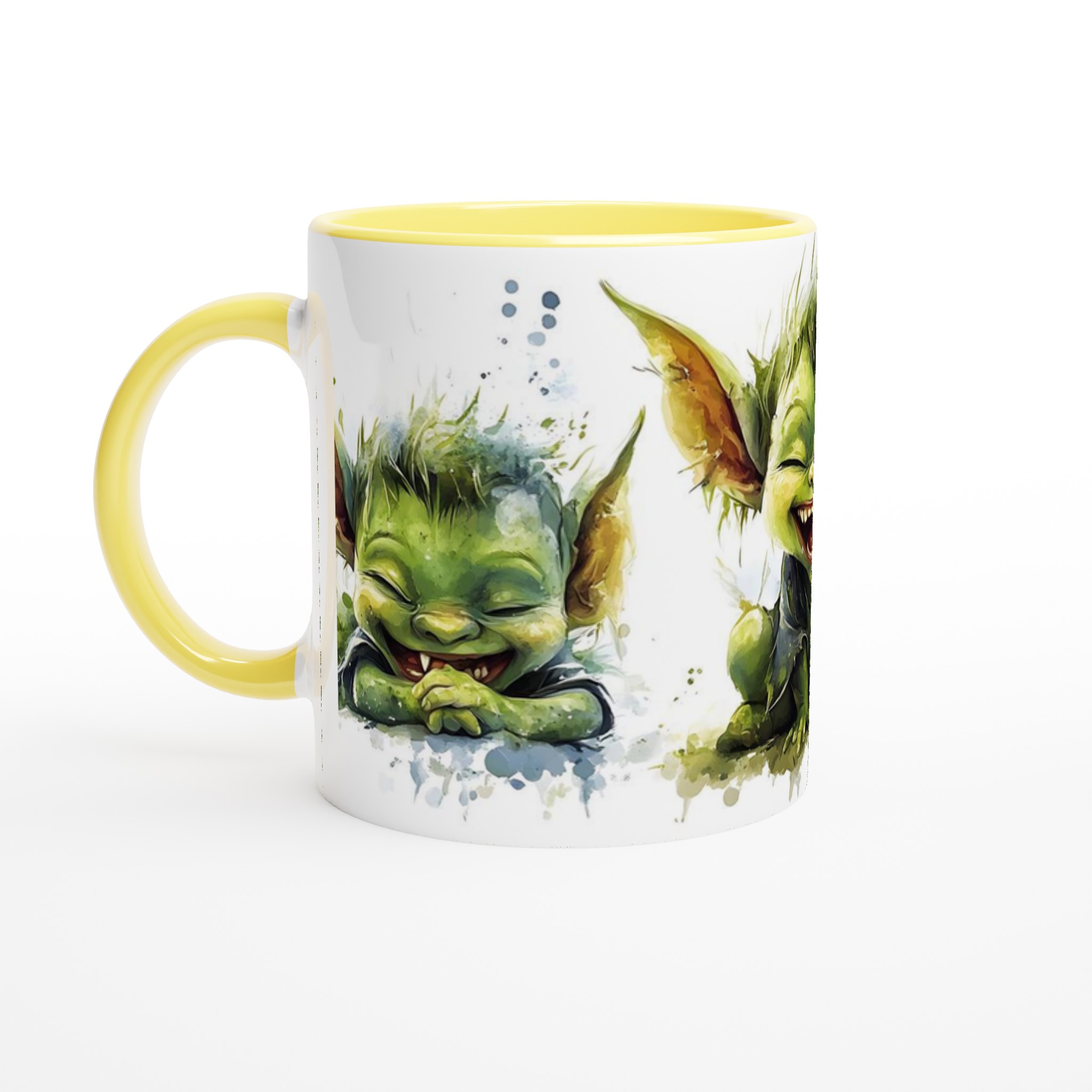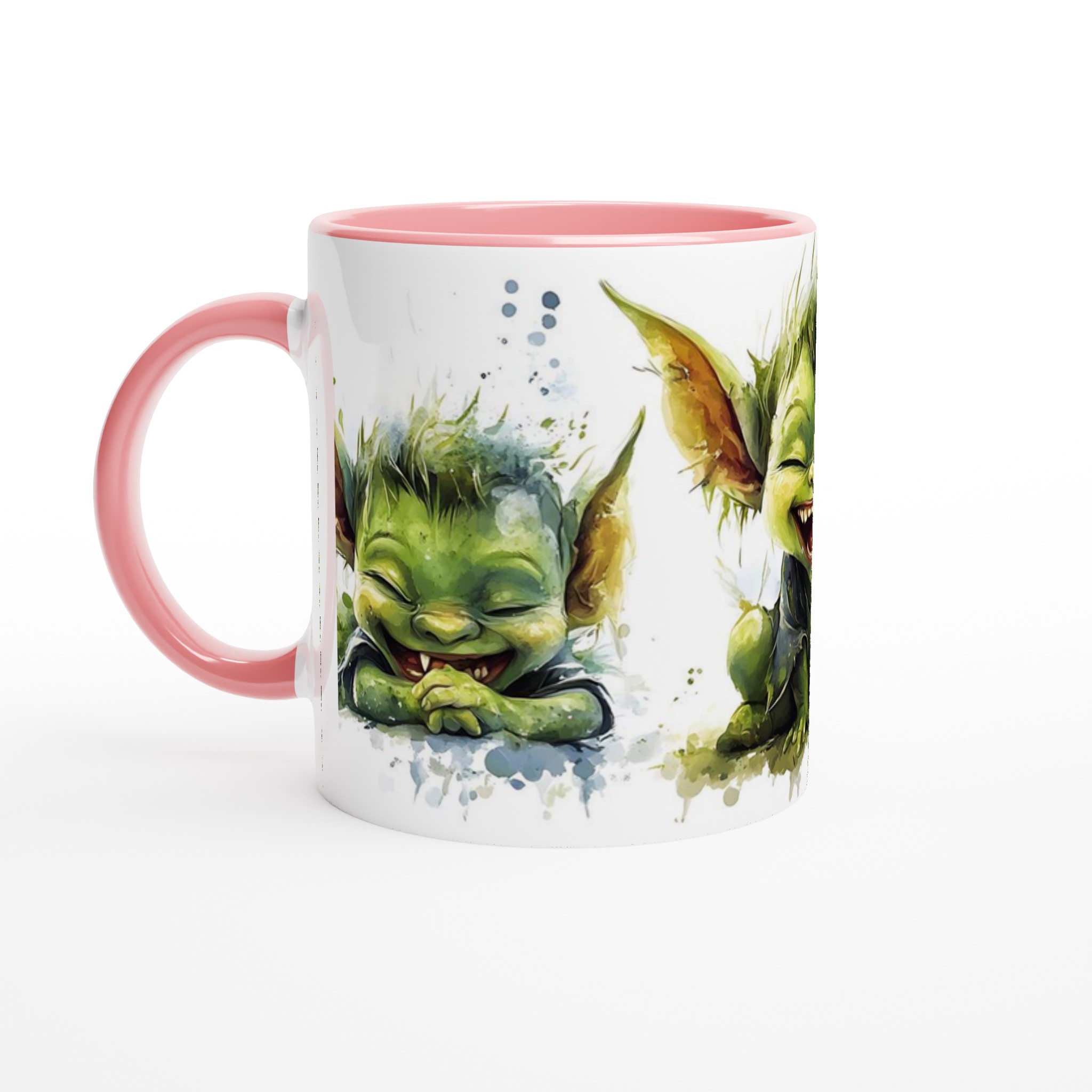 Charming Goblin Grin Ceramic Mug – Adorable Watercolor Art in Your Choice of 7 Vibrant Hues
