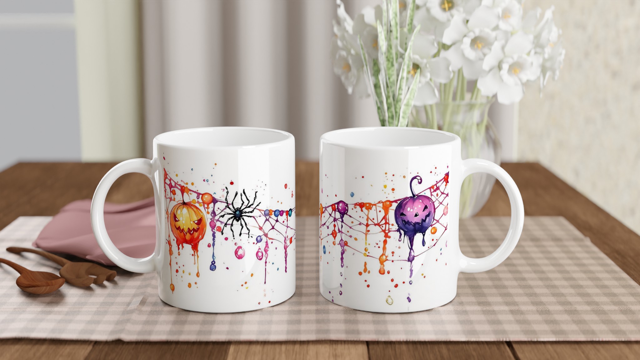 Spooky Watercolor Halloween 11oz Ceramic Mug – Vibrant Artistry for Your Favorite Brew