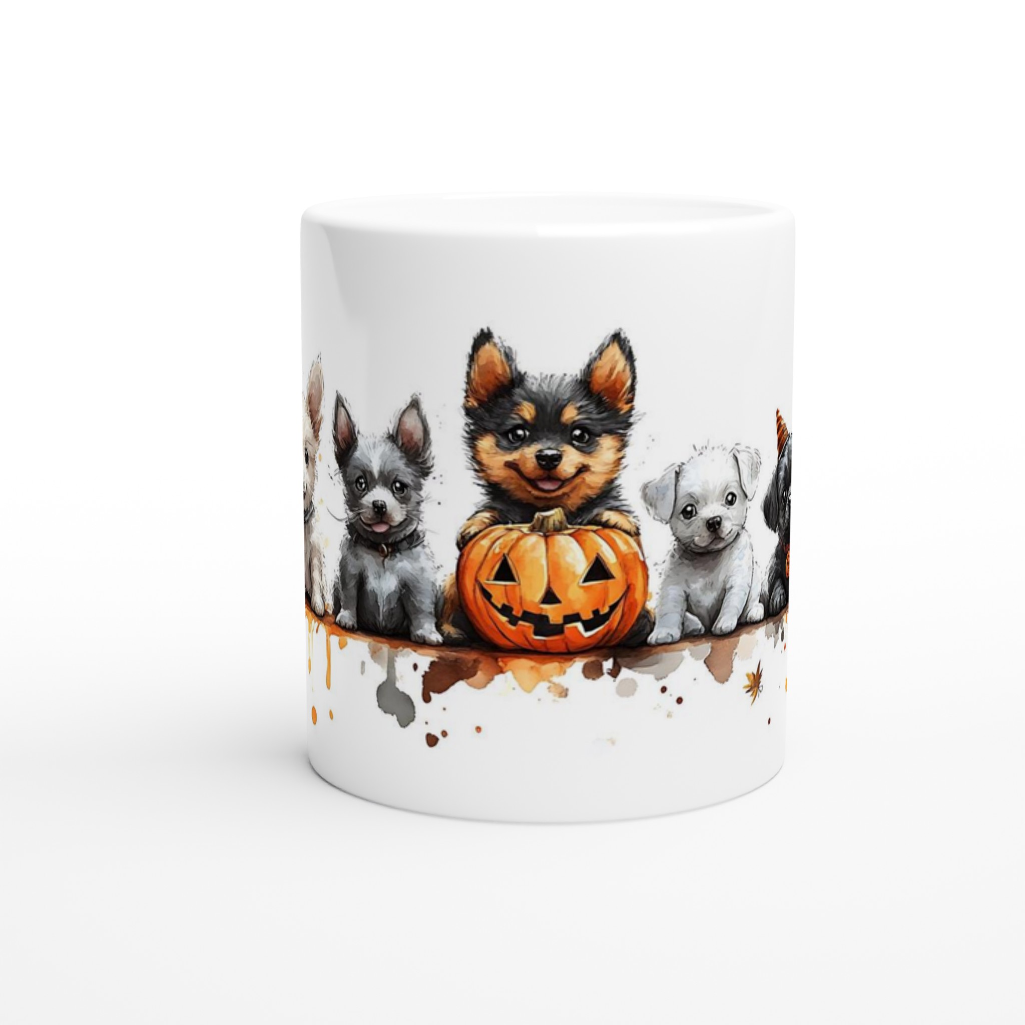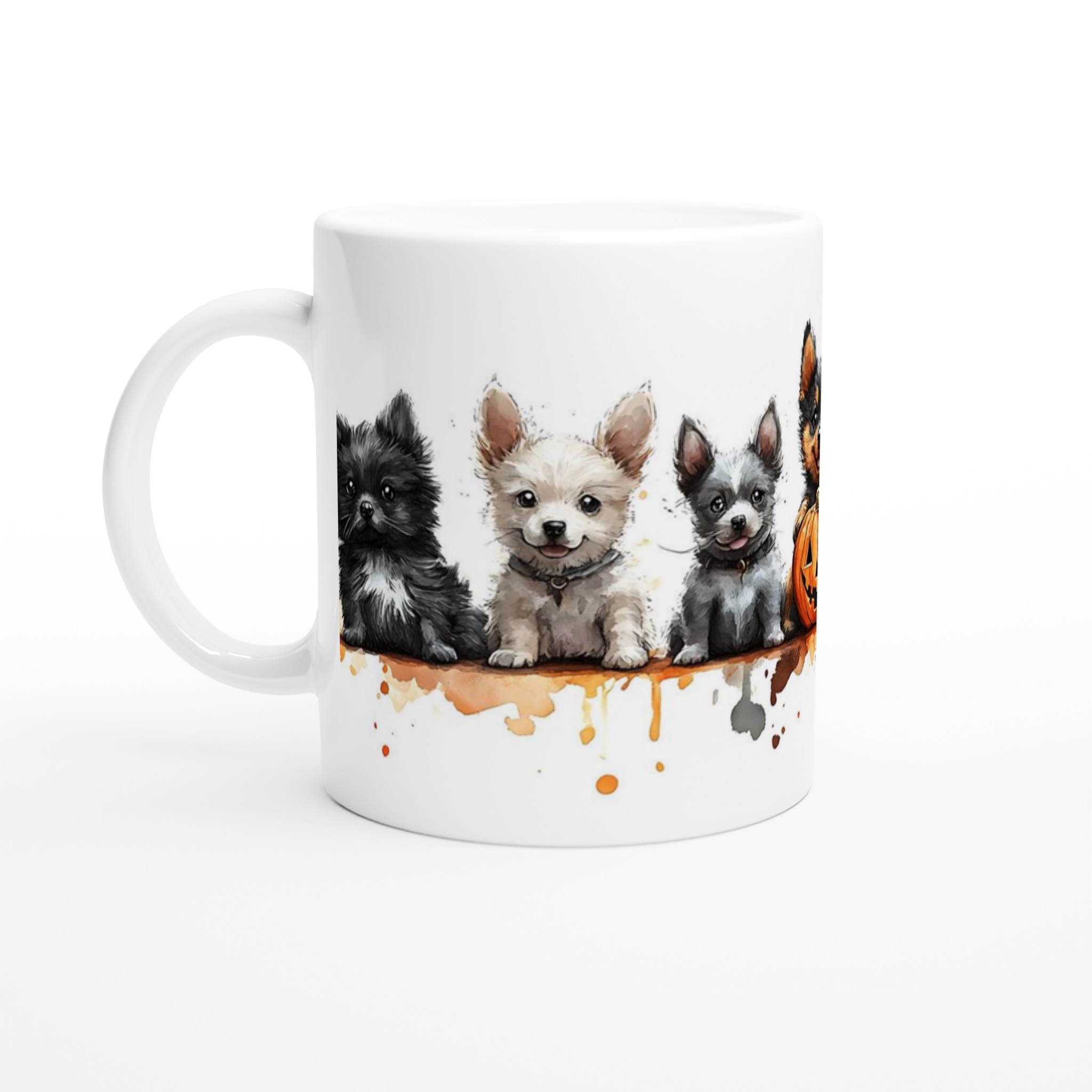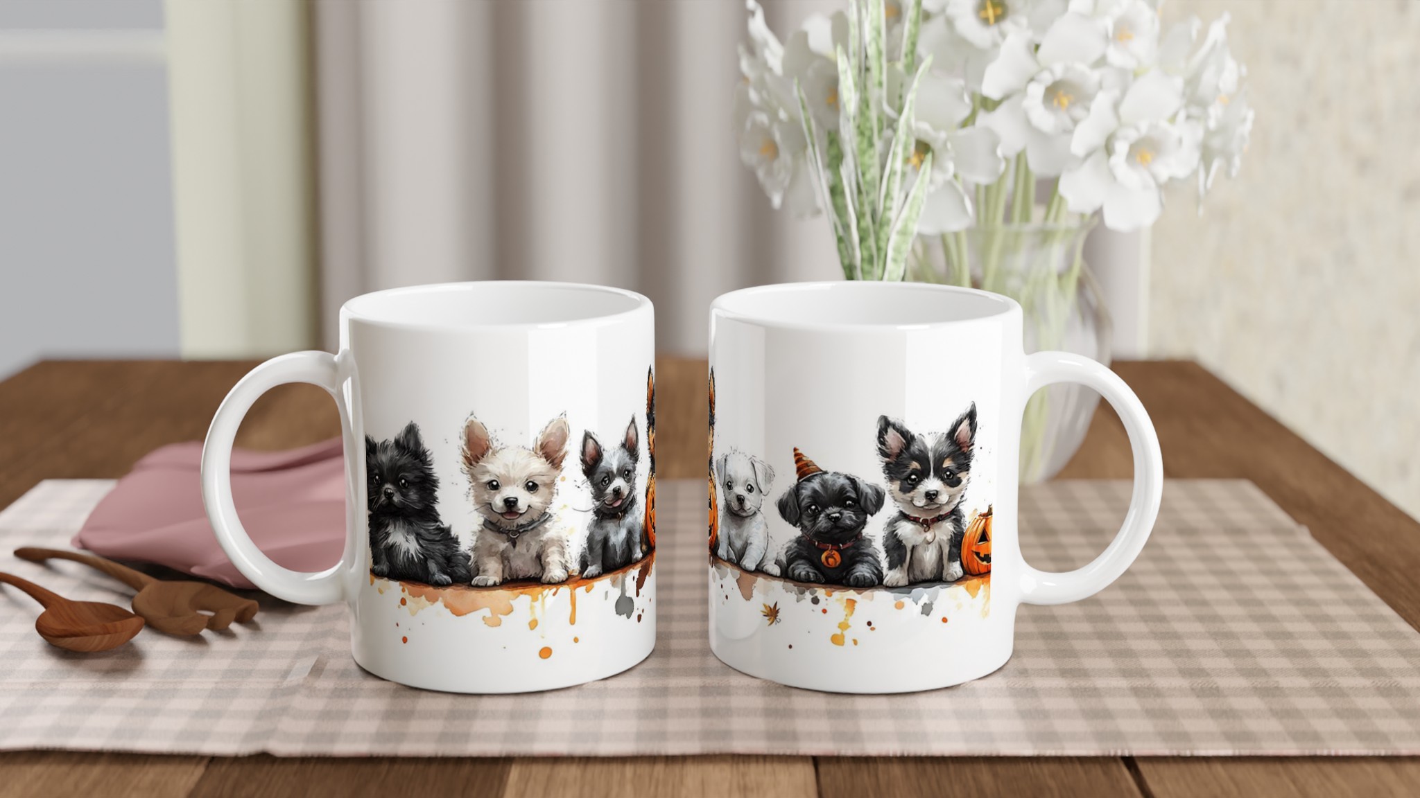 Spooky Squad Halloween Puppies White 11oz Ceramic Mug – Choose Your Favorite Color!
