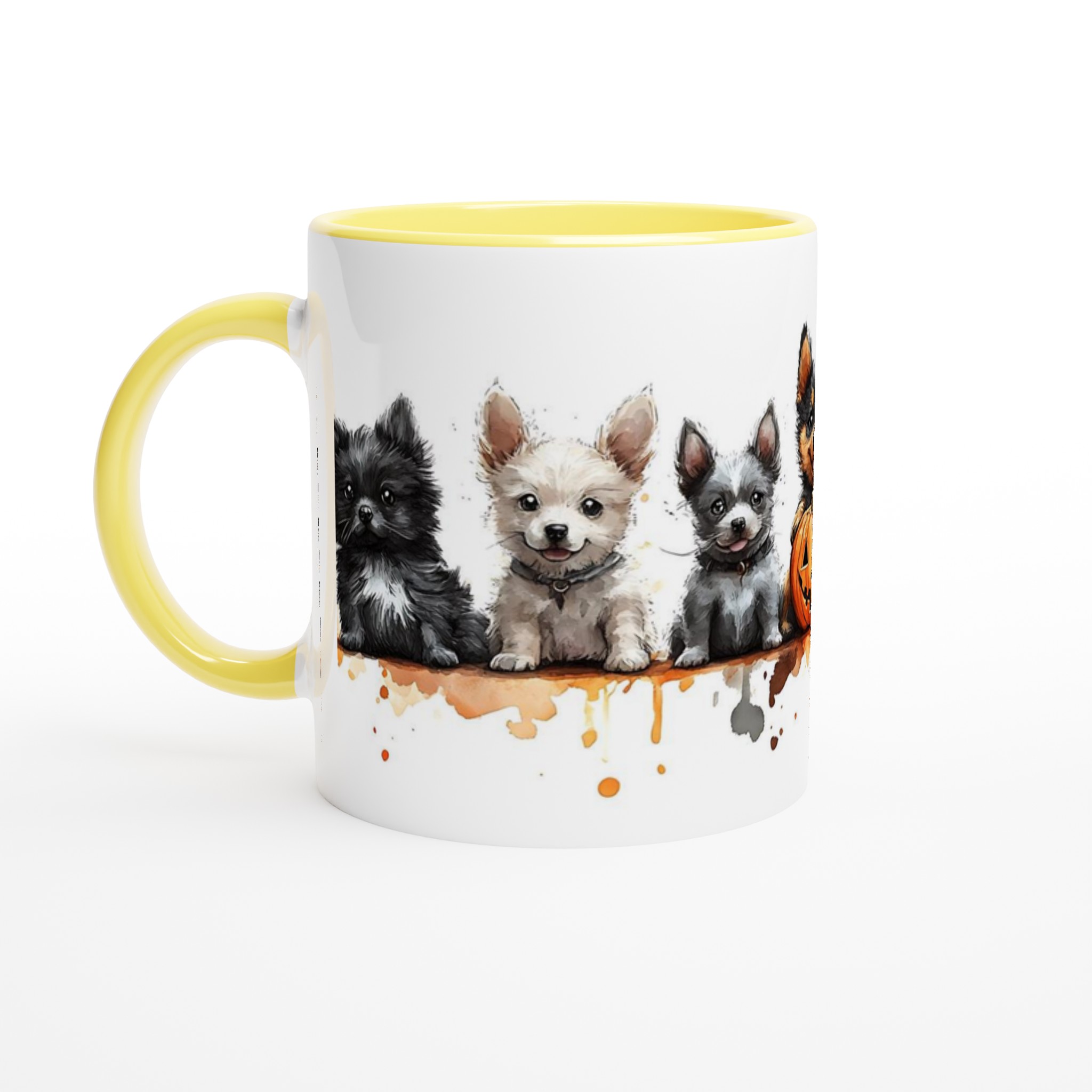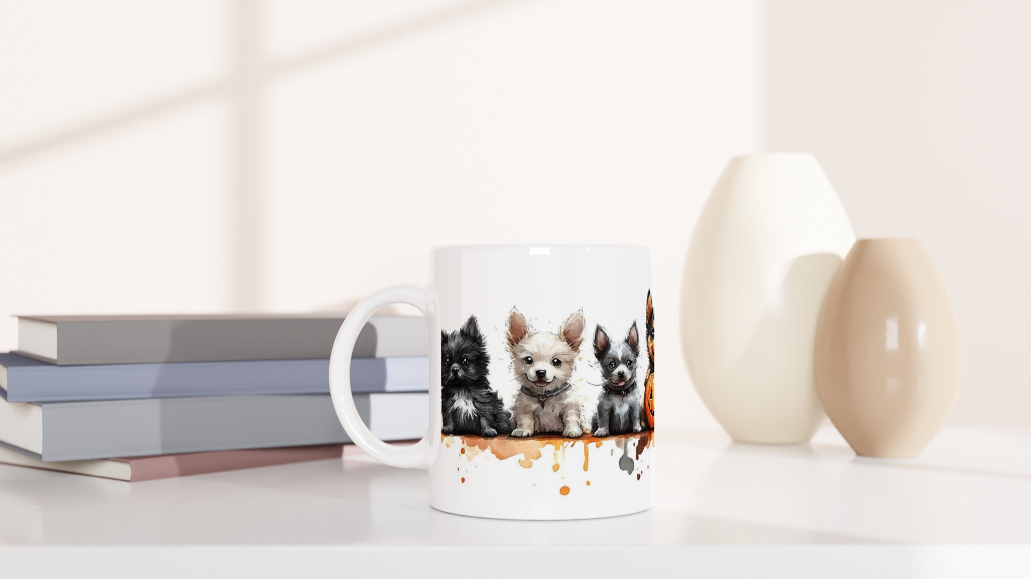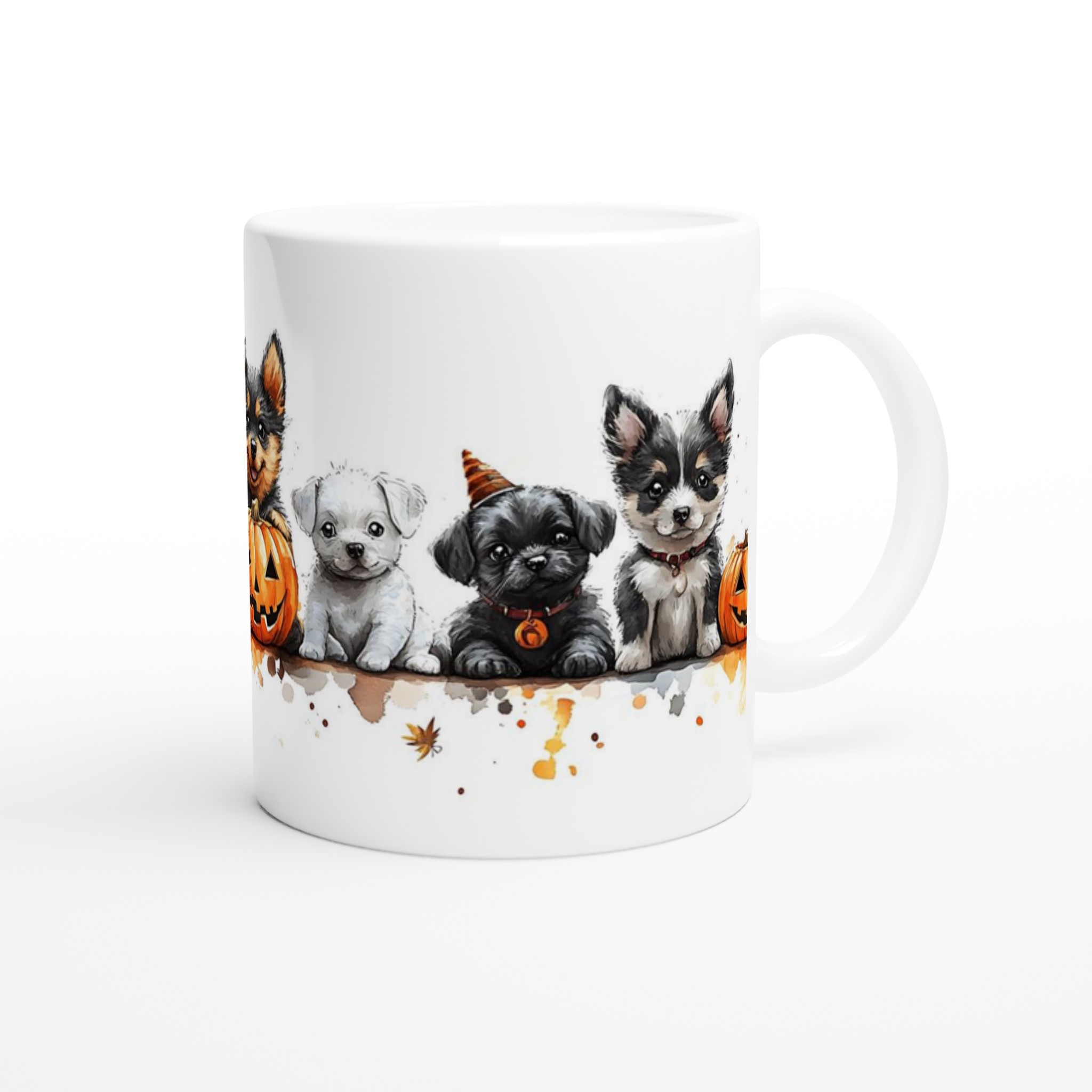 Spooky Squad Halloween Puppies White 11oz Ceramic Mug – Choose Your Favorite Color!