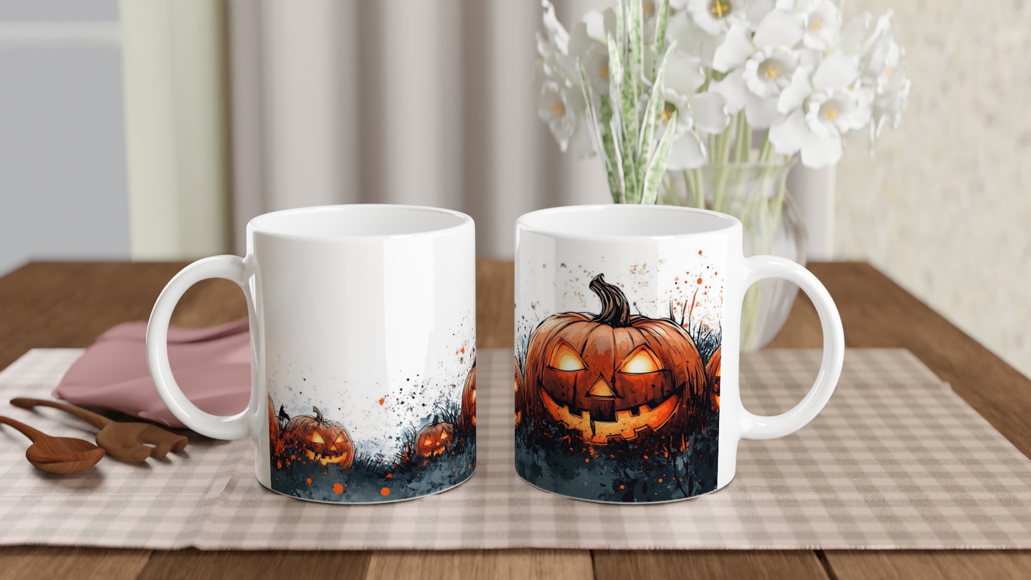 Spooky Jack-O’-Lantern 11oz Ceramic Mug – Perfect for Halloween & Fall Festivities
