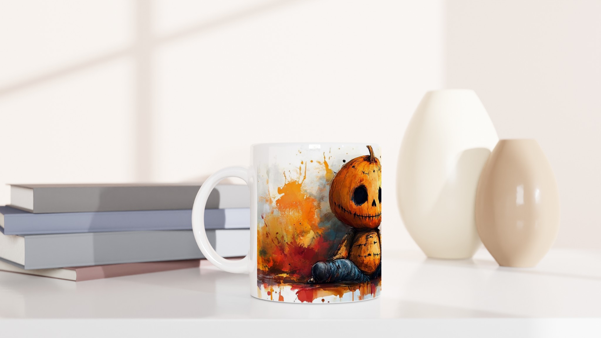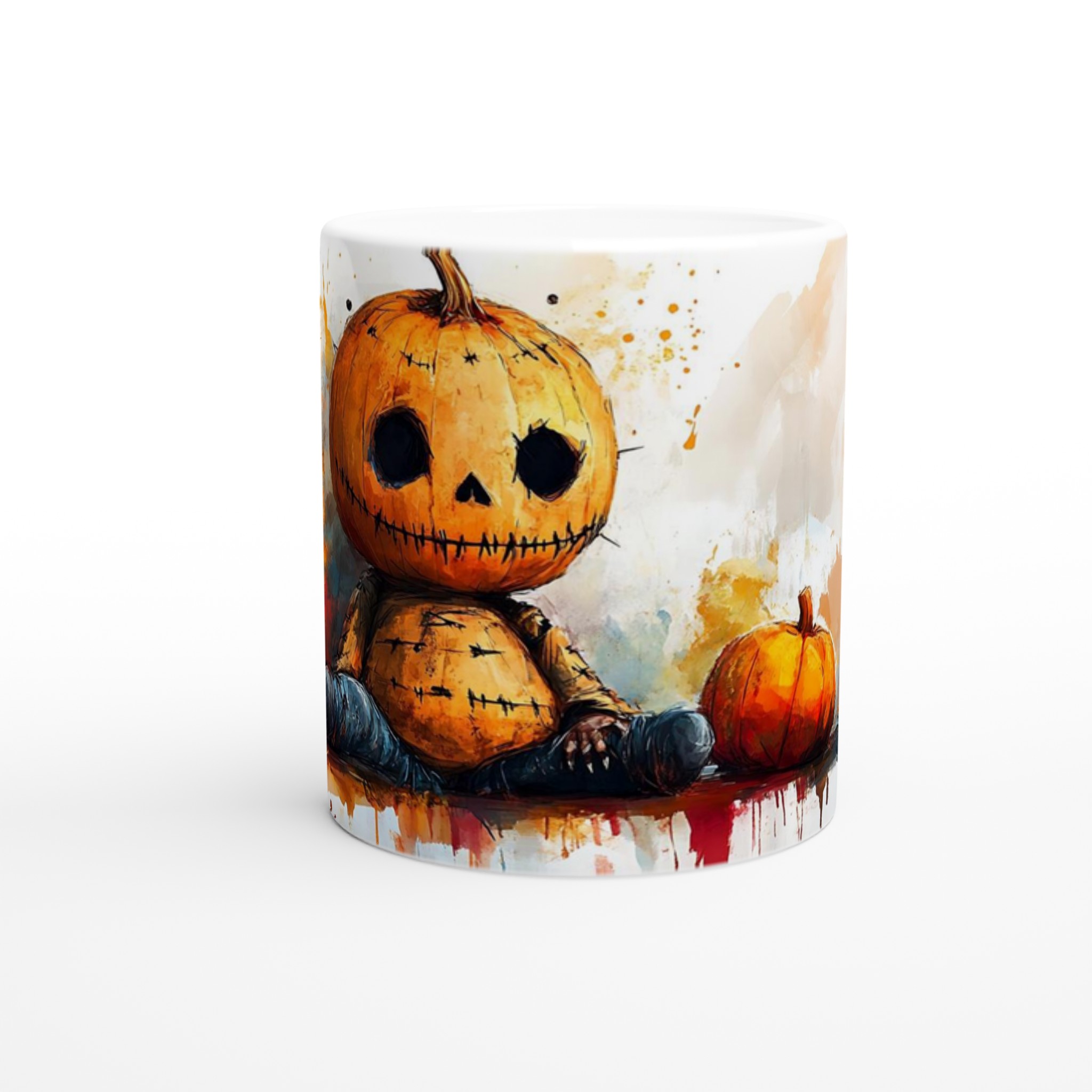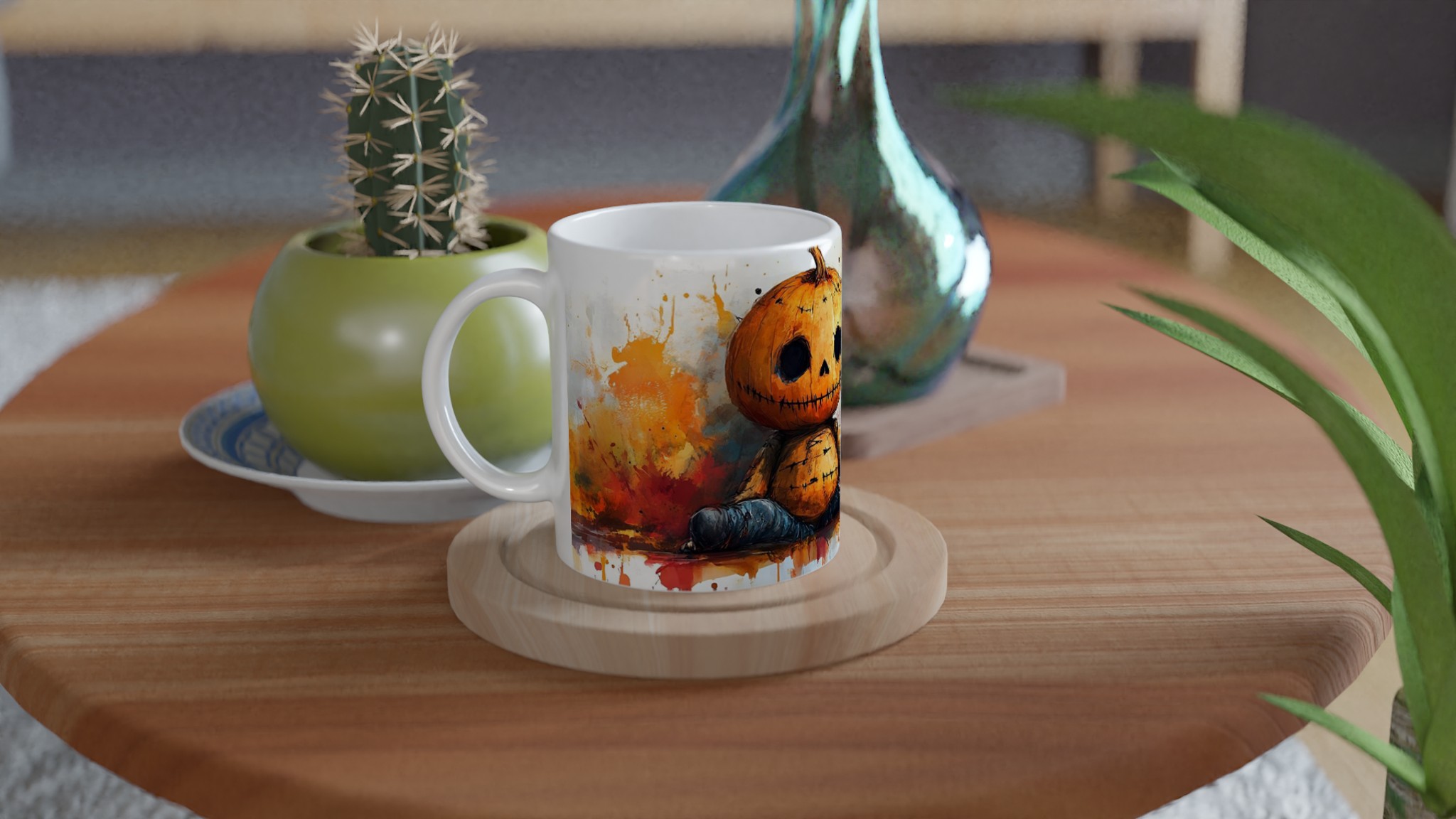 Spooky Pumpkin Character 11oz Ceramic Mug – Perfect for Halloween & Fall Festivities