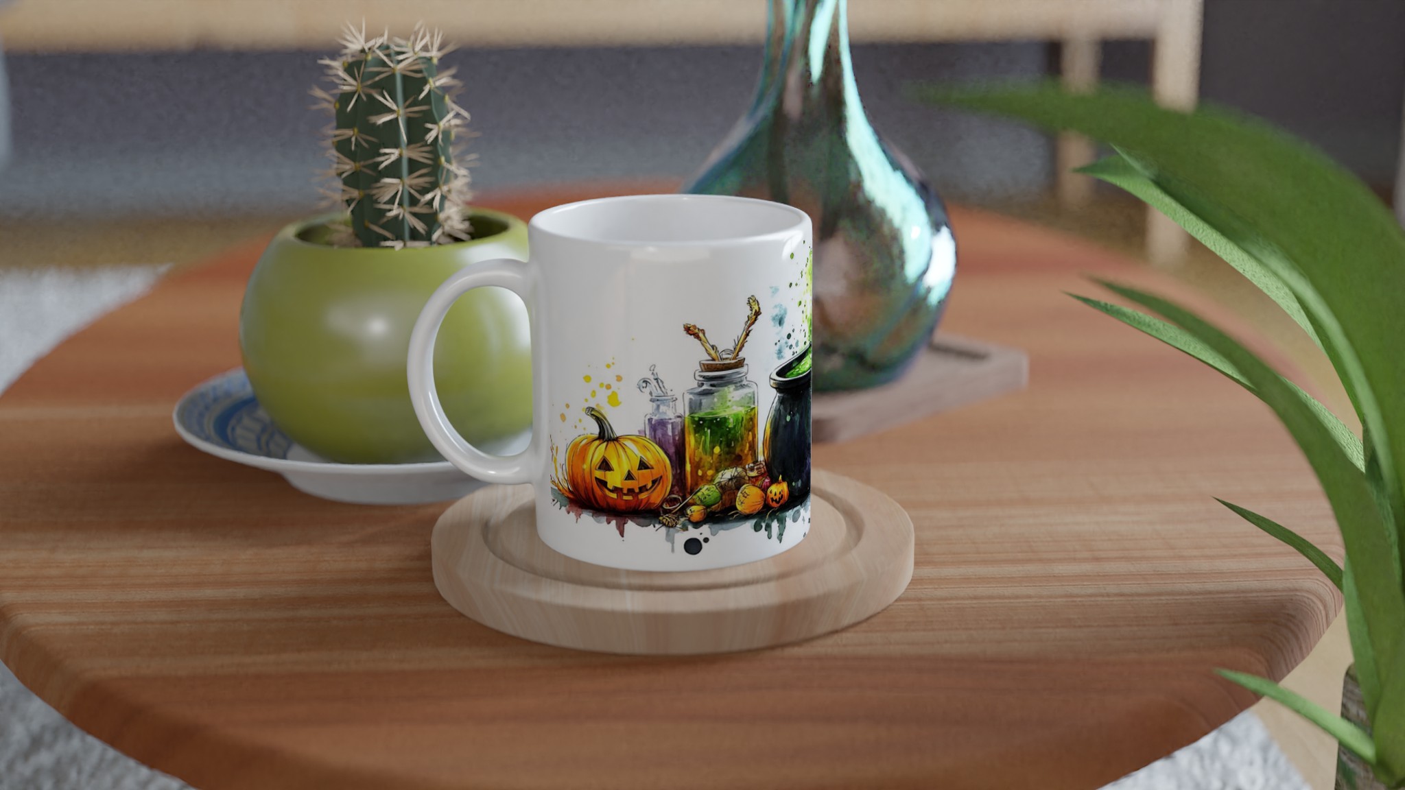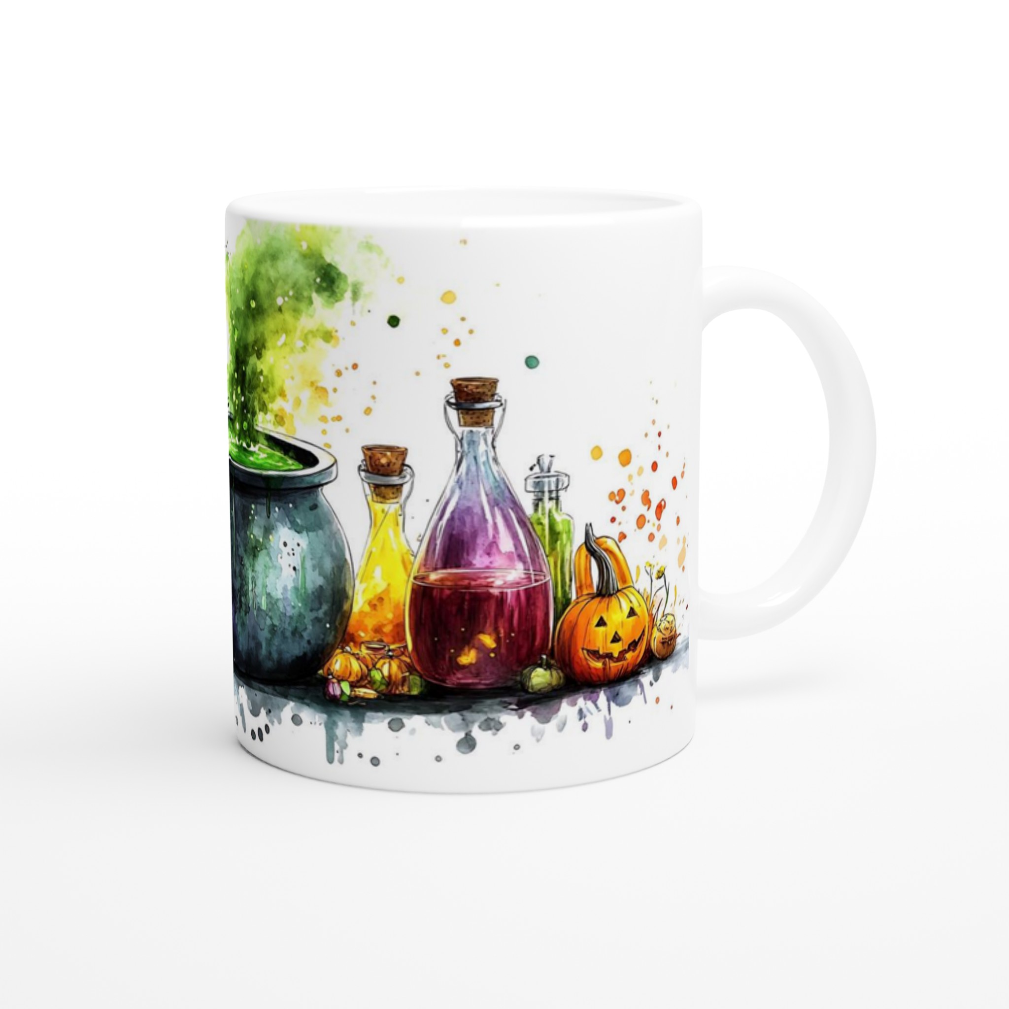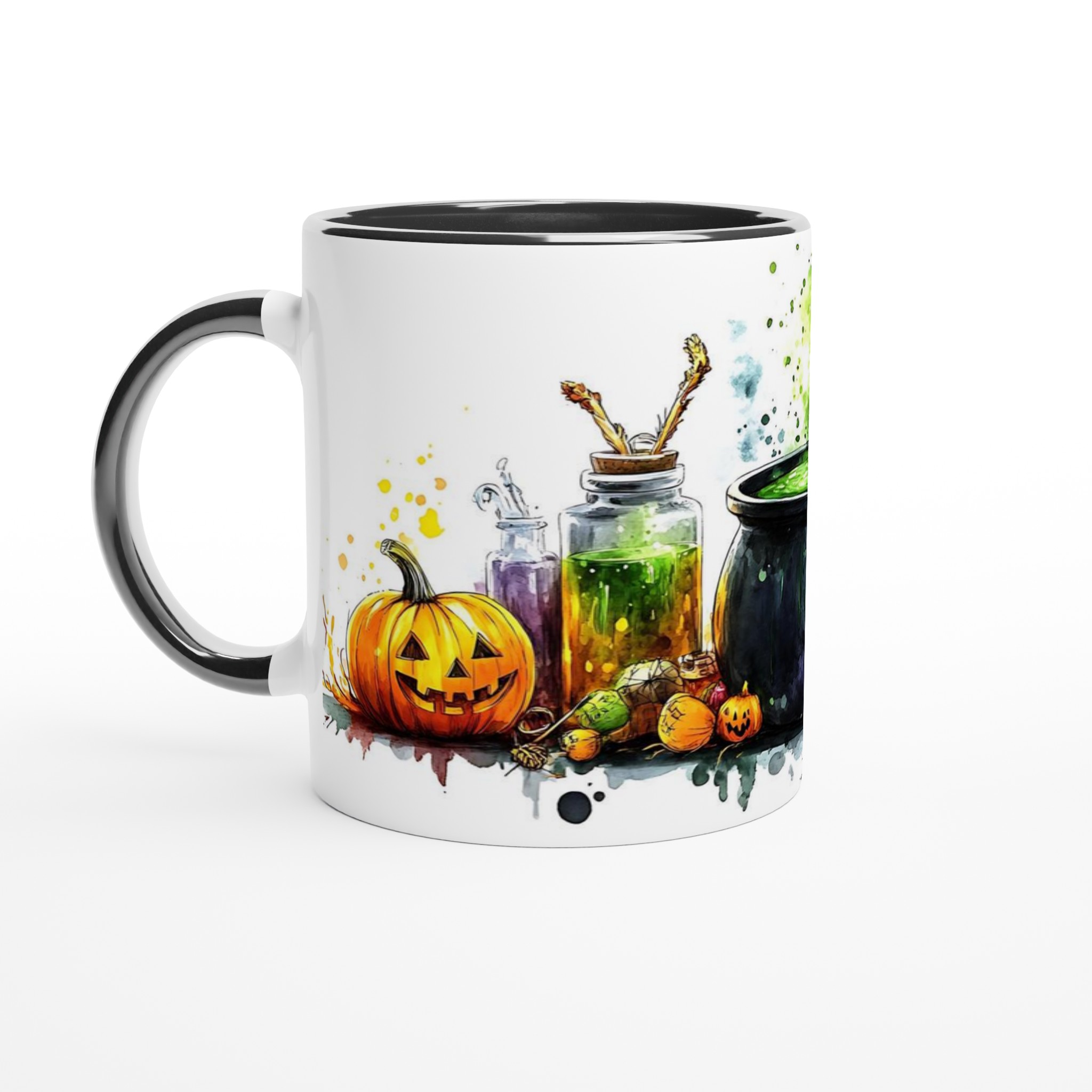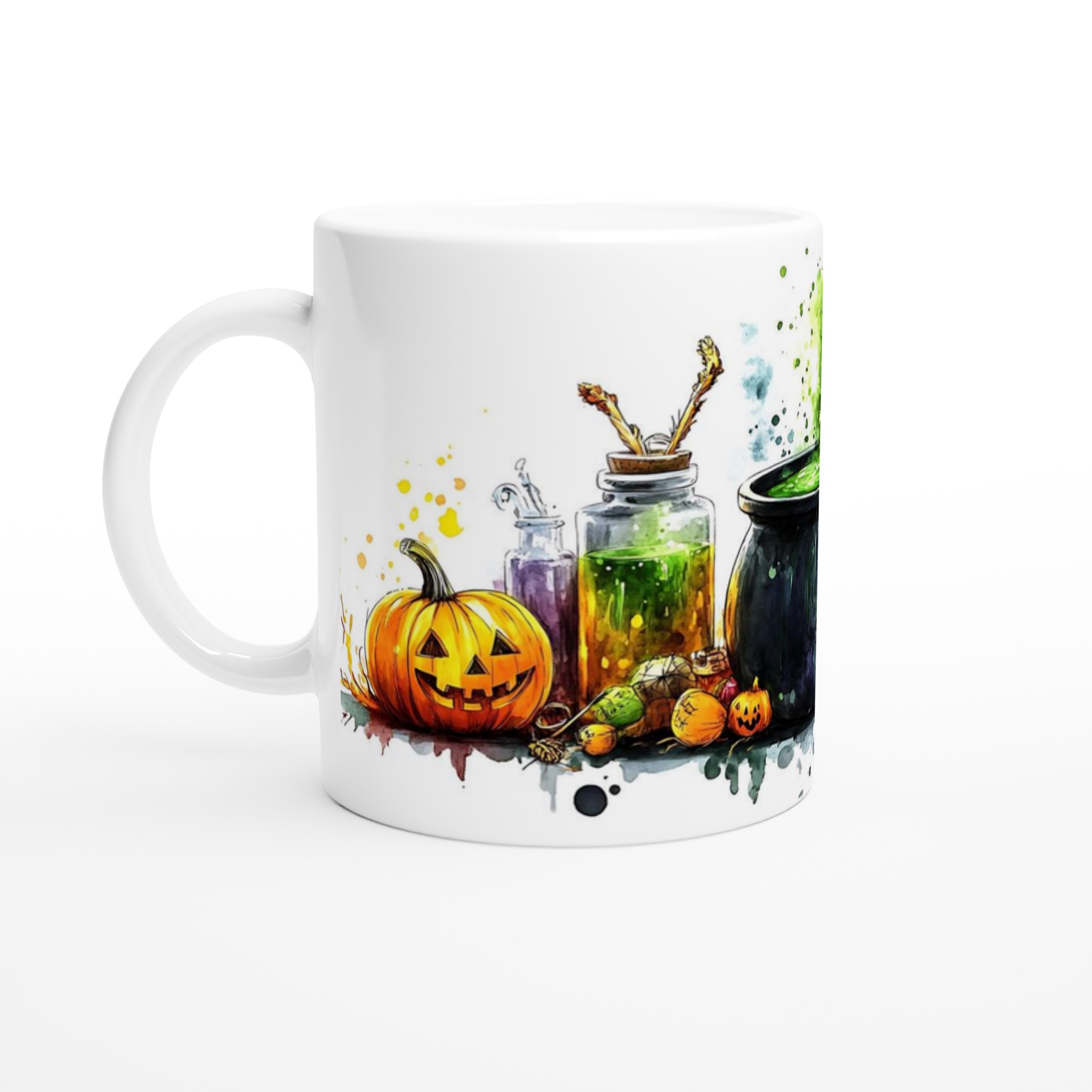 Spooky Watercolor Halloween Brew Mug – Mystical Potions & Jack-O’-Lantern Art, 11oz Ceramic