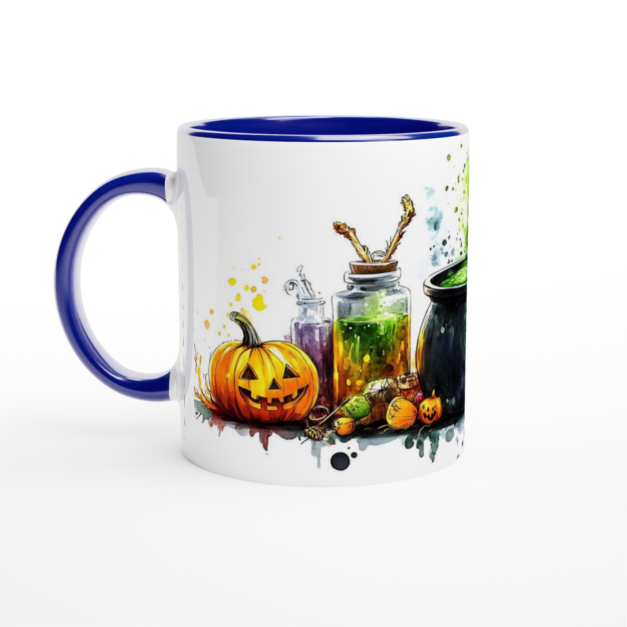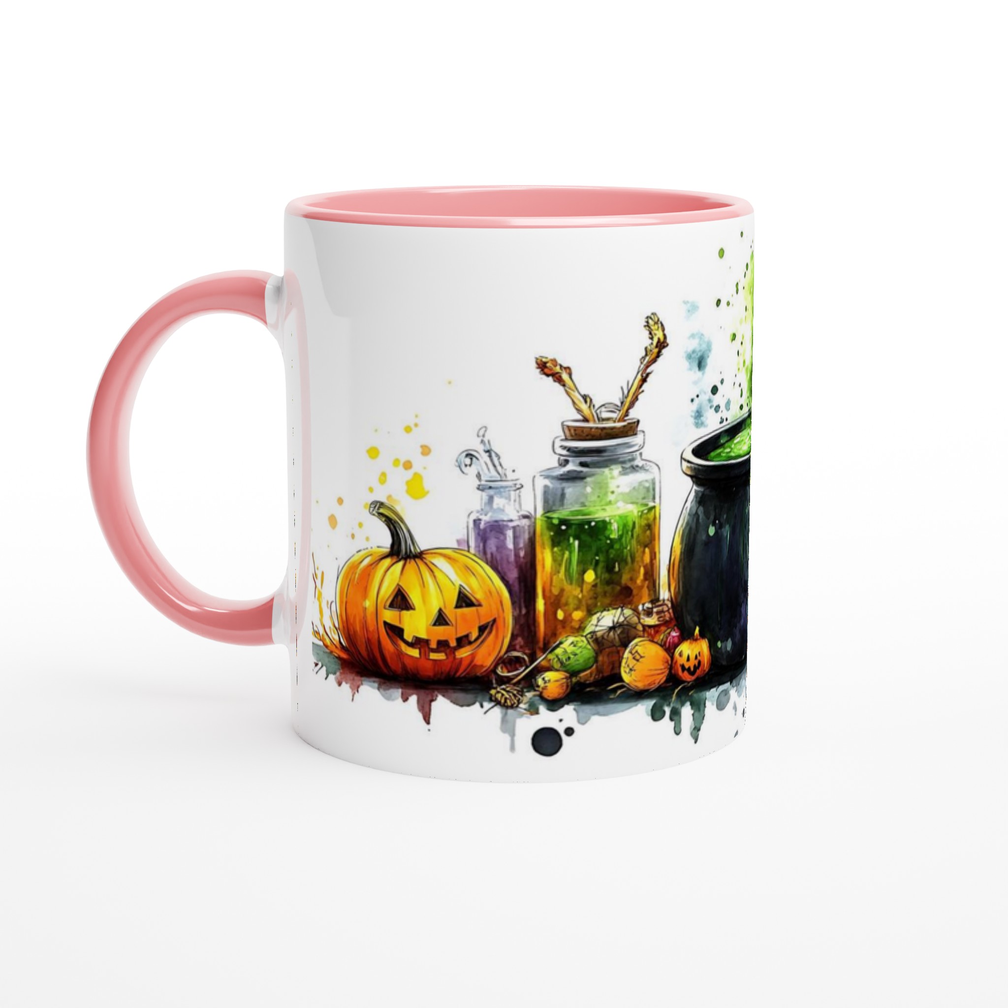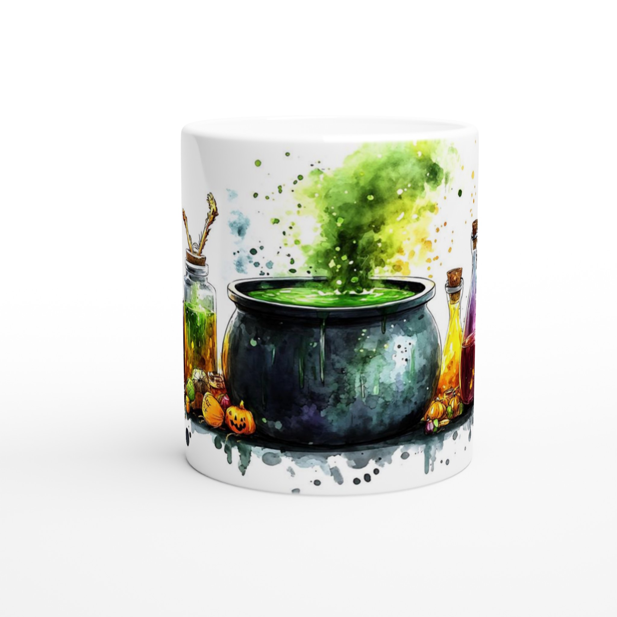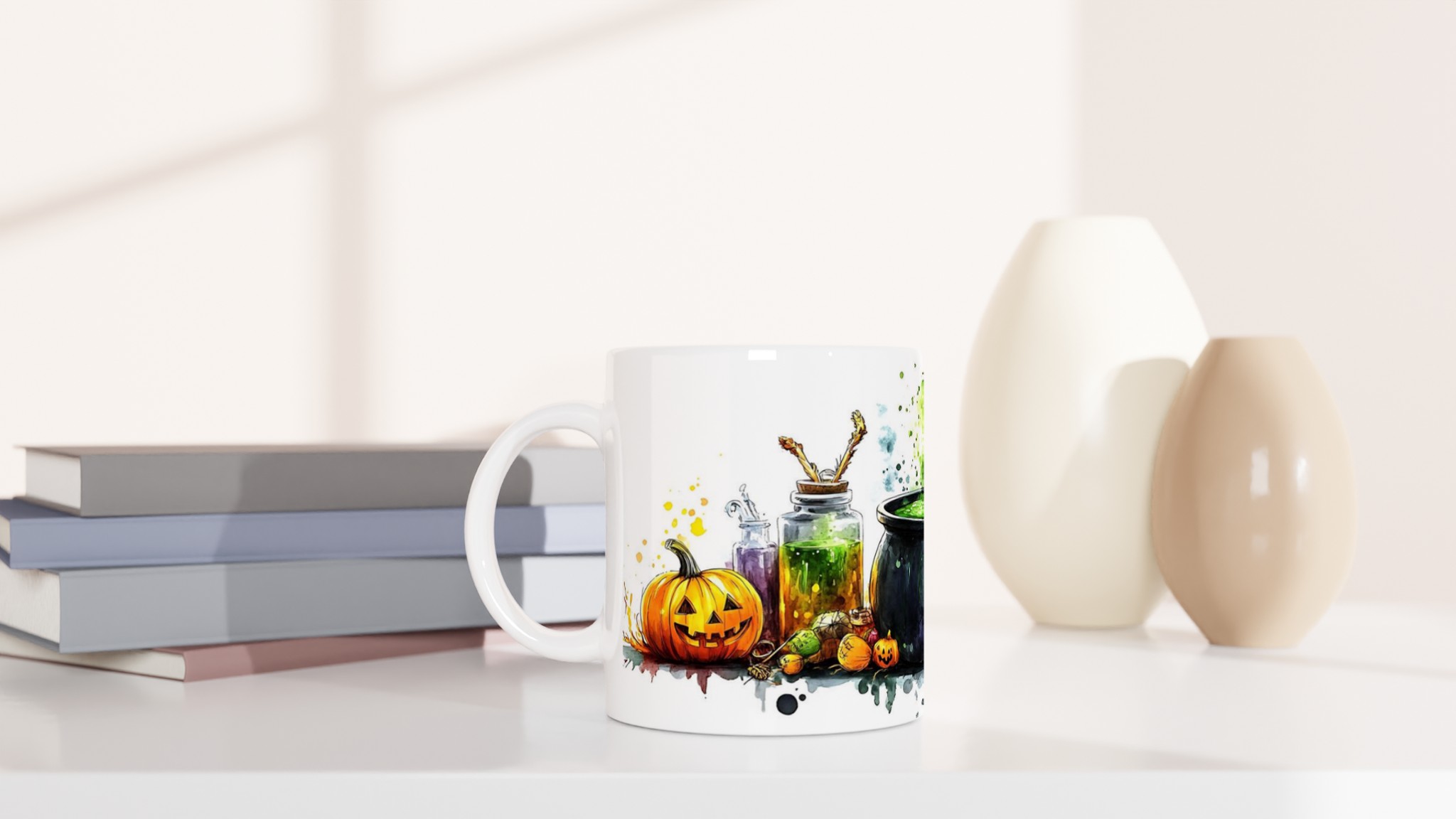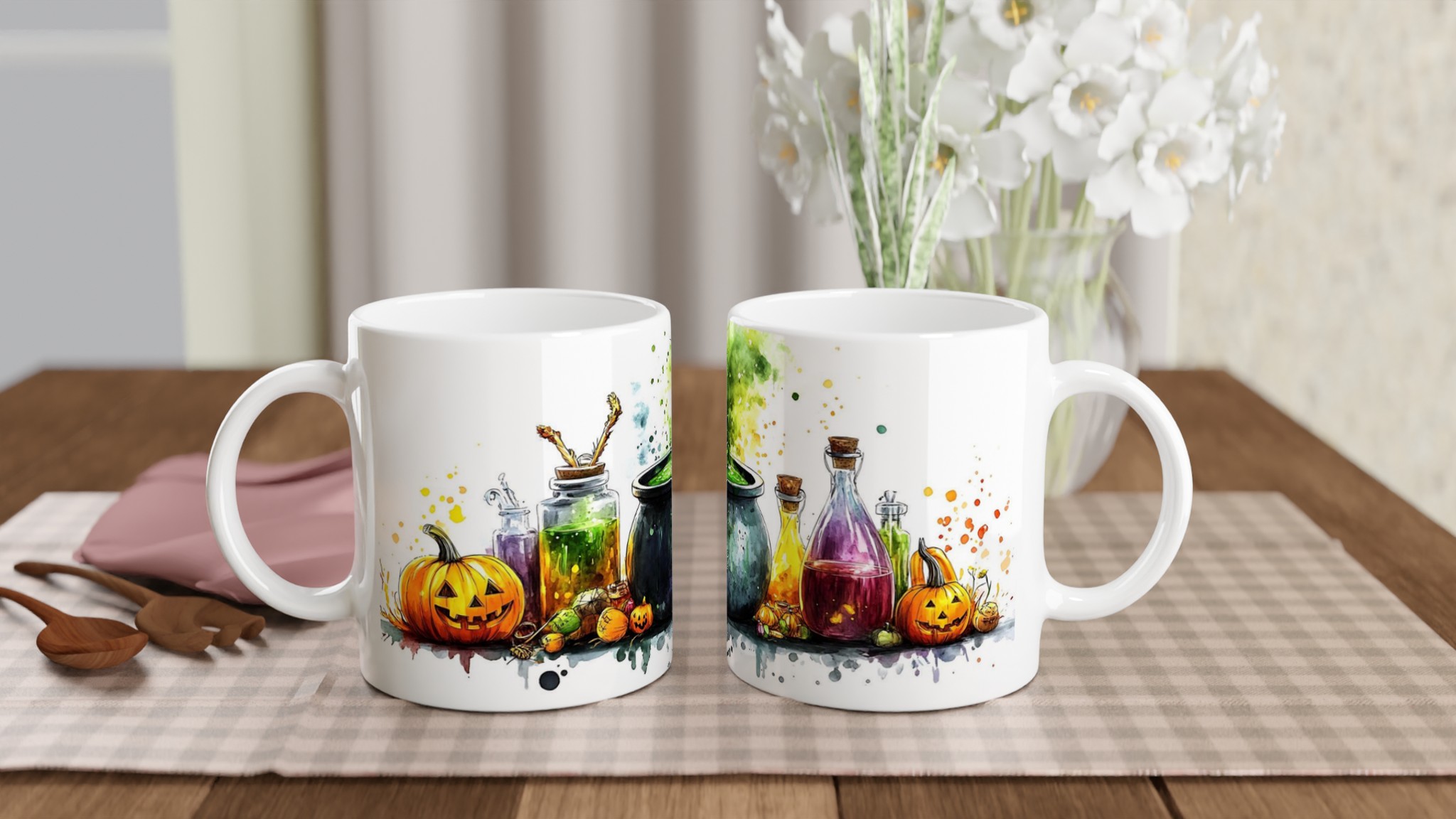 Spooky Watercolor Halloween Brew Mug – Mystical Potions & Jack-O’-Lantern Art, 11oz Ceramic