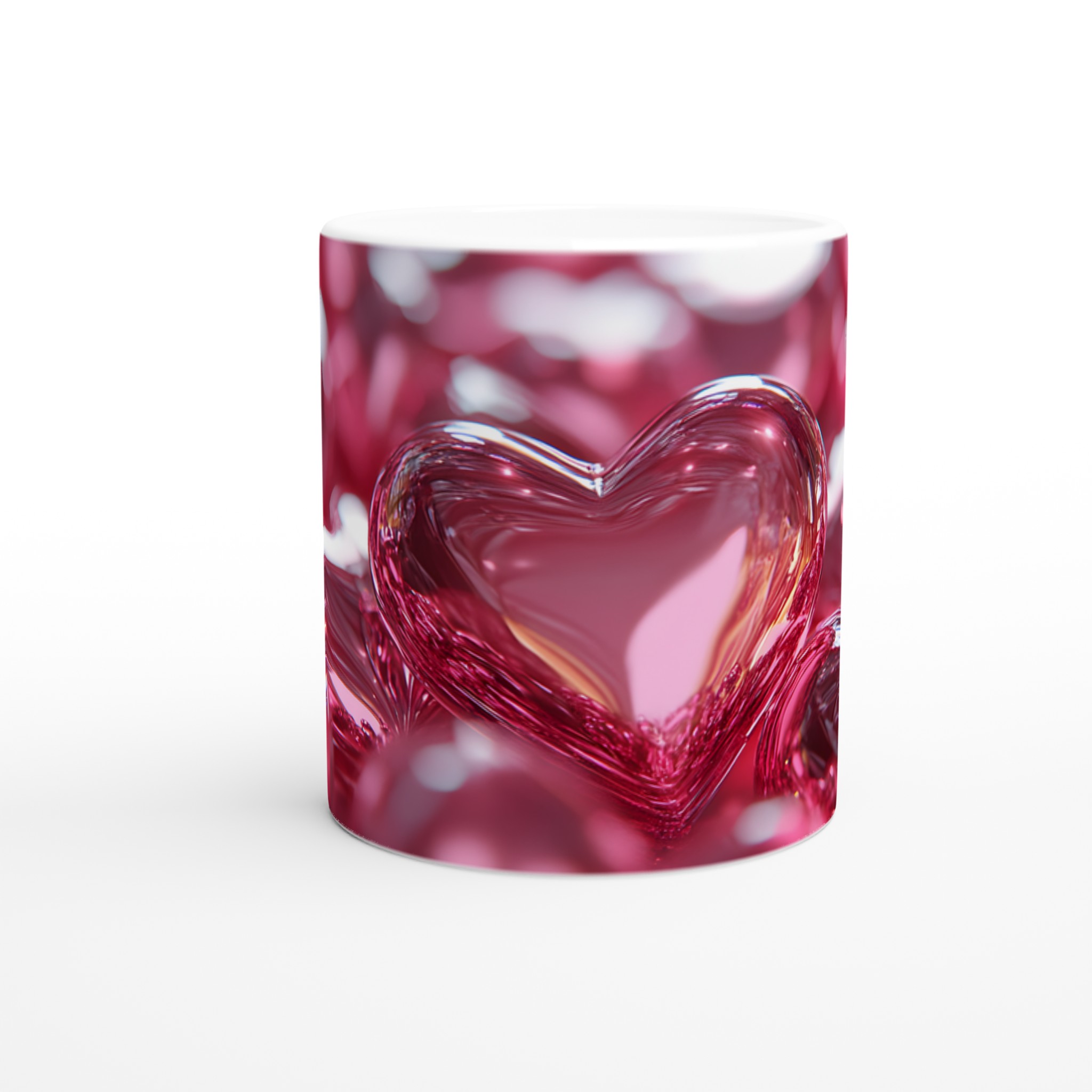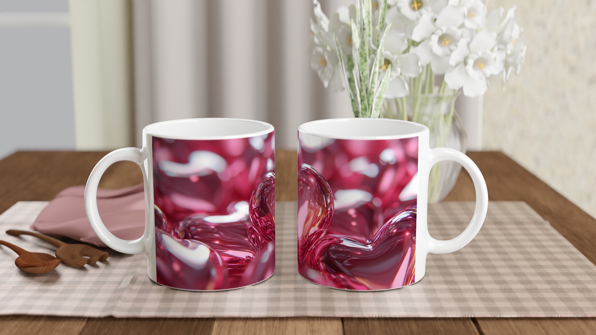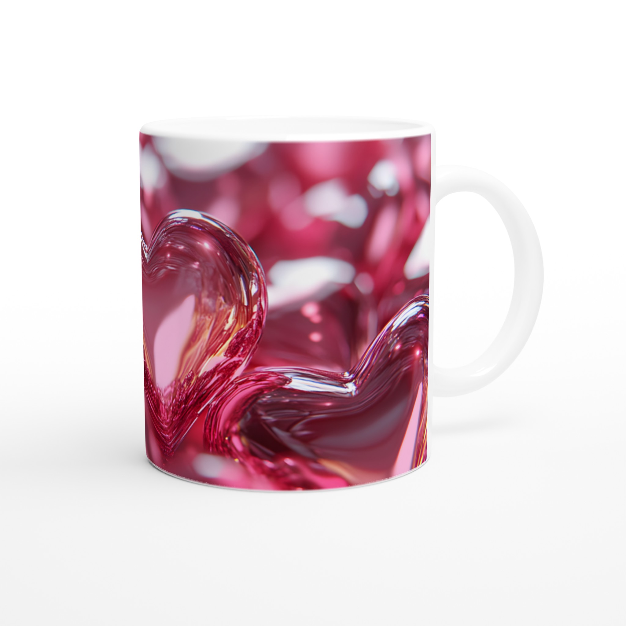 Romantic Pink Hearts 11oz Ceramic Mug – Perfect Gift in Your Choice of Seven Vibrant Hues