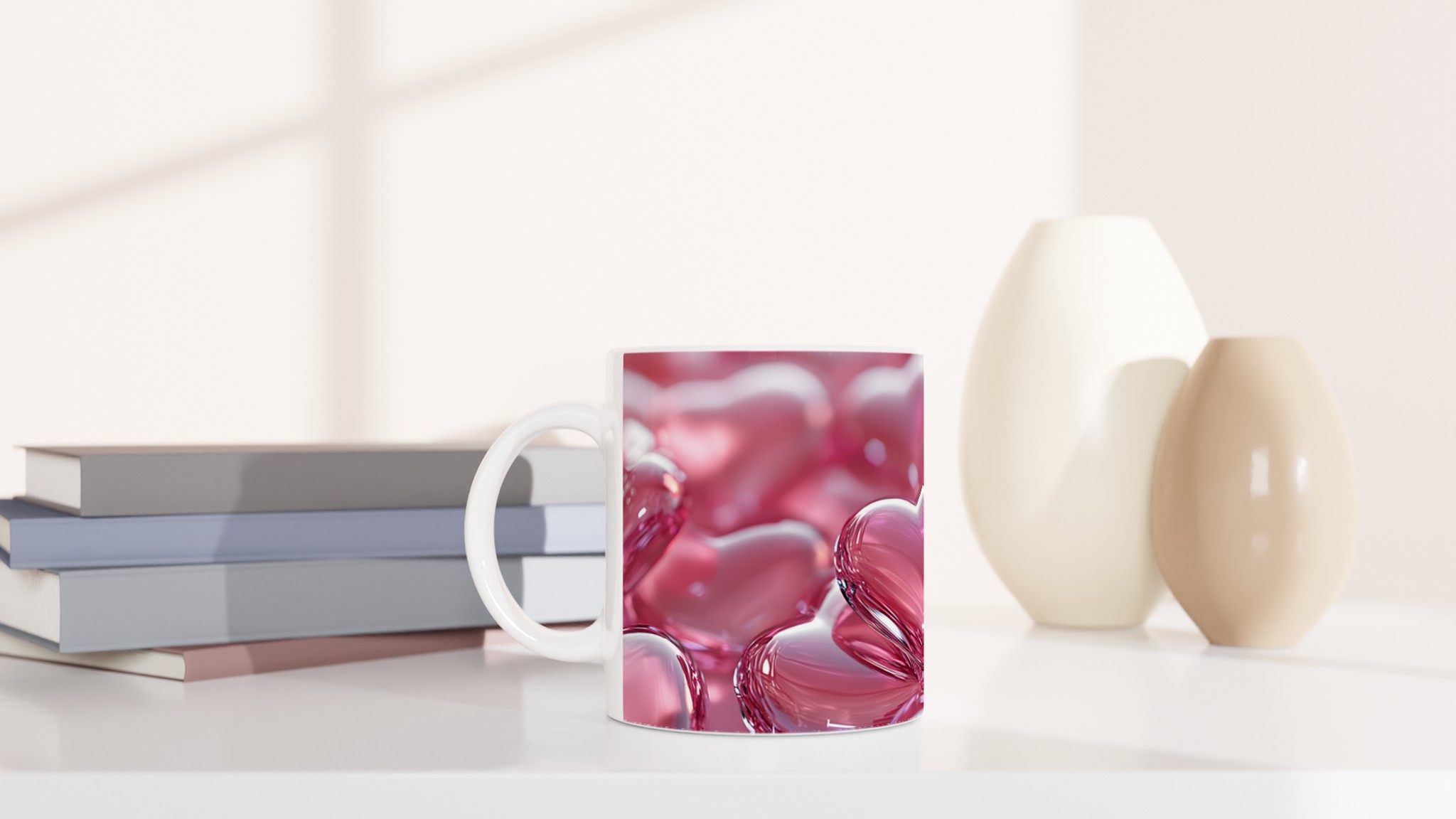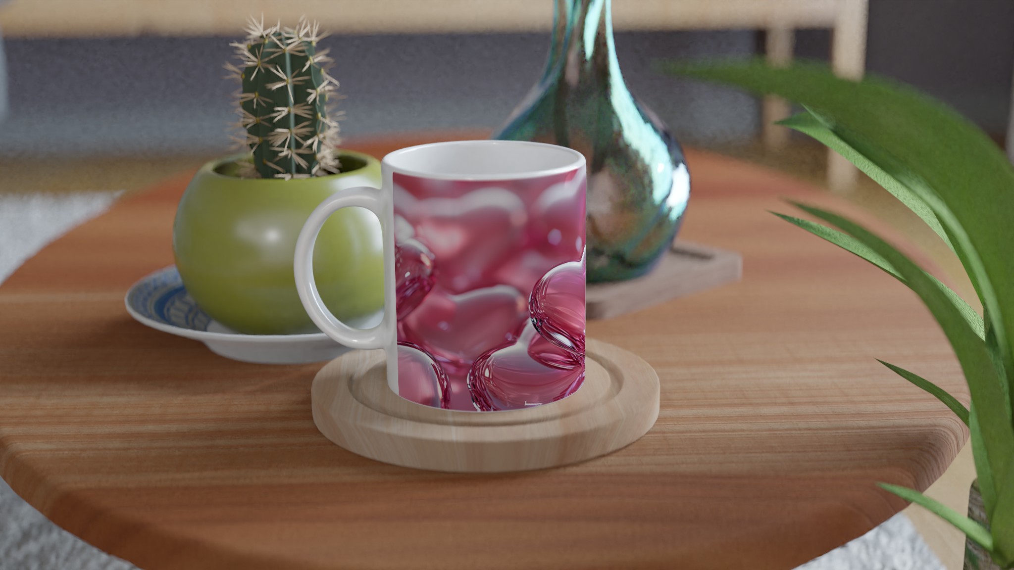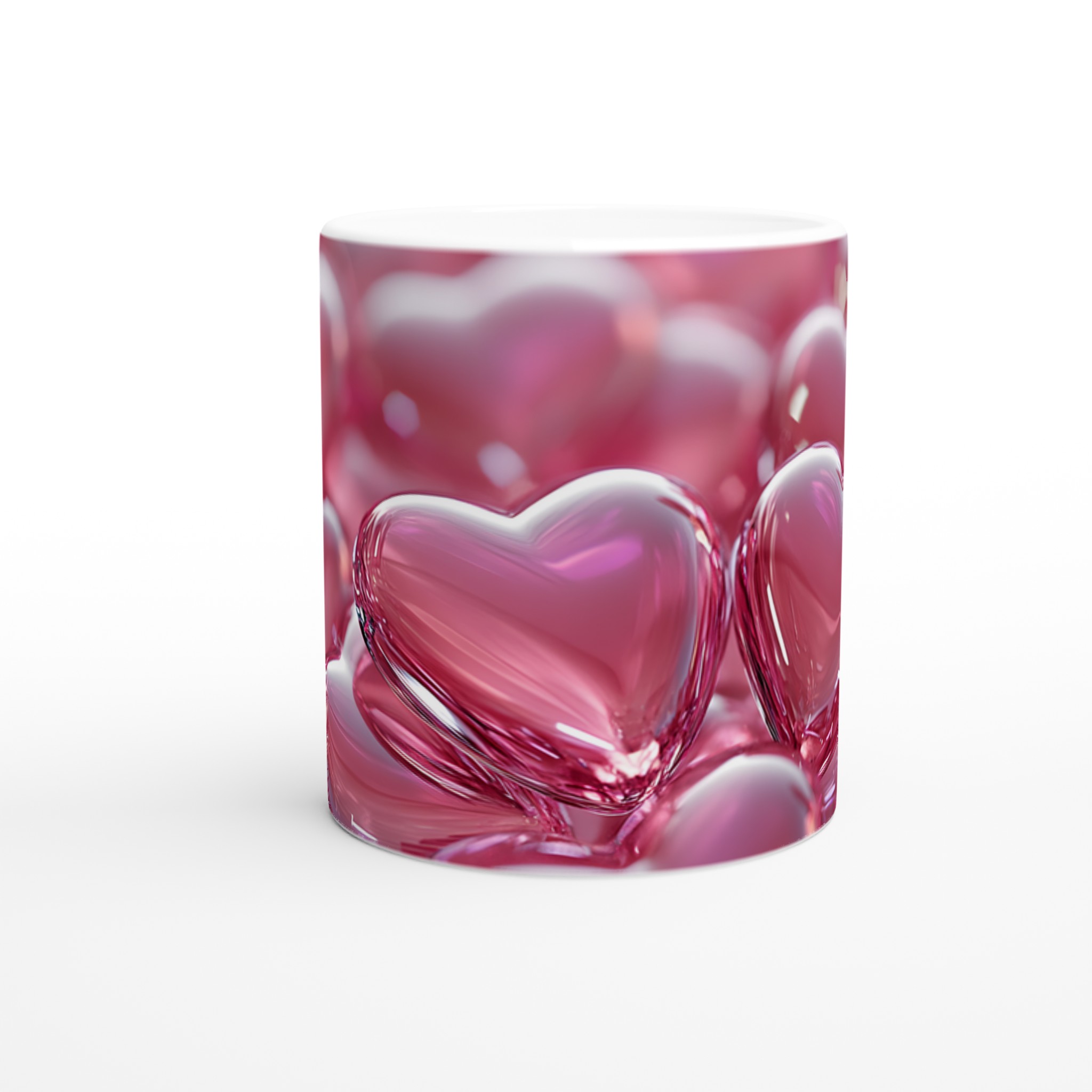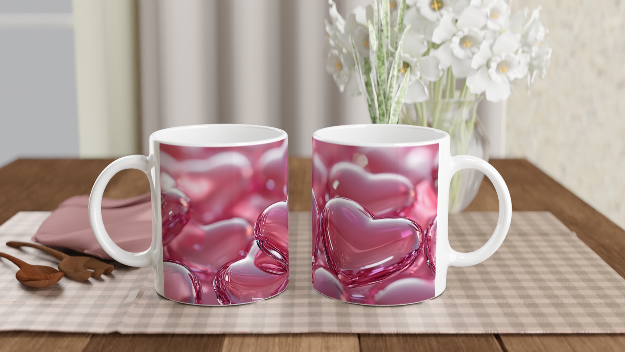 Romantic Pink Hearts 11oz Ceramic Mug – Perfect for Love & Warm Beverages