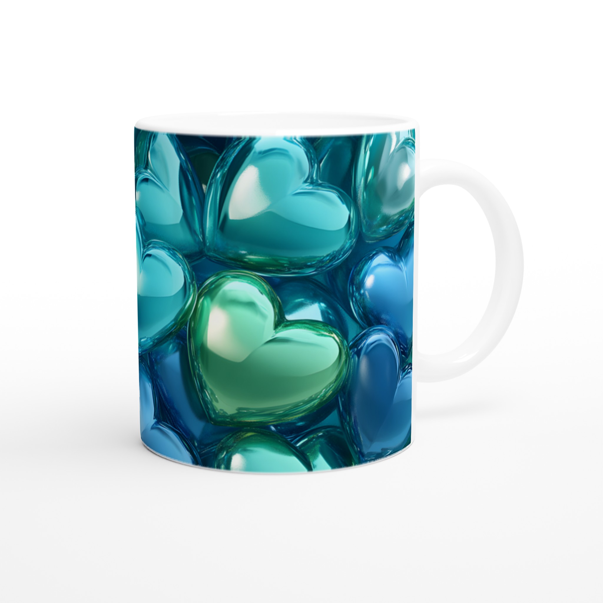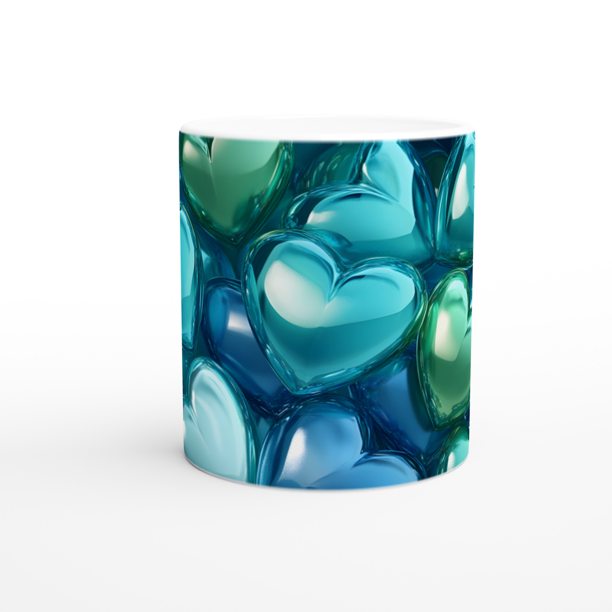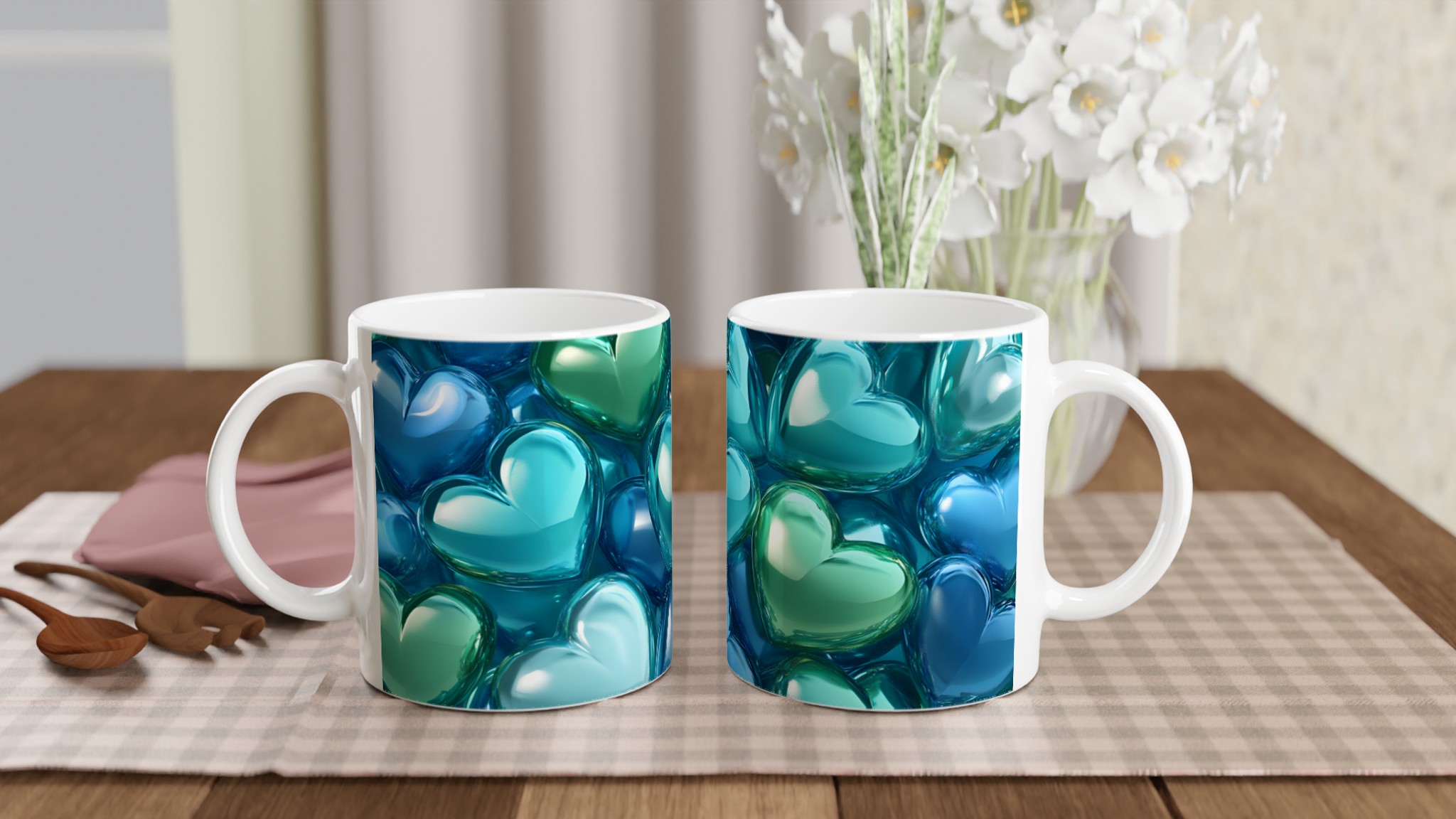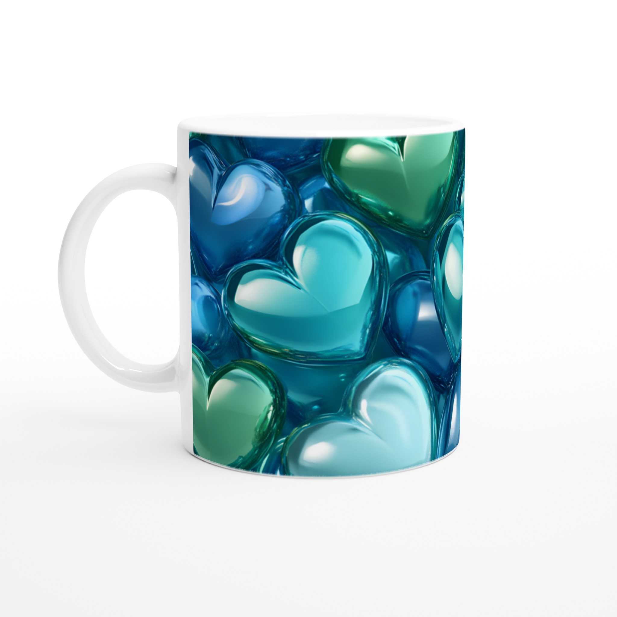 Vibrant Teal & Aqua Heart 11oz Ceramic Mug – A Splash of Love in Every Sip