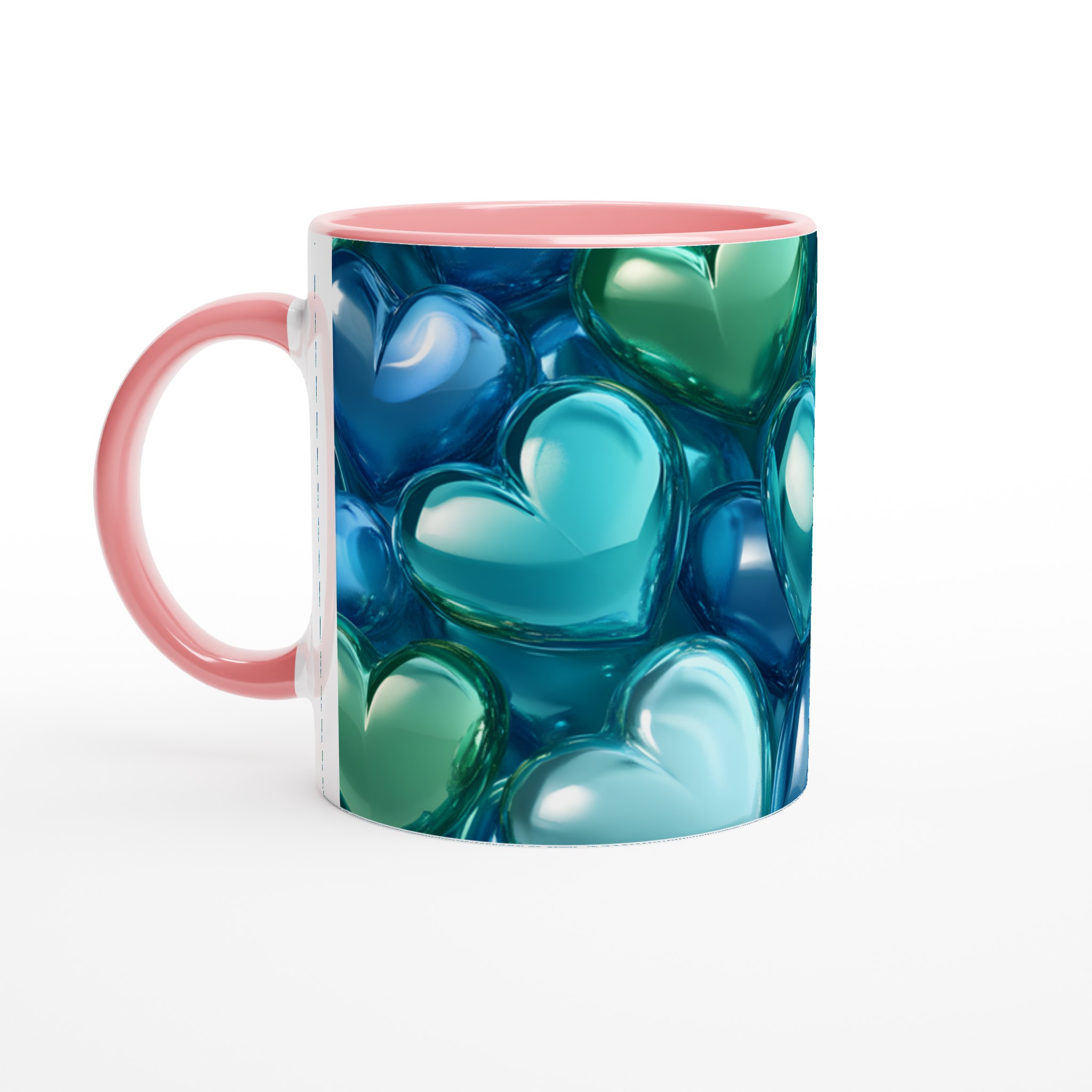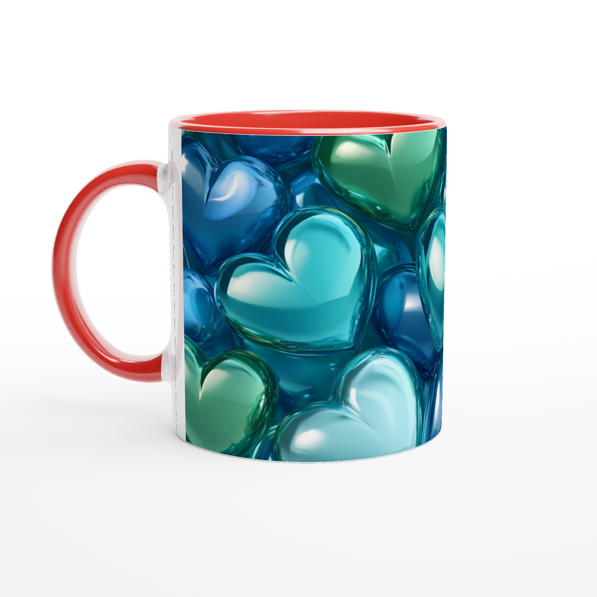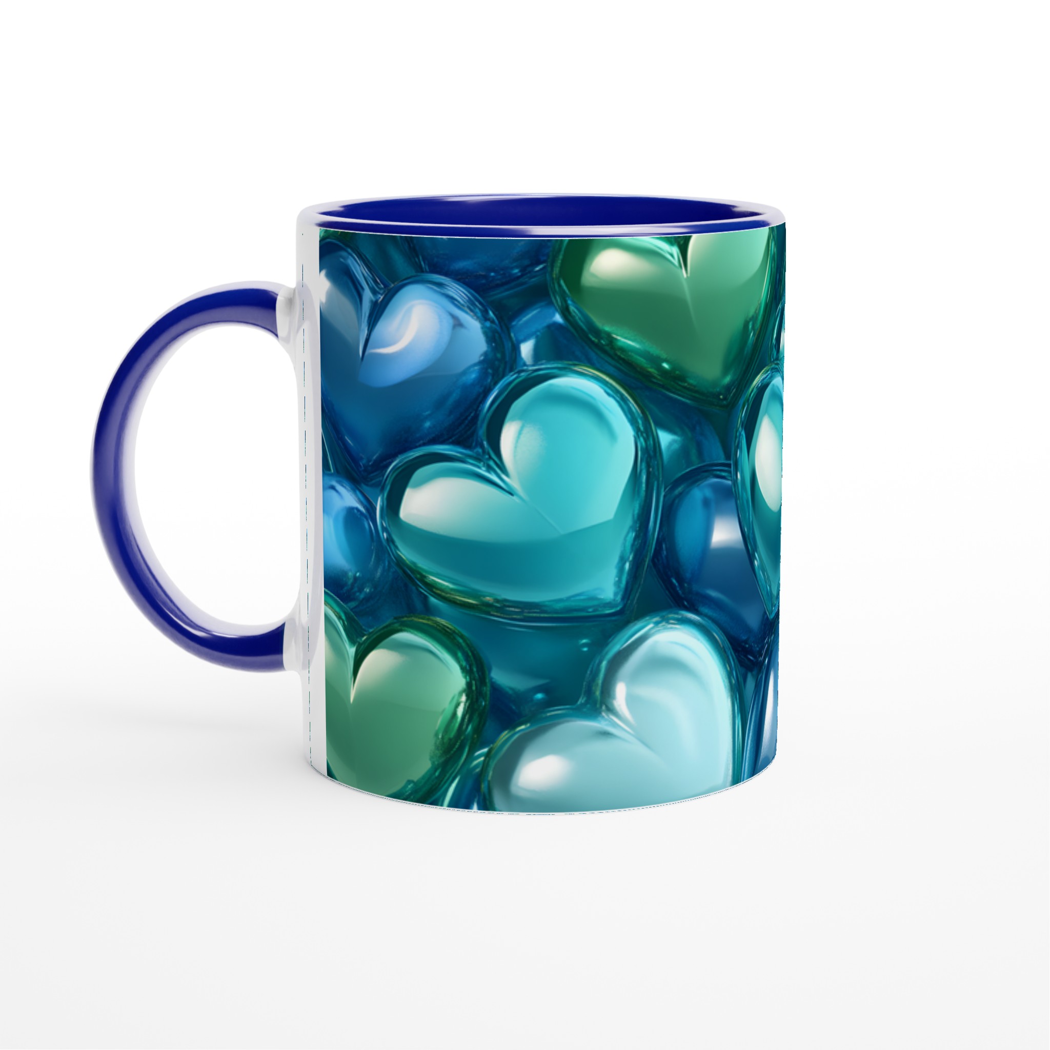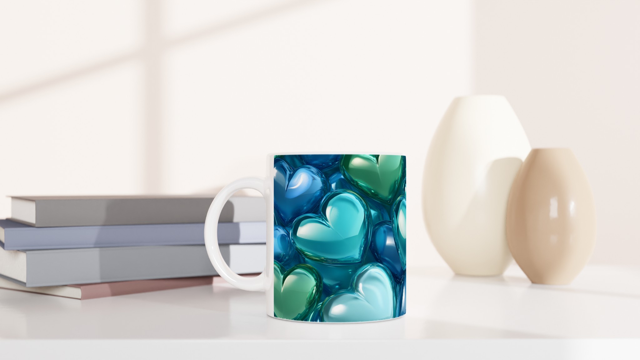 Vibrant Teal & Aqua Heart 11oz Ceramic Mug – A Splash of Love in Every Sip