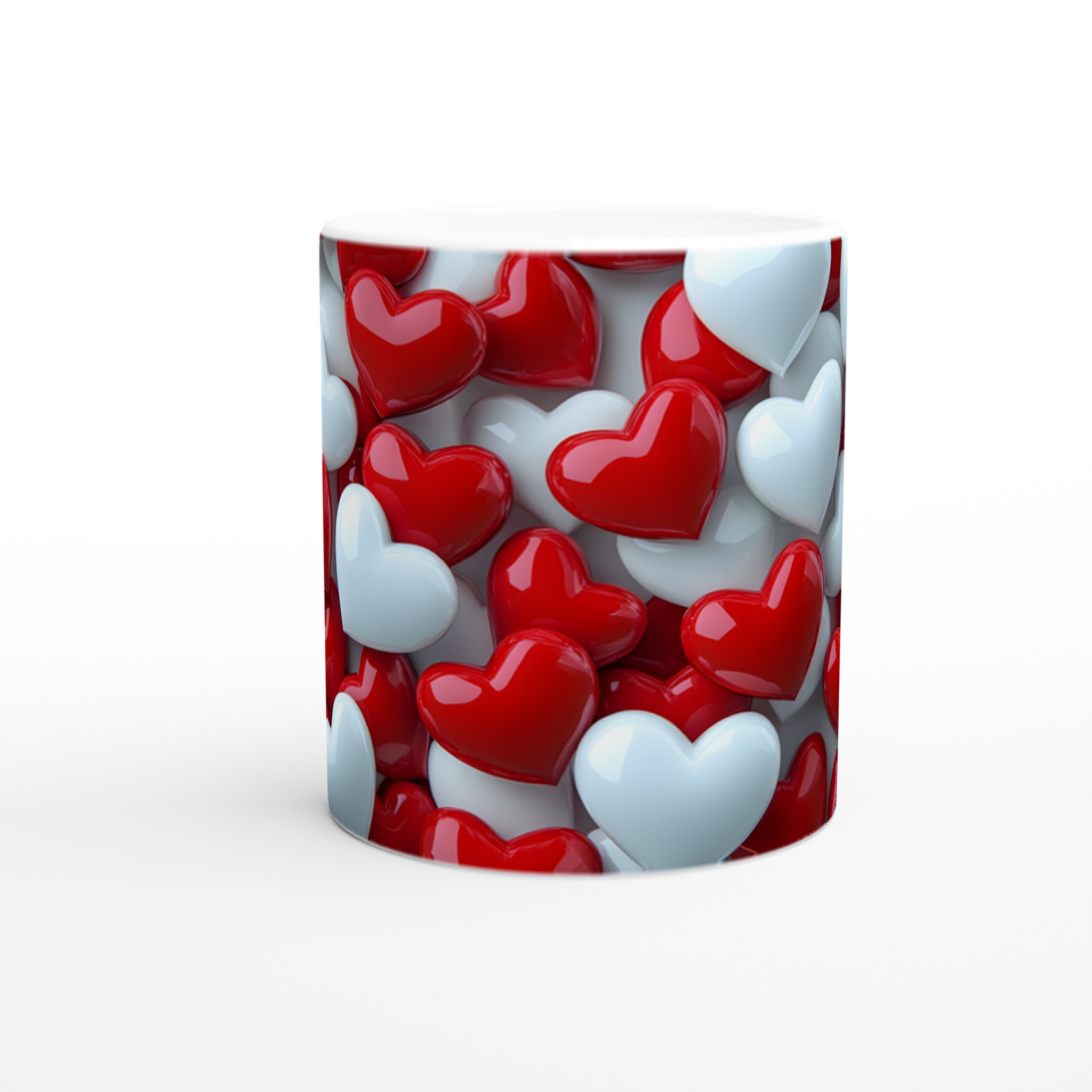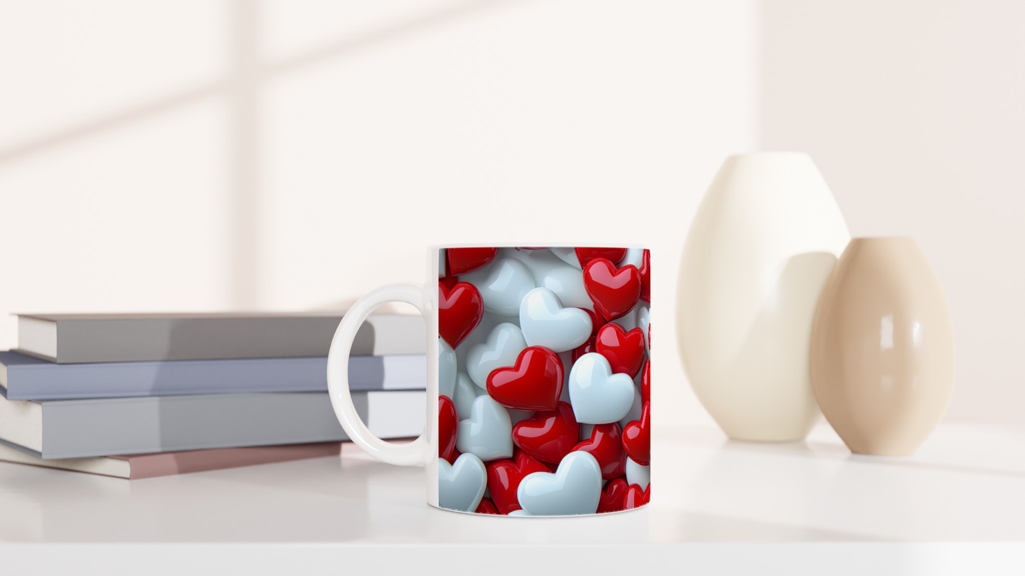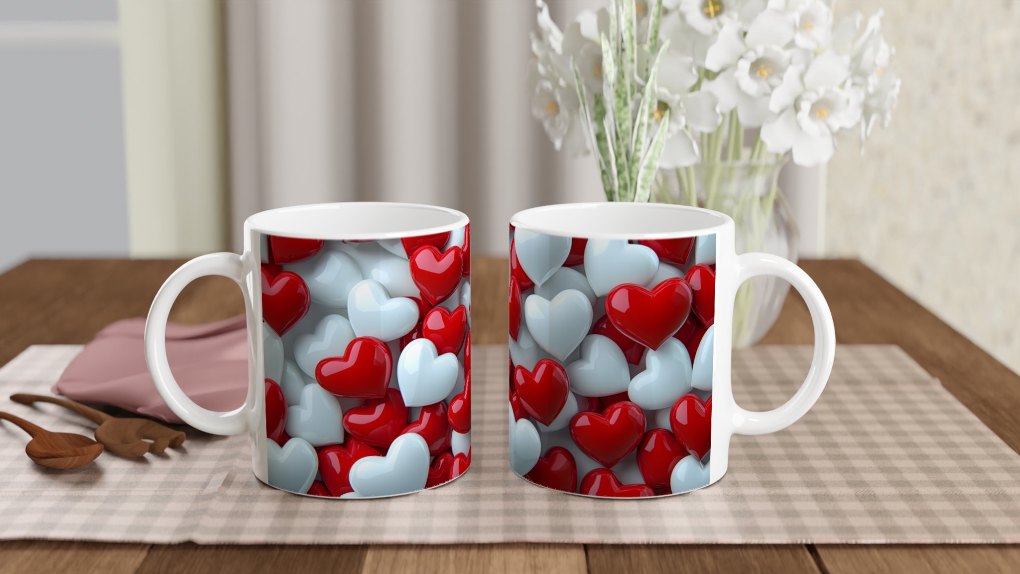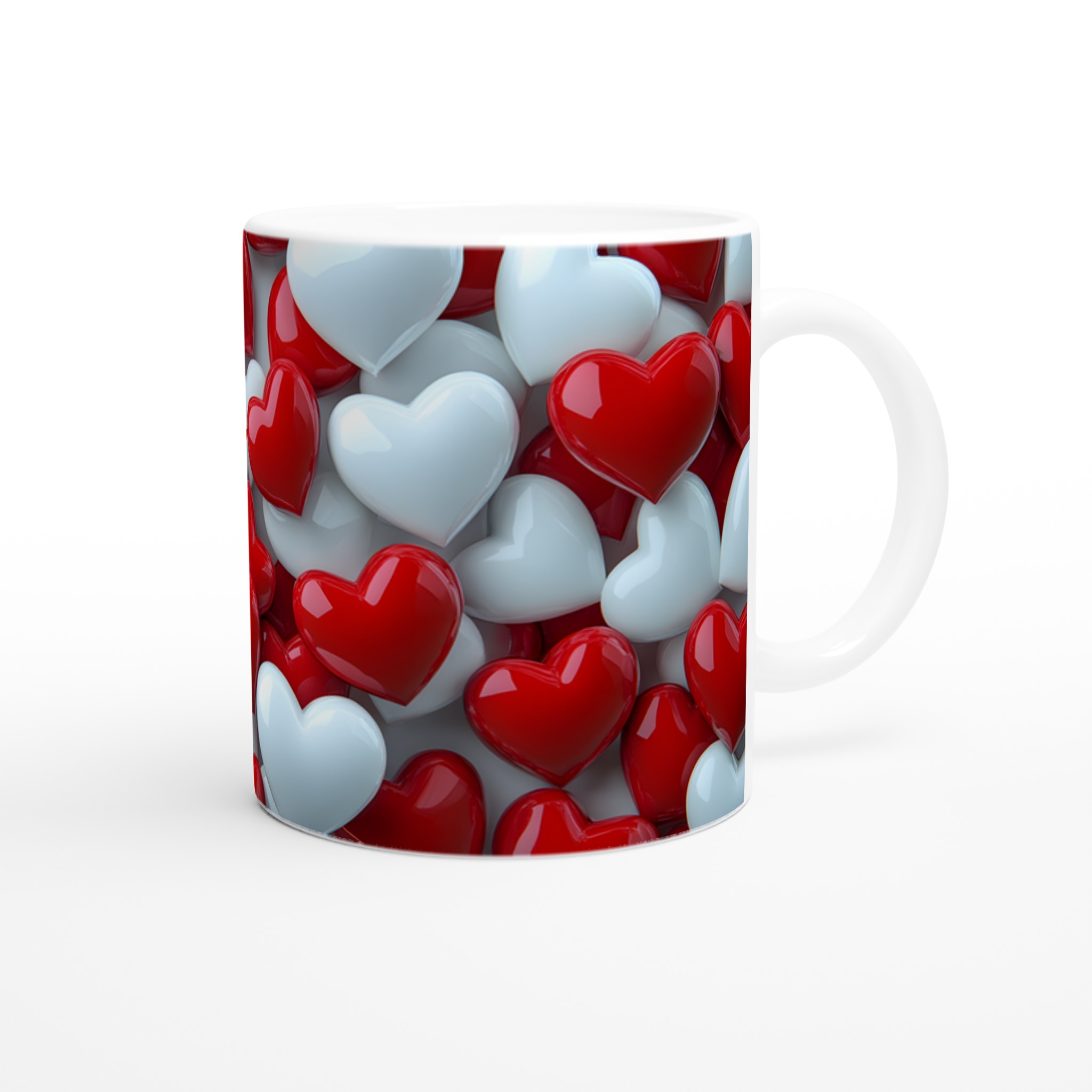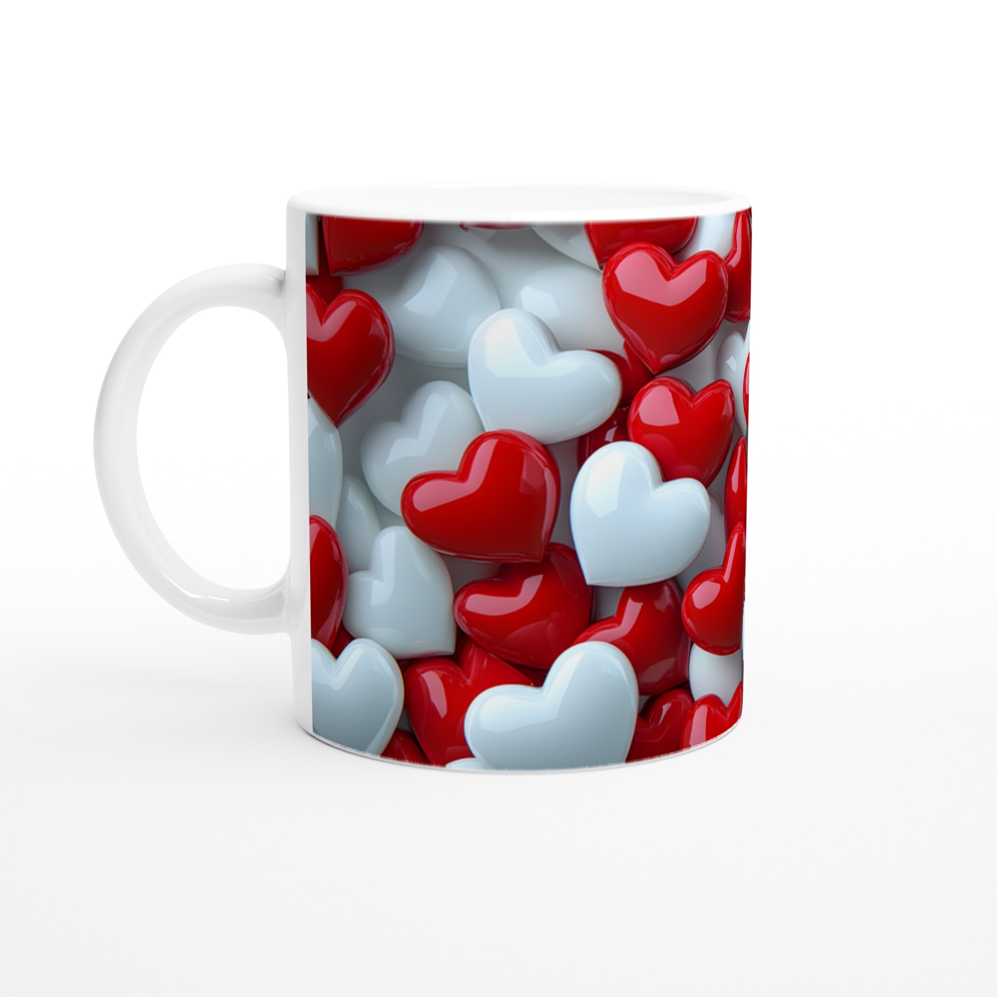 Valentine’s Day Red & White Hearts 11oz Ceramic Mug – Share the Love with Your Perfect Shade!
