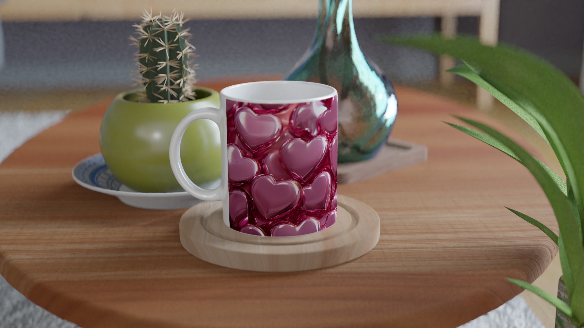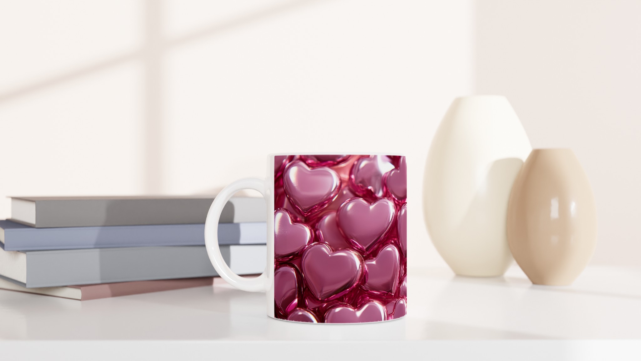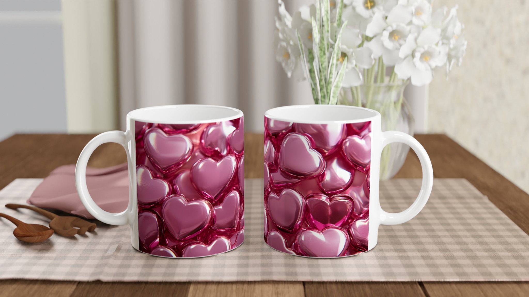 Sweetheart Pink Ceramic Mug – 11oz Glossy White Mug for Coffee, Tea & Hot Chocolate in Vibrant Ceramic Colors