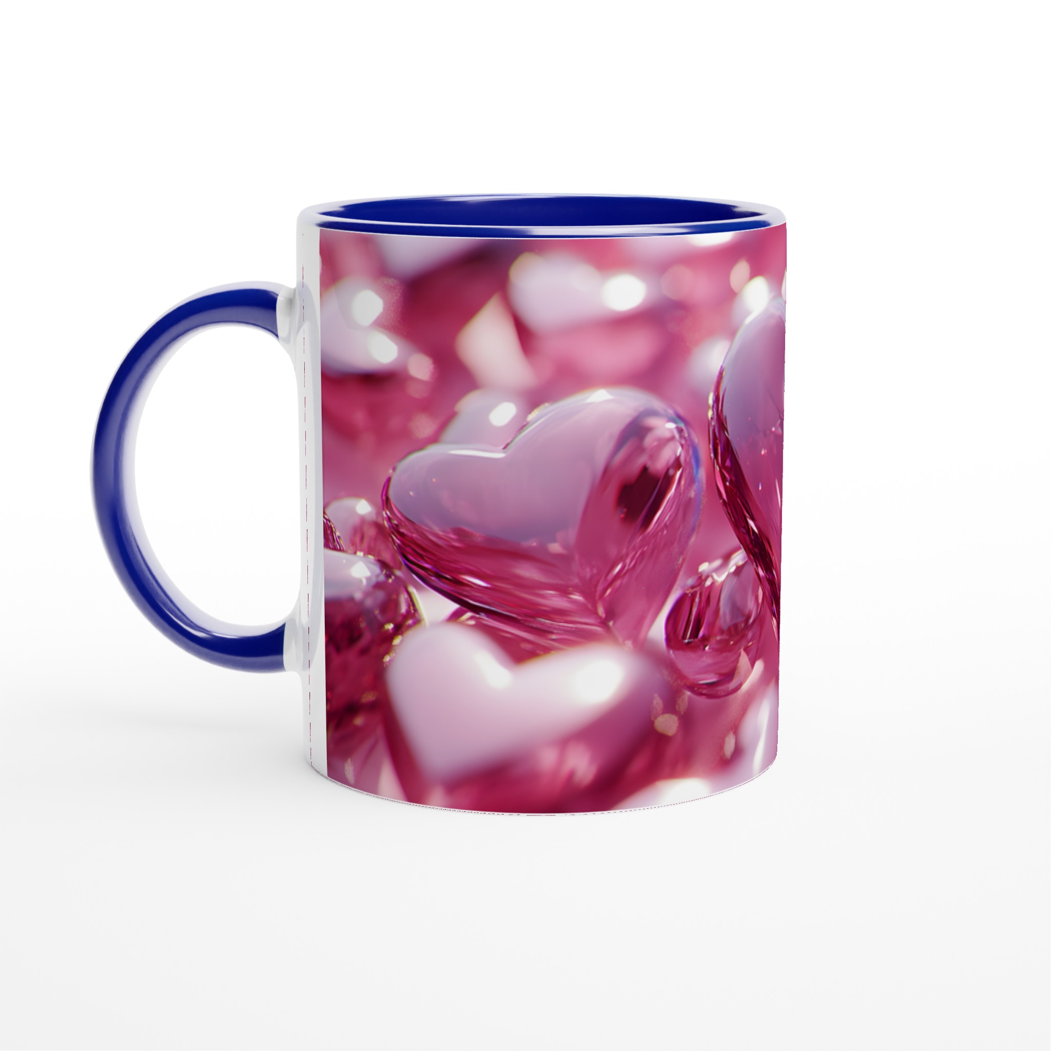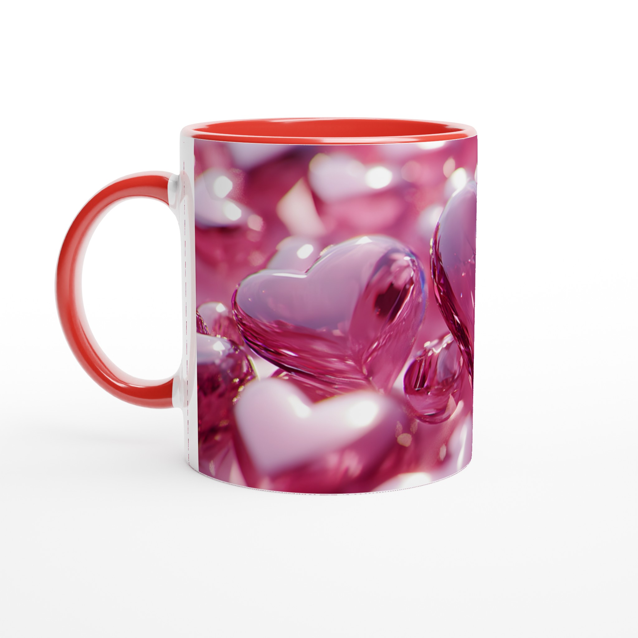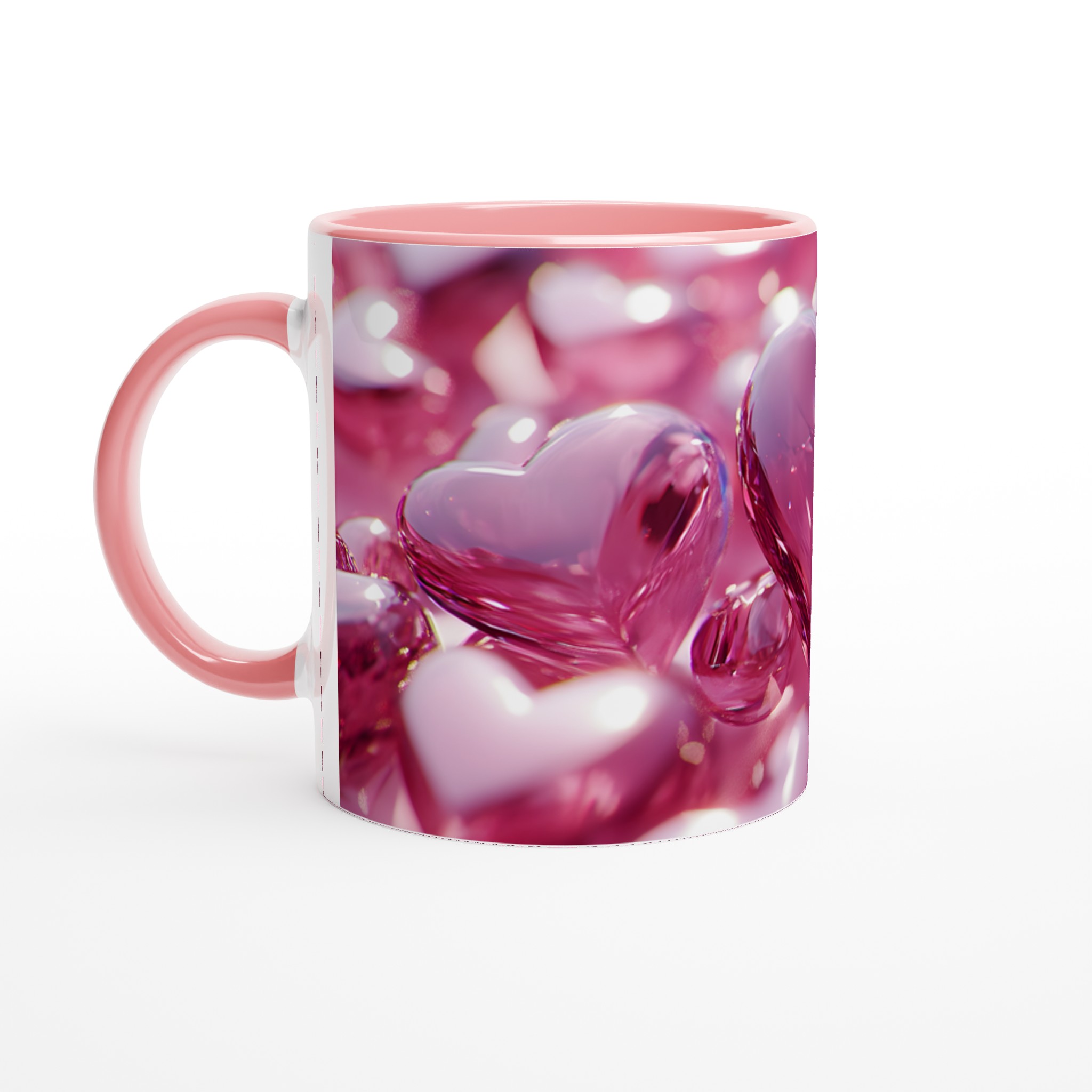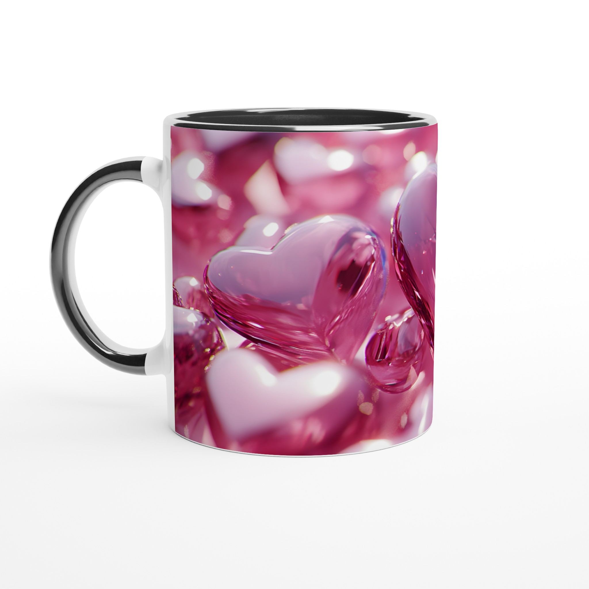 Sparkling Pink Glass Hearts 11oz Ceramic Mug – Show Your Love in 7 Vibrant Colors