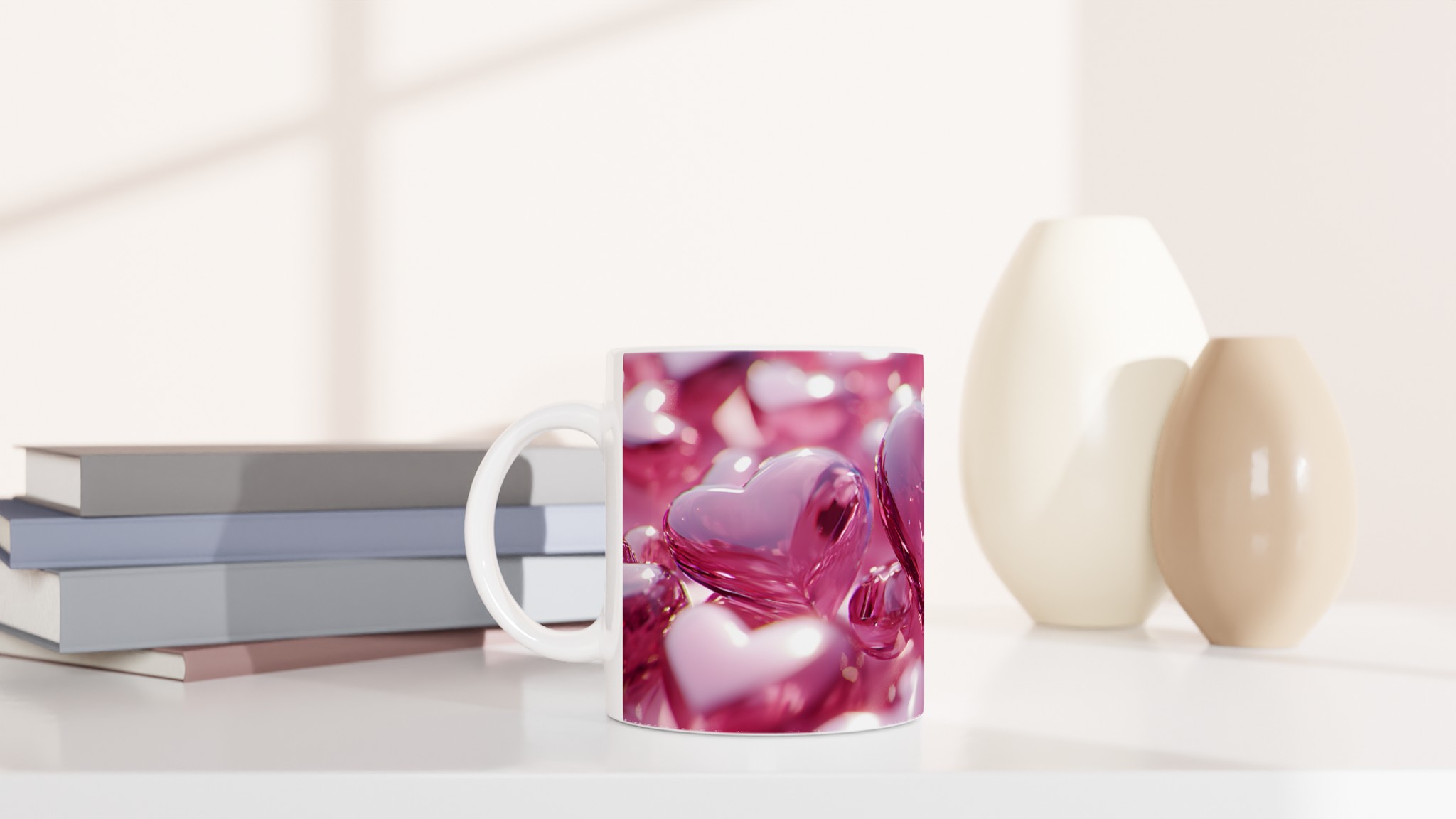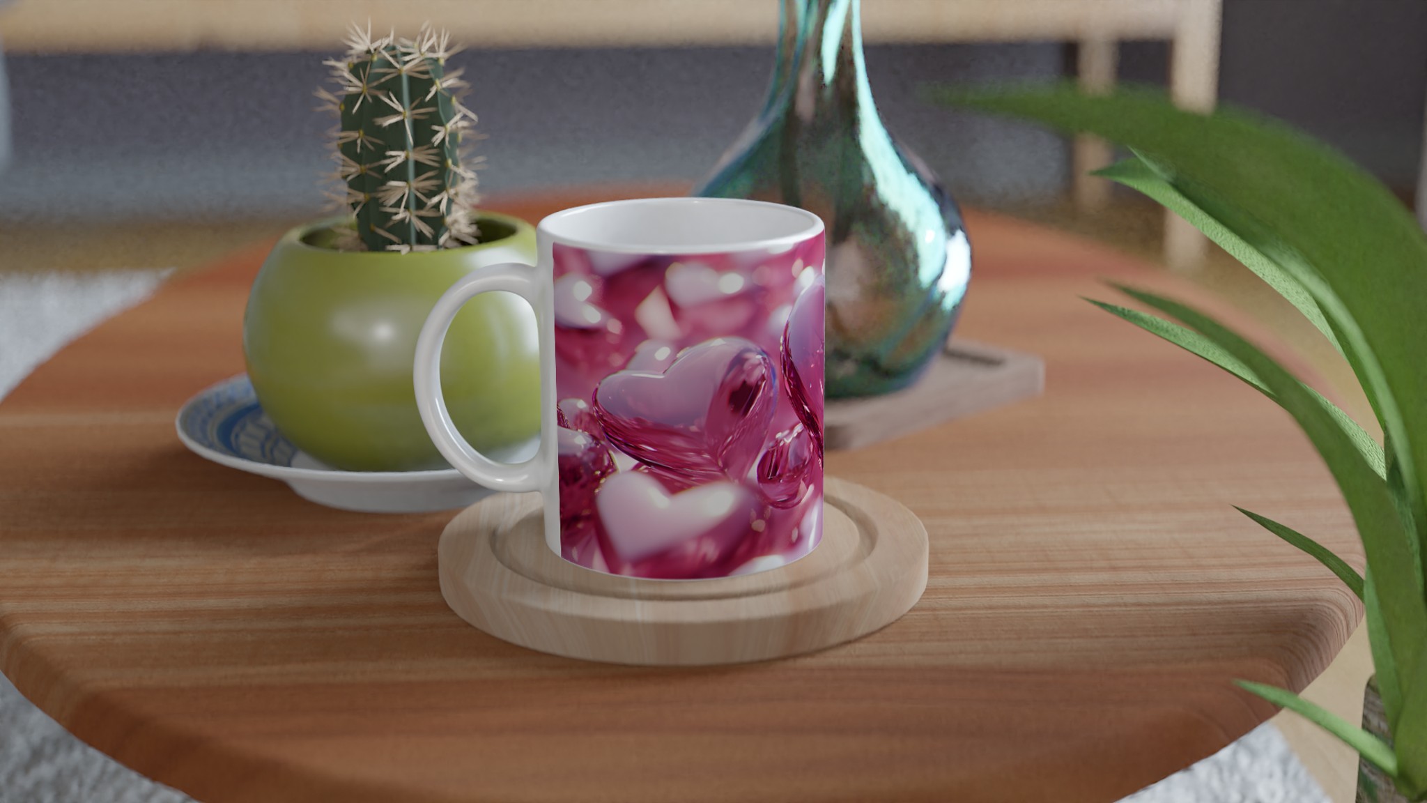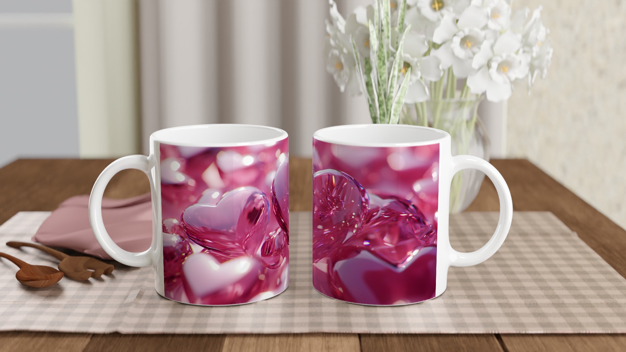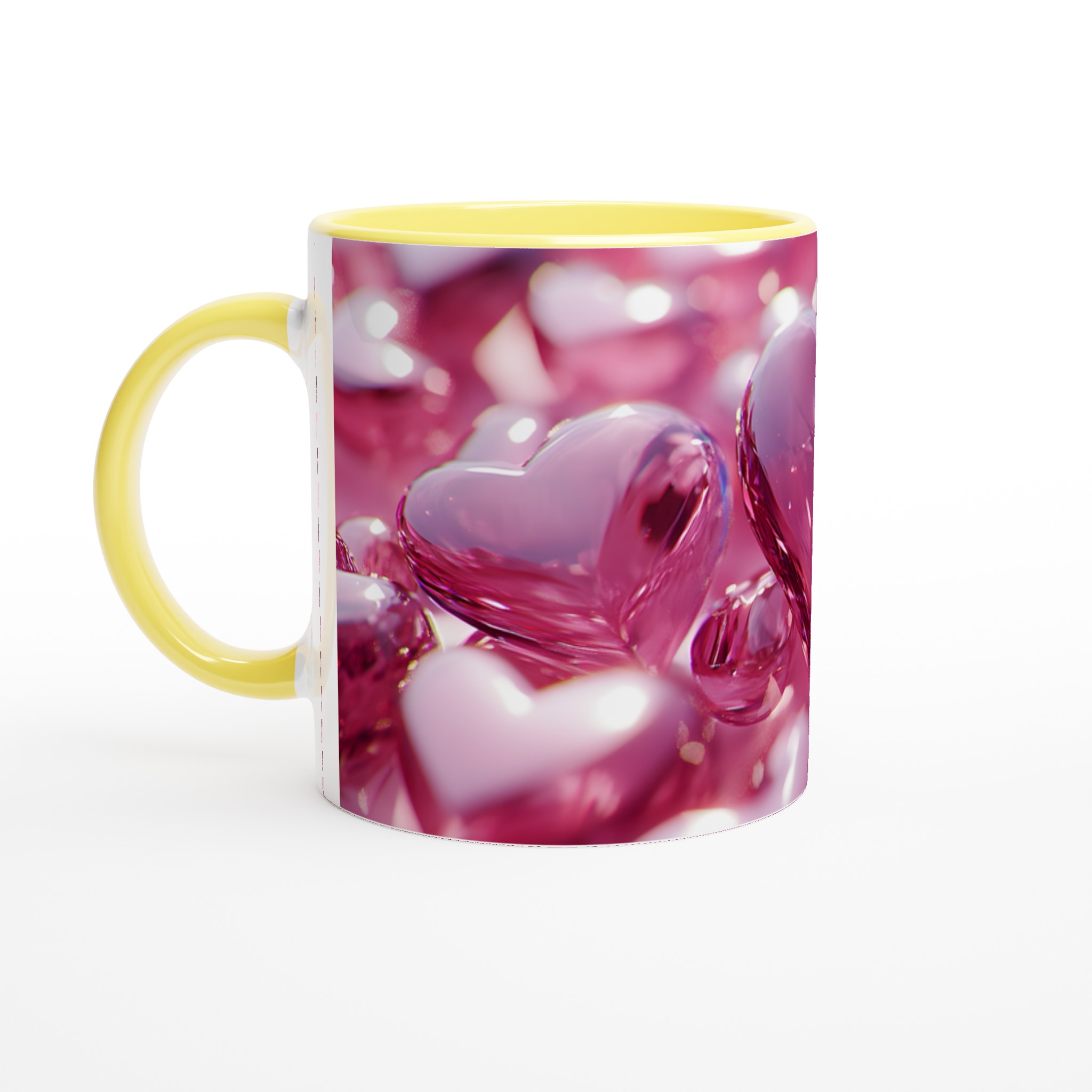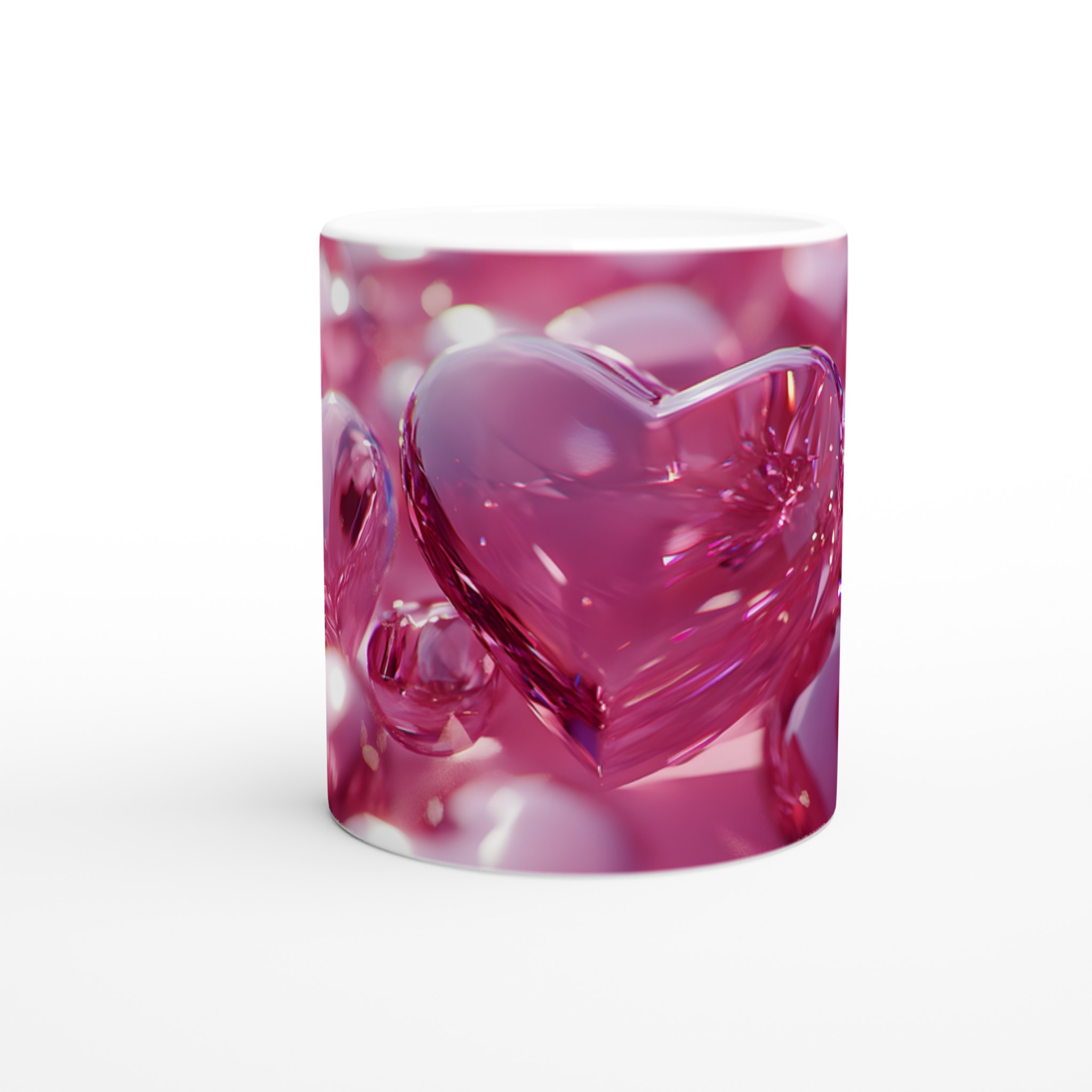 Sparkling Pink Glass Hearts 11oz Ceramic Mug – Show Your Love in 7 Vibrant Colors