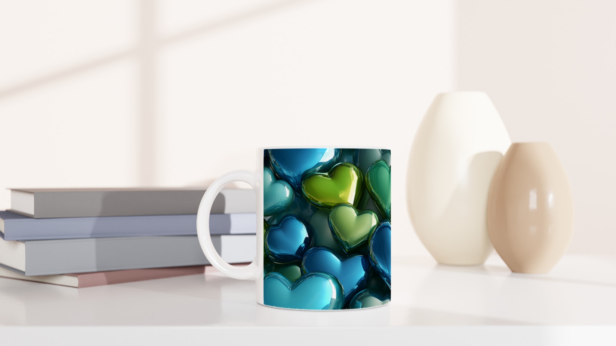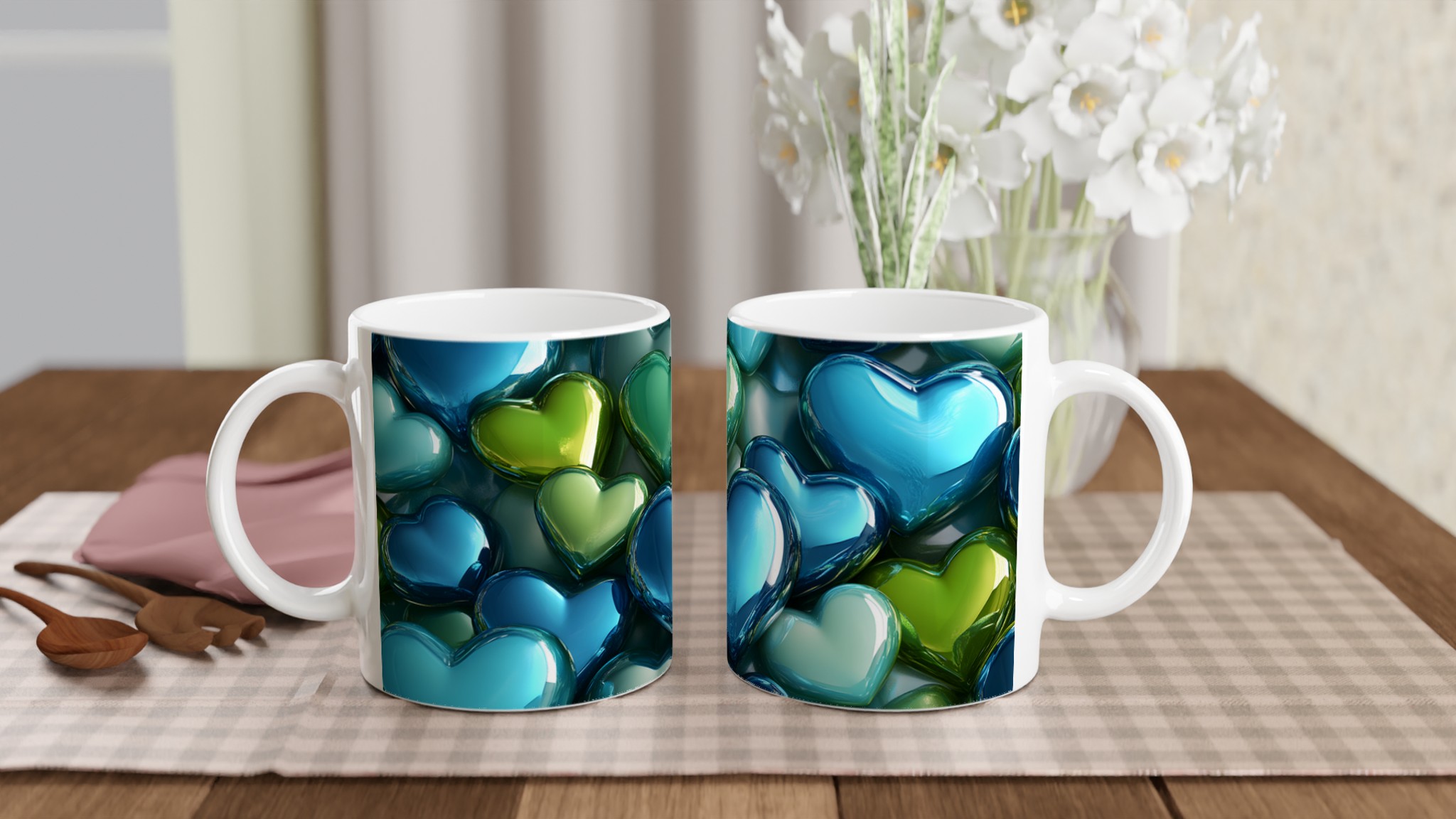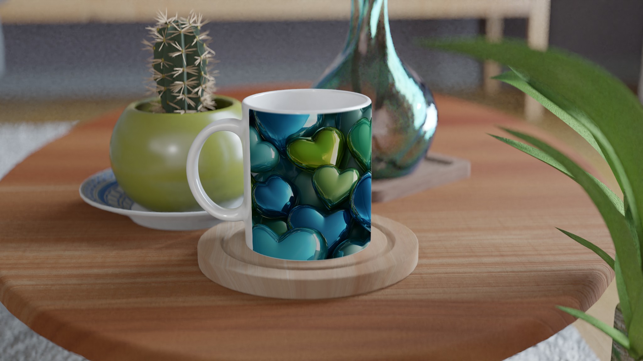 Oceanic Heart Reflections 11oz Ceramic Mug – Your Choice of 7 Vibrant Colors