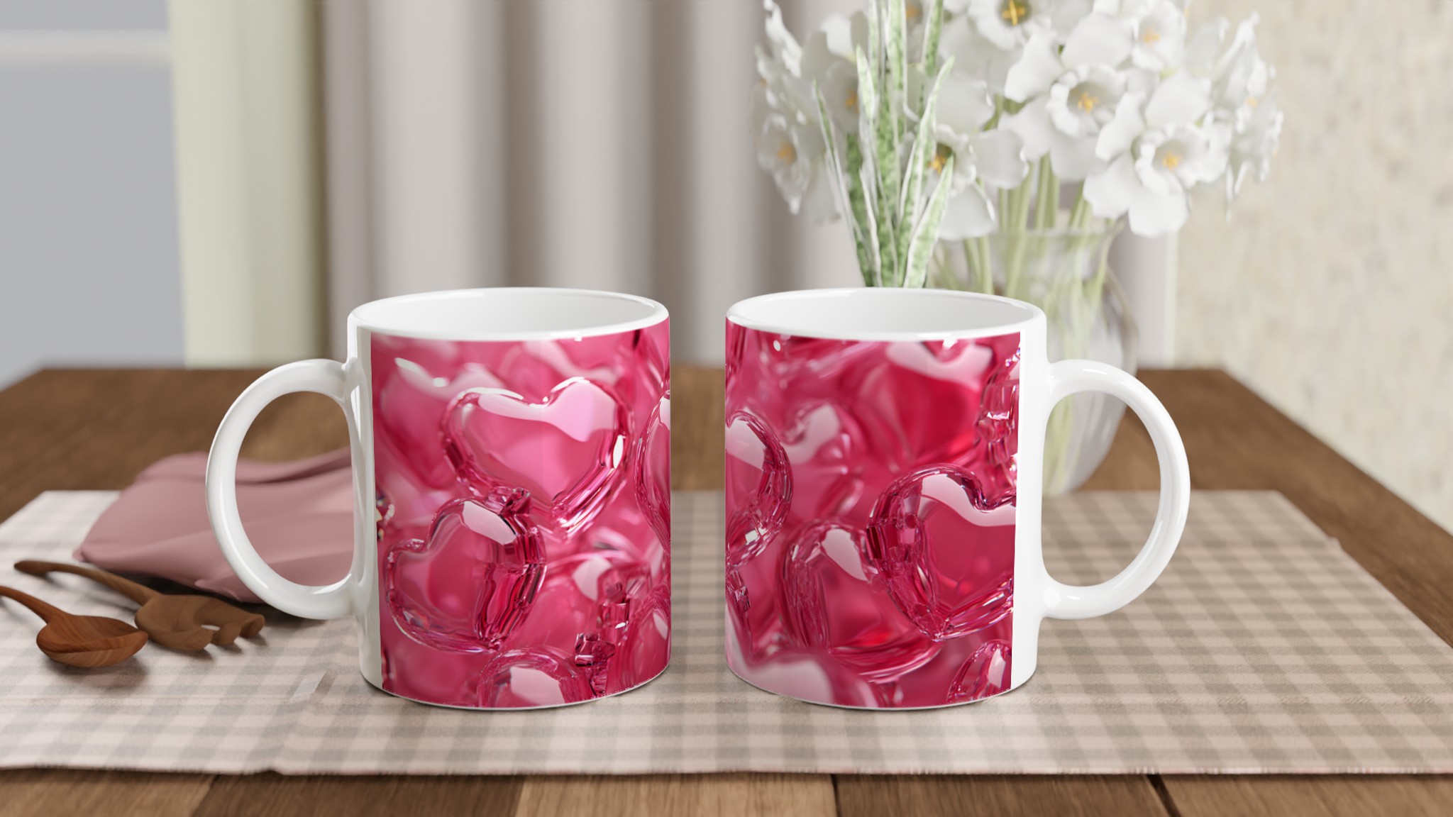 Valentine’s Day Pink Hearts 11oz Ceramic Mug – Choose Your Color!