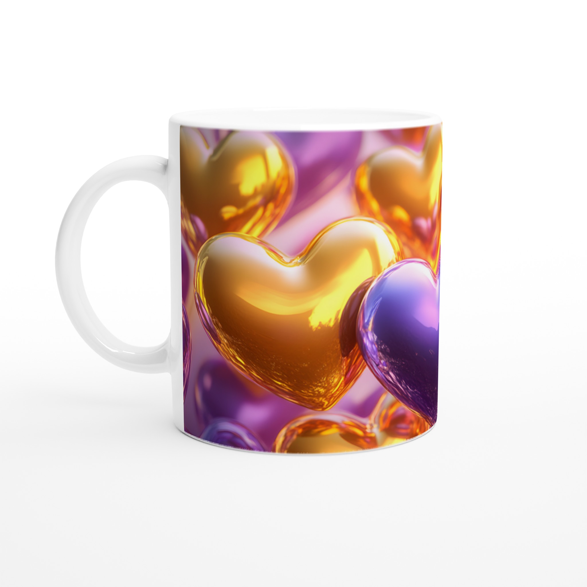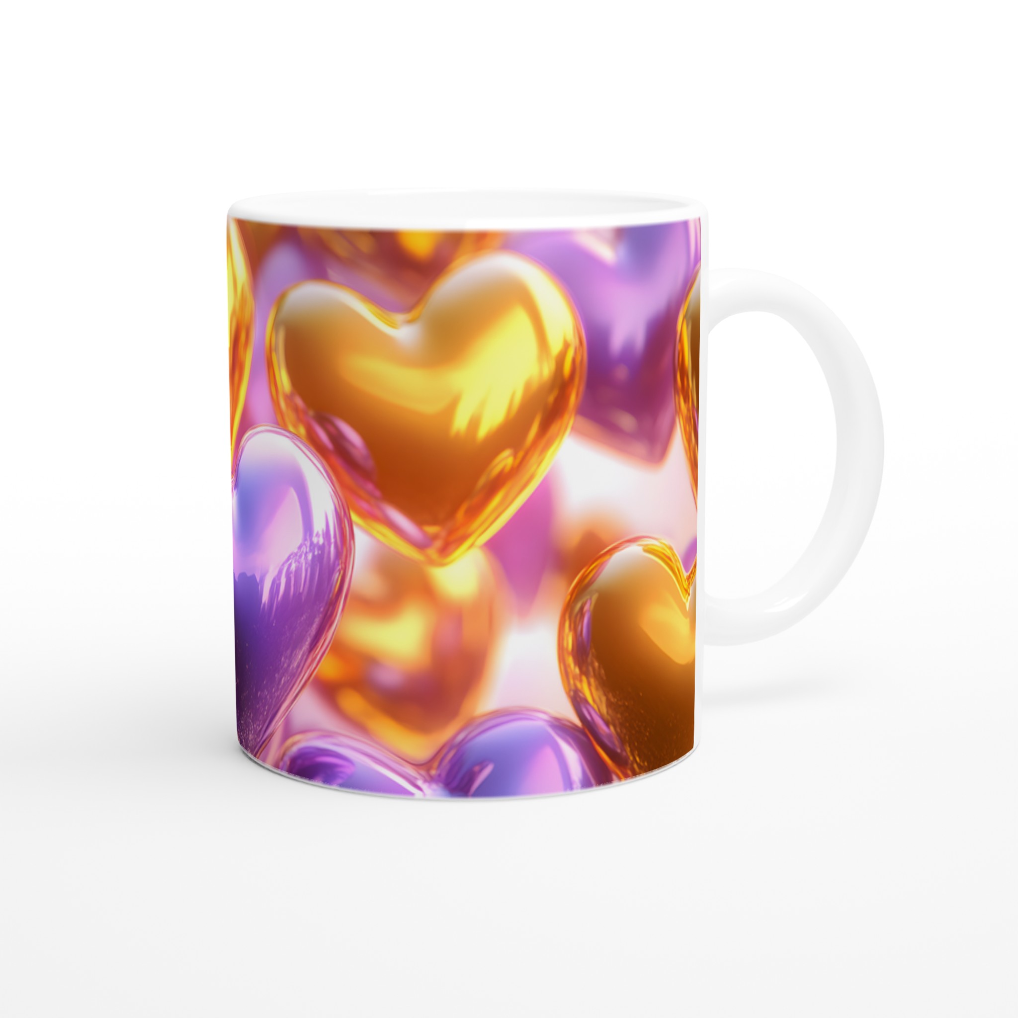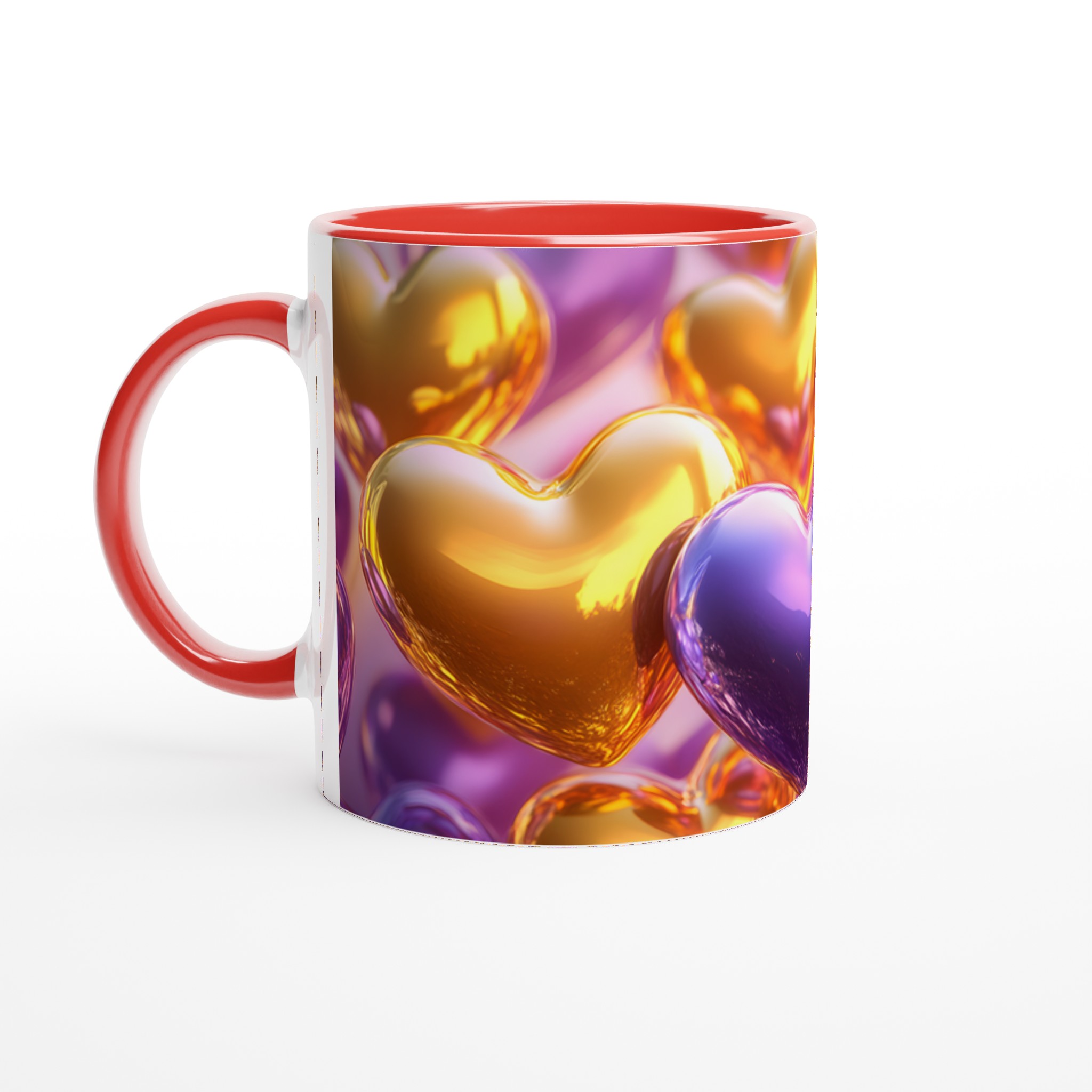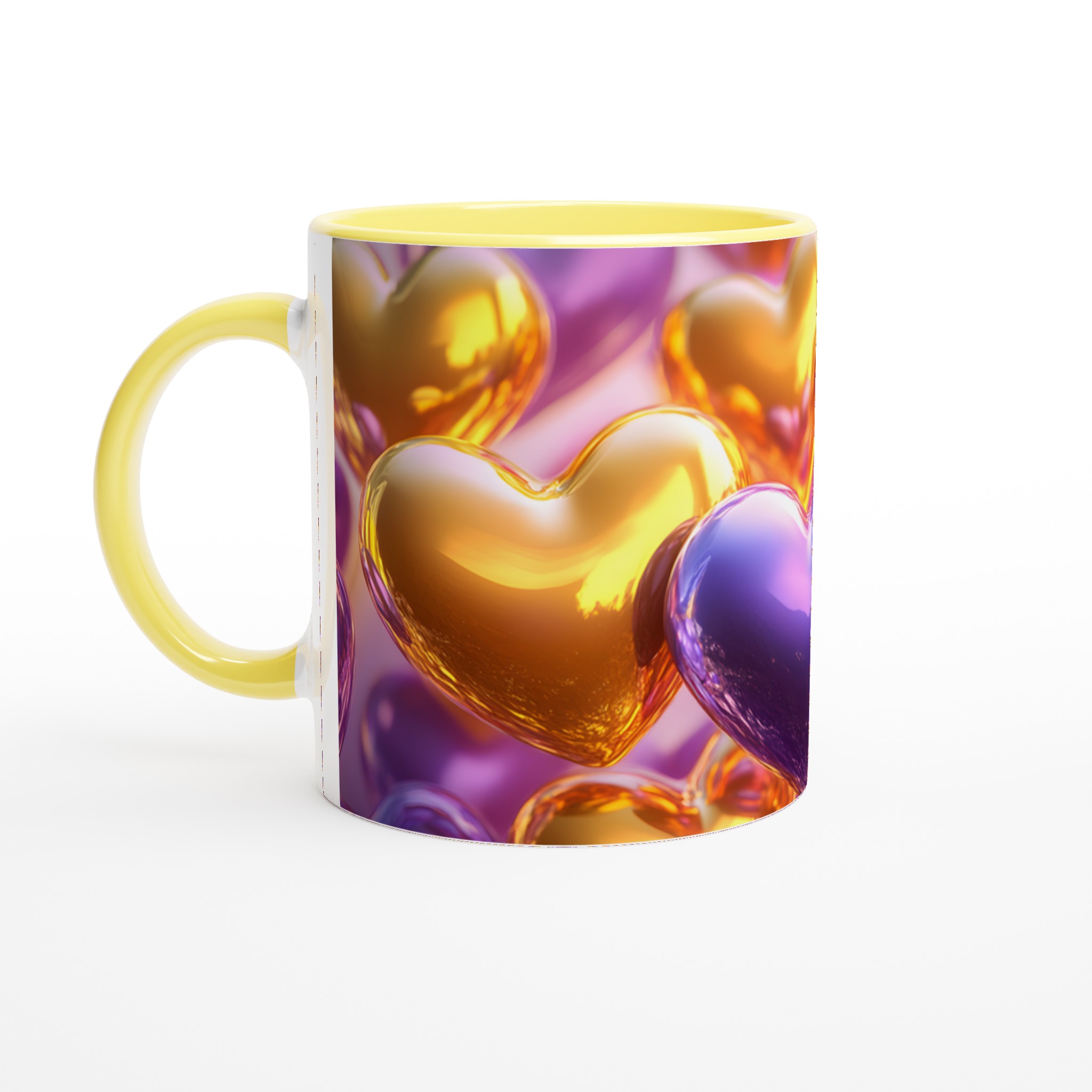 Golden Heart Glossy Ceramic Mug – Share the Love with Your Choice of 7 Vibrant Colors!