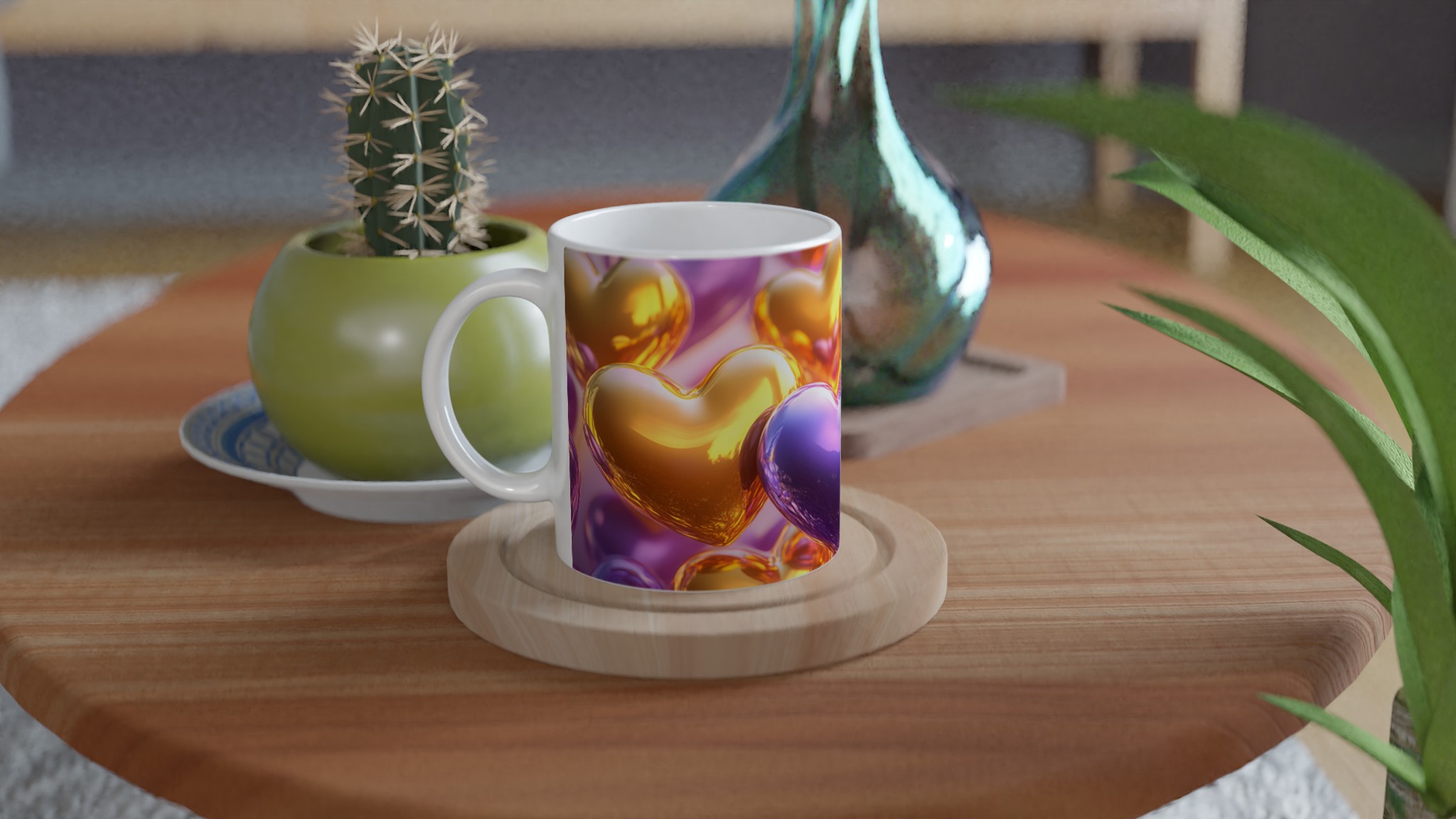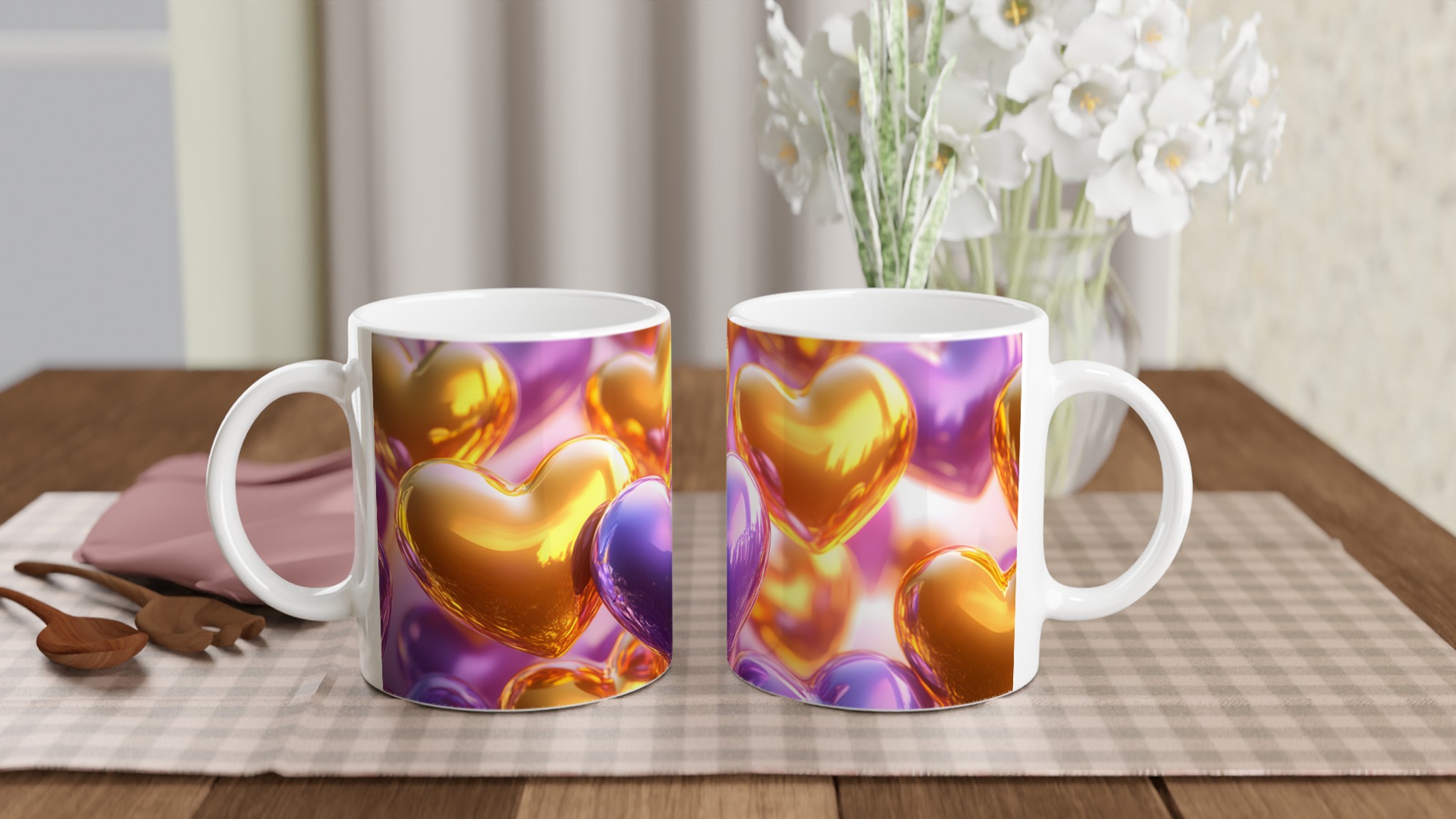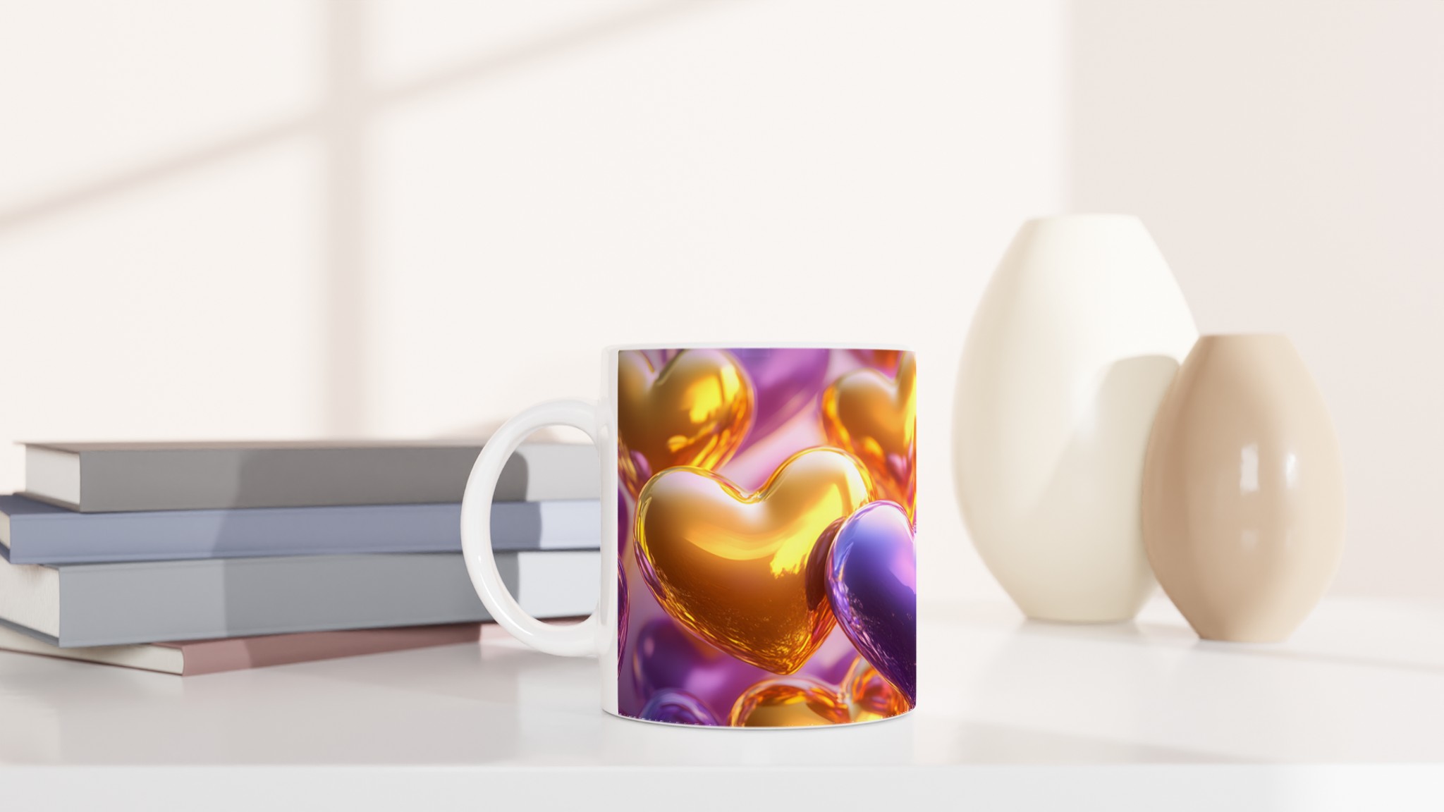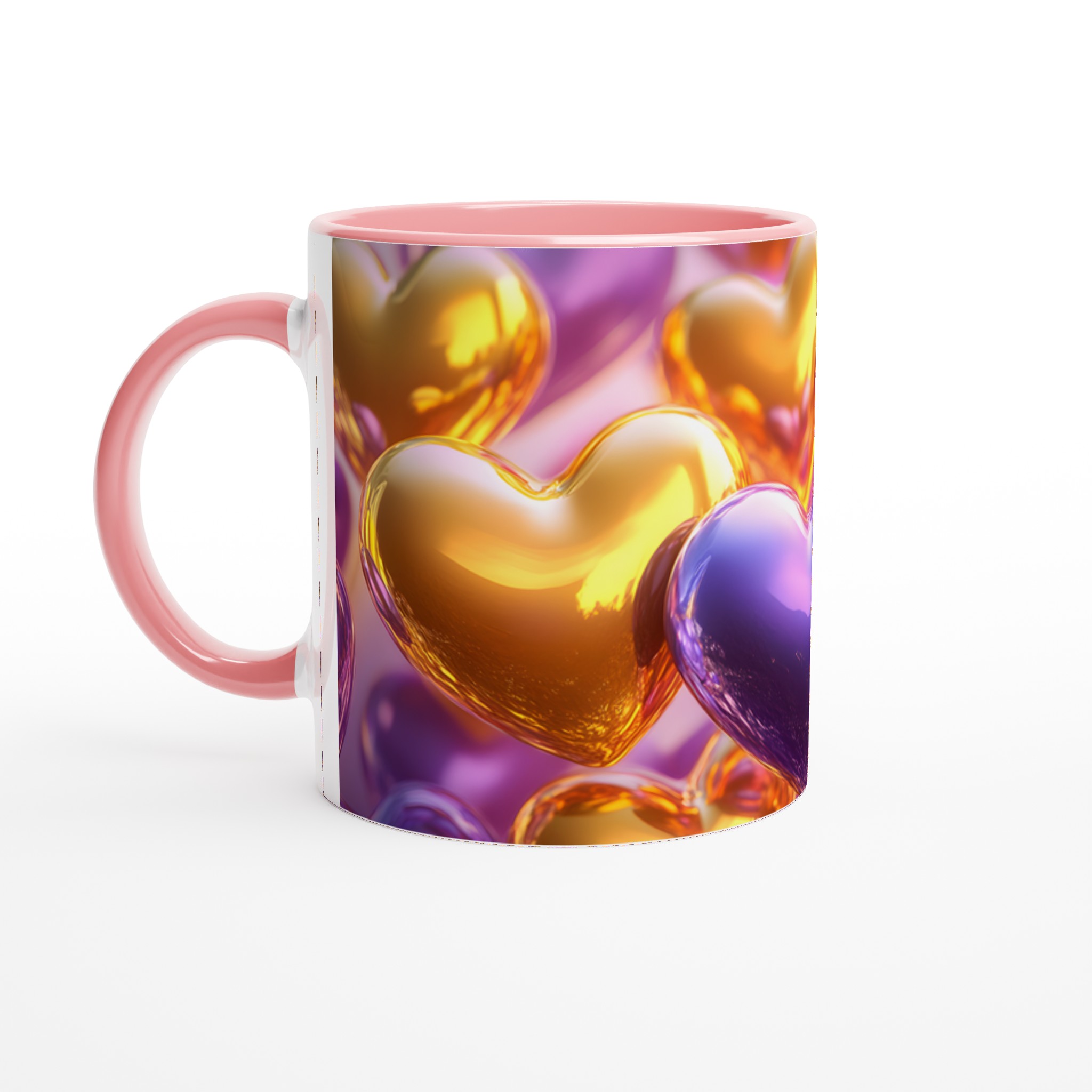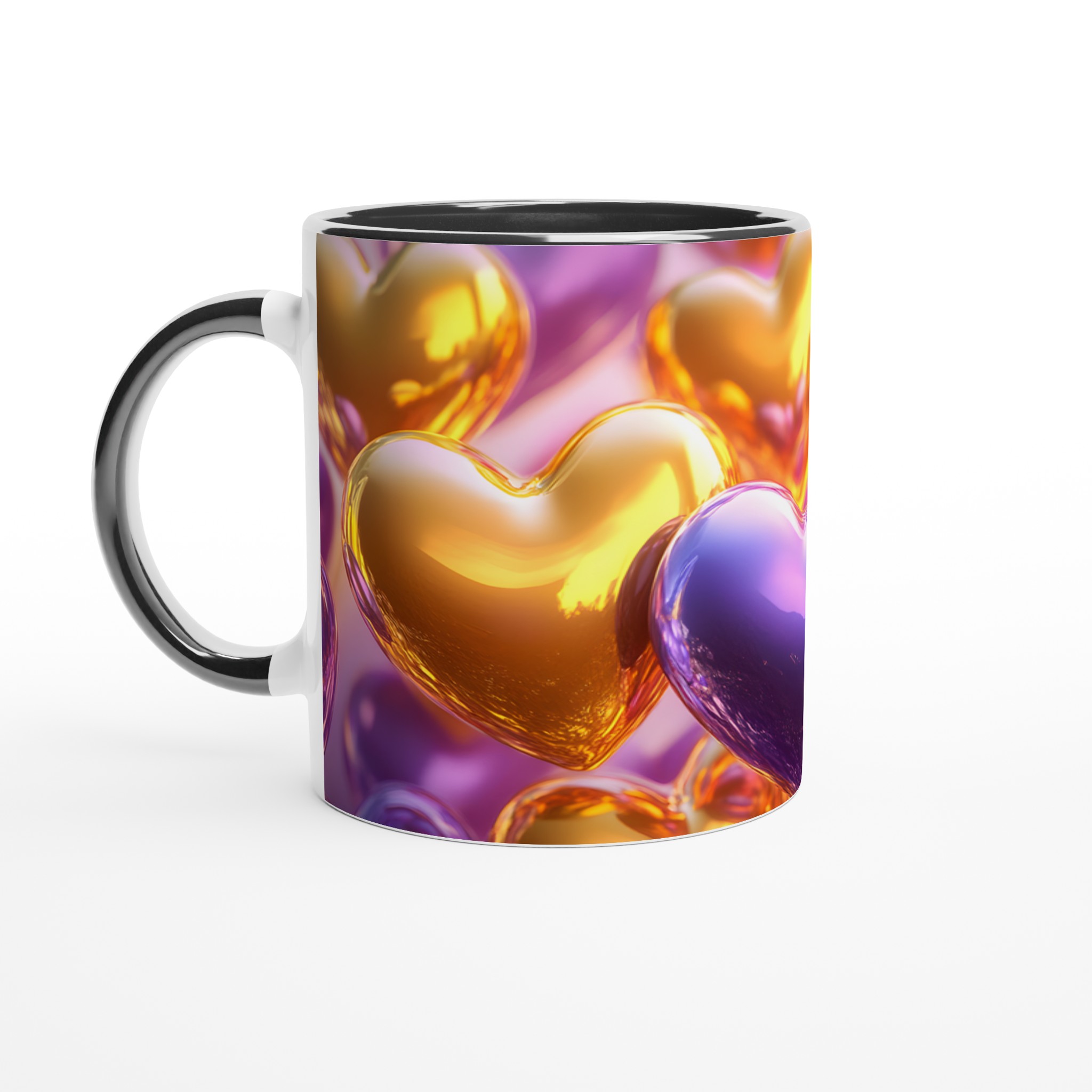 Golden Heart Glossy Ceramic Mug – Share the Love with Your Choice of 7 Vibrant Colors!