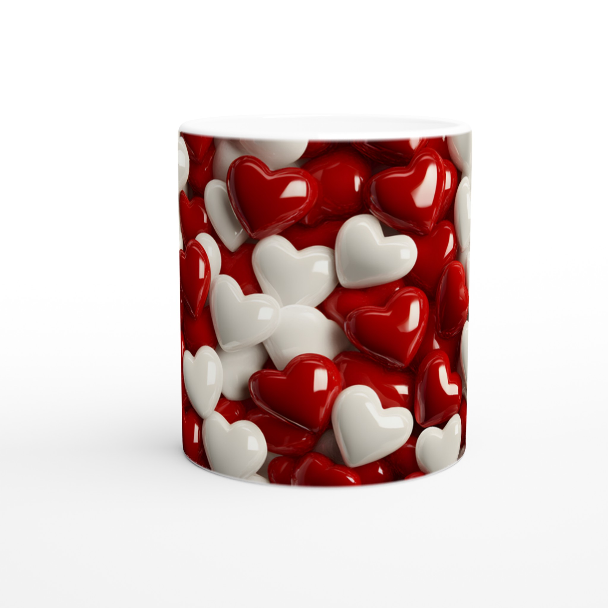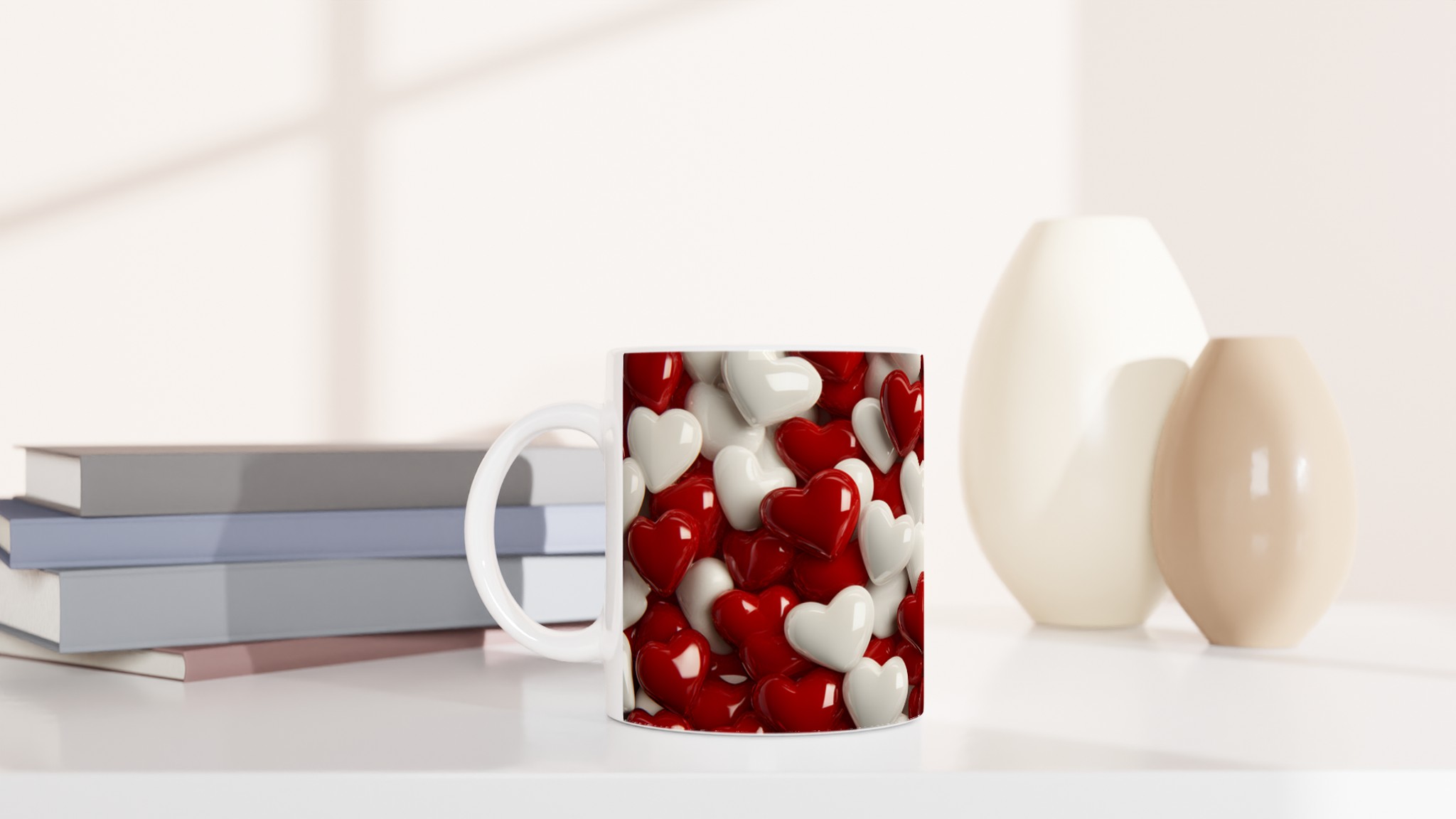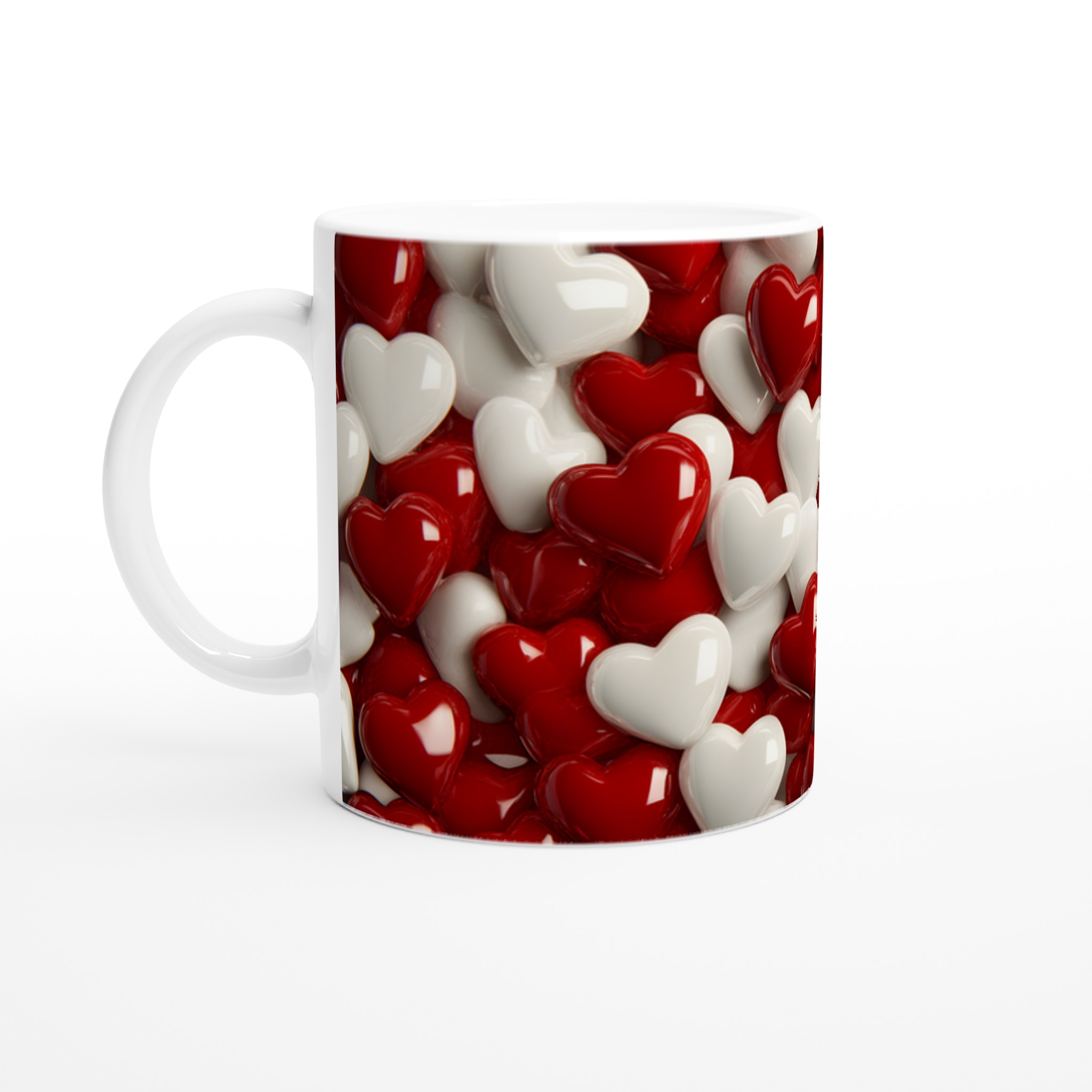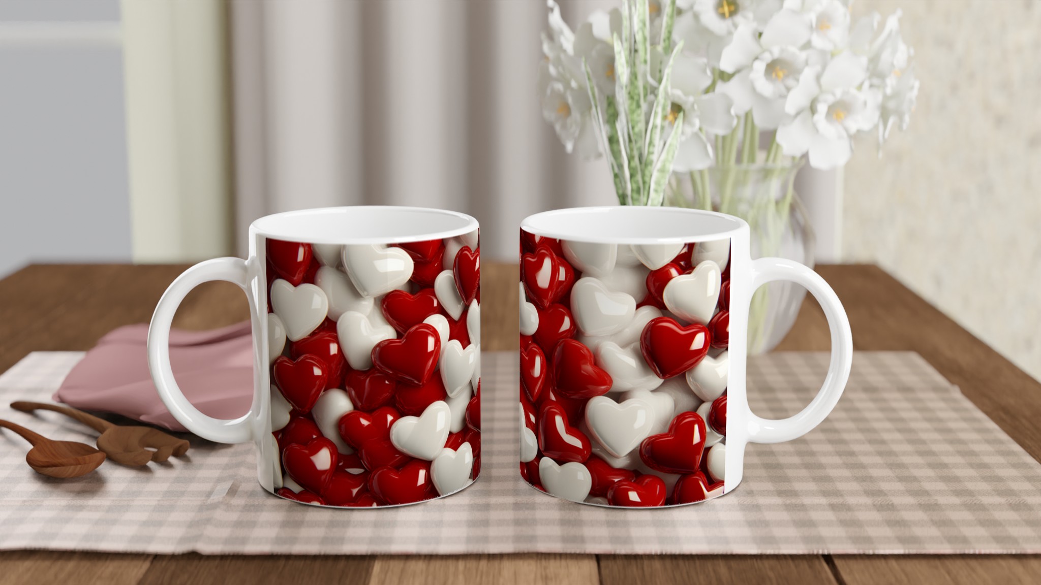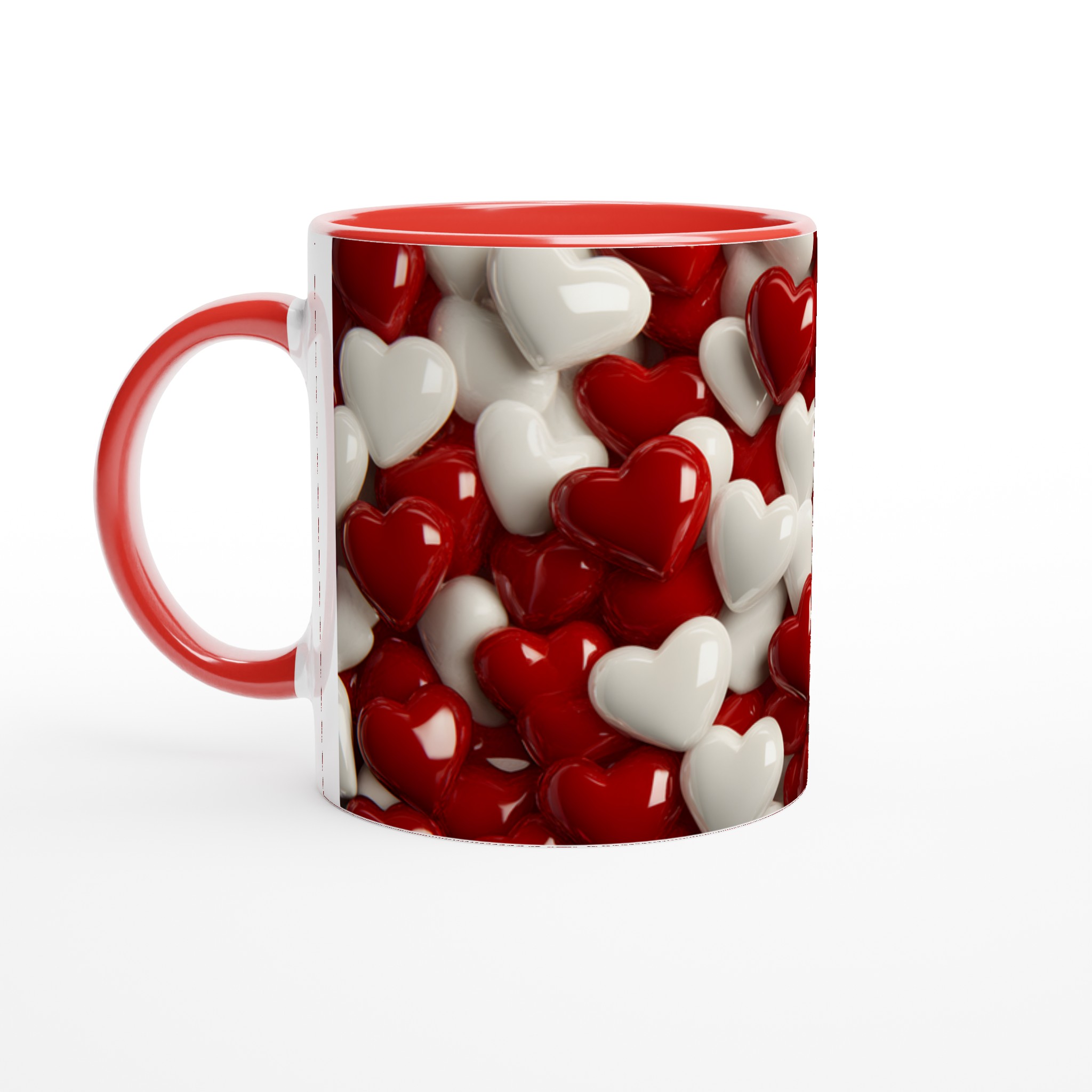 Valentine’s Love Heart Mug – White 11oz Ceramic Mug in Your Choice of 7 Vibrant Colors