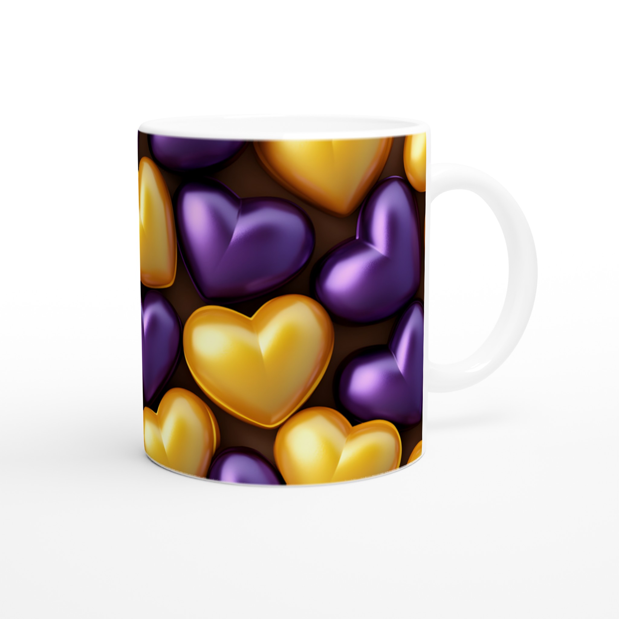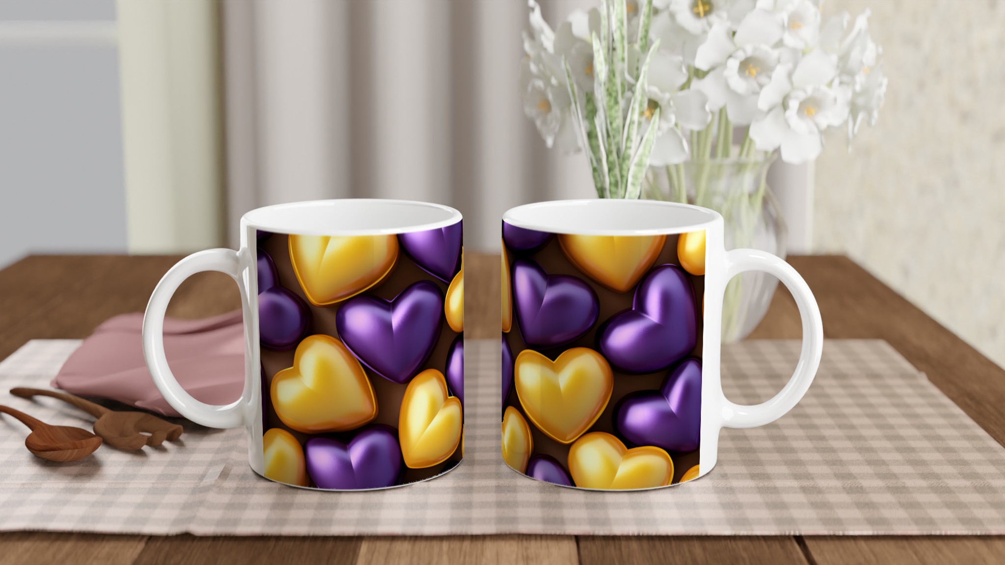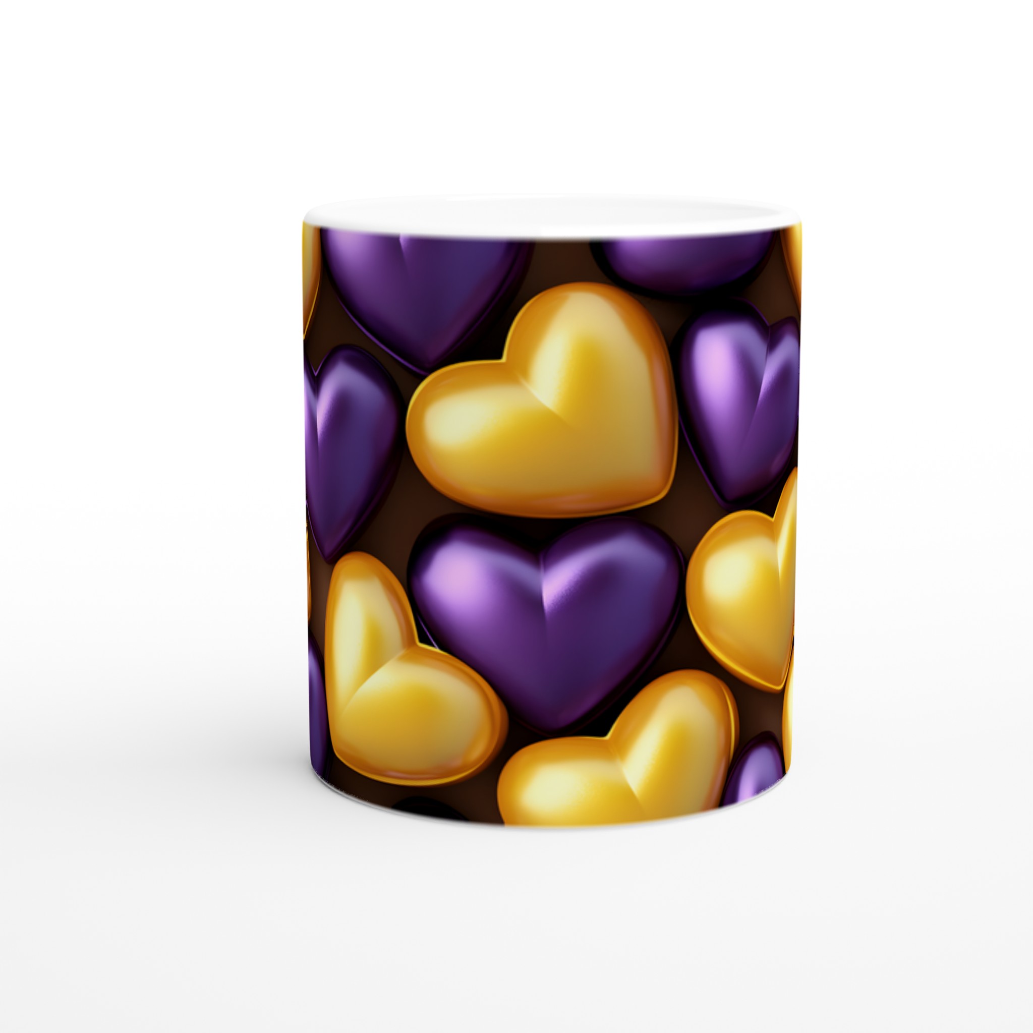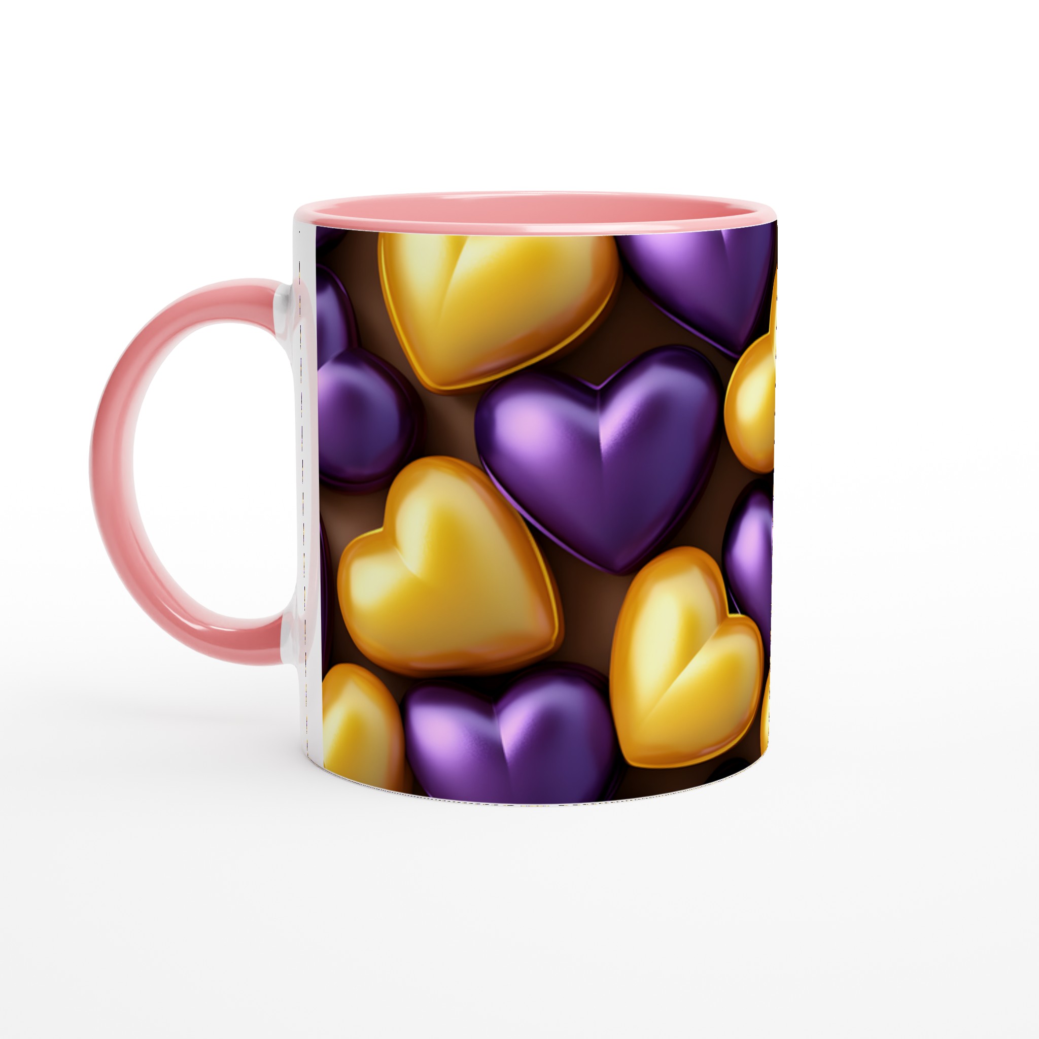 Golden & Amethyst Heart Pattern 11oz Ceramic Mug – Choose Your Hue!