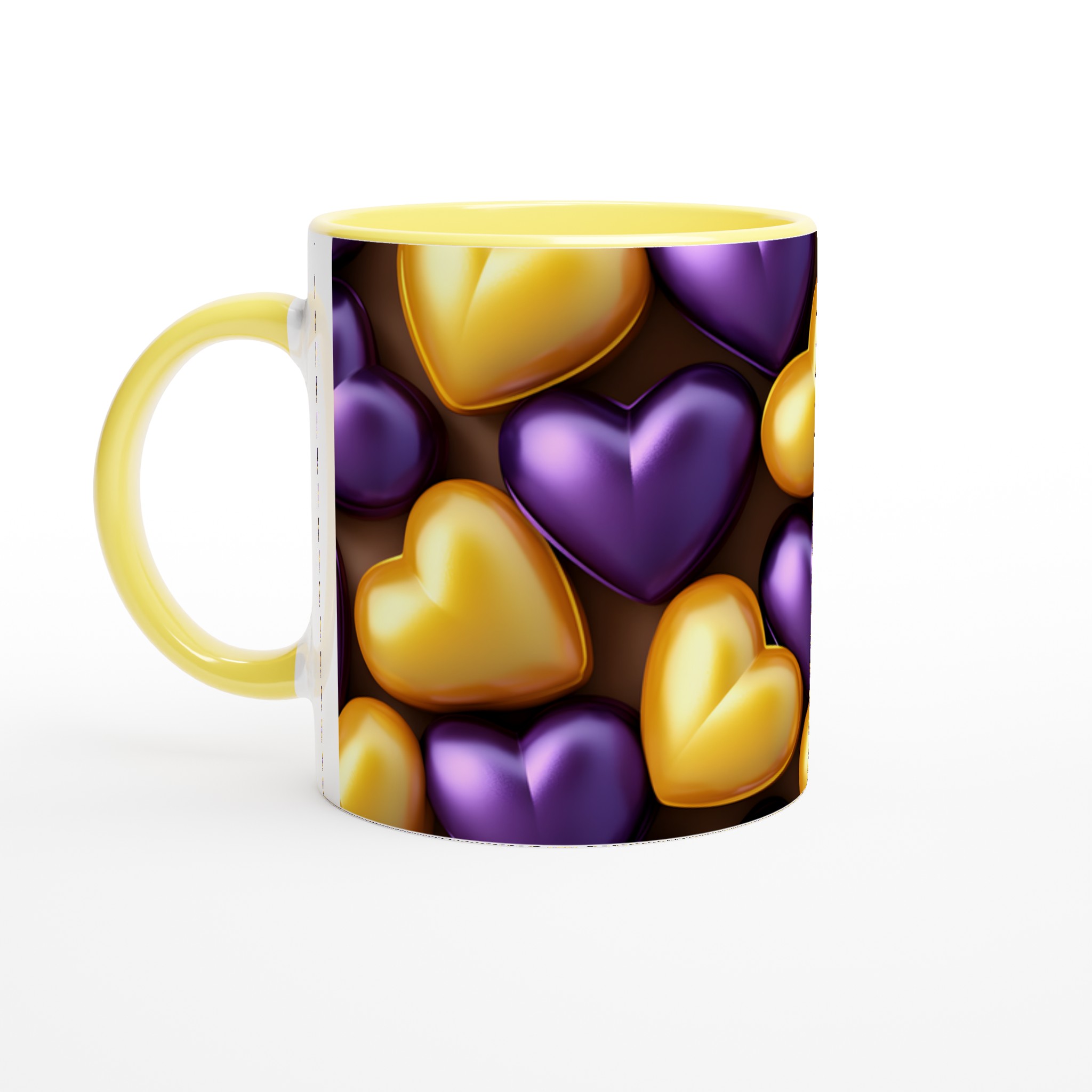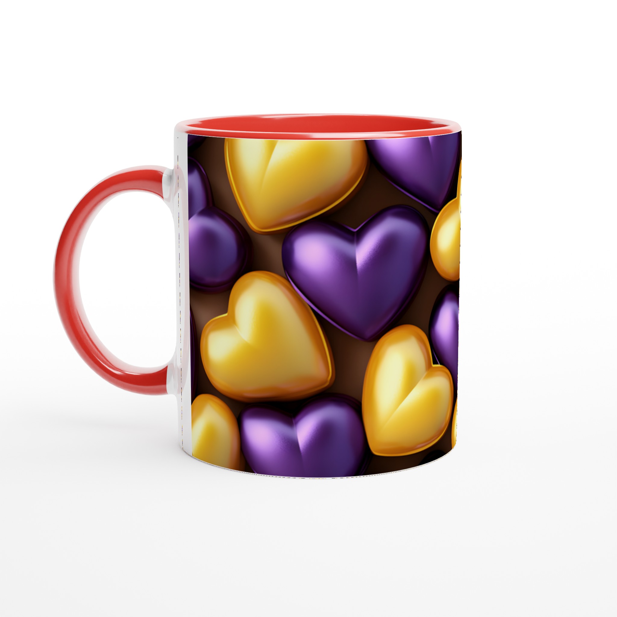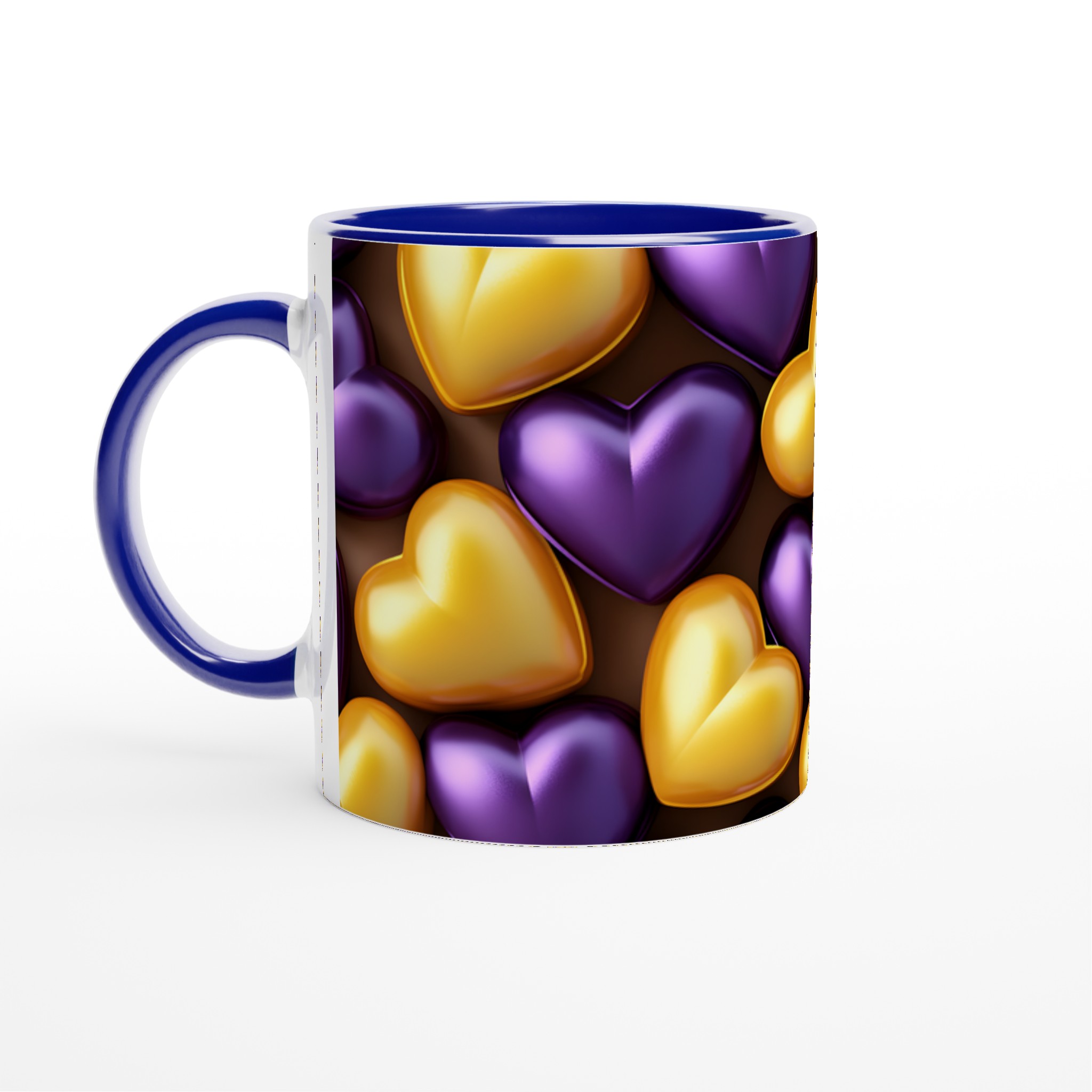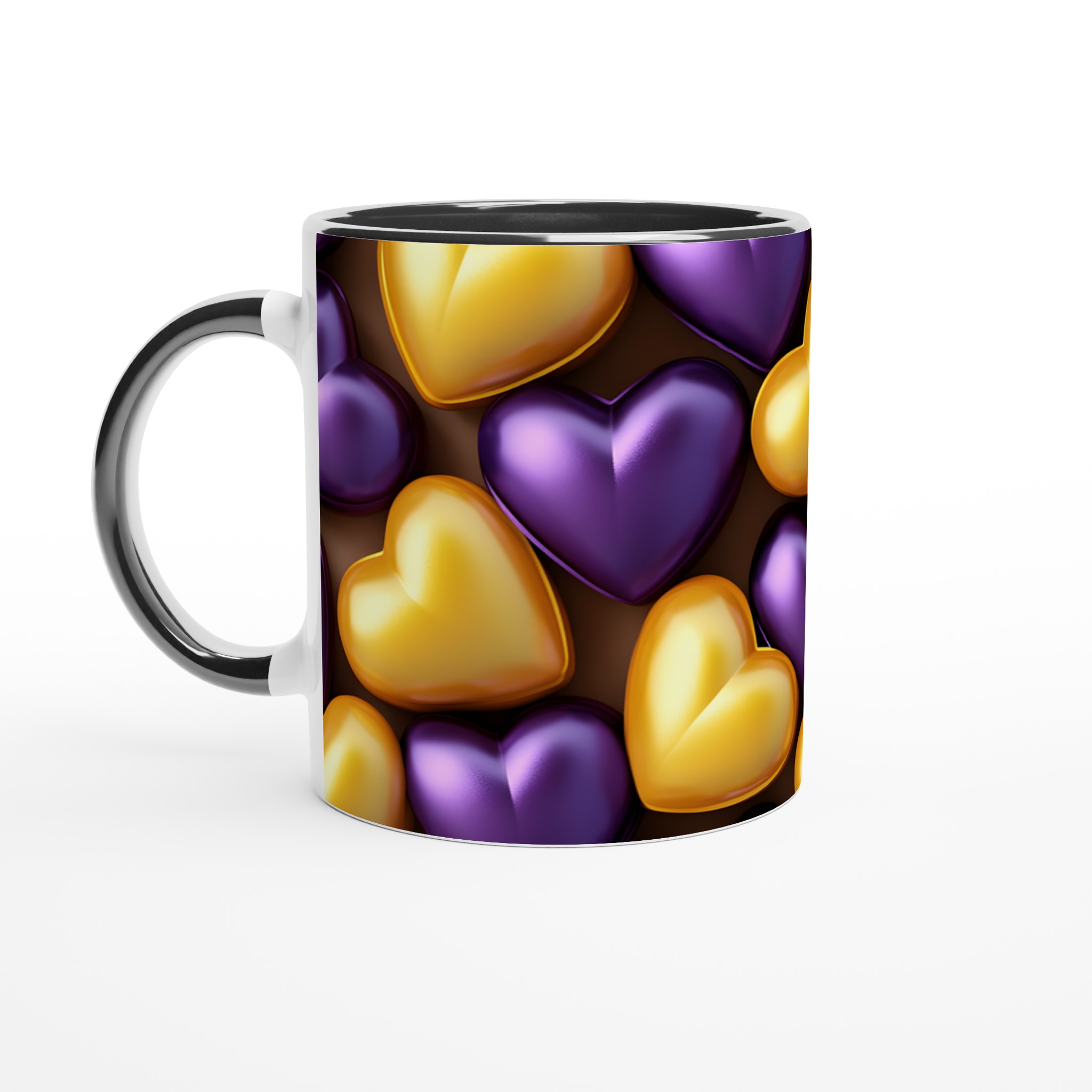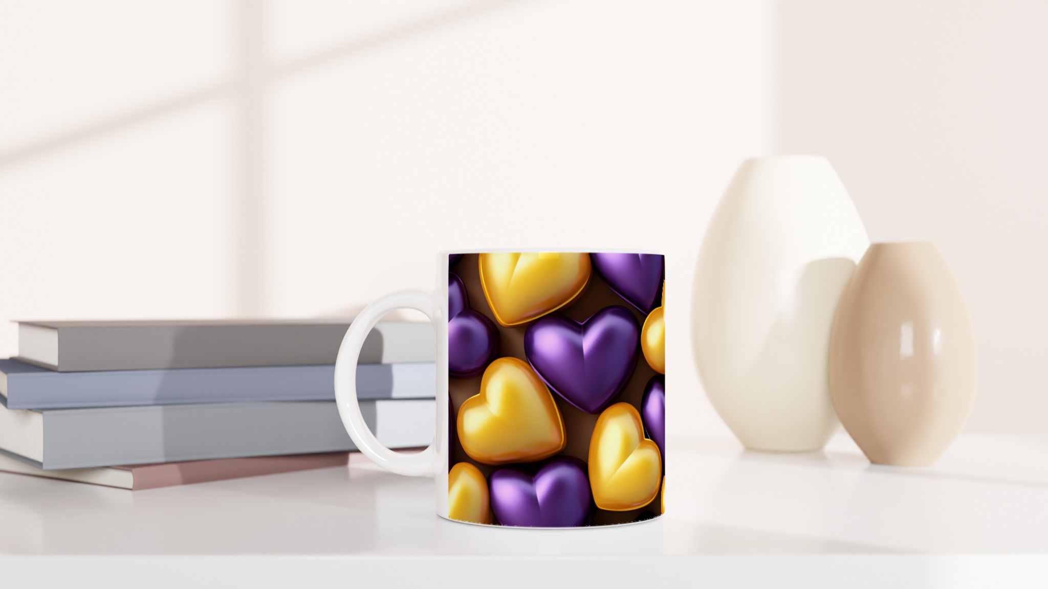 Golden & Amethyst Heart Pattern 11oz Ceramic Mug – Choose Your Hue!