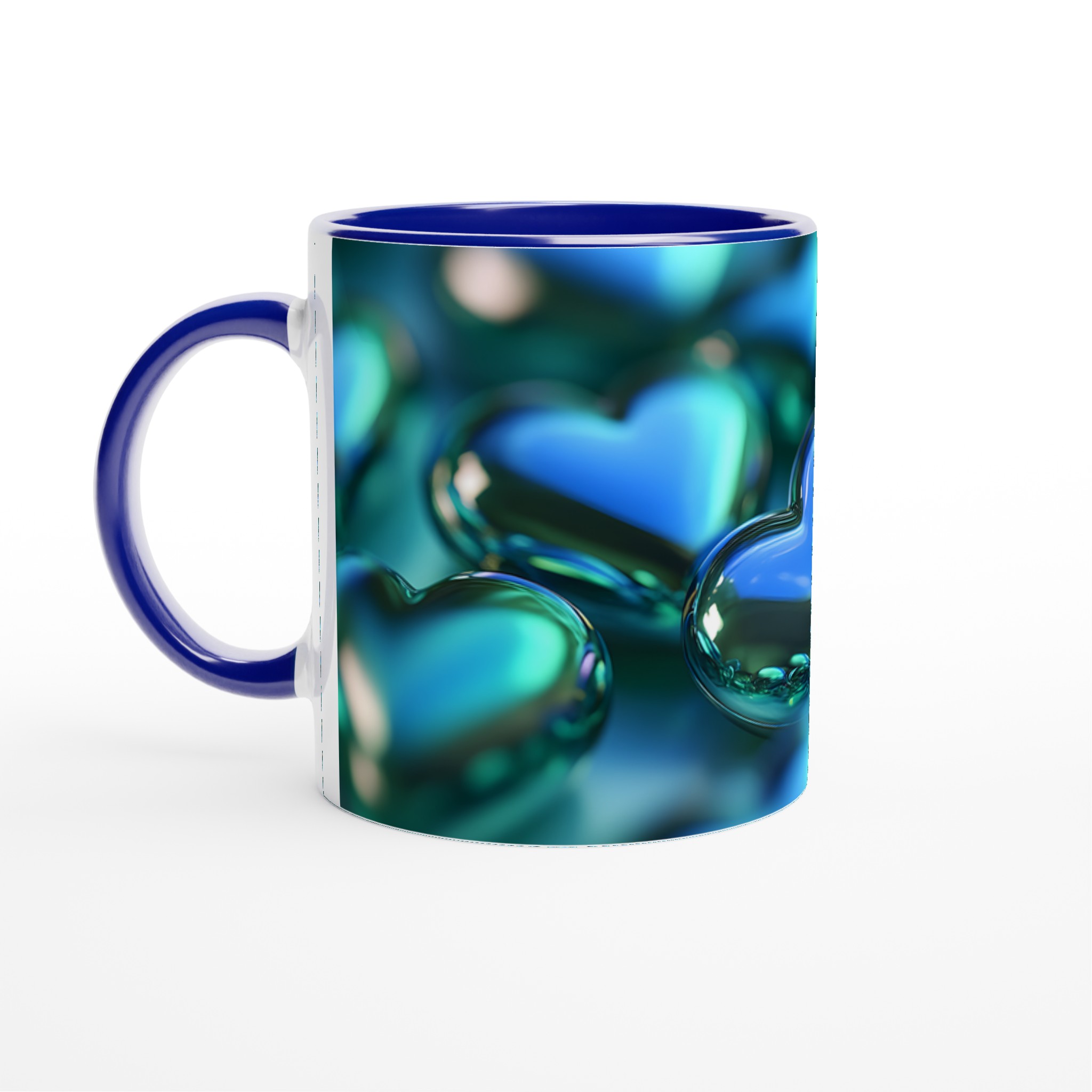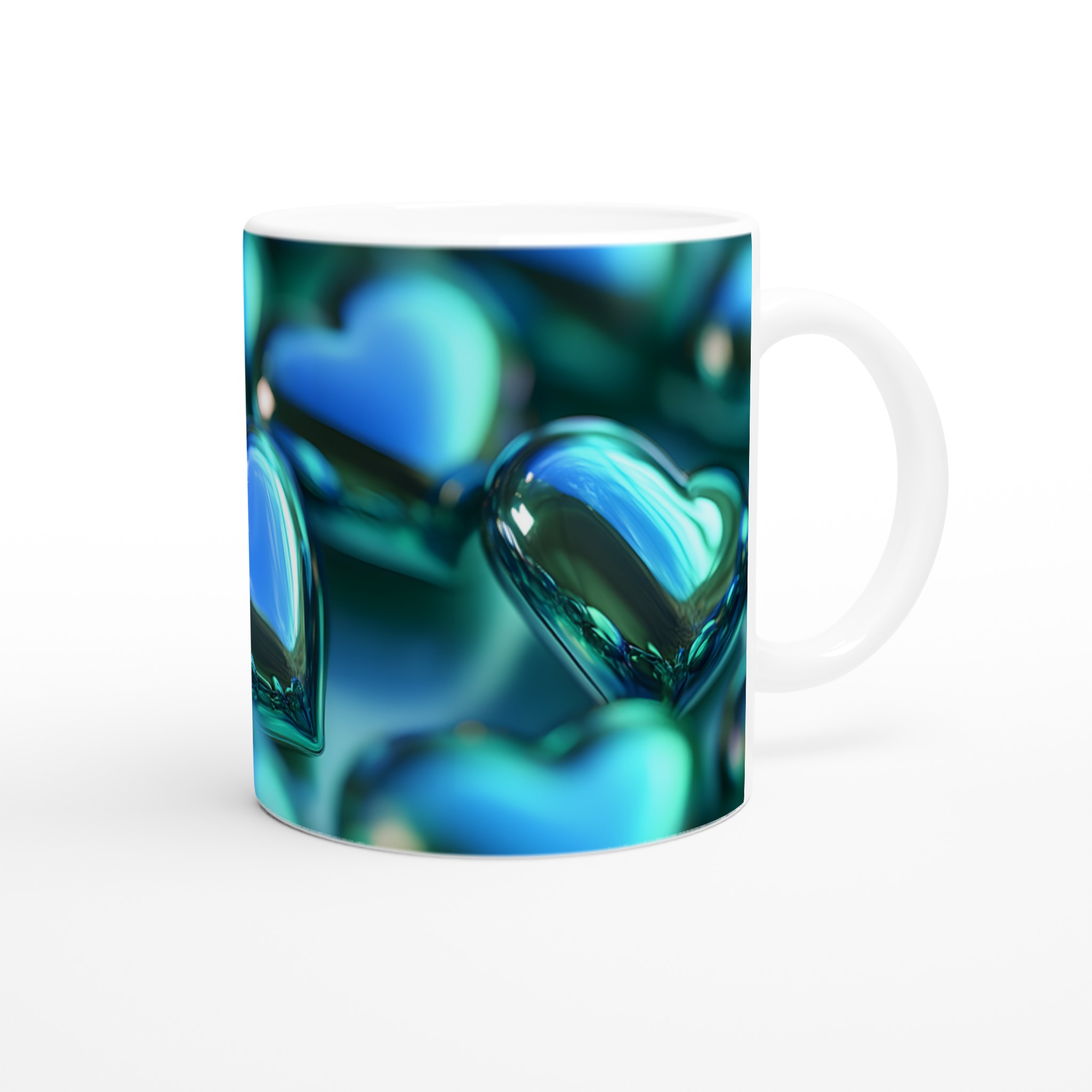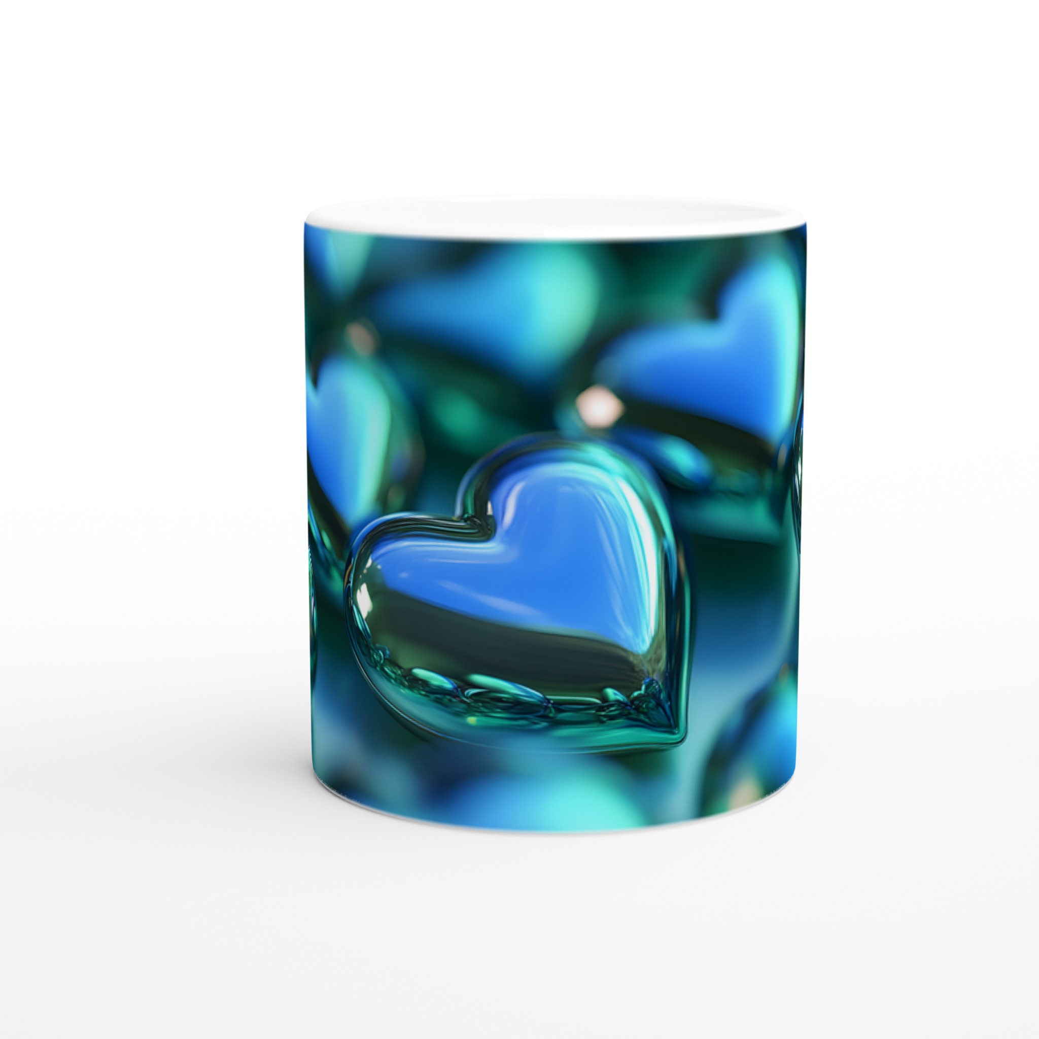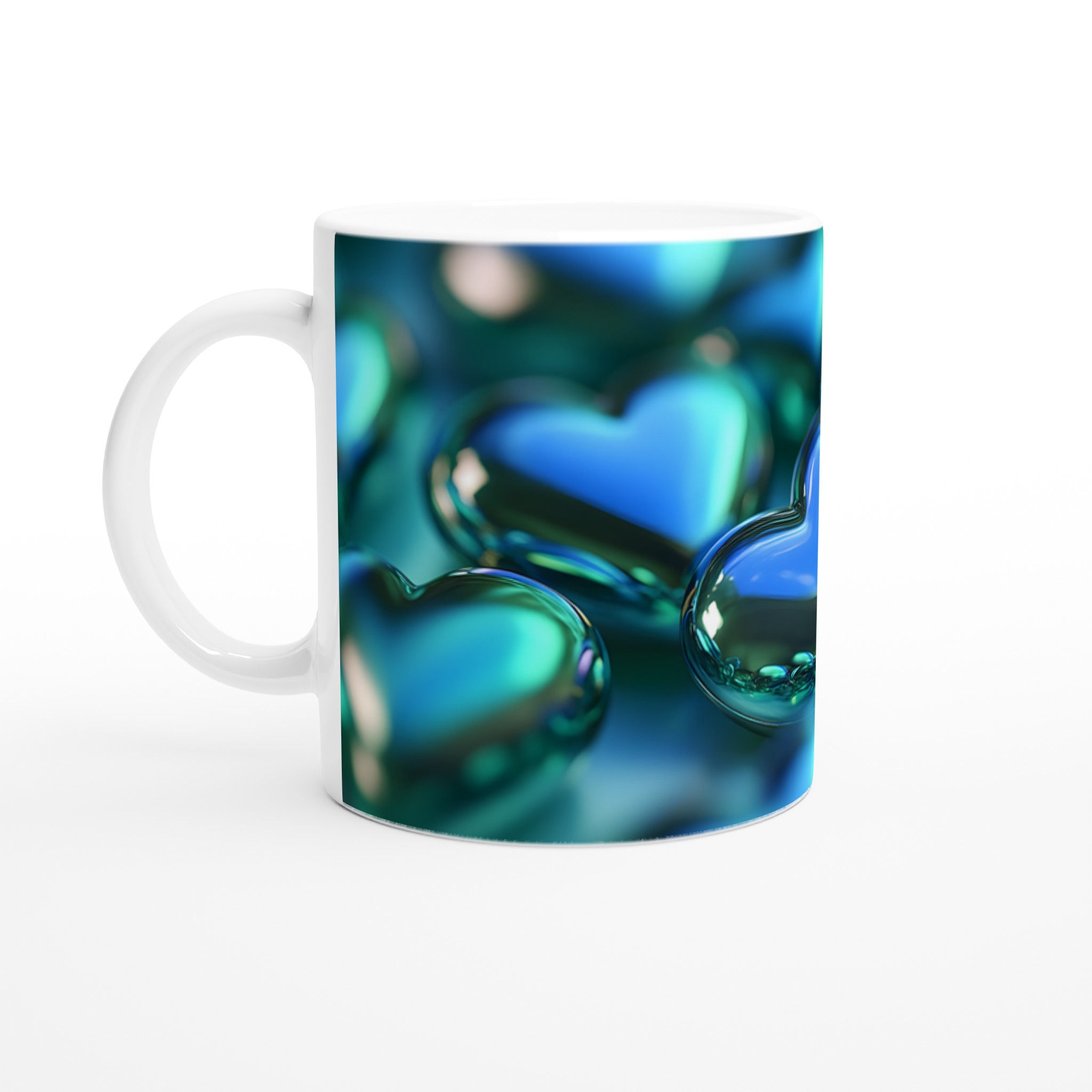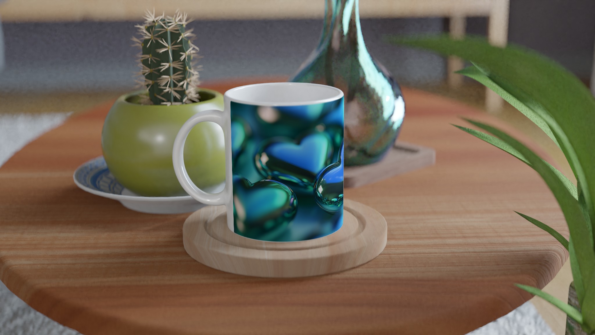 Vibrant Teal & Blue Heart 11oz Ceramic Mug – Your Choice of 7 Lustrous Hues