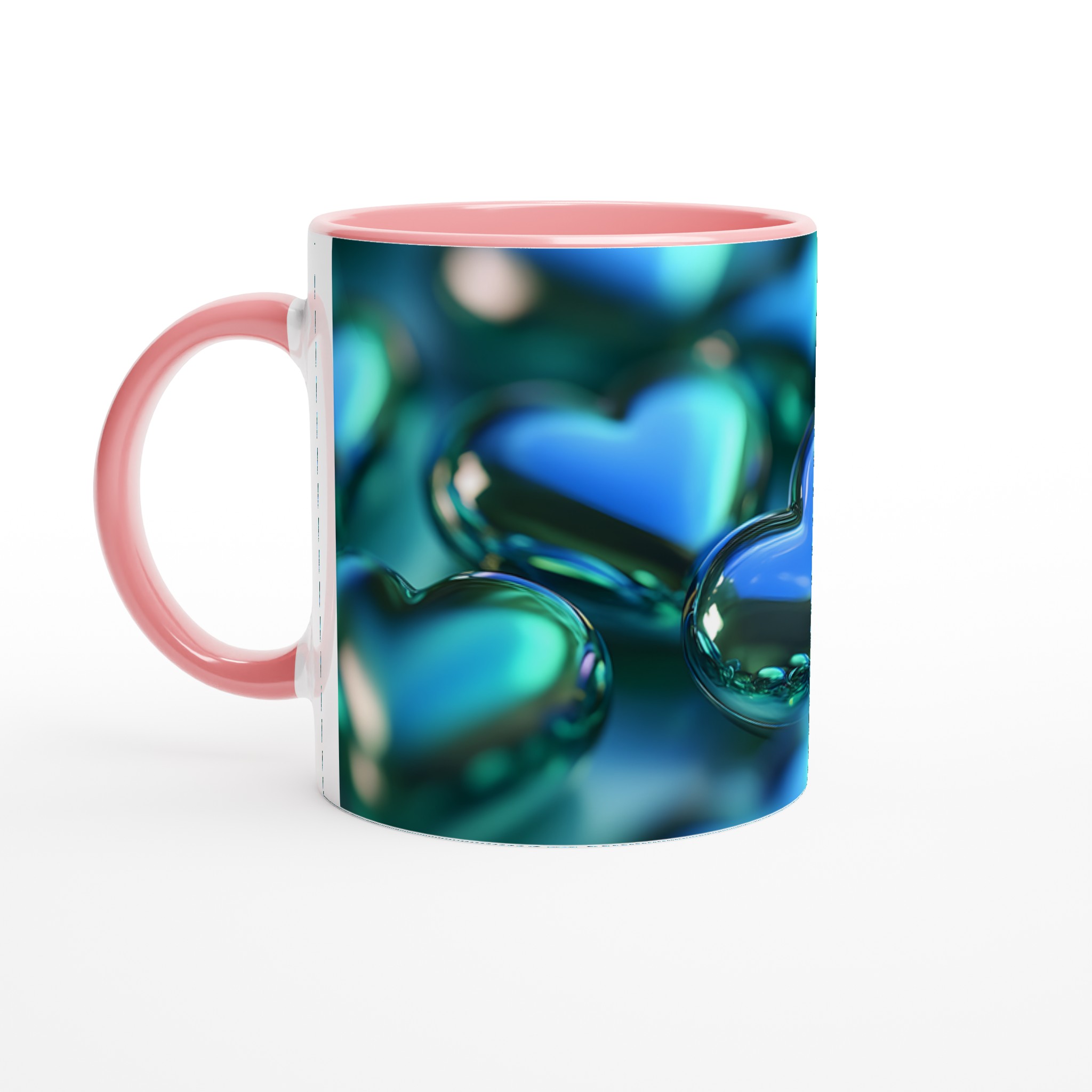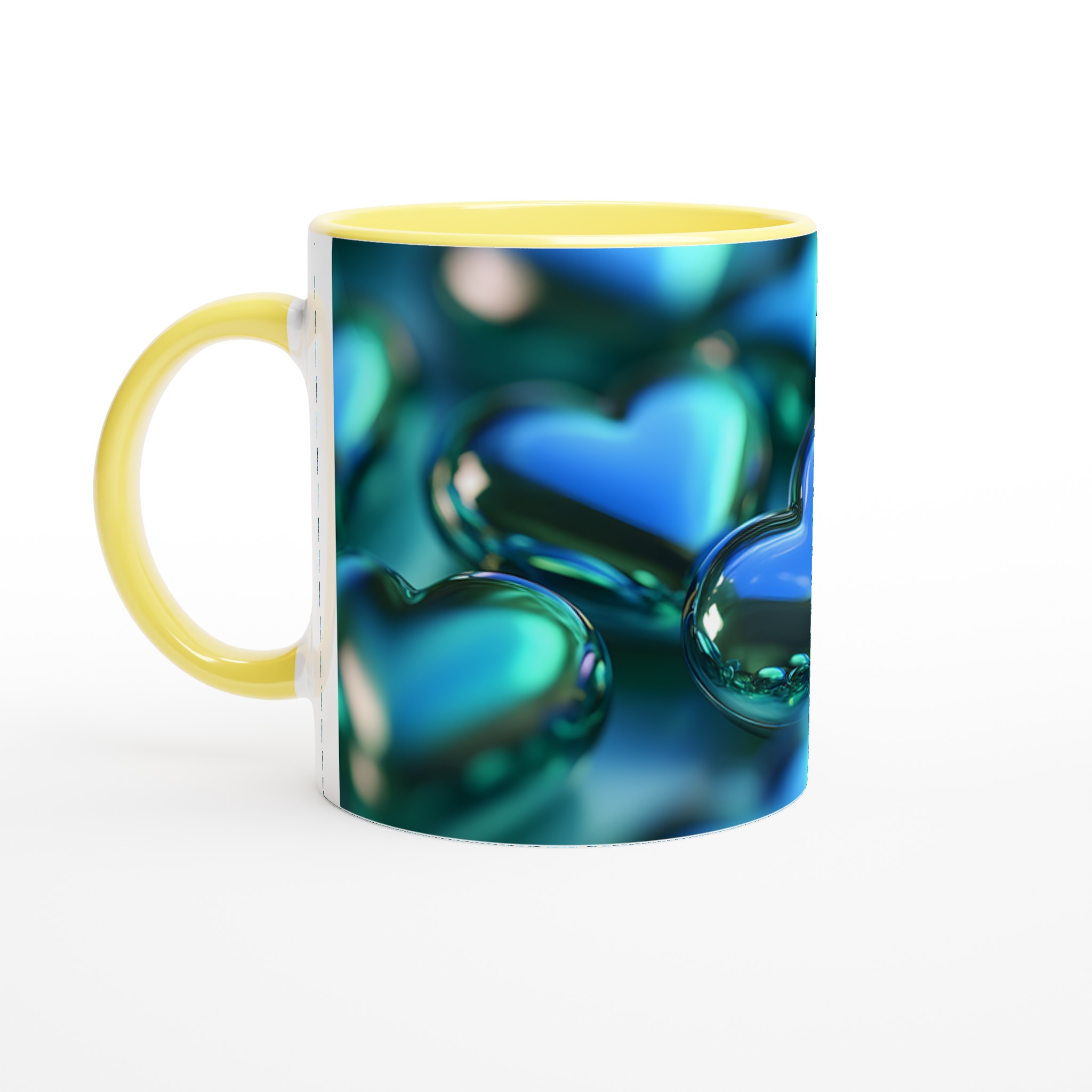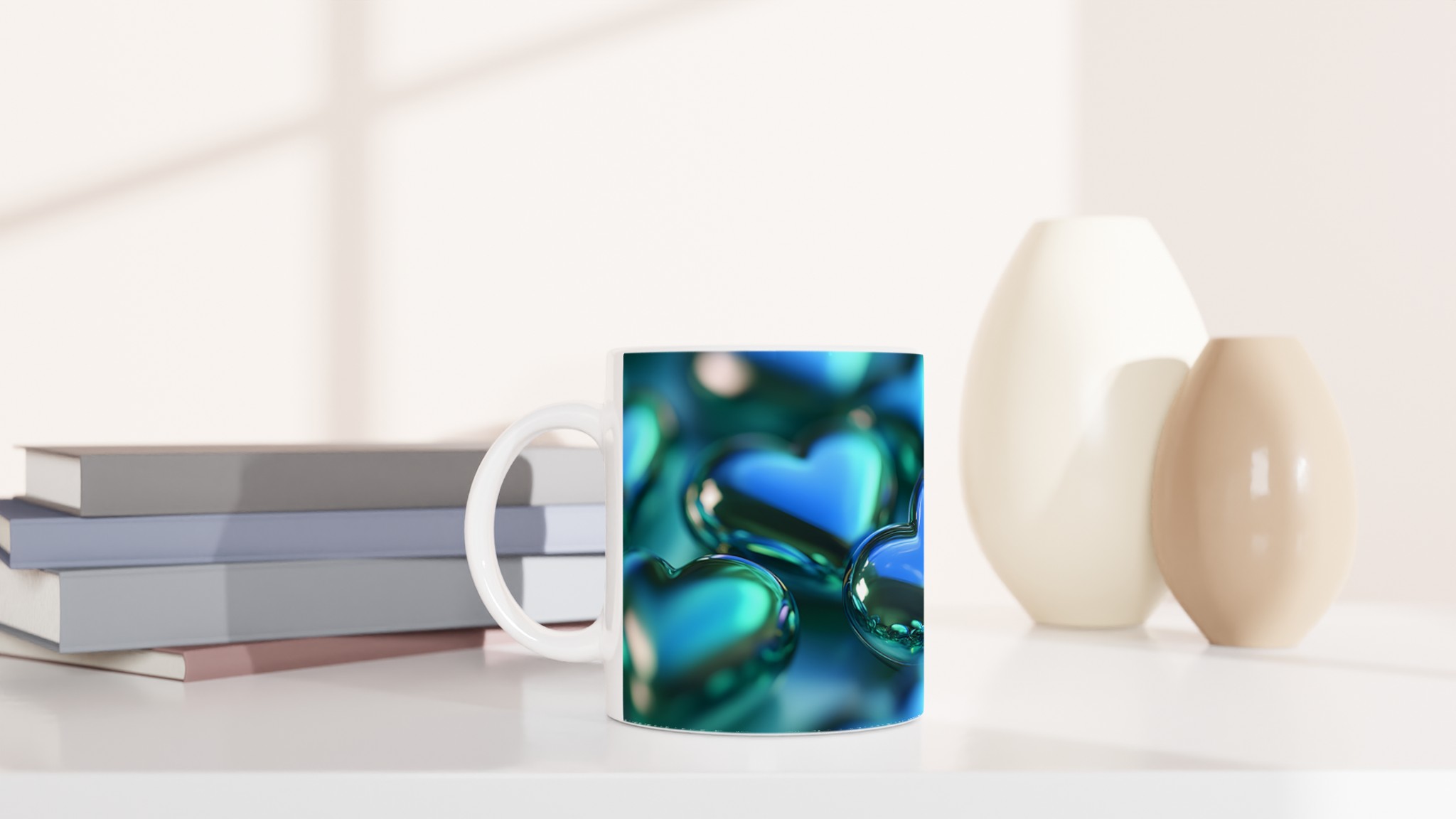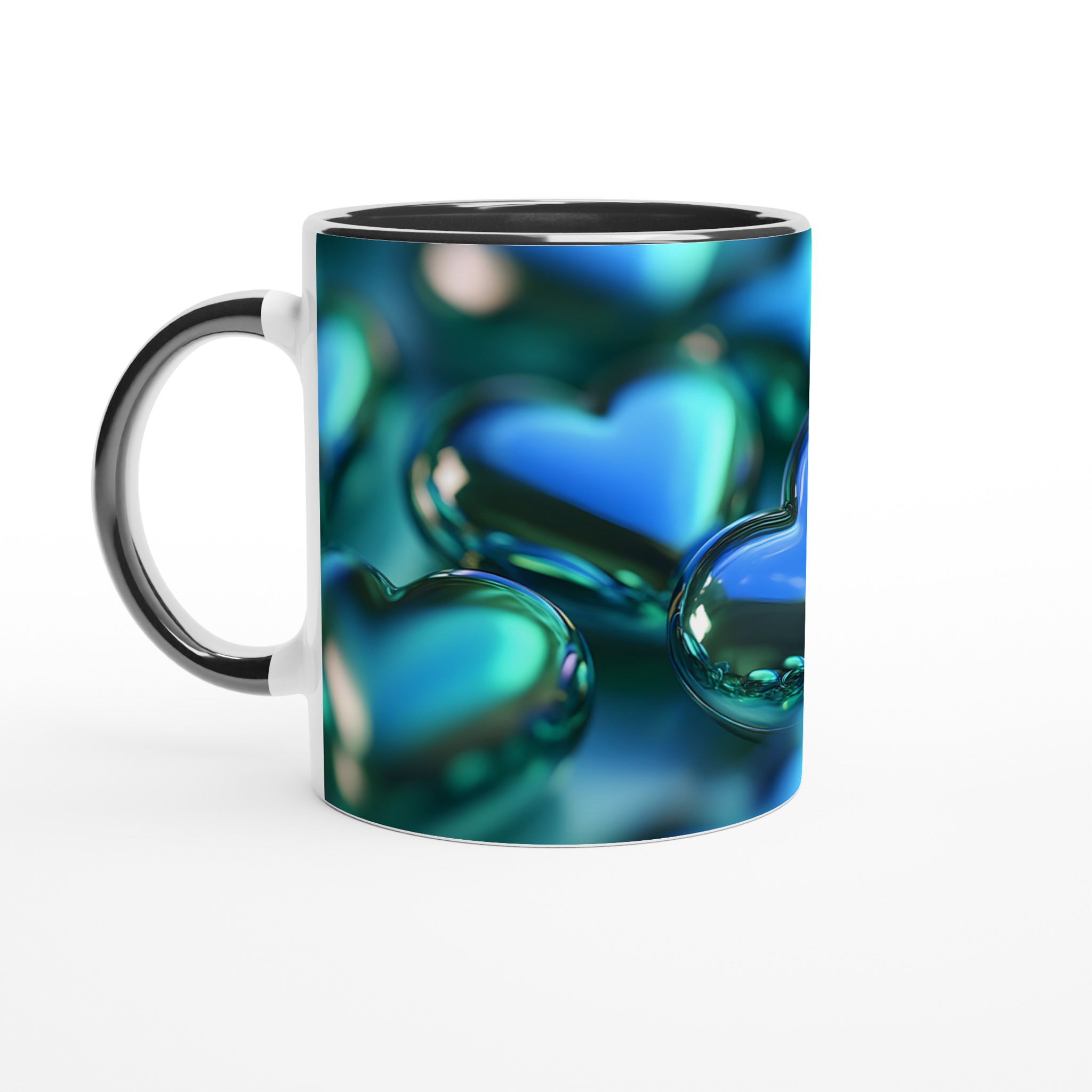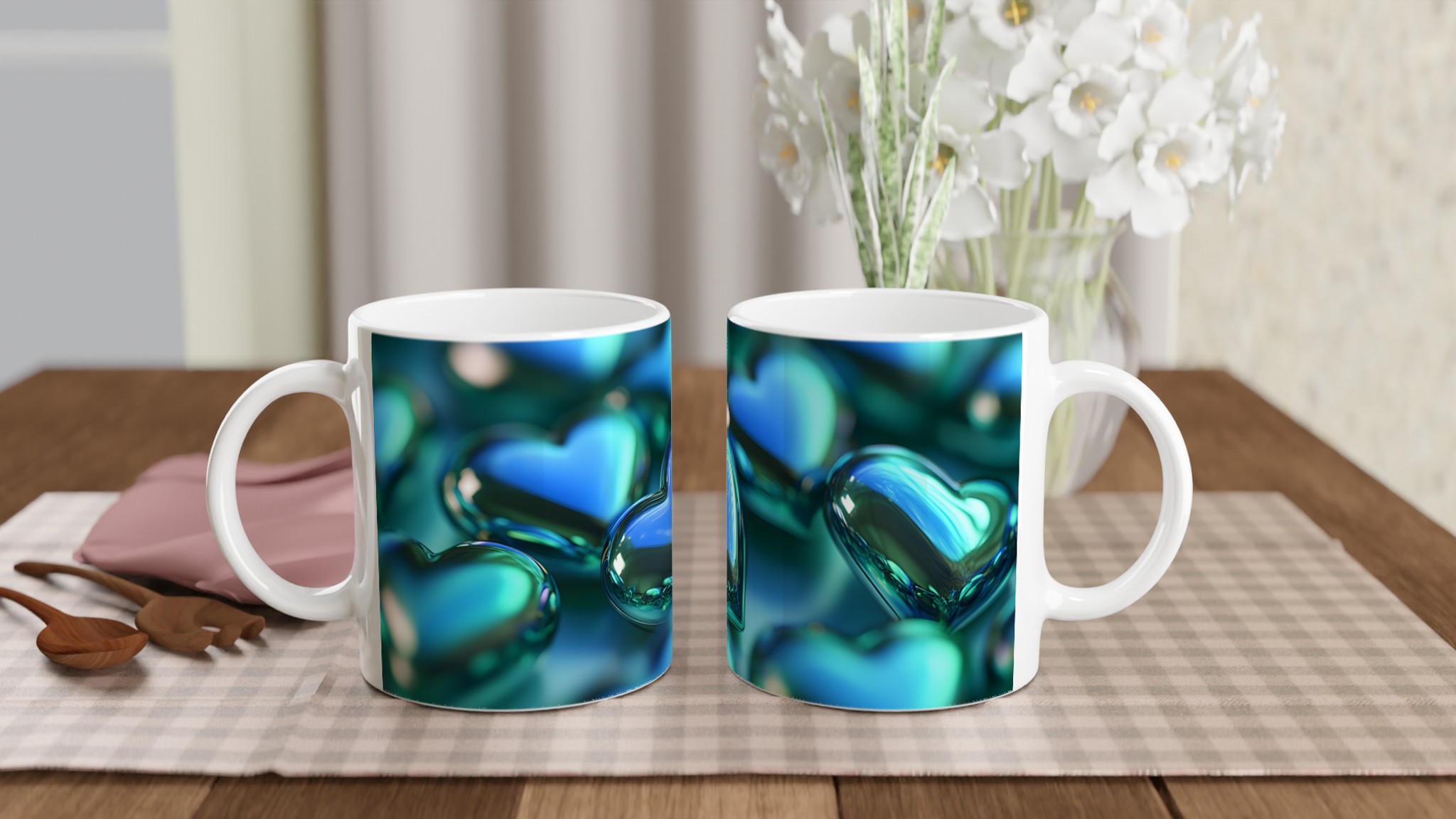 Vibrant Teal & Blue Heart 11oz Ceramic Mug – Your Choice of 7 Lustrous Hues