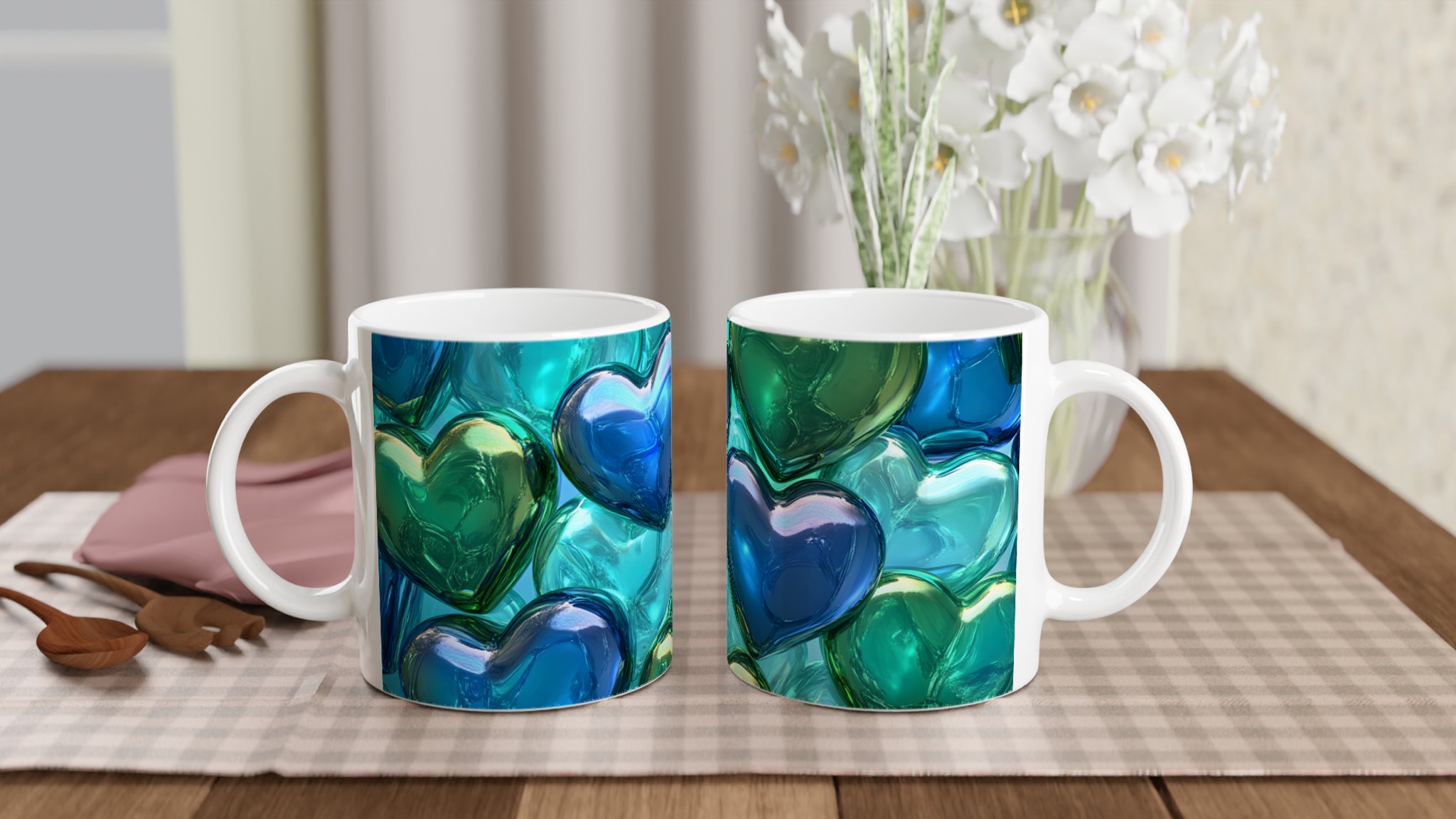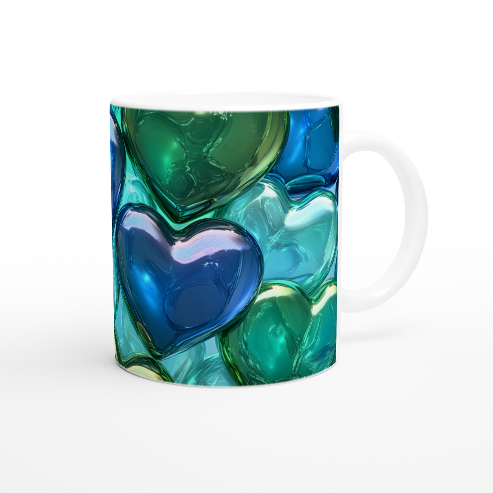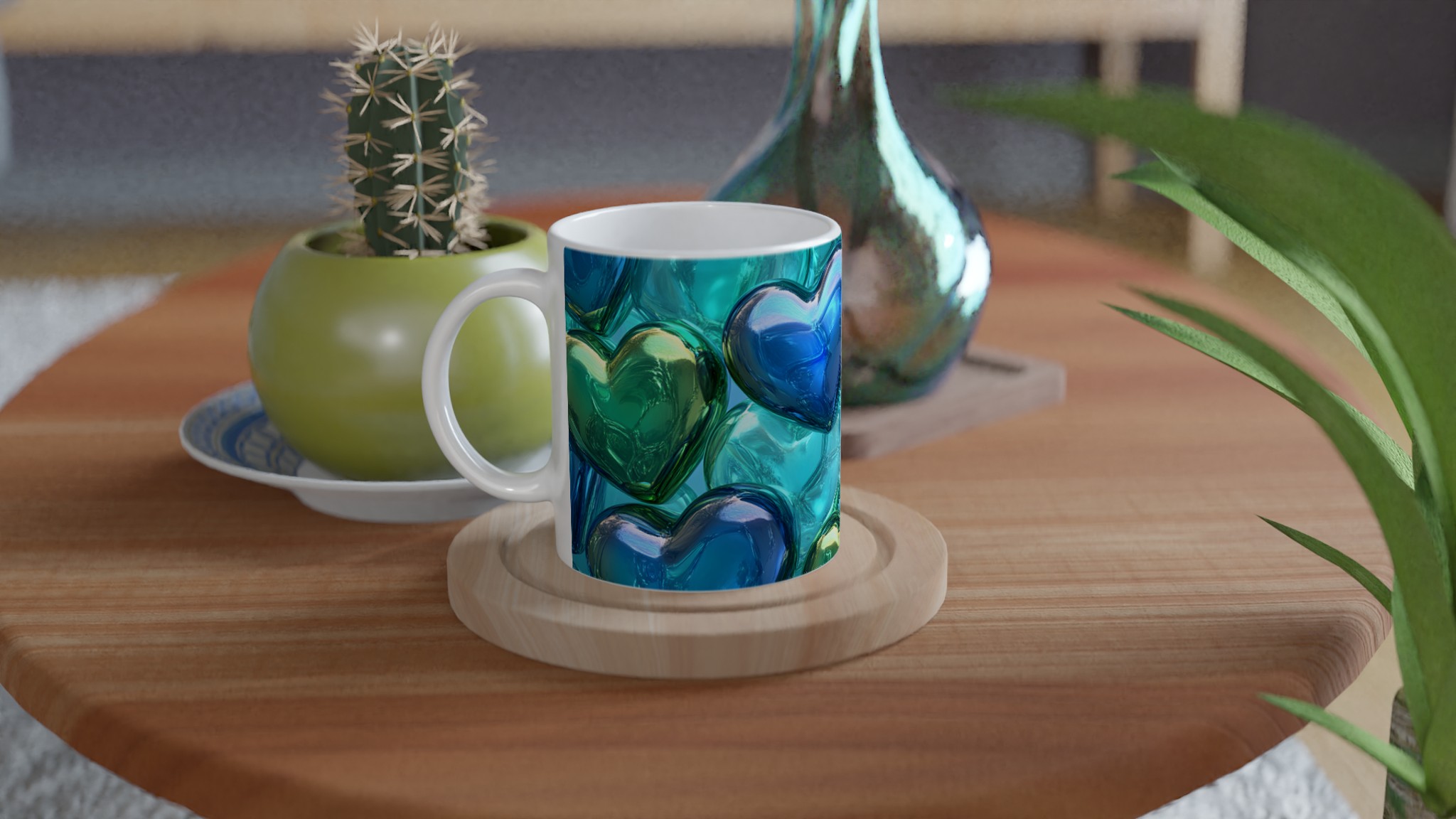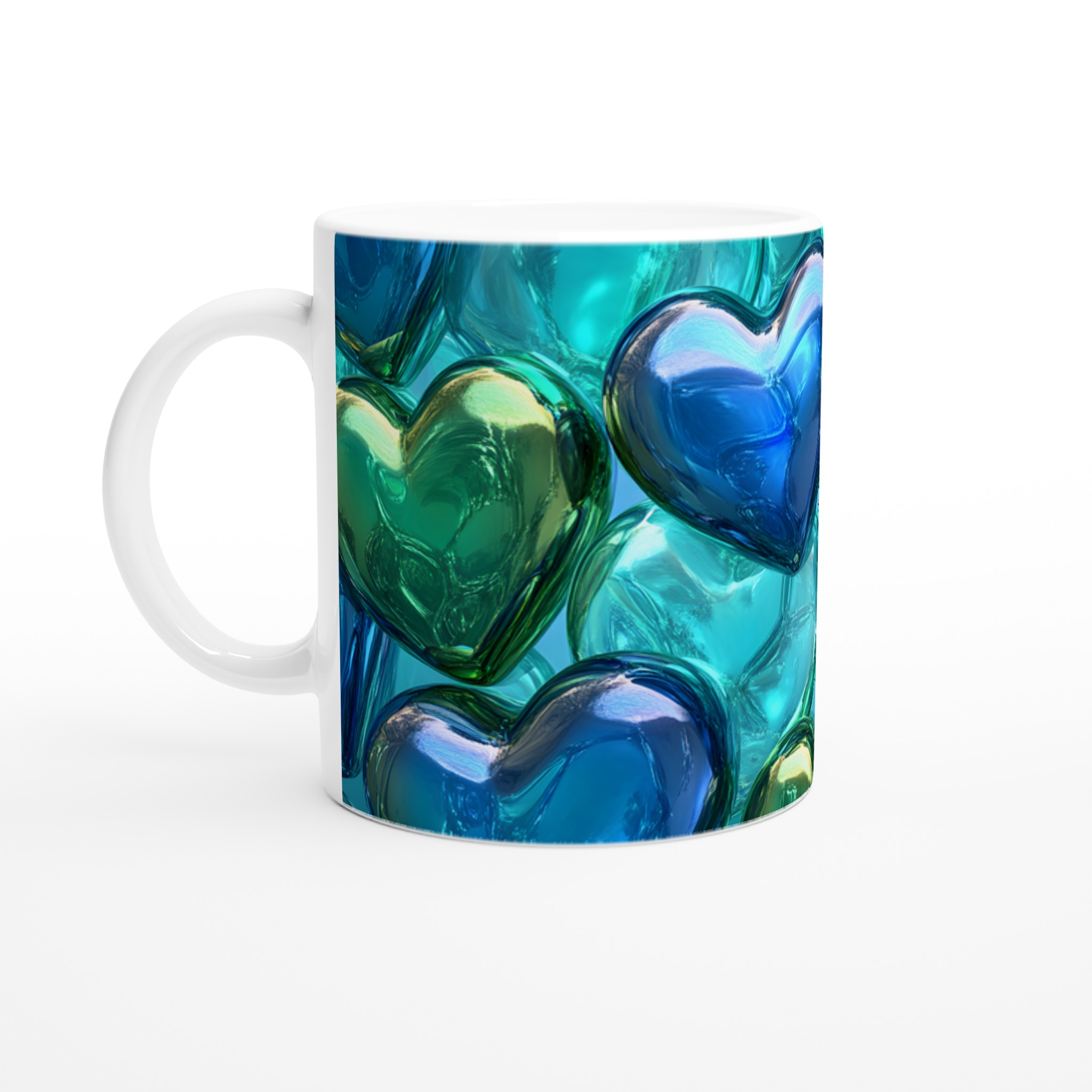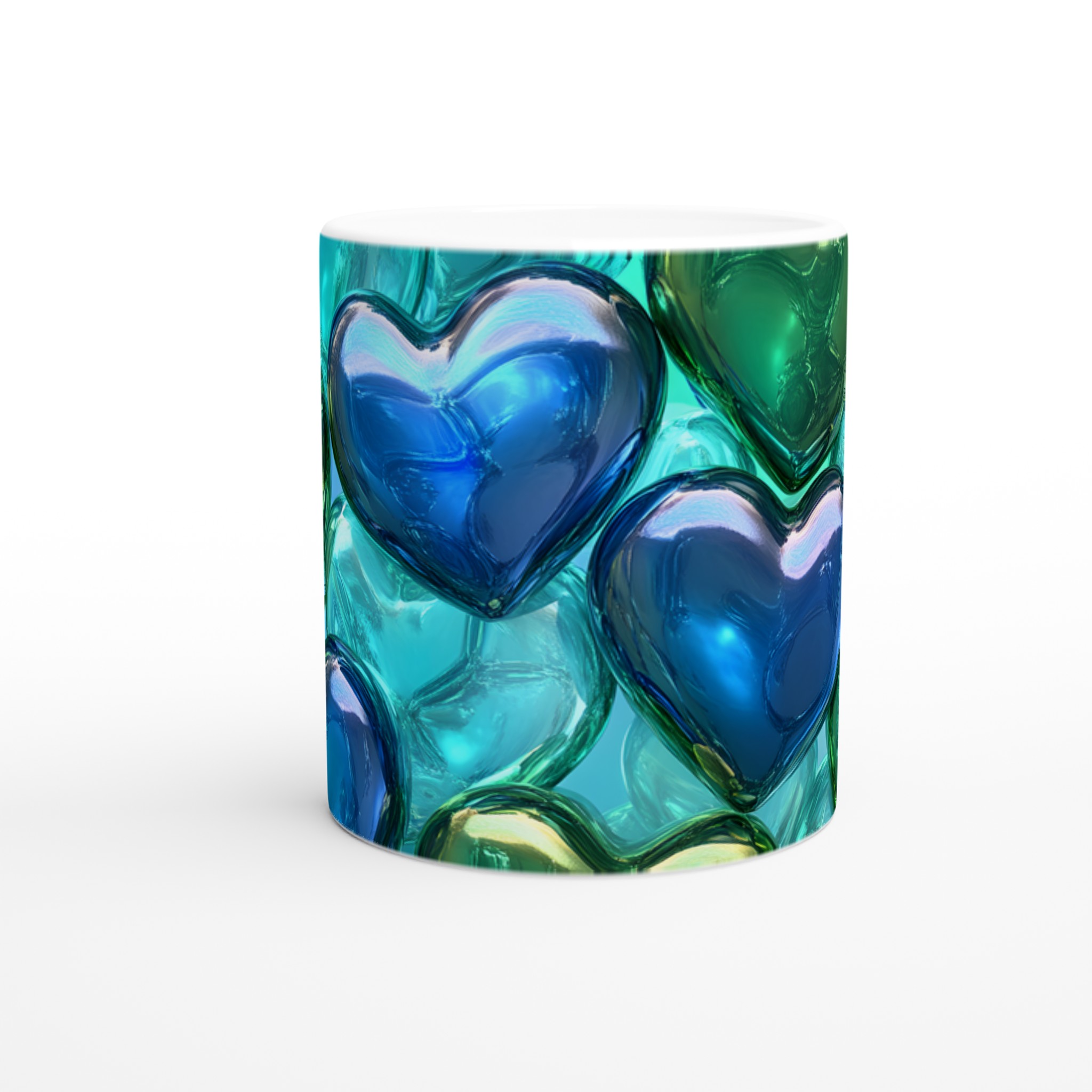 Iridescent Ocean Hearts 11oz Ceramic Mug – Dive into a World of Color with Your Favorite Hot Beverage