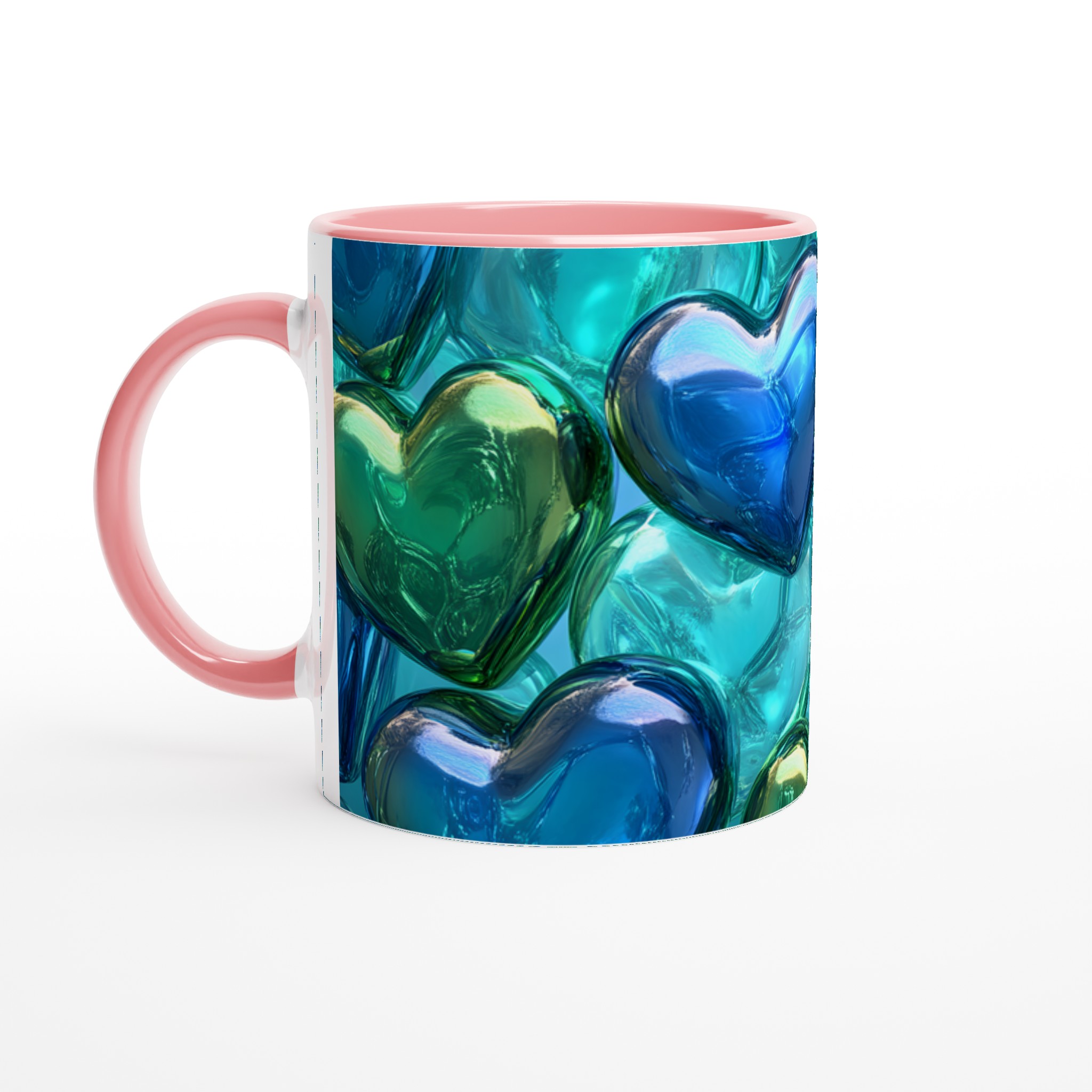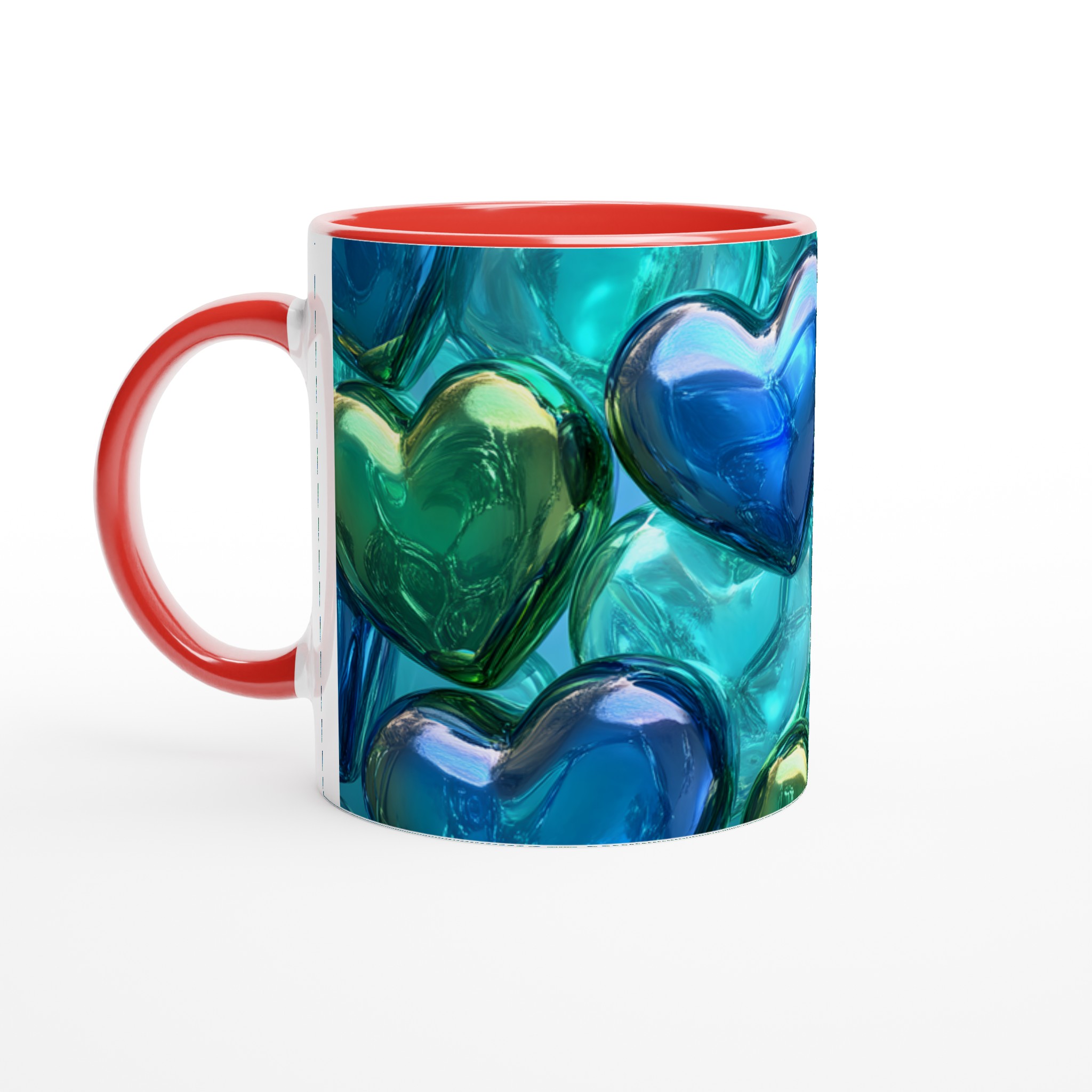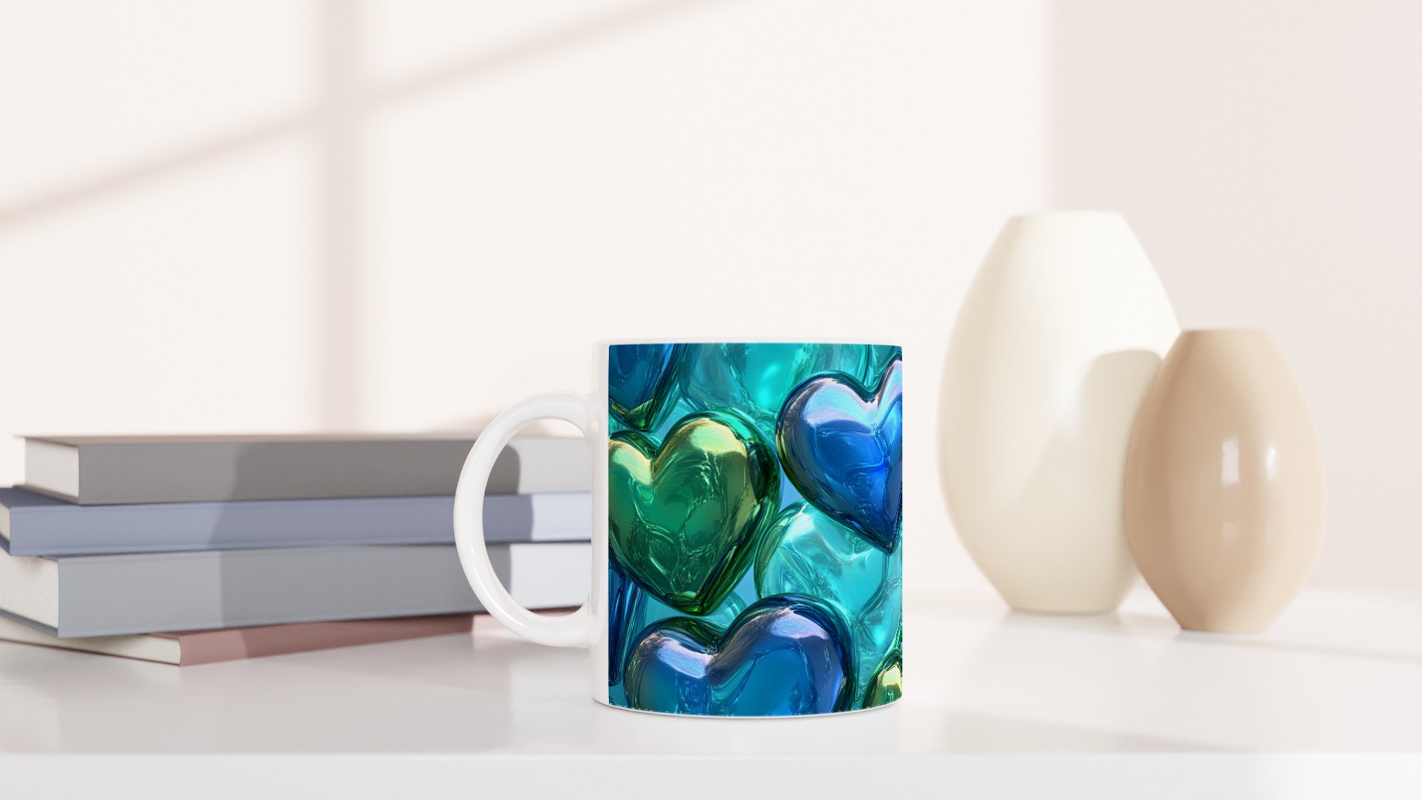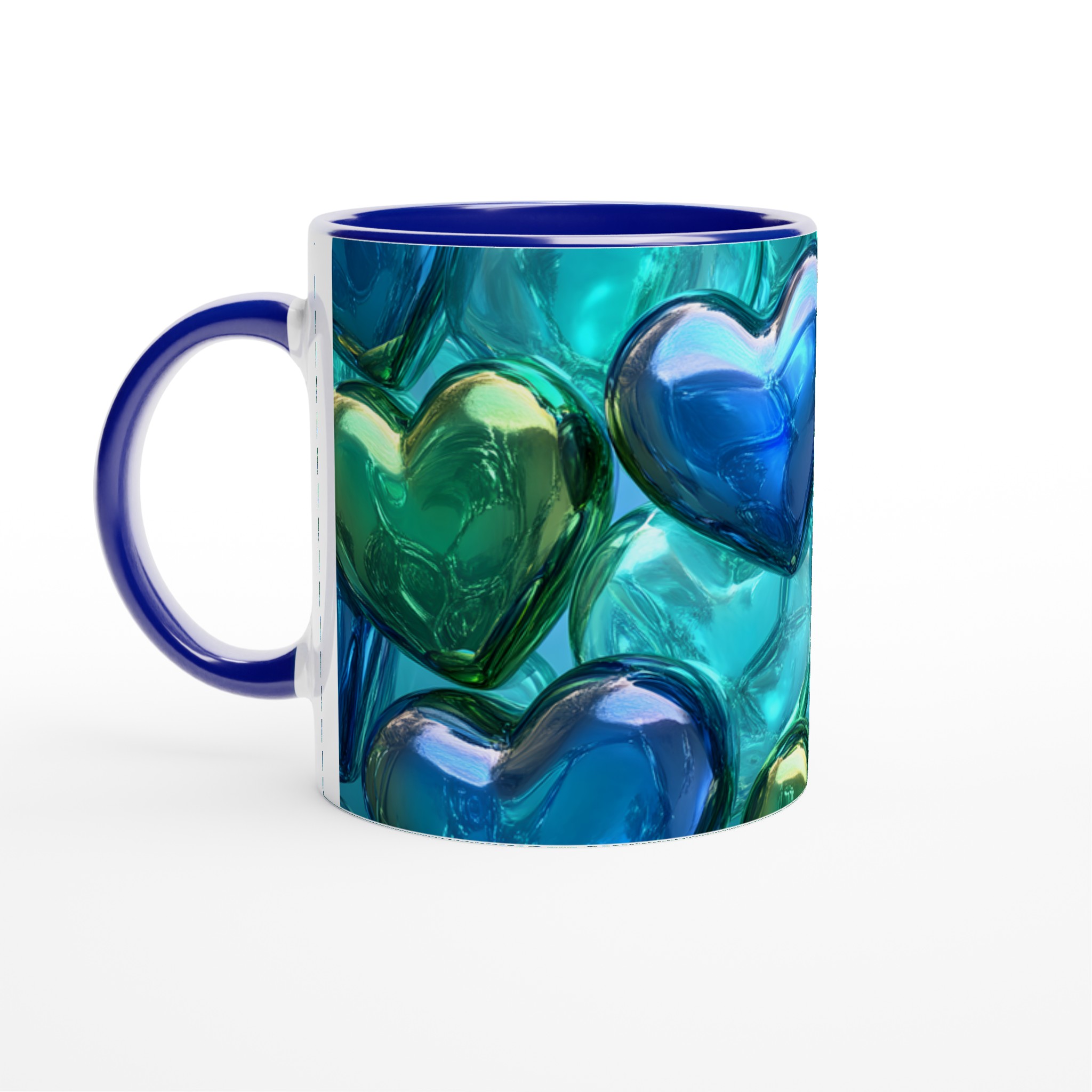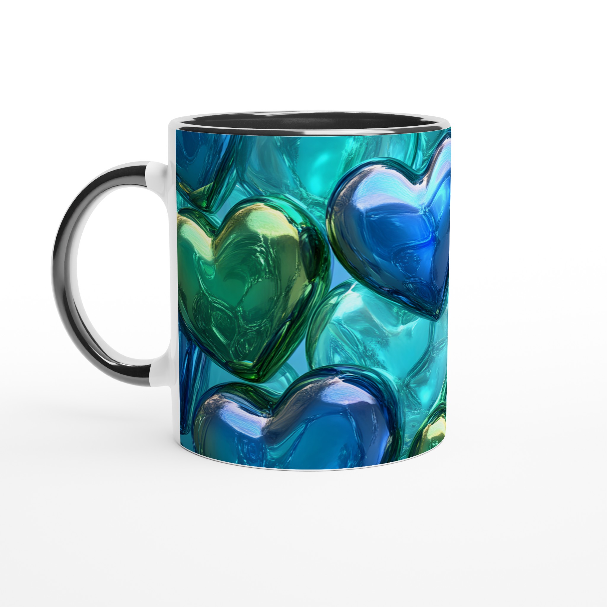 Iridescent Ocean Hearts 11oz Ceramic Mug – Dive into a World of Color with Your Favorite Hot Beverage