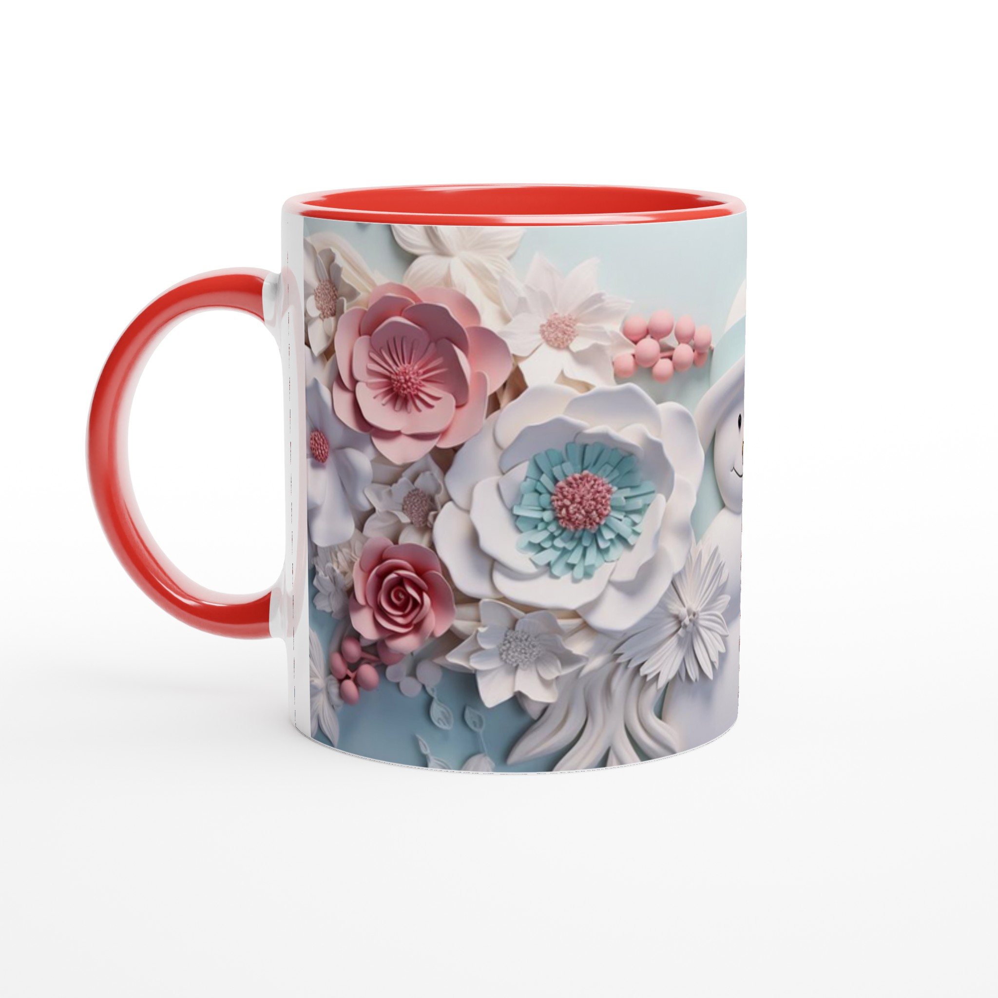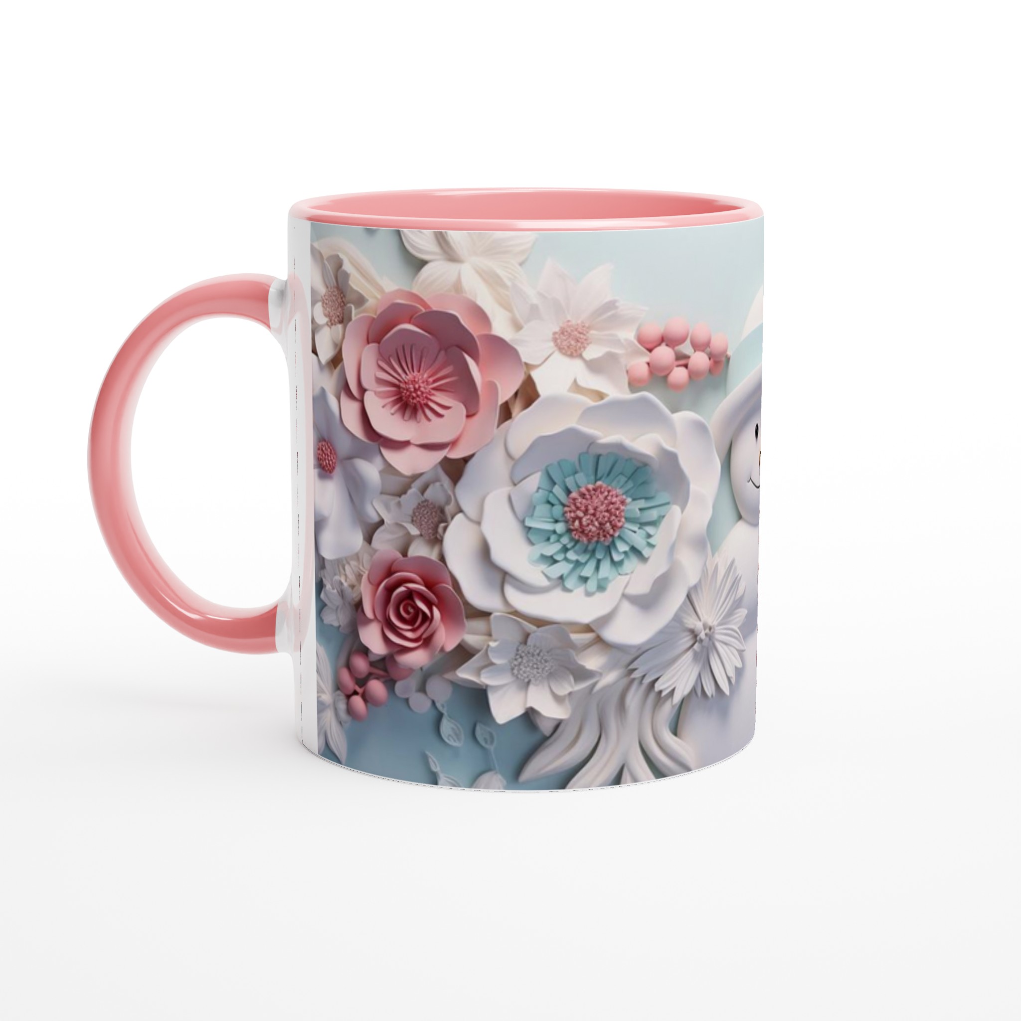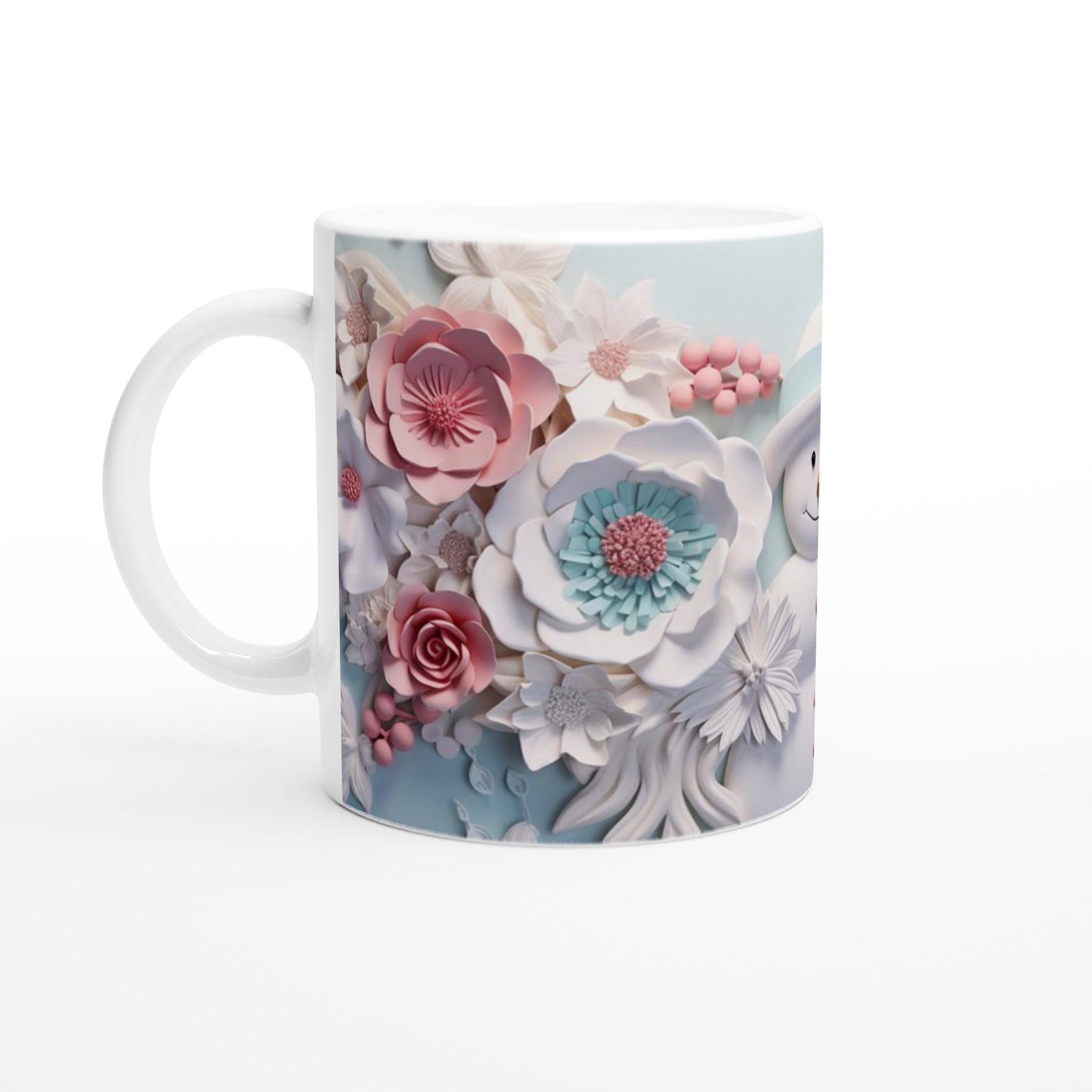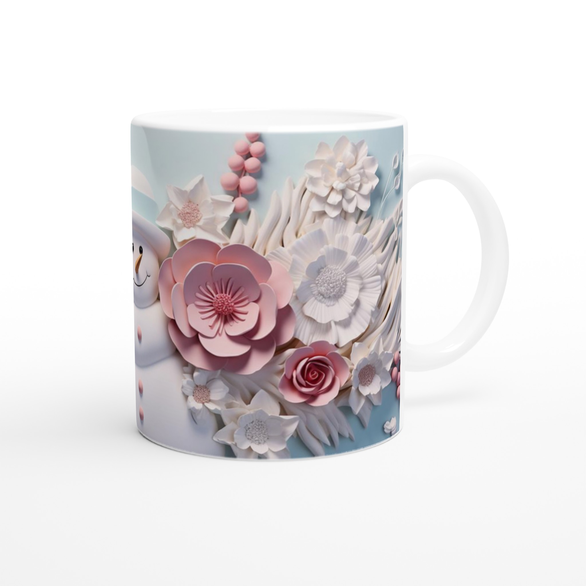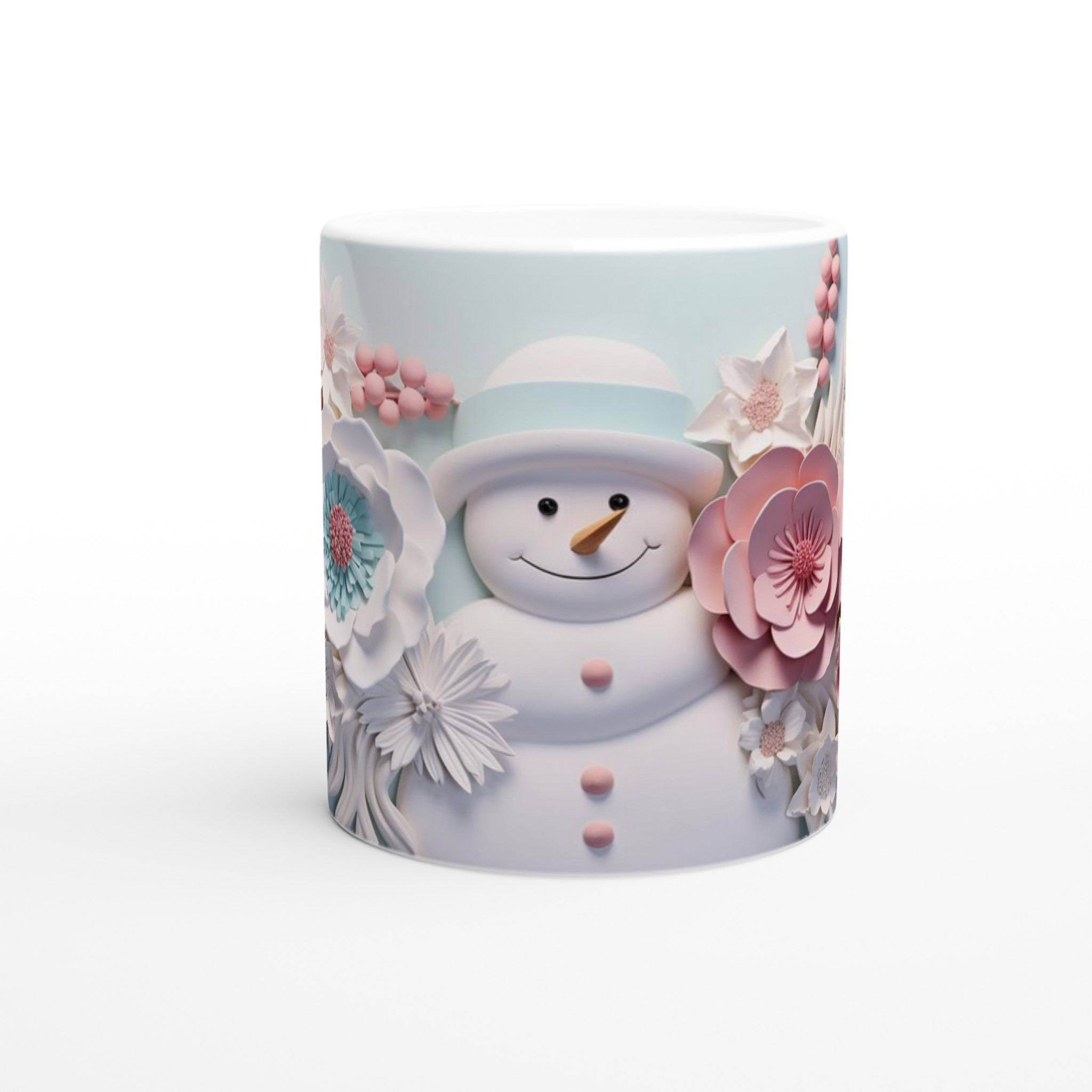 Winter Floral Snowman 11oz Ceramic Mug – Whimsical Pink & Teal Design
