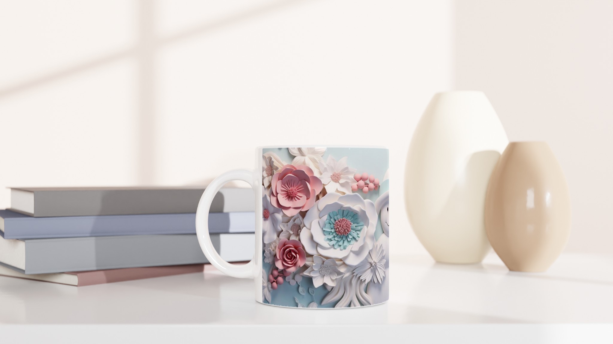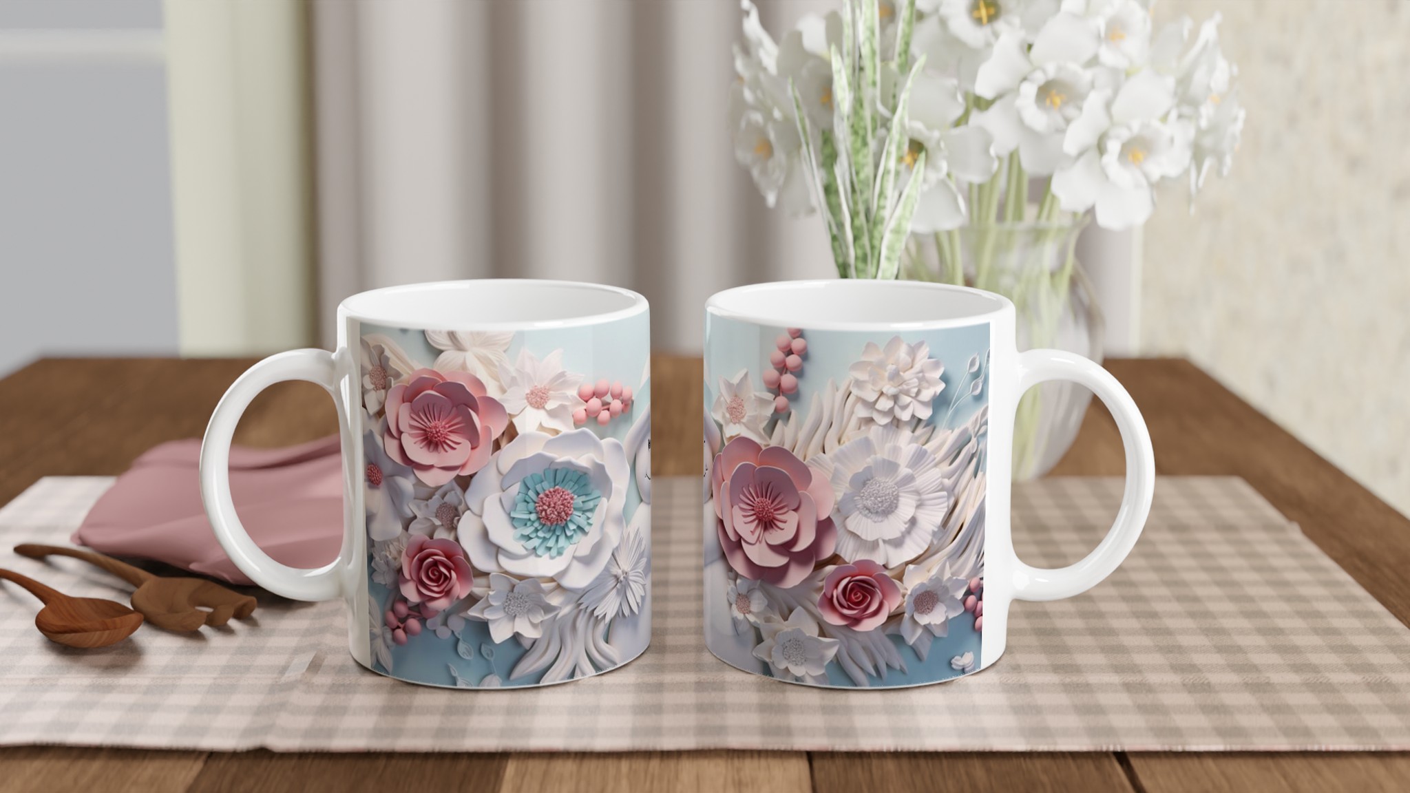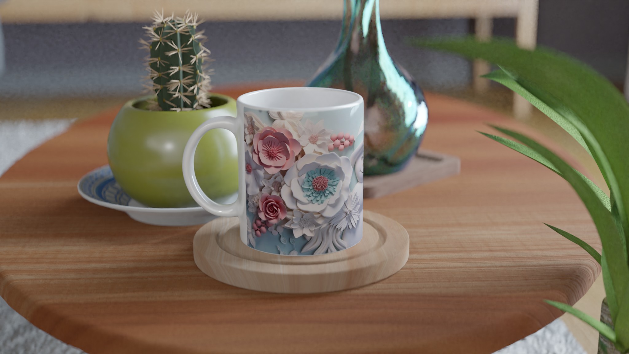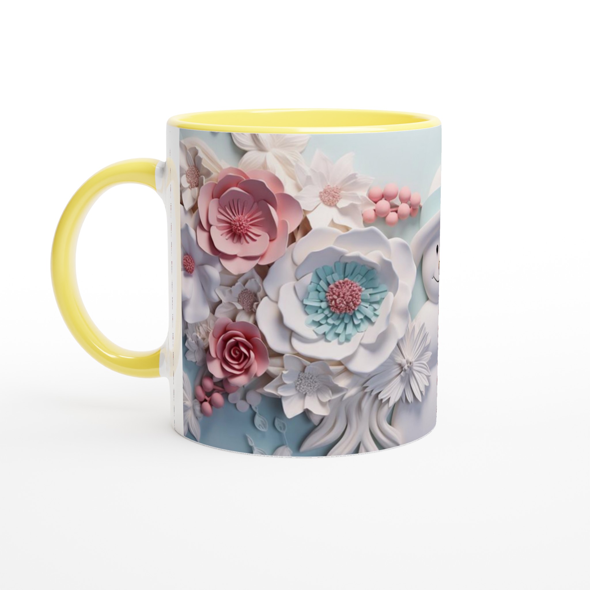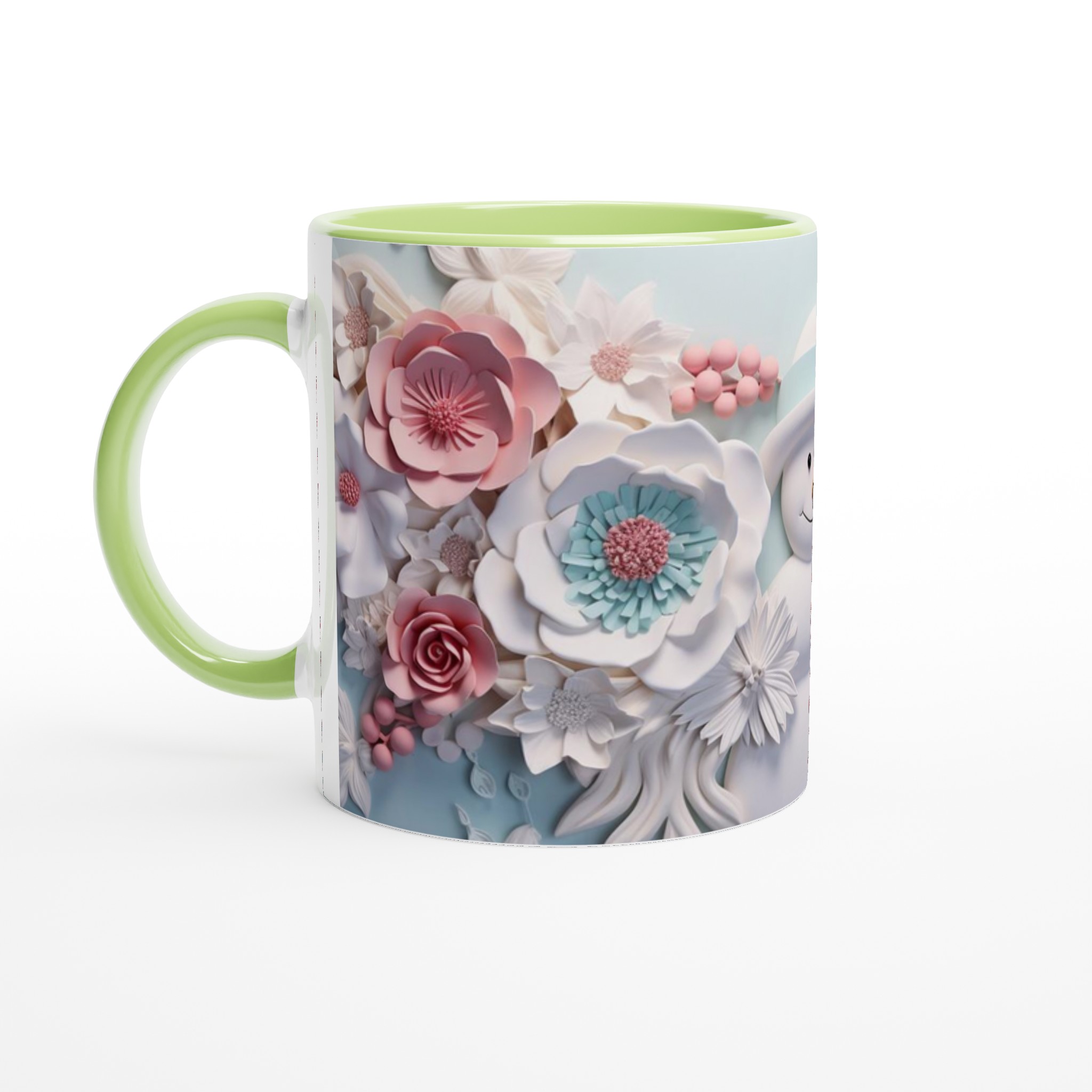 Winter Floral Snowman 11oz Ceramic Mug – Whimsical Pink & Teal Design