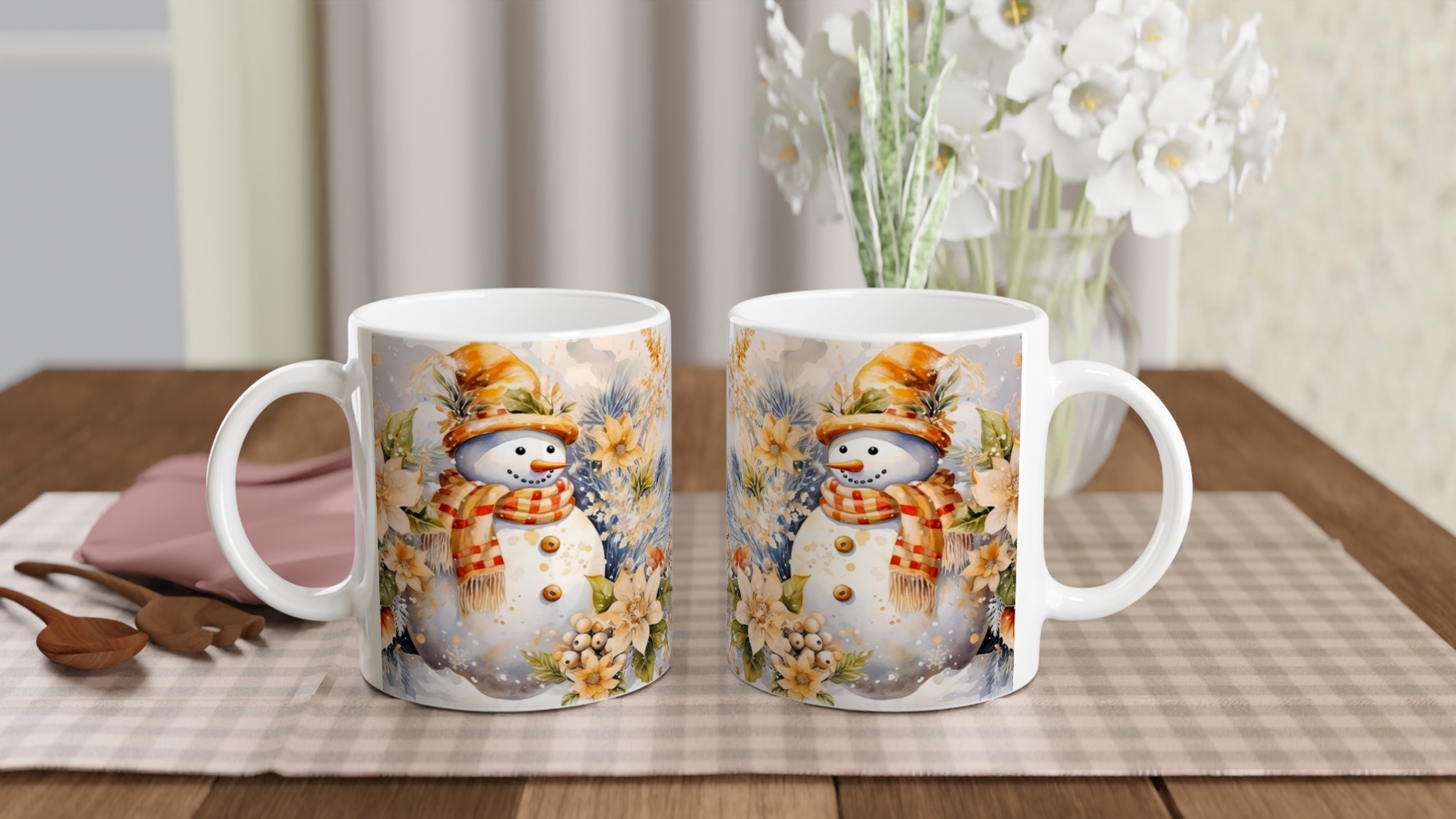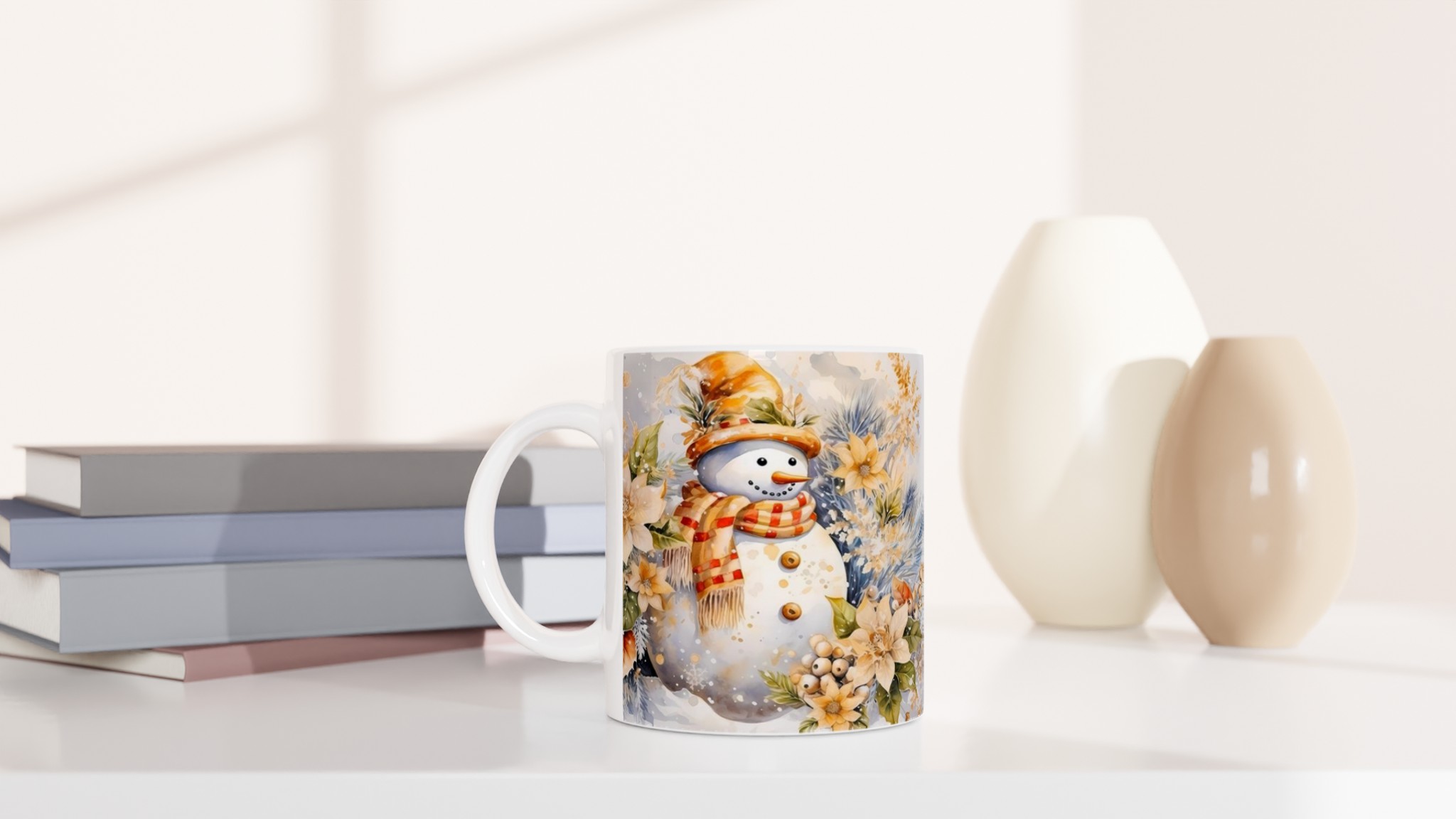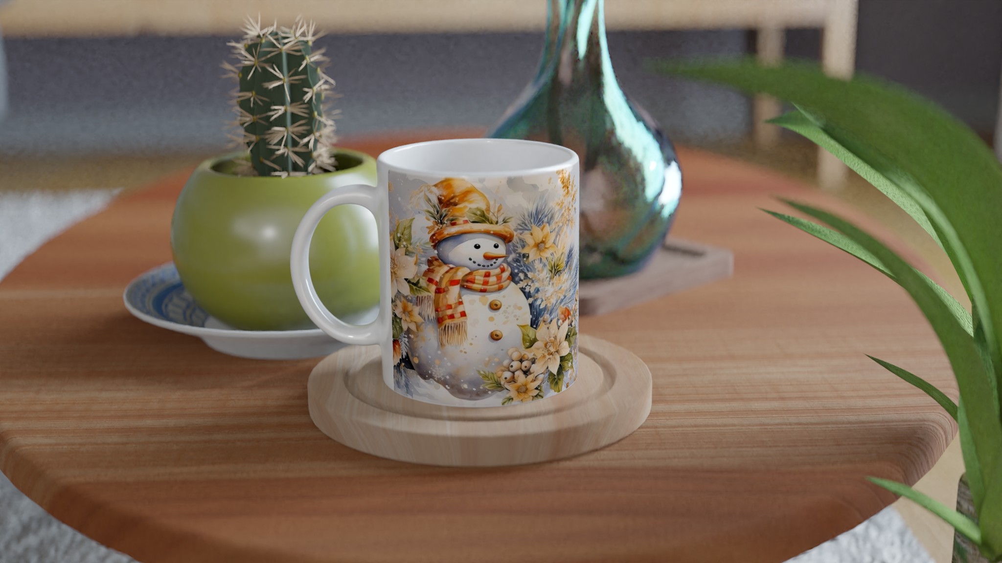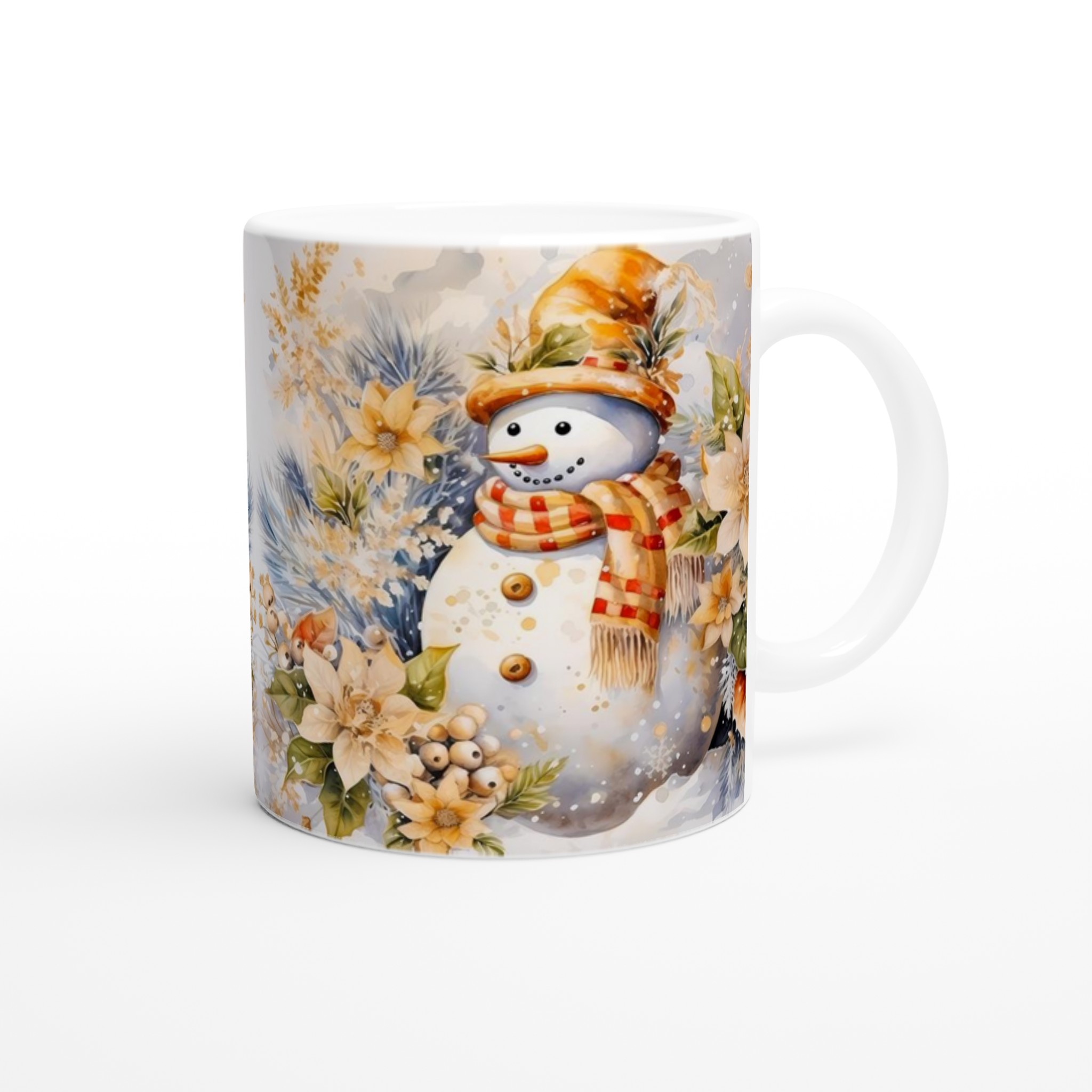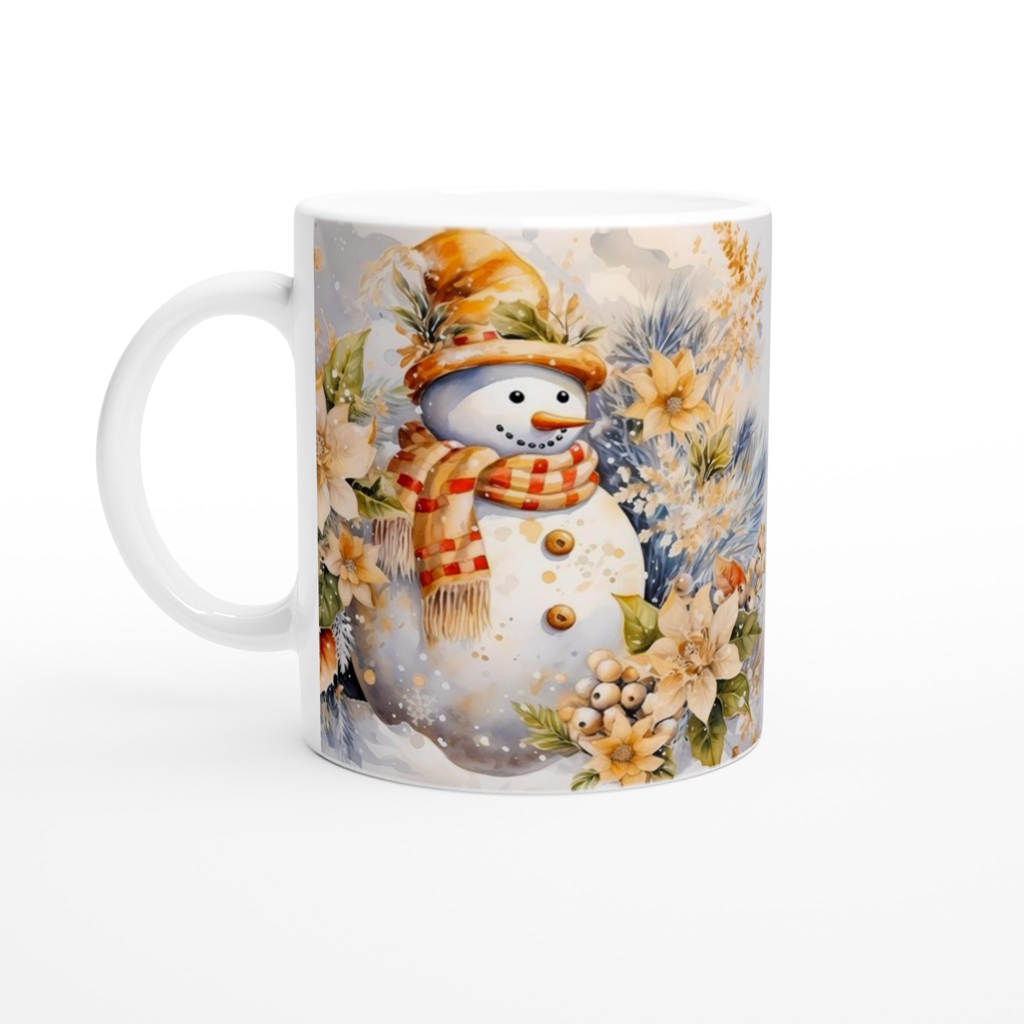 Charming Watercolor Snowman 11oz Ceramic Mug – Whimsical Winter Wonderland Design