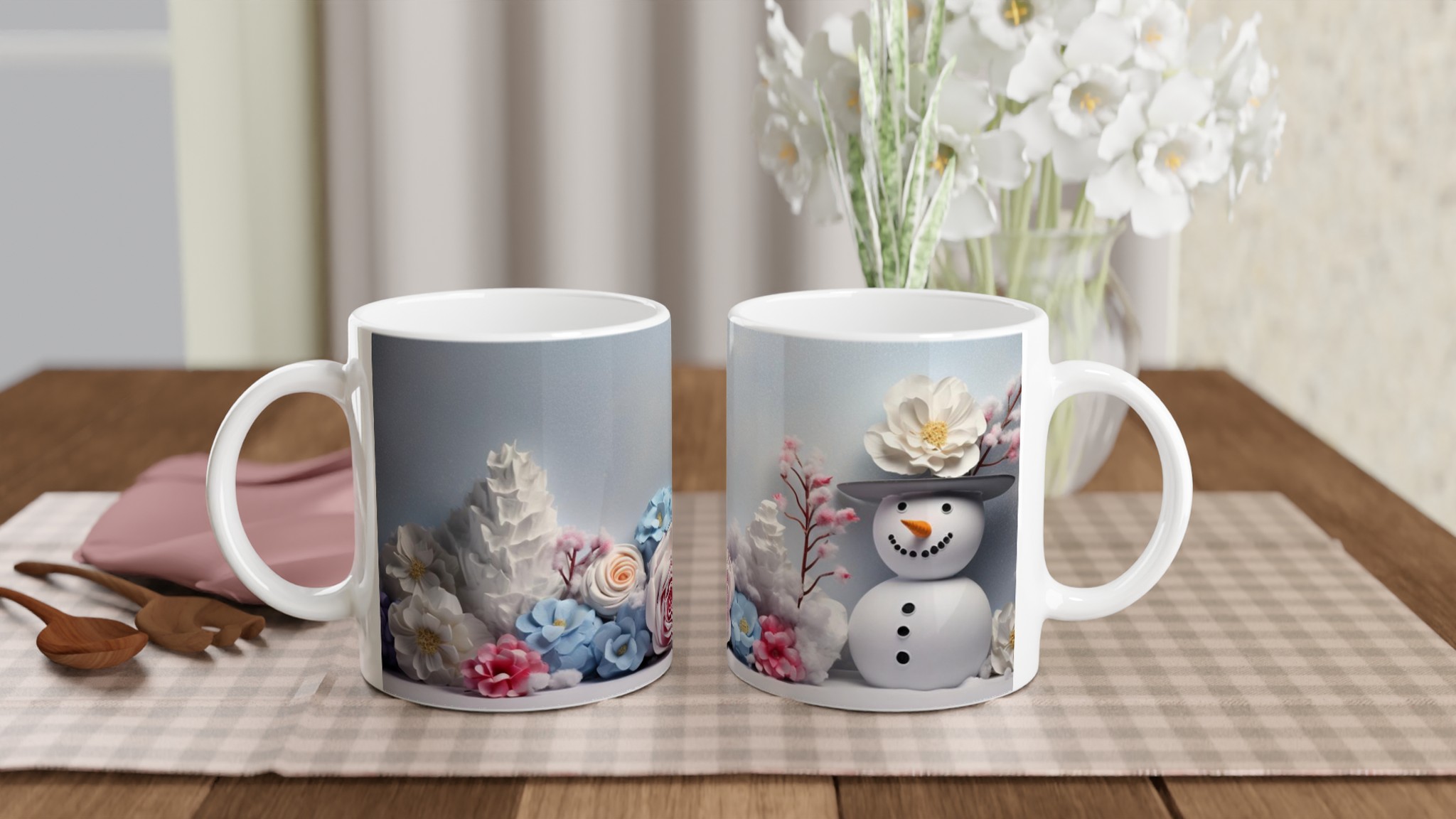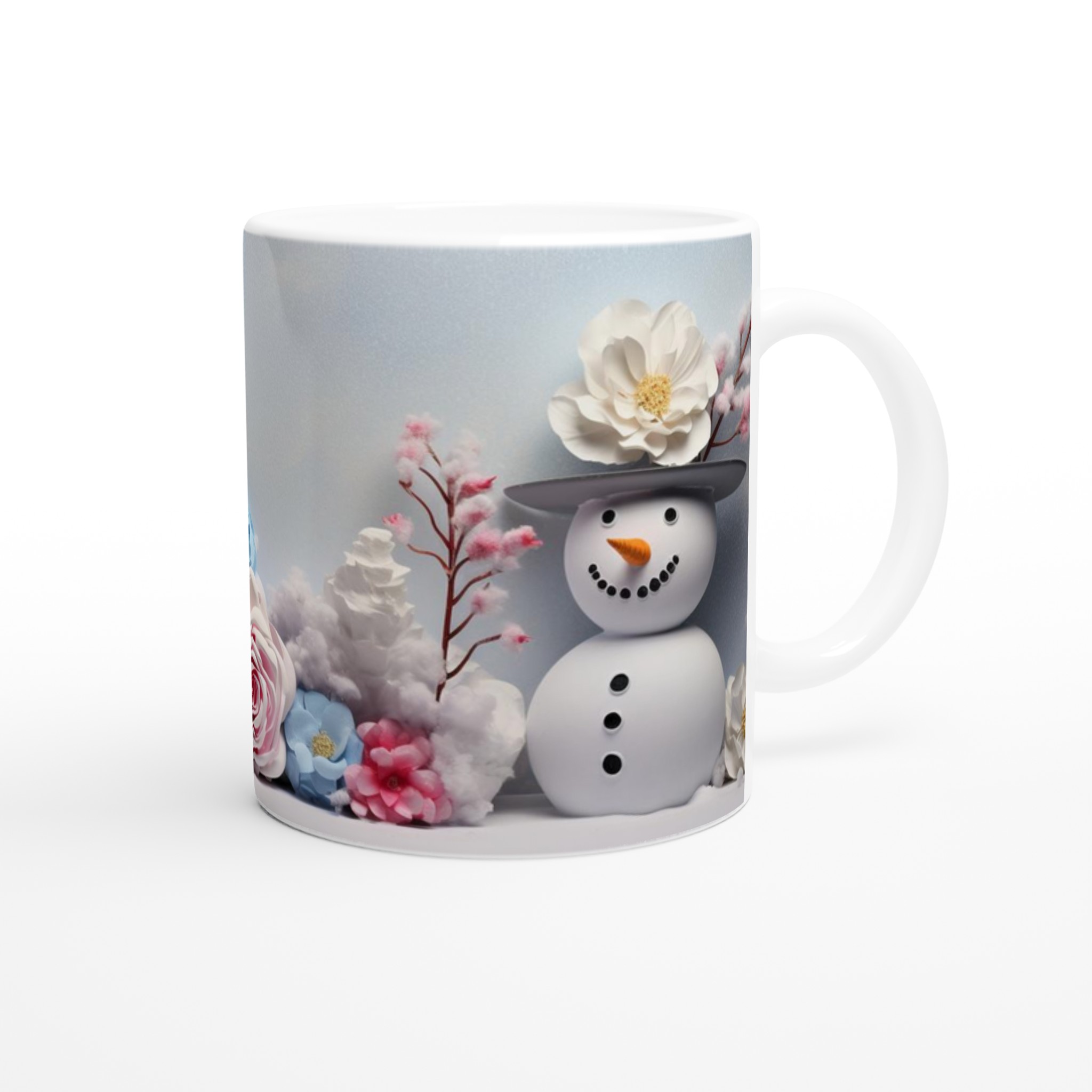 Winter Floral Snowman 11oz Ceramic Mug – Choose Your Color!